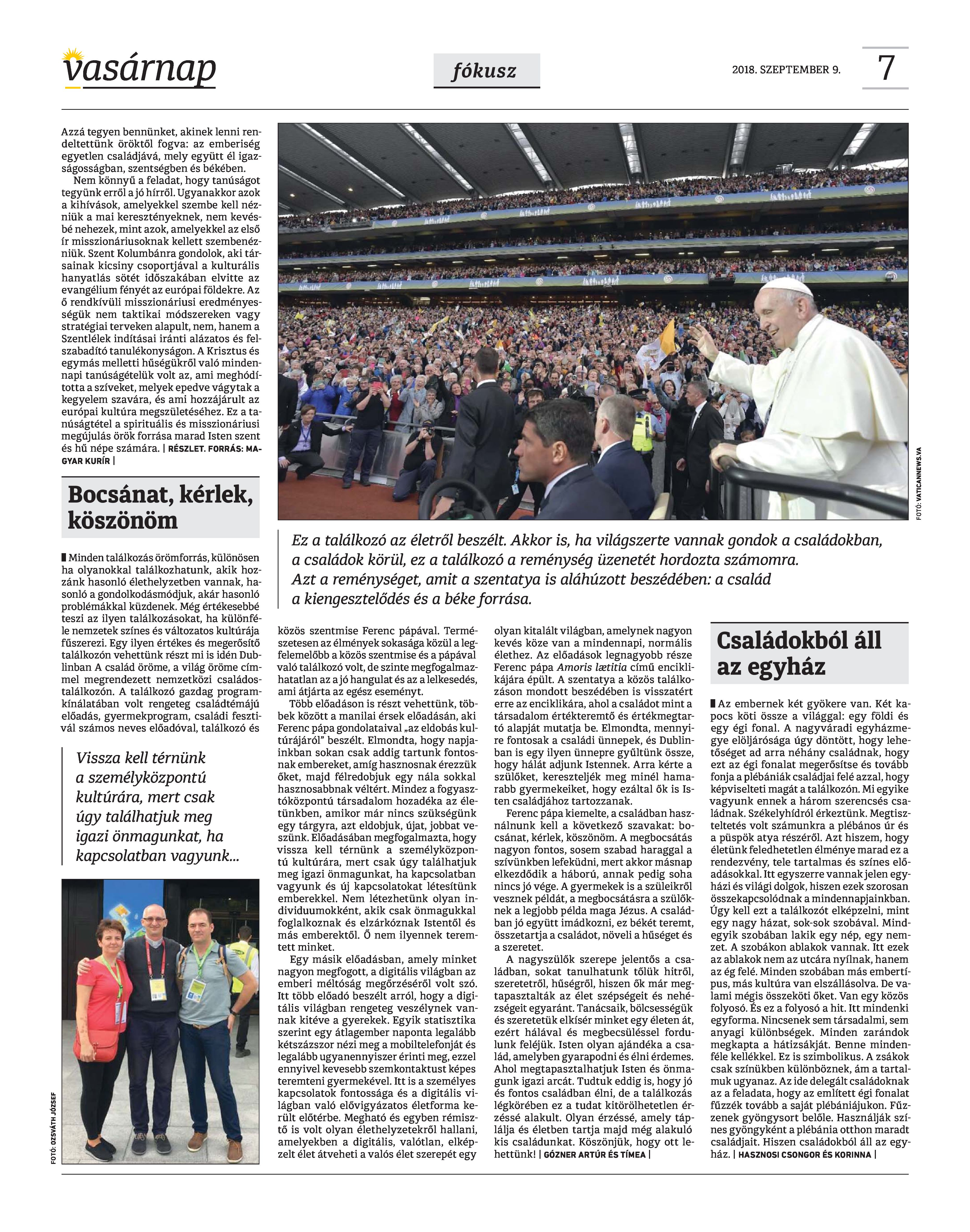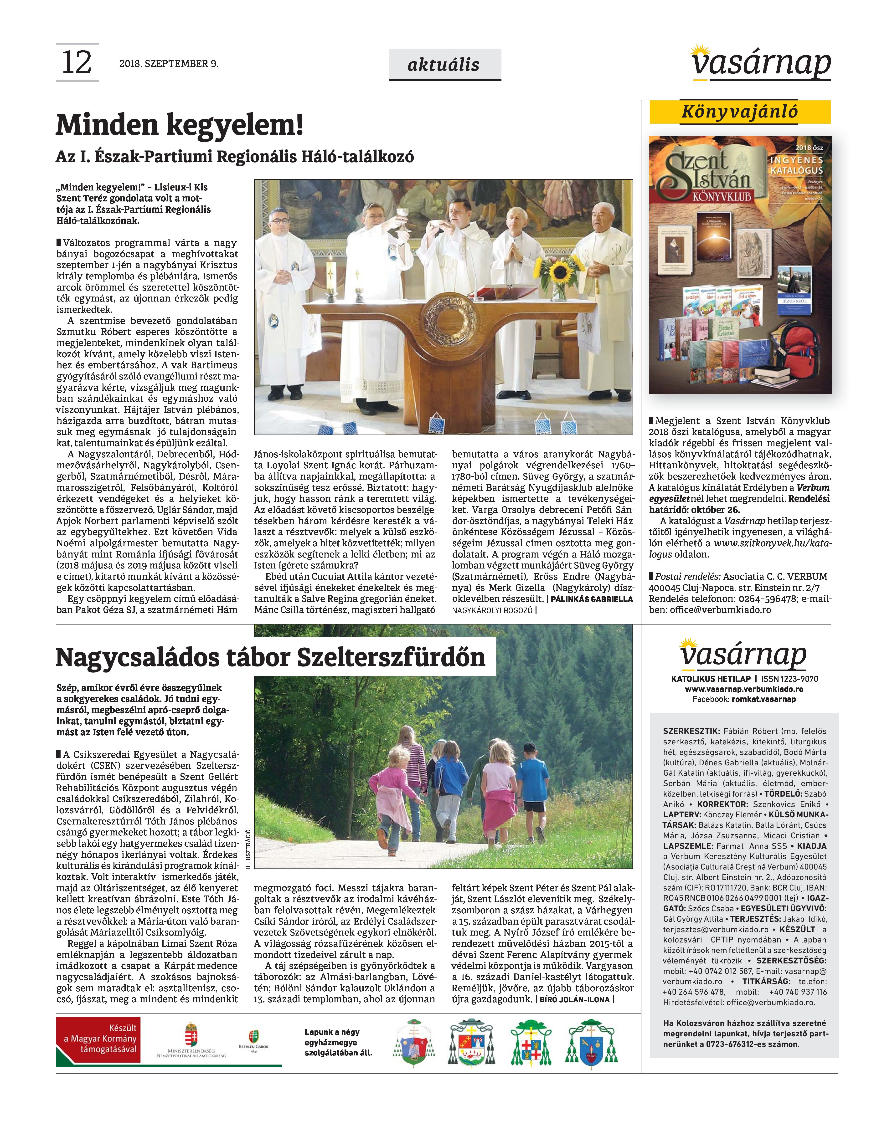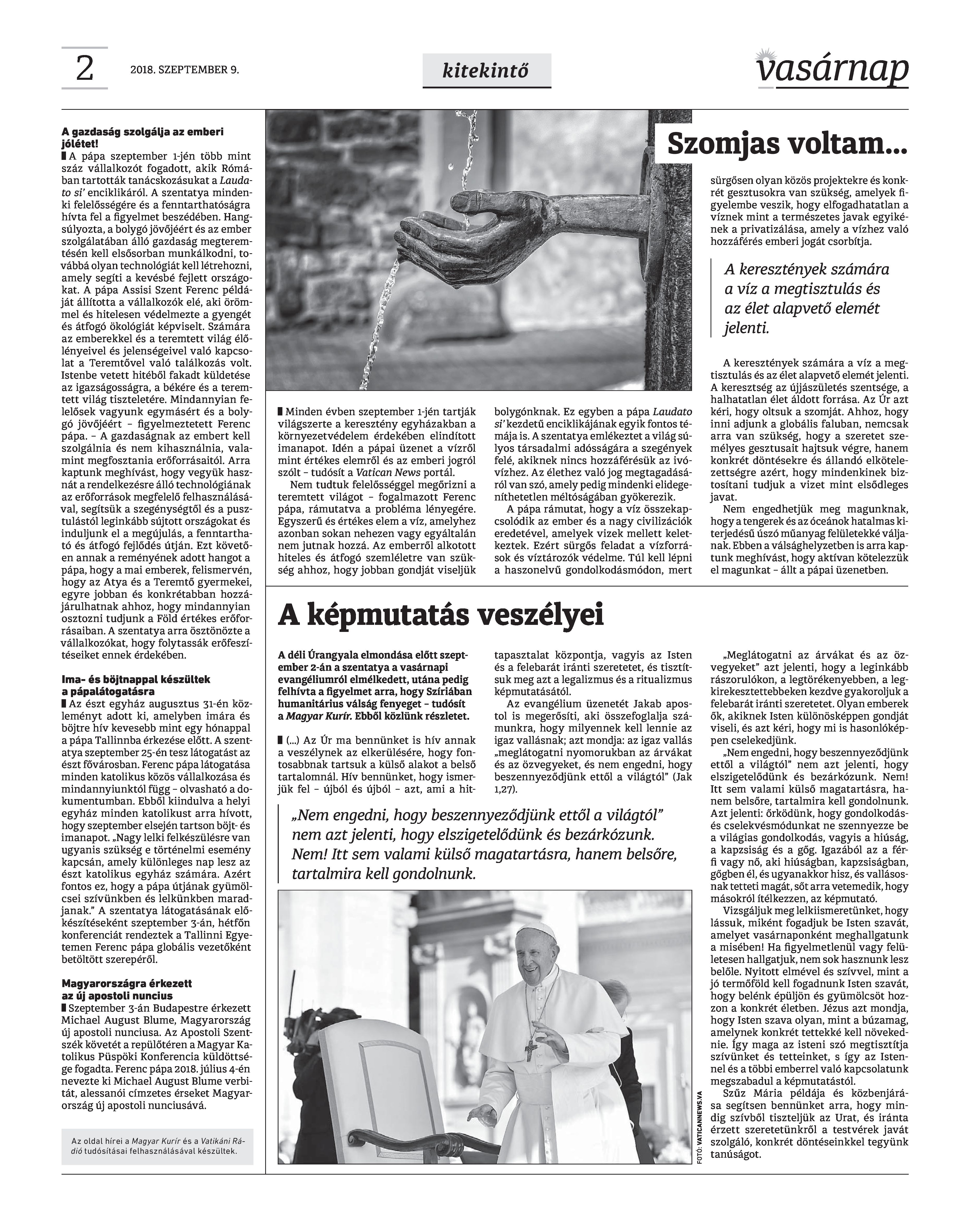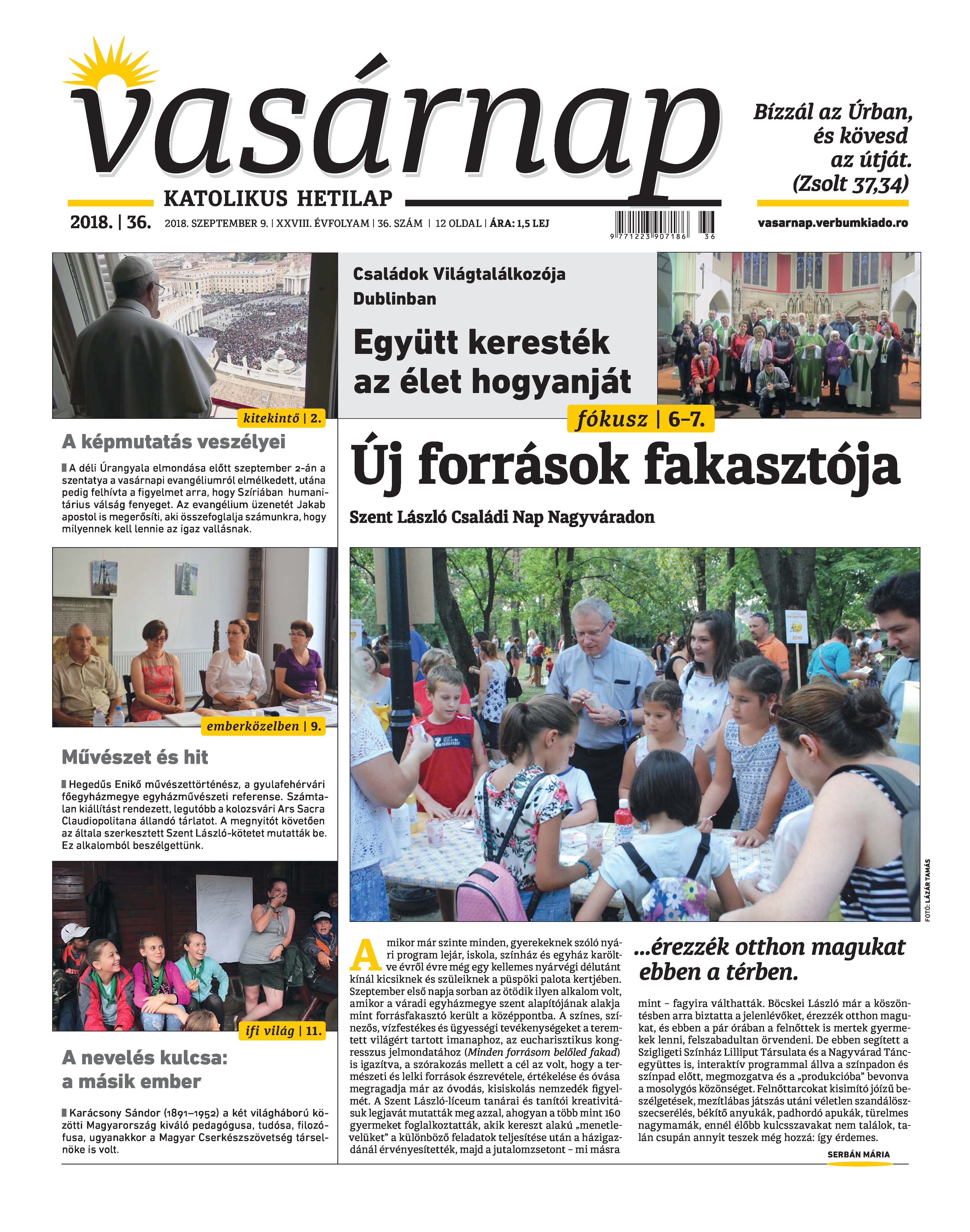 VASÁRNAP - 2018. SZEPTEMBER 9. A Vasárnap Katolikus Hetilap 2018. szeptember 9. / XXVIII. évf. / 36. számának digitális változata.