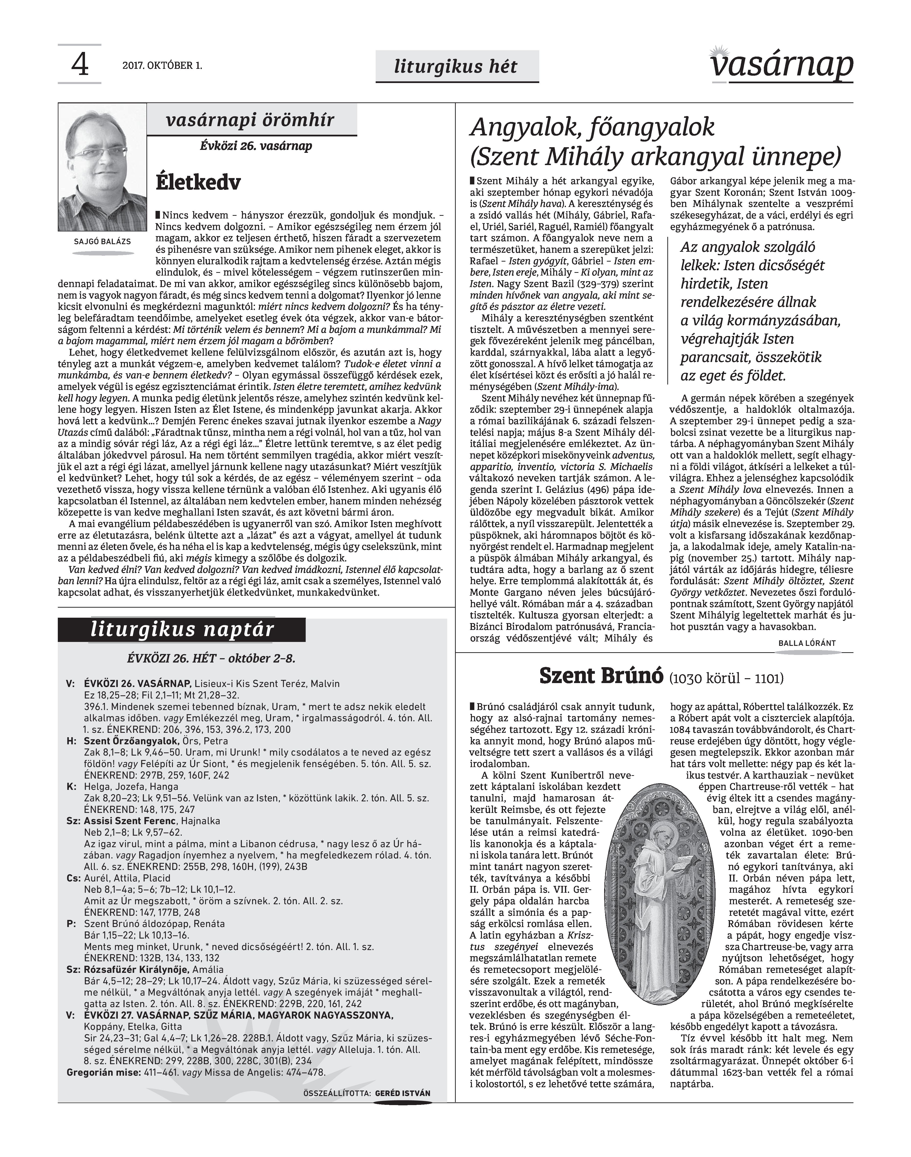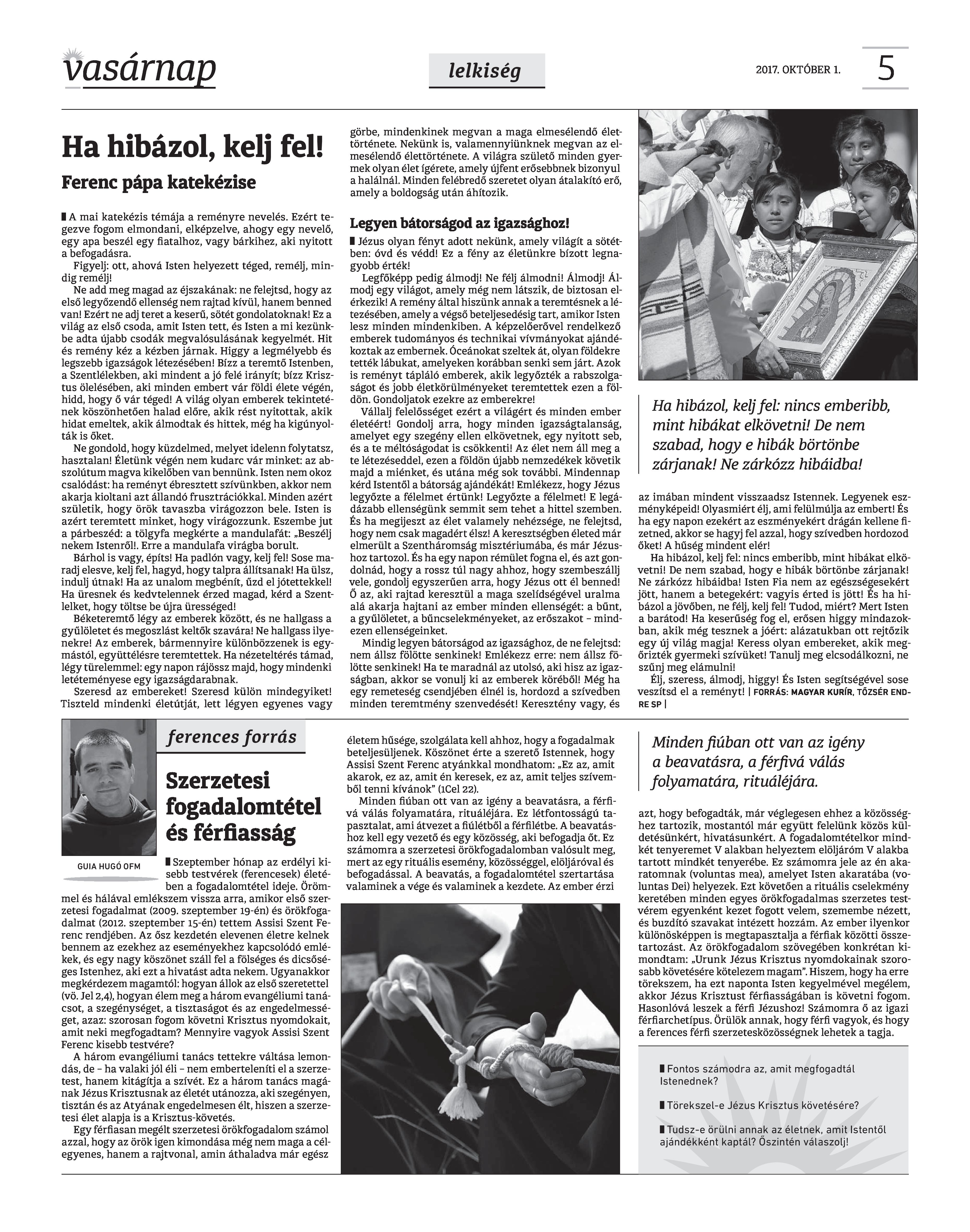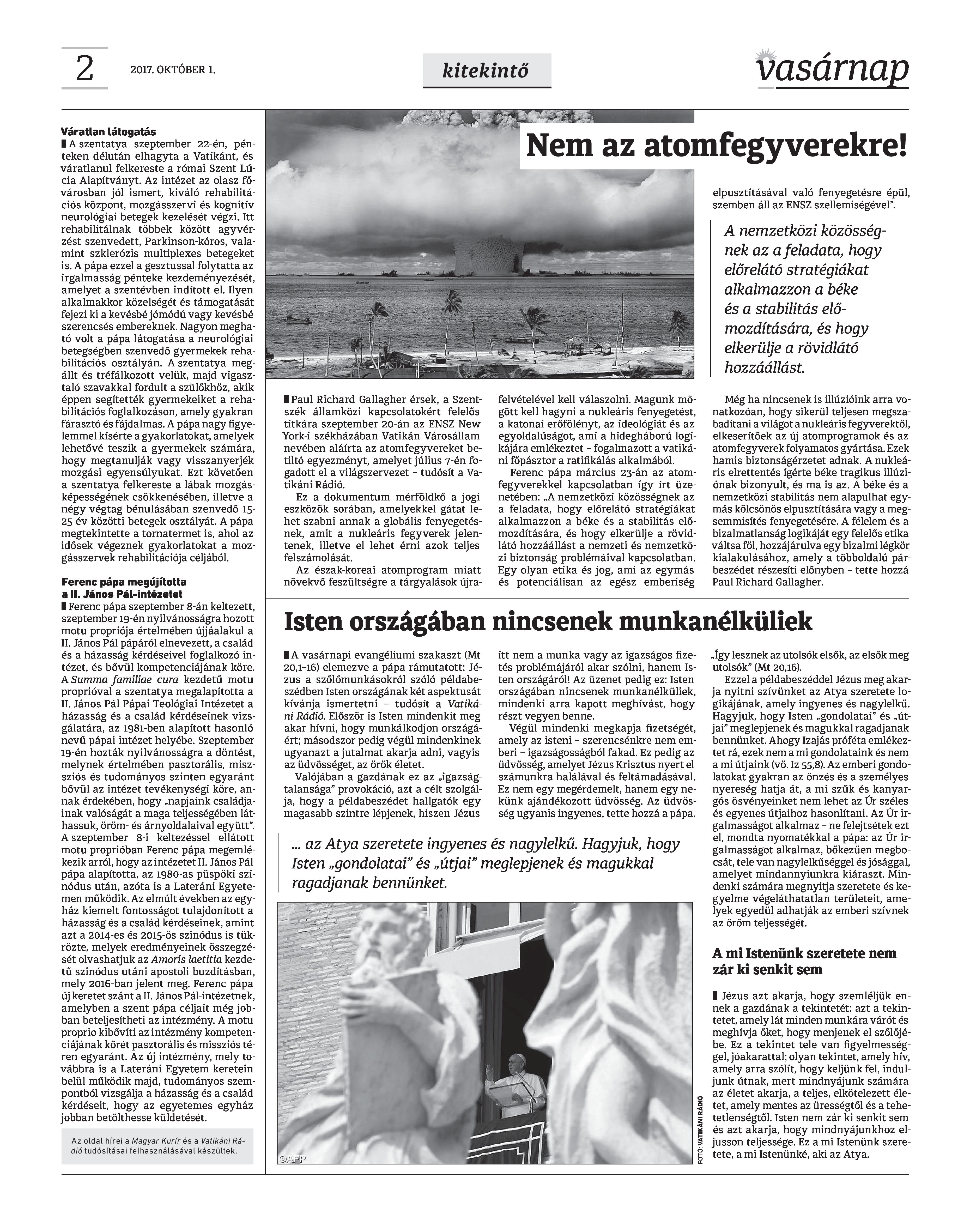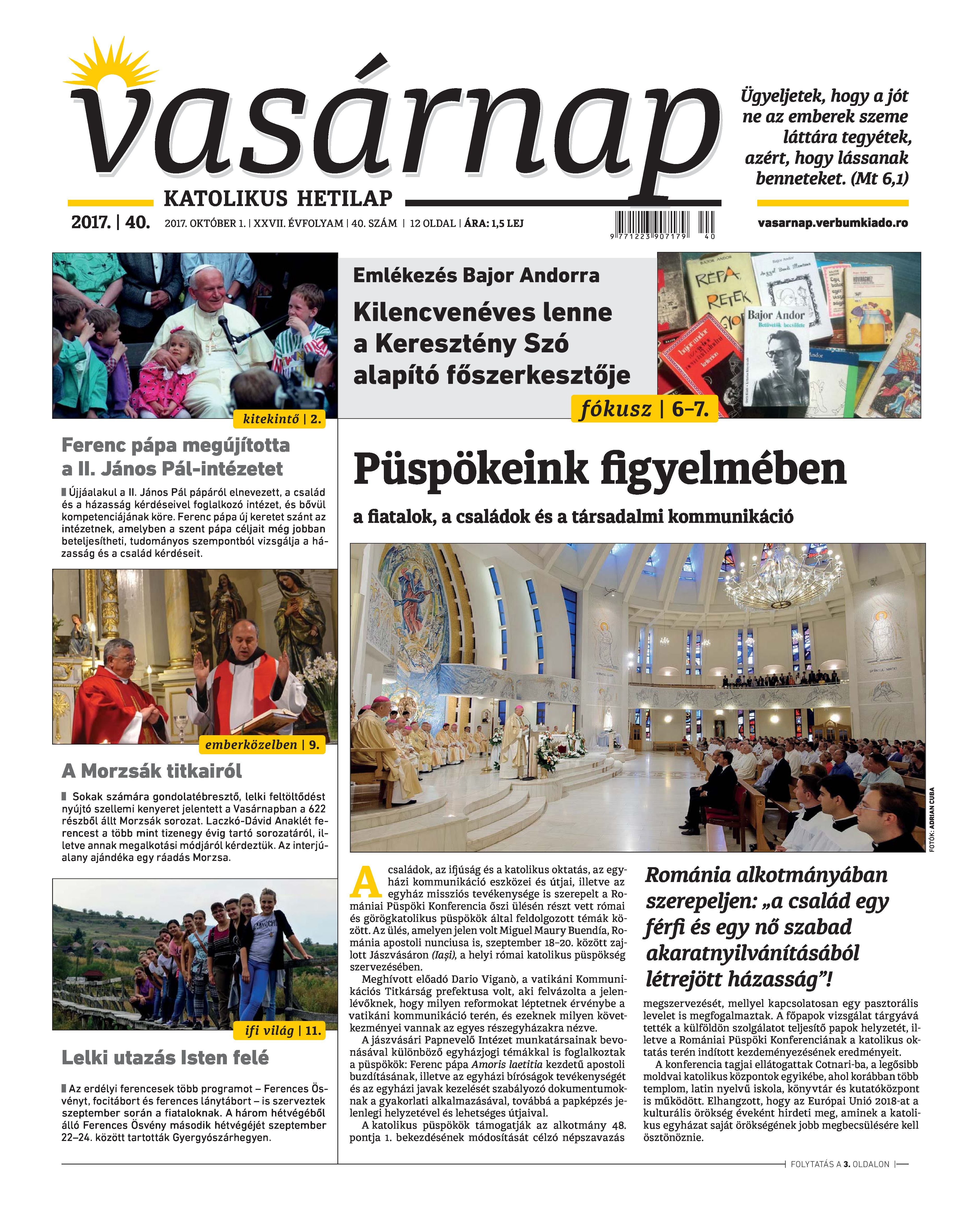 VASÁRNAP - 2017. OKTÓBER 1. A Vasárnap Katolikus Hetilap 2017. október 1. / XXVII. évf. / 40. számának digitális változata.