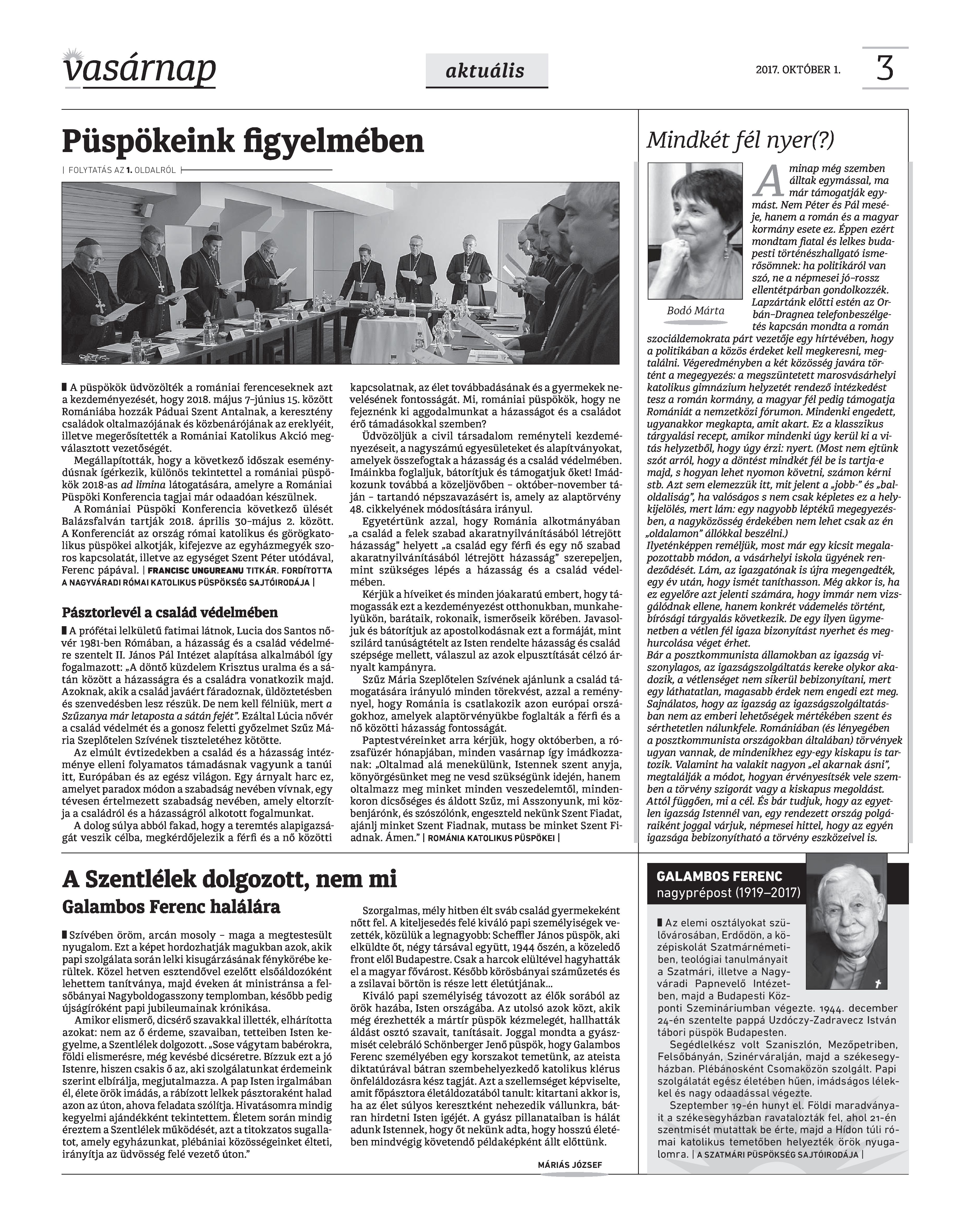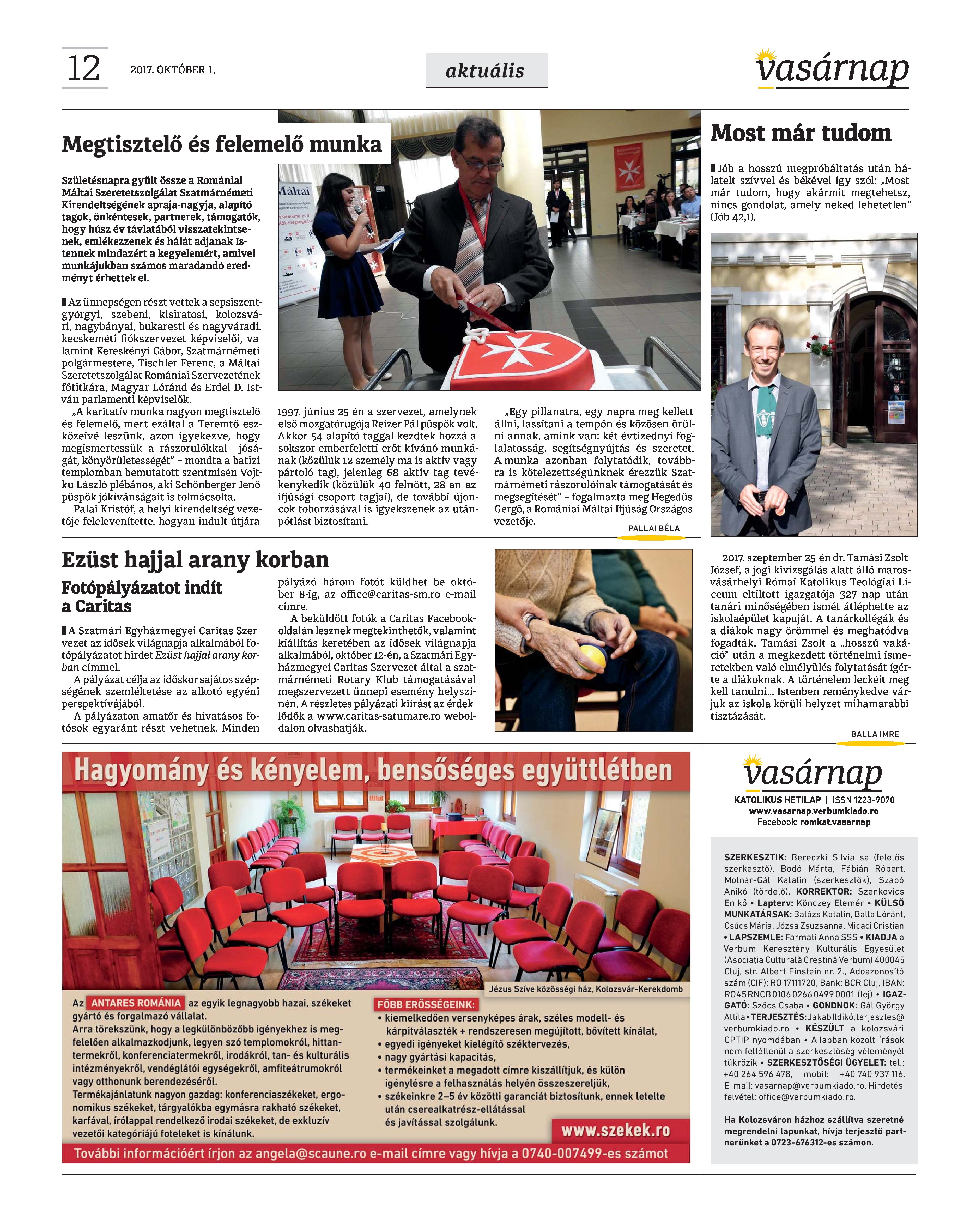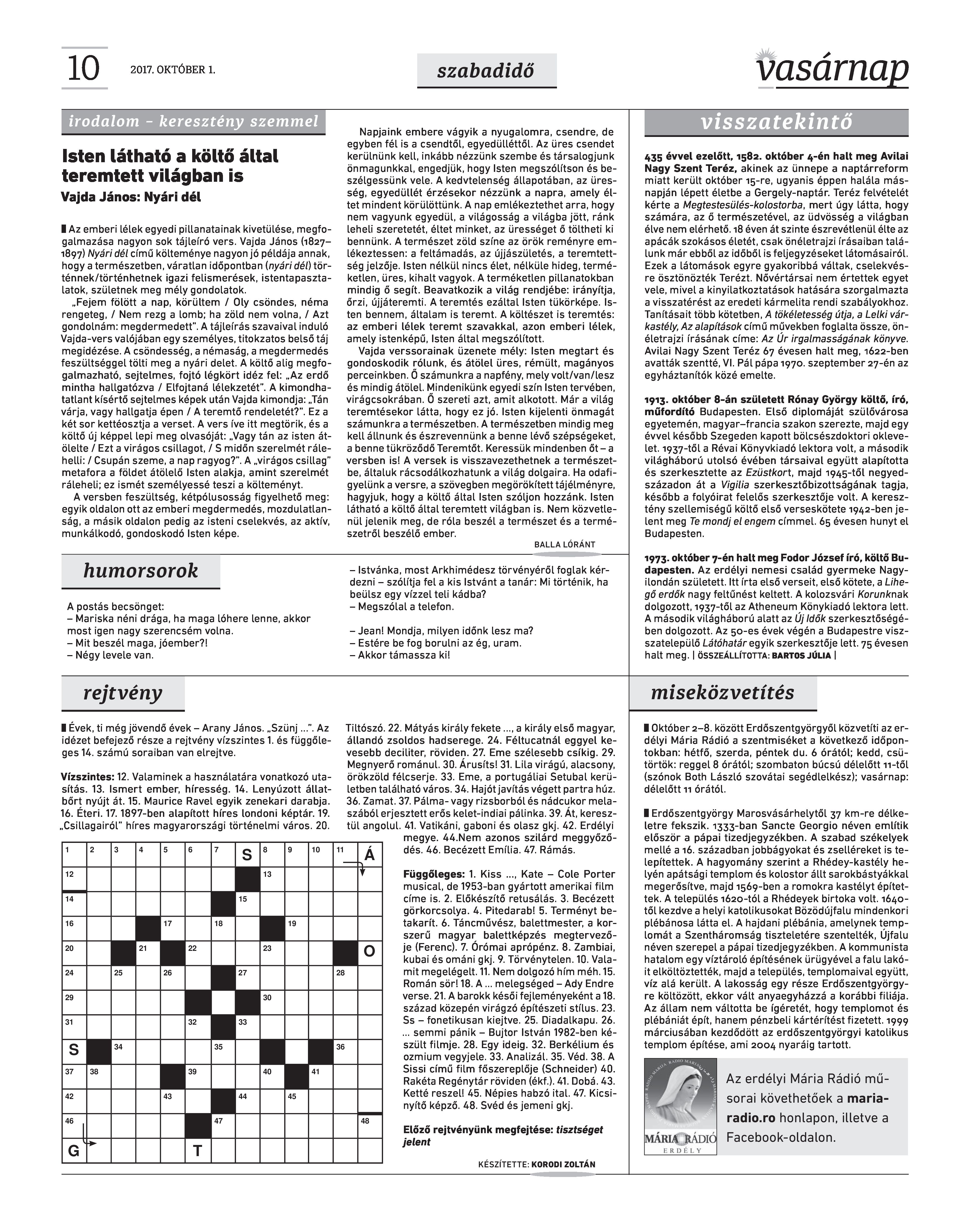VASÁRNAP - 2017. OKTÓBER 1. A Vasárnap Katolikus Hetilap 2017. október 1. / XXVII. évf. / 40. számának digitális változata.