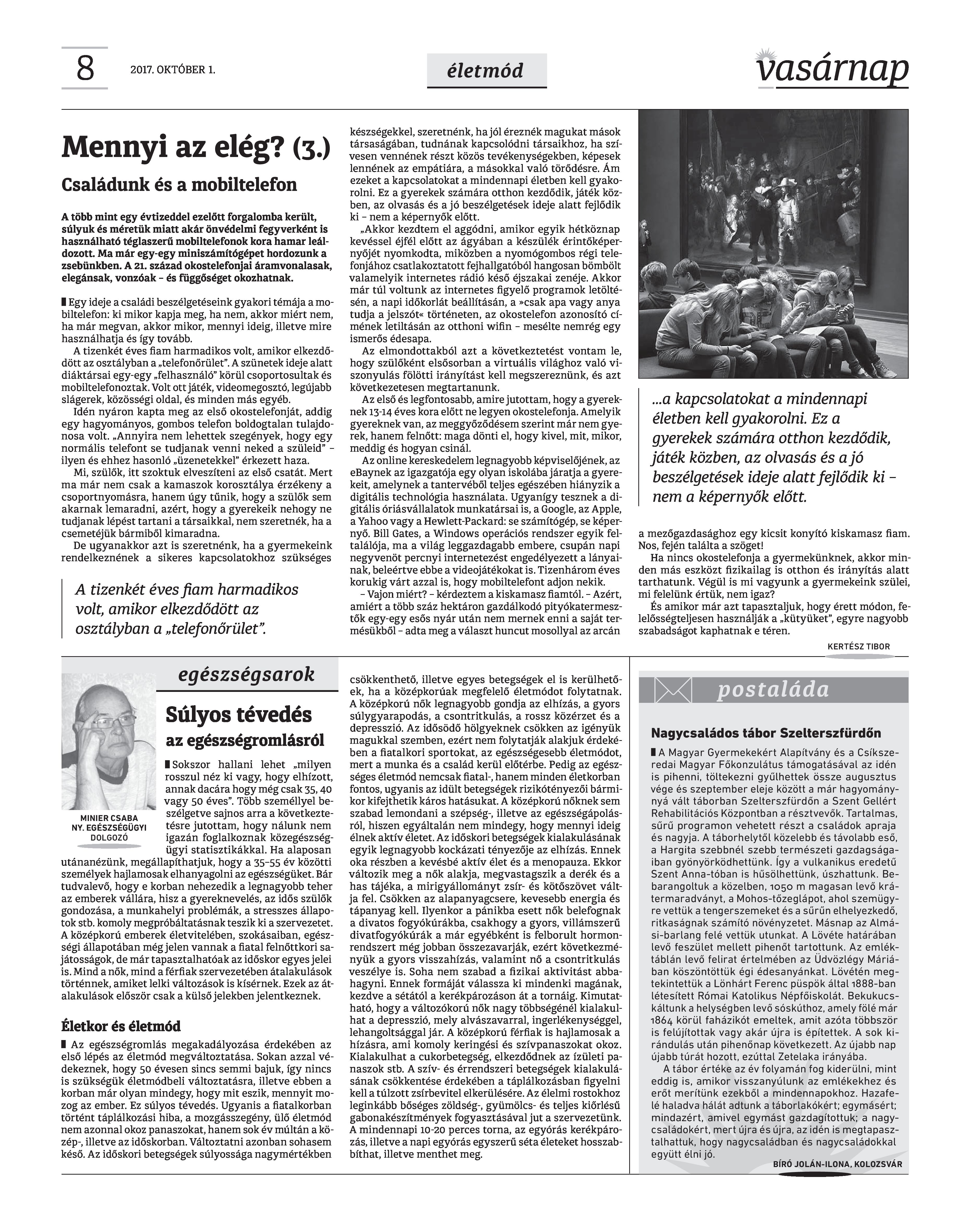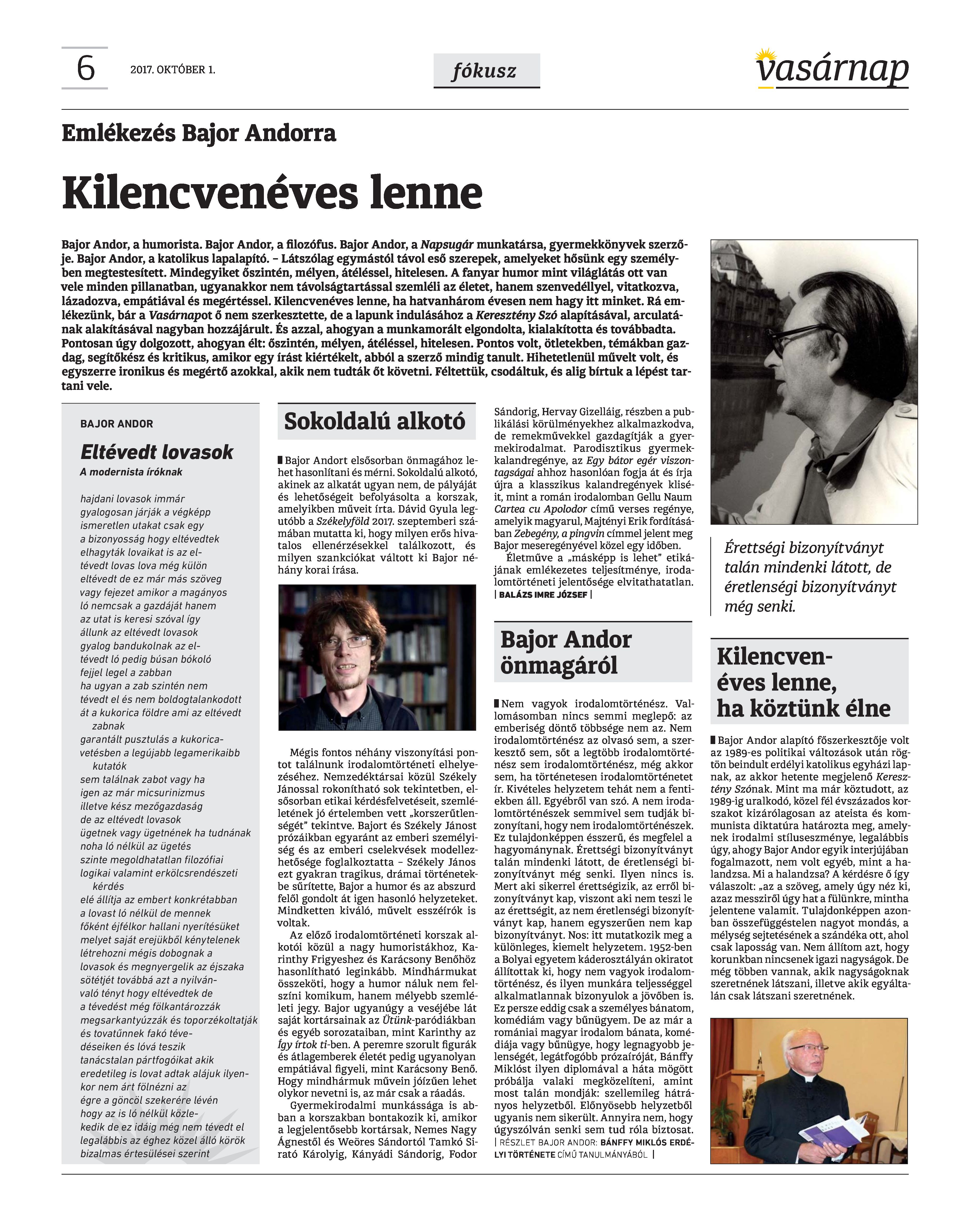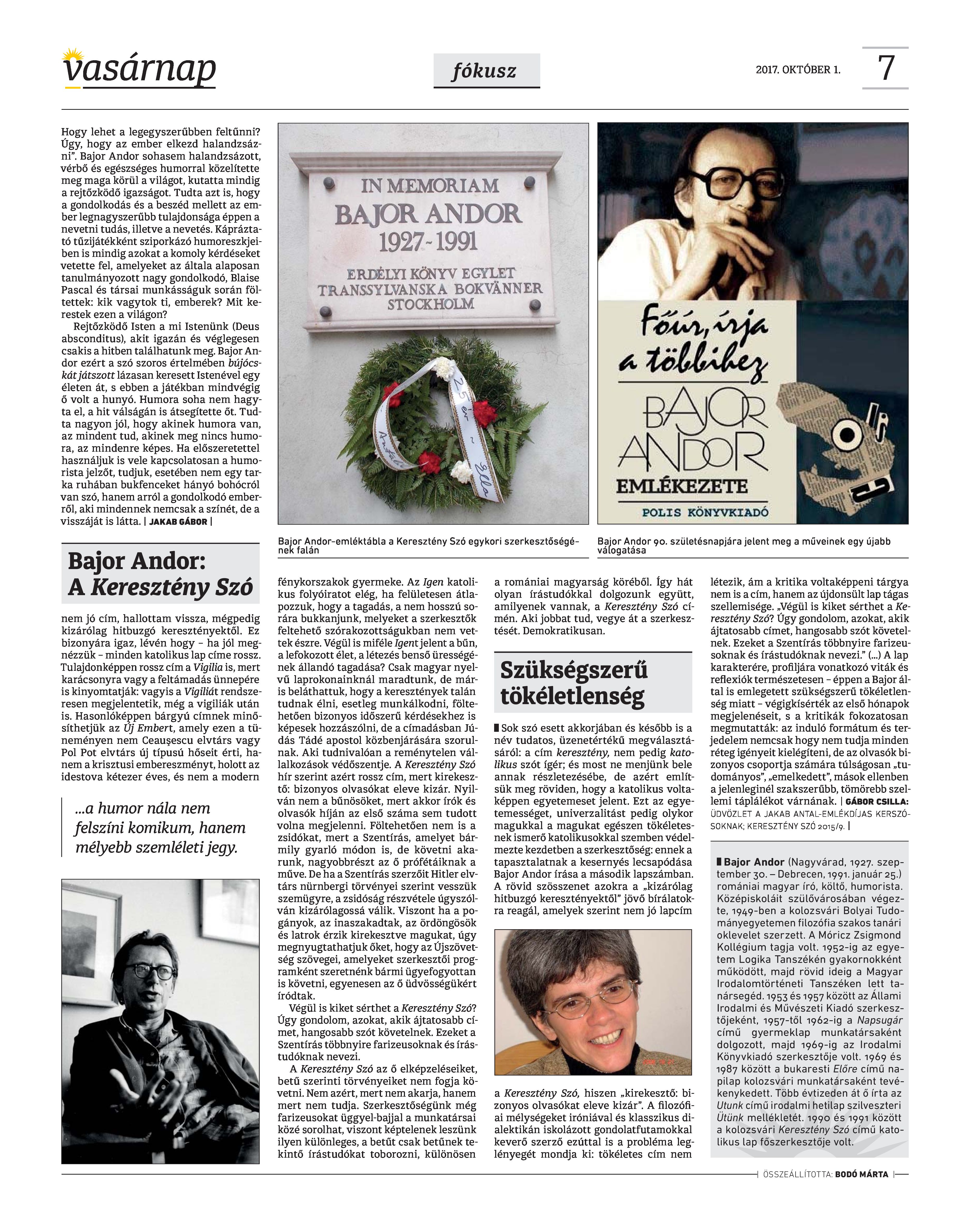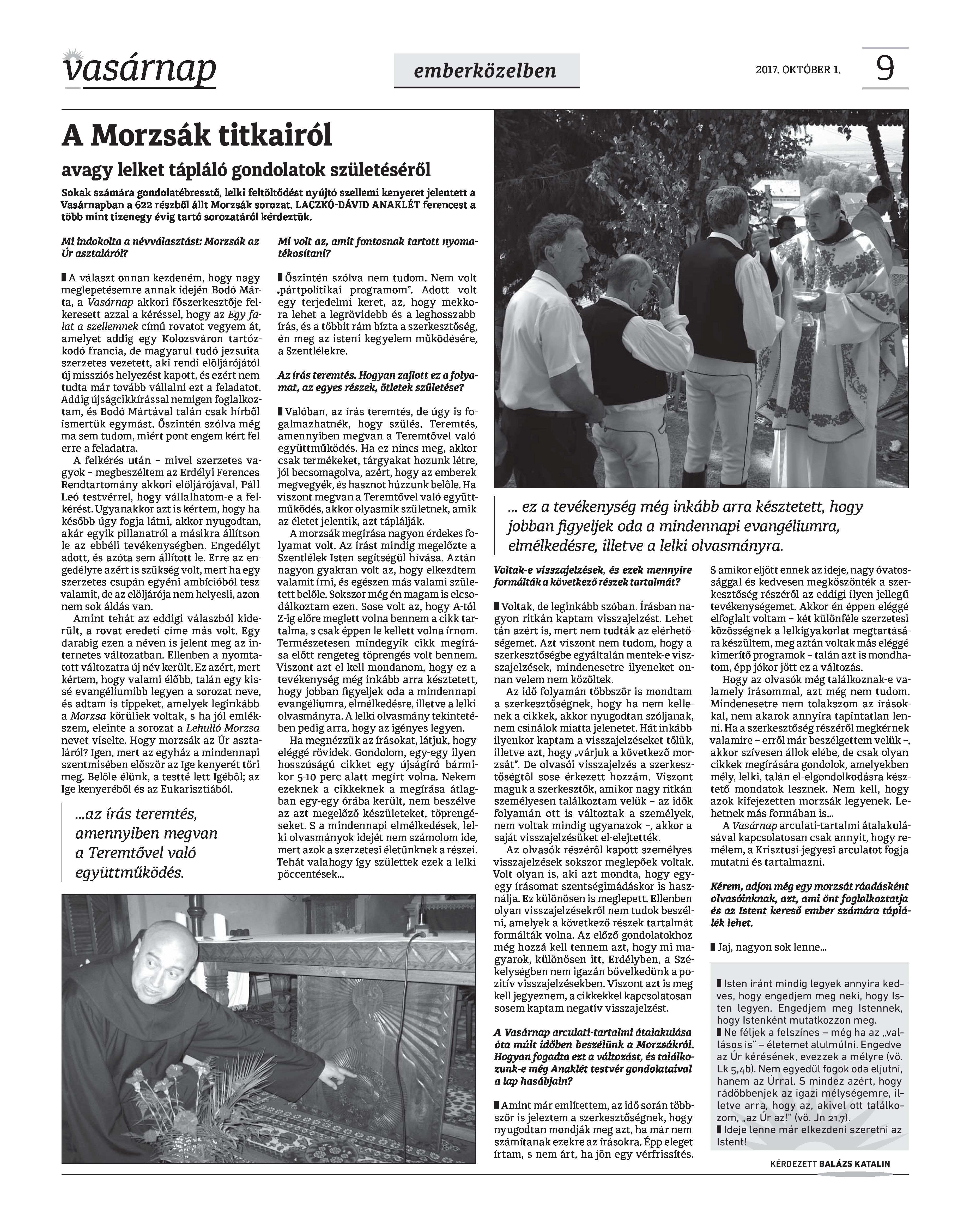 VASÁRNAP - 2017. OKTÓBER 1. A Vasárnap Katolikus Hetilap 2017. október 1. / XXVII. évf. / 40. számának digitális változata.