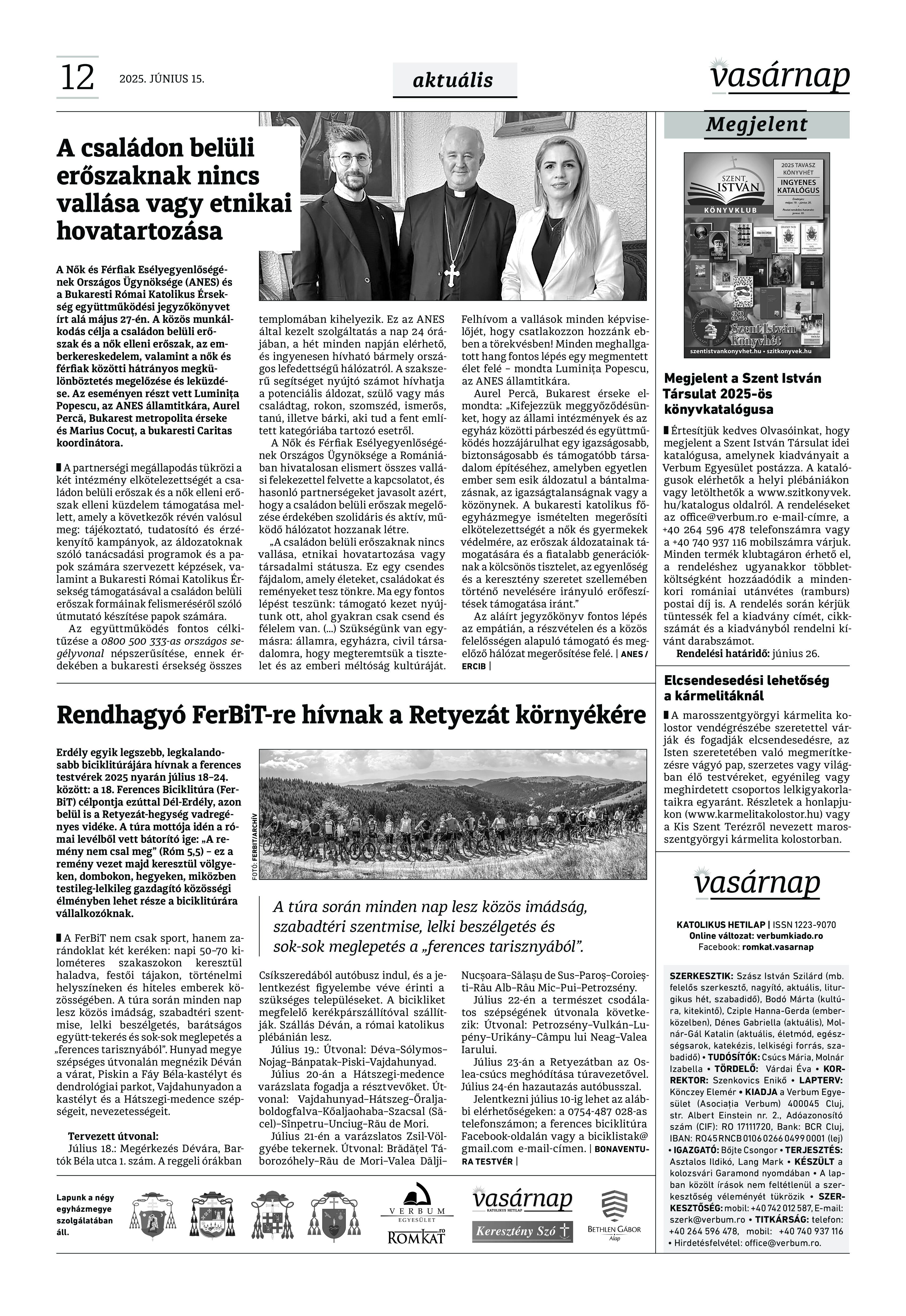 VASÁRNAP - 2025. június 15. A Vasárnap Katolikus Hetilap 2025. június 15. / XXXV évf. / 24. számának digitális változata. 1 / 12 2 & 3 / 12 4 & 5 / 12 6 & 7 / 12 8 & 9 / 12 10 & 11 / 12 12 / 12
