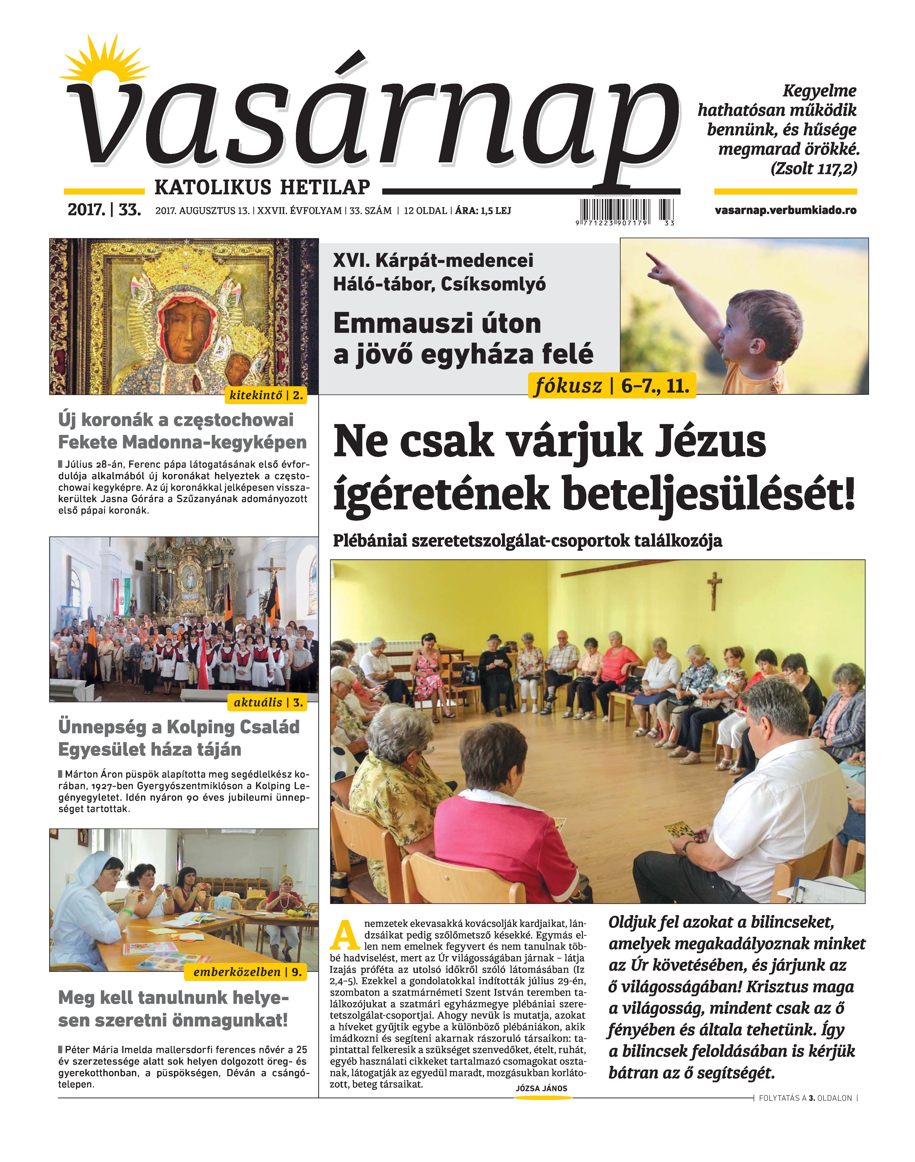 VASÁRNAP - 2017. AUGUSZTUS 13. A Vasárnap Katolikus Hetilap 2017. augusztus 13. / XXVII. évf. / 33. számának digitális változata. 1 / 12 2 & 3 / 12 4 & 5 / 12 6 & 7 / 12 8 & 9 / 12 10 & 11 / 12 12 / 12