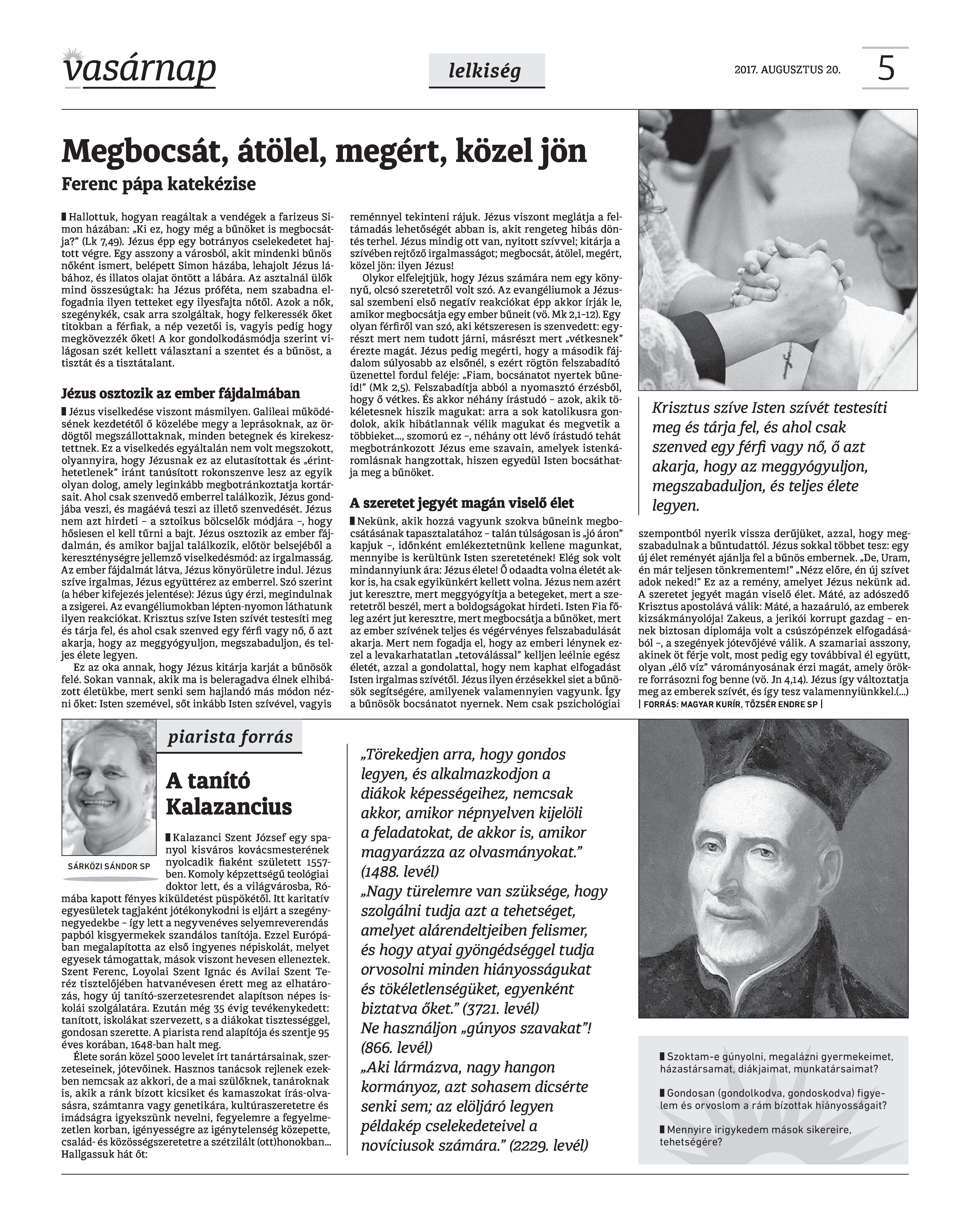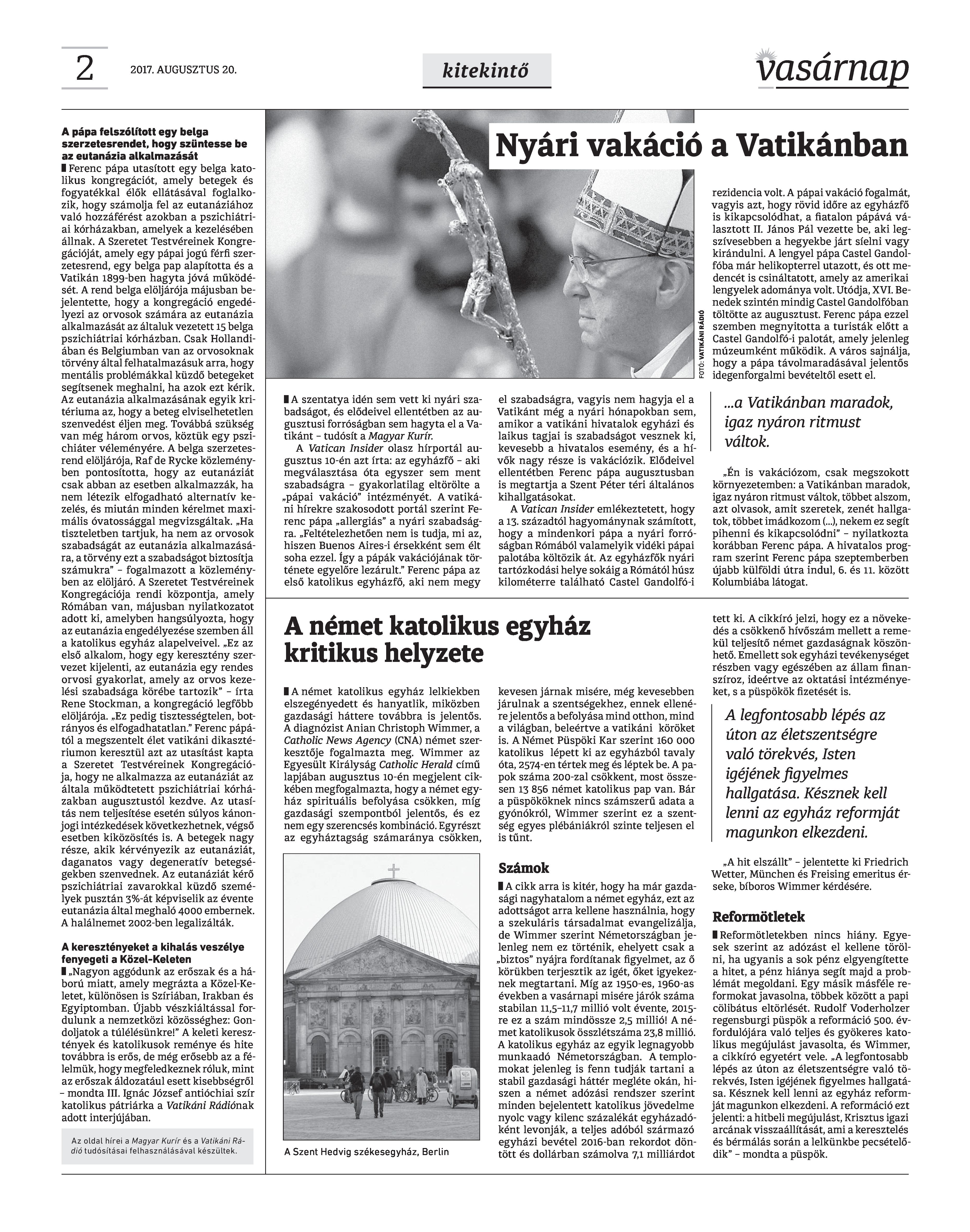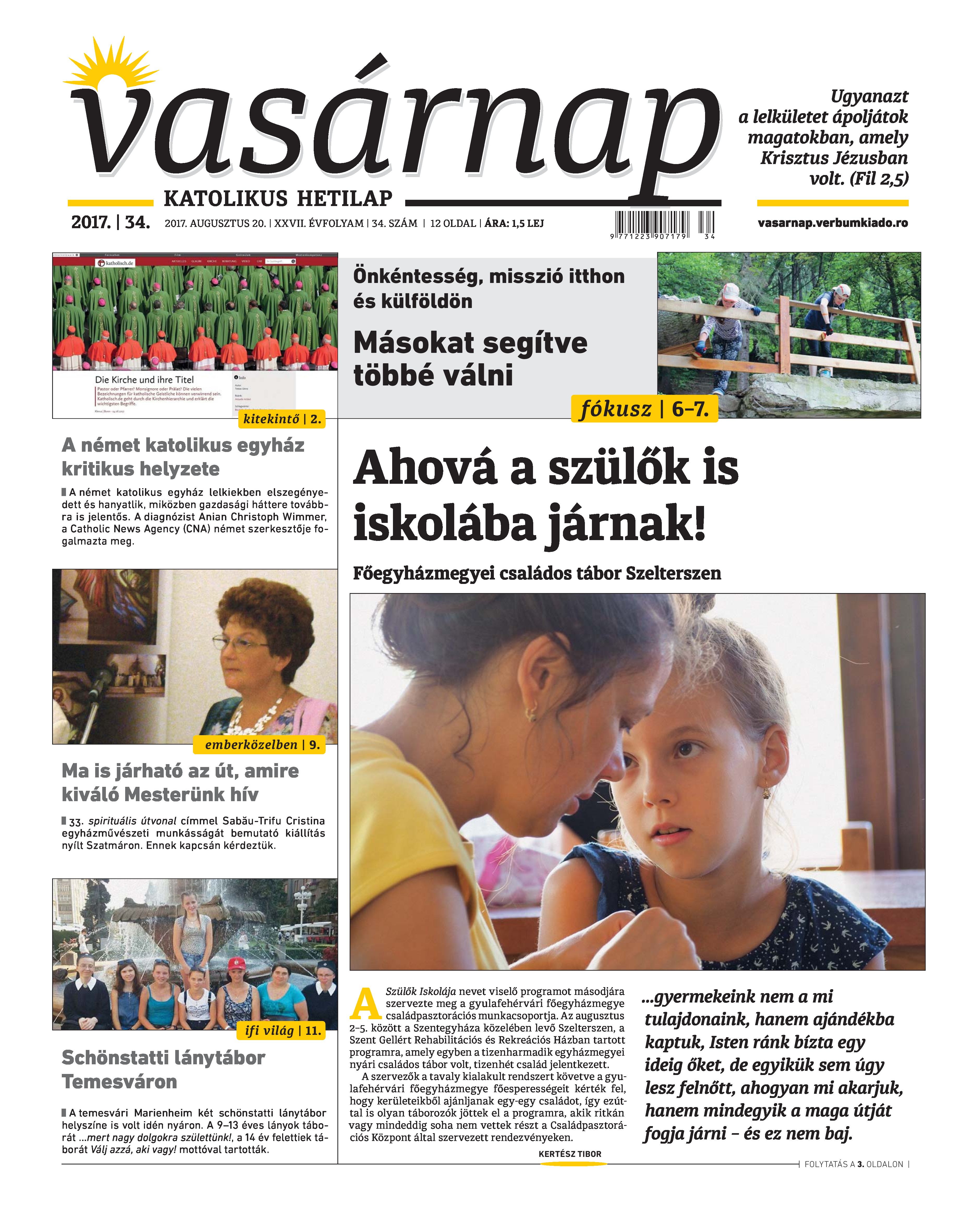 VASÁRNAP - 2017. AUGUSZTUS 20. A Vasárnap Katolikus Hetilap 2017. augusztus 20. / XXVII. évf. / 34. számának digitális változata. 1 / 12 2 & 3 / 12 4 & 5 / 12 6 & 7 / 12 8 & 9 / 12 10 & 11 / 12 12 / 12
