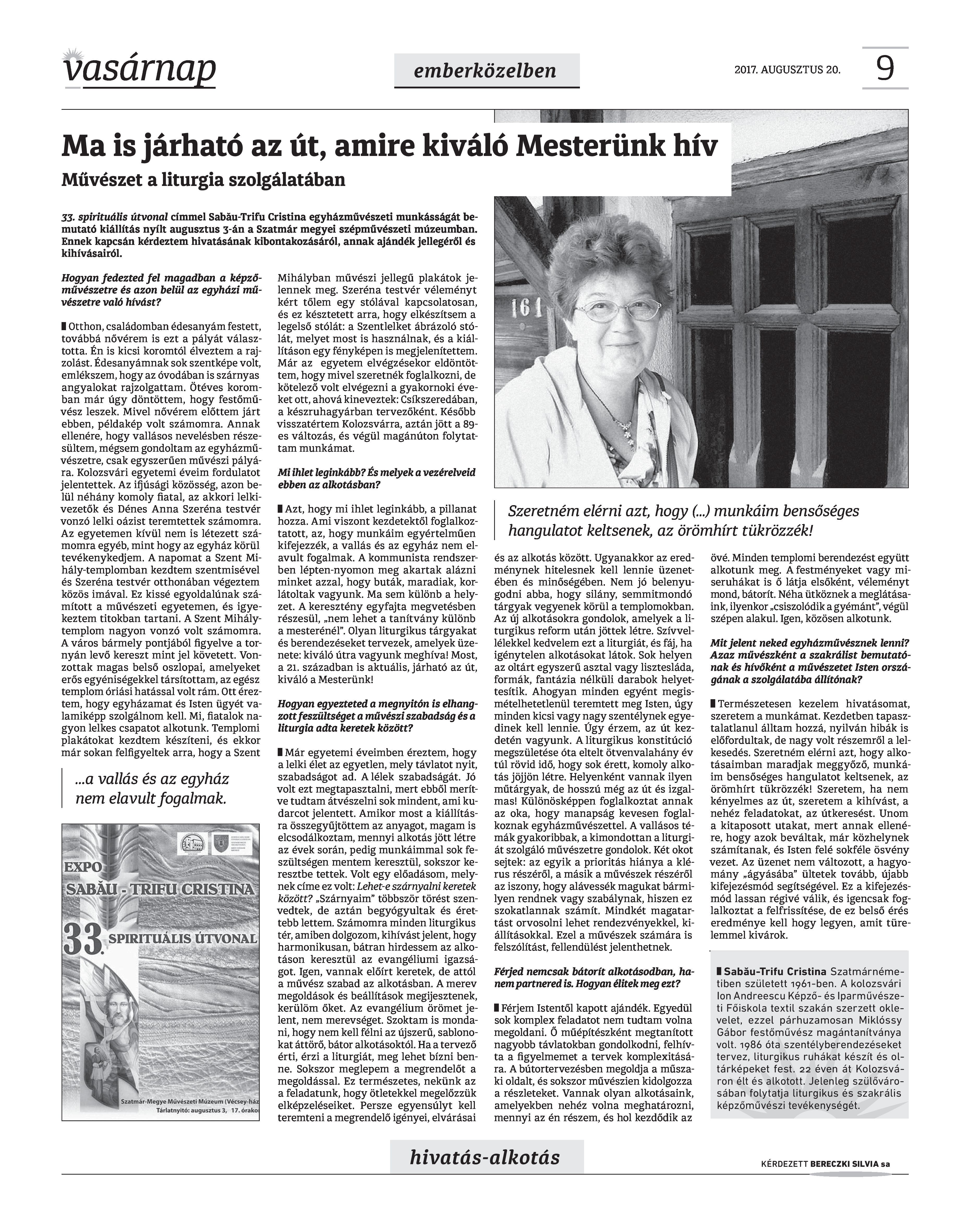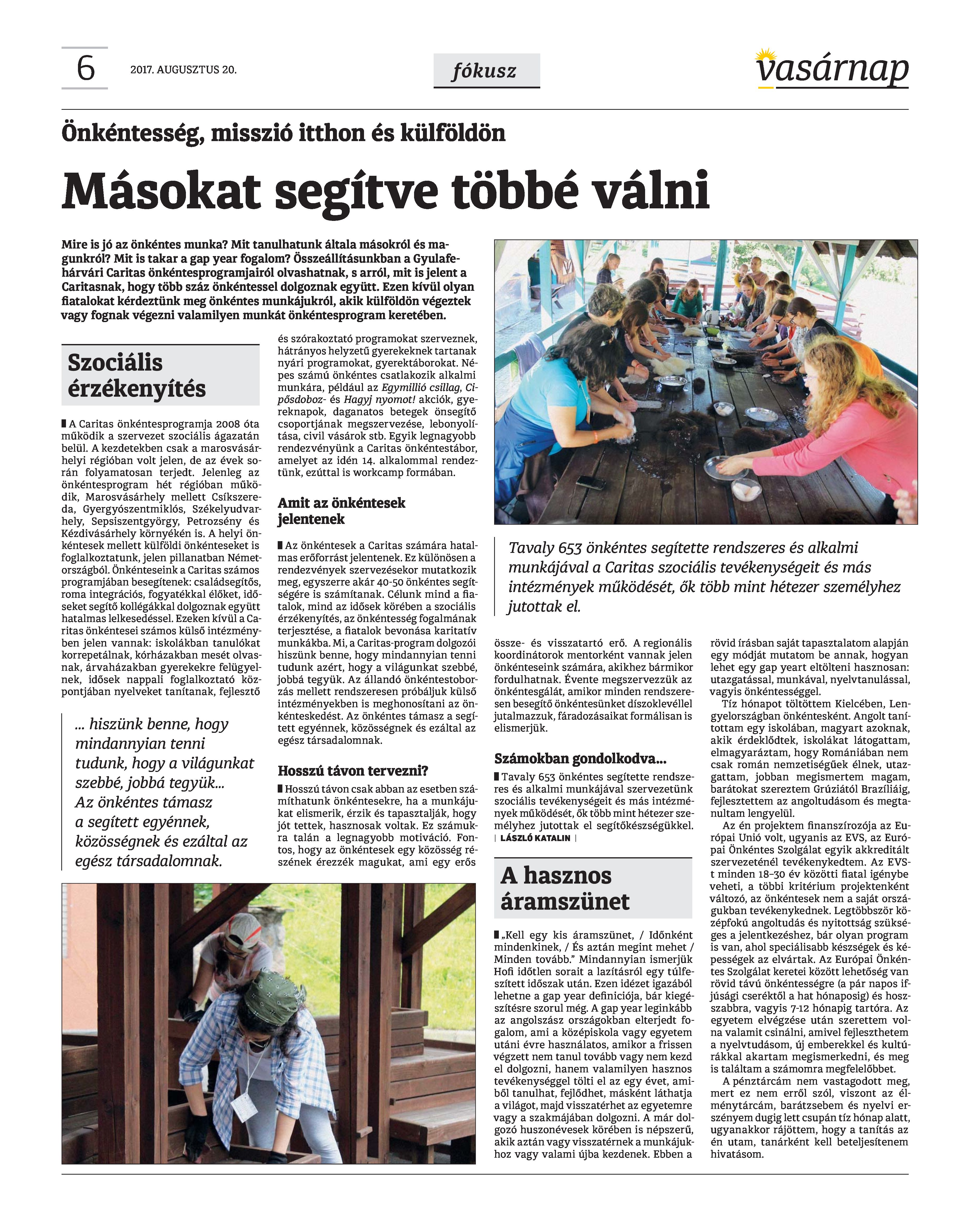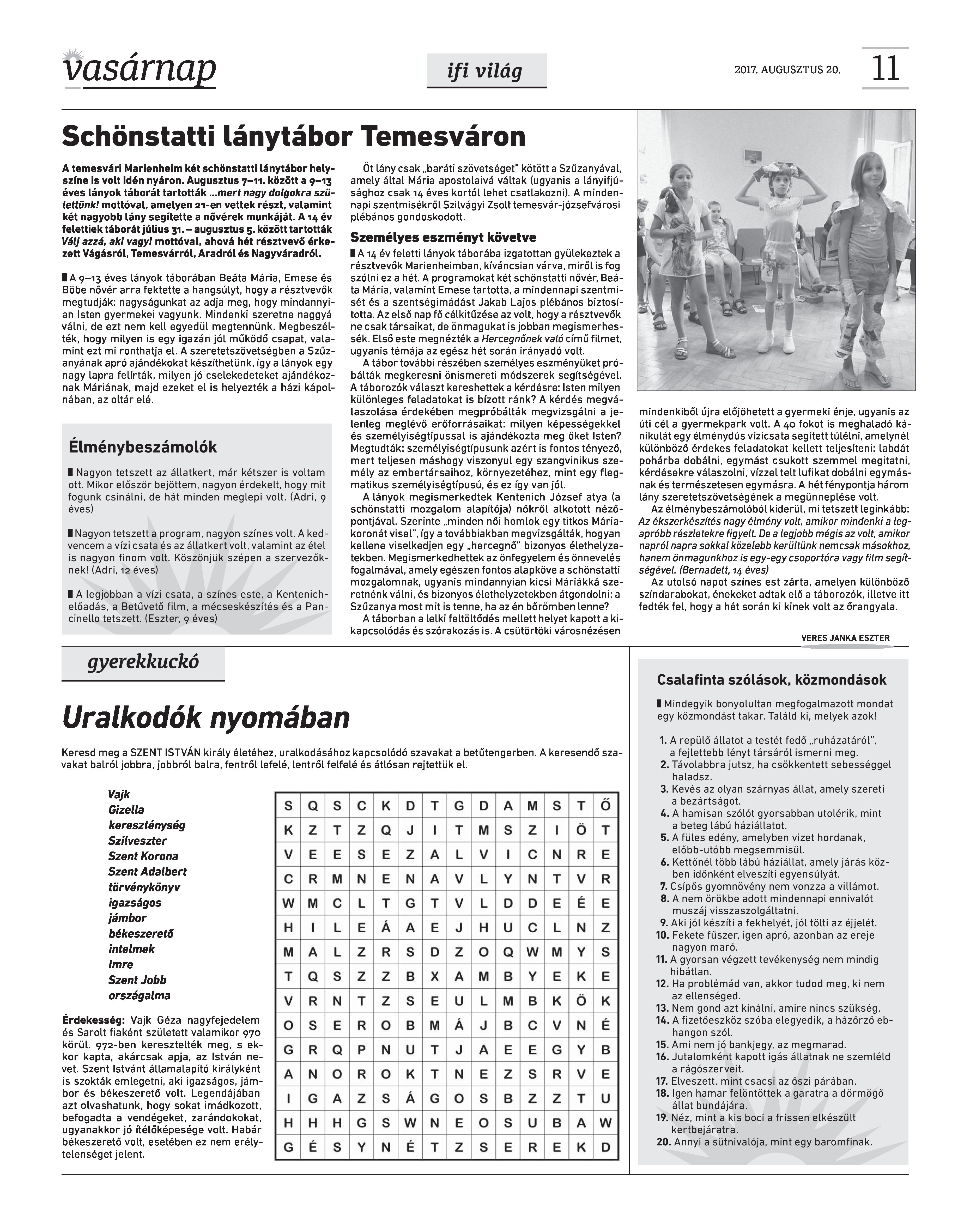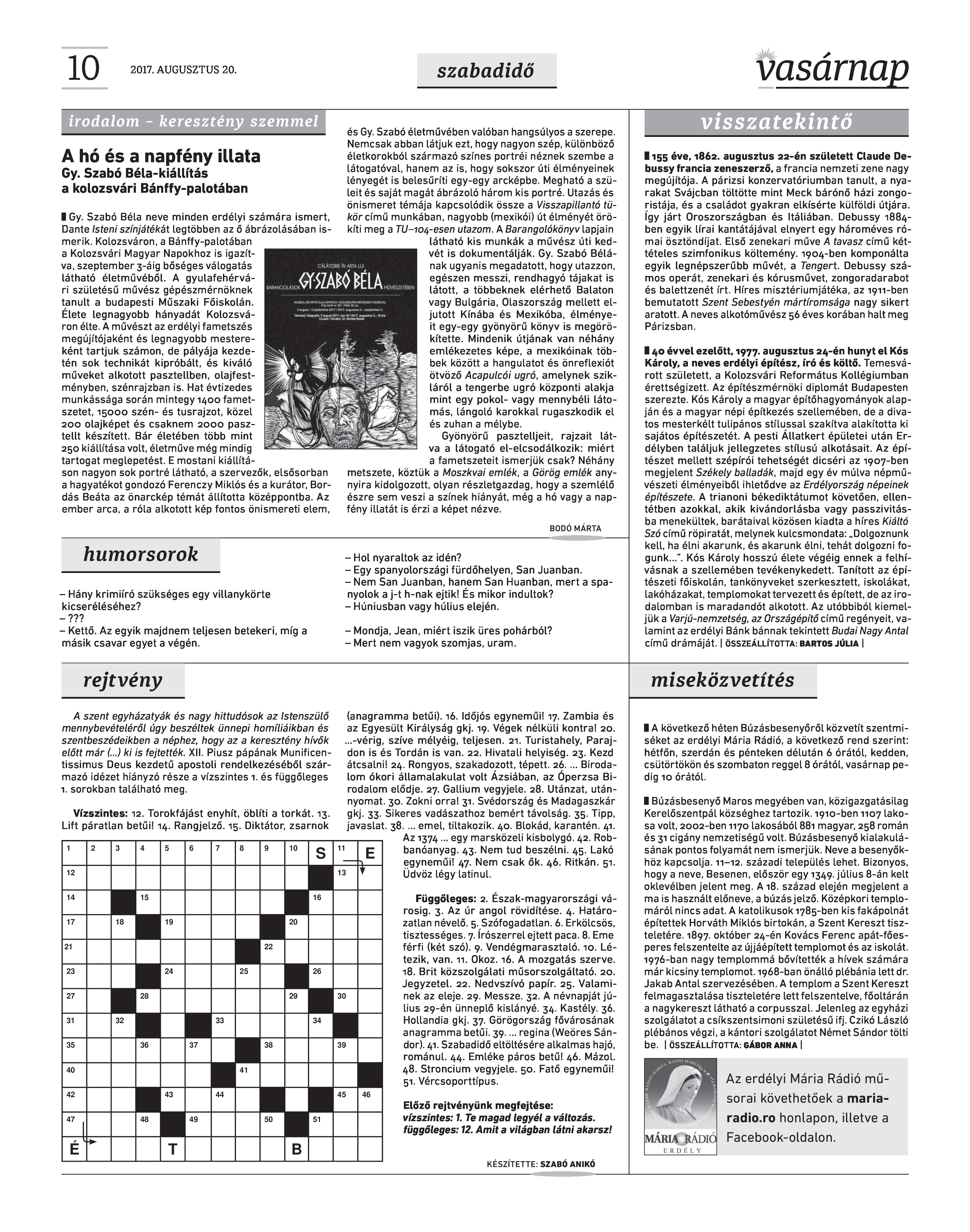 VASÁRNAP - 2017. AUGUSZTUS 20. A Vasárnap Katolikus Hetilap 2017. augusztus 20. / XXVII. évf. / 34. számának digitális változata. 1 / 12 2 & 3 / 12 4 & 5 / 12 6 & 7 / 12 8 & 9 / 12 10 & 11 / 12 12 / 12
