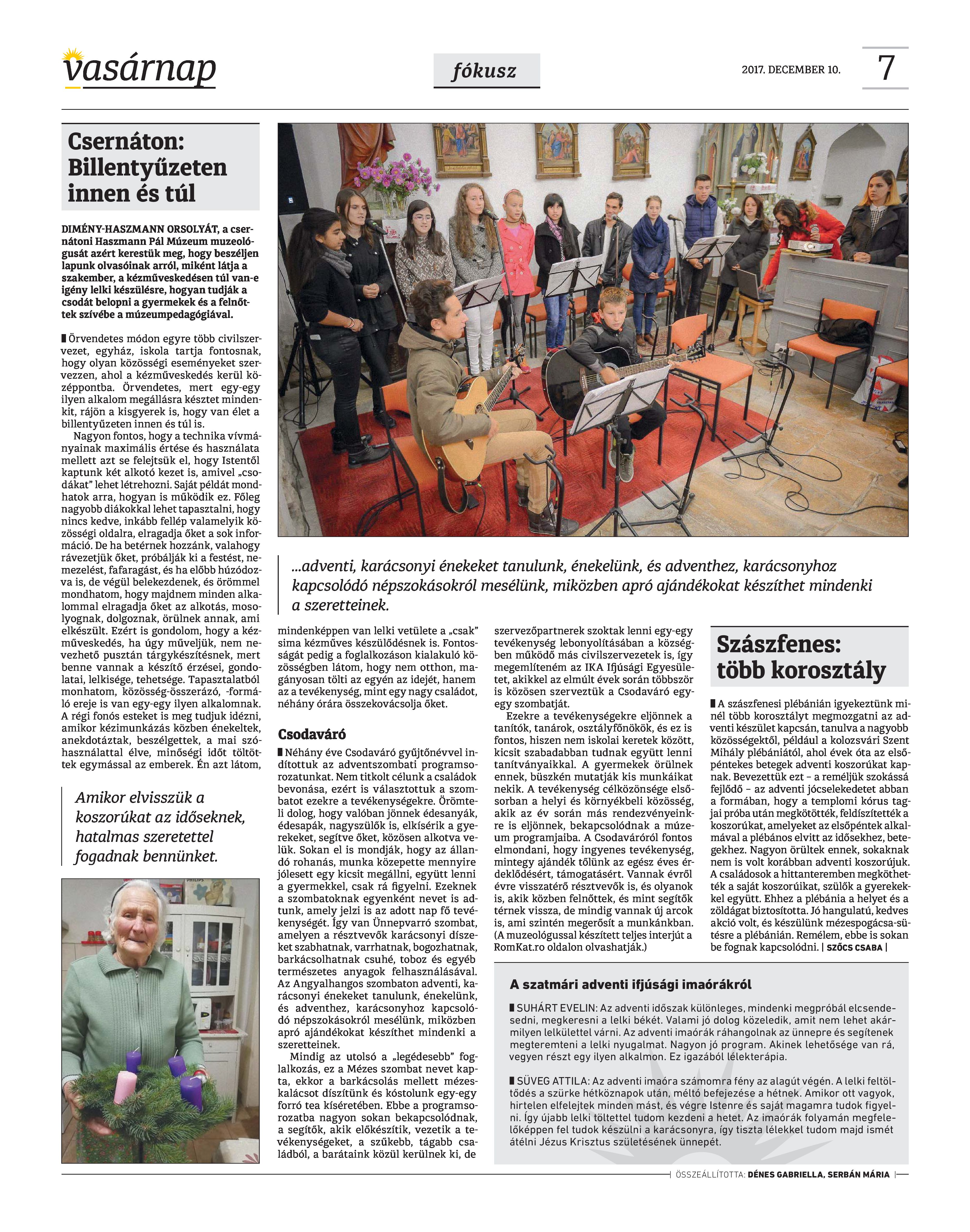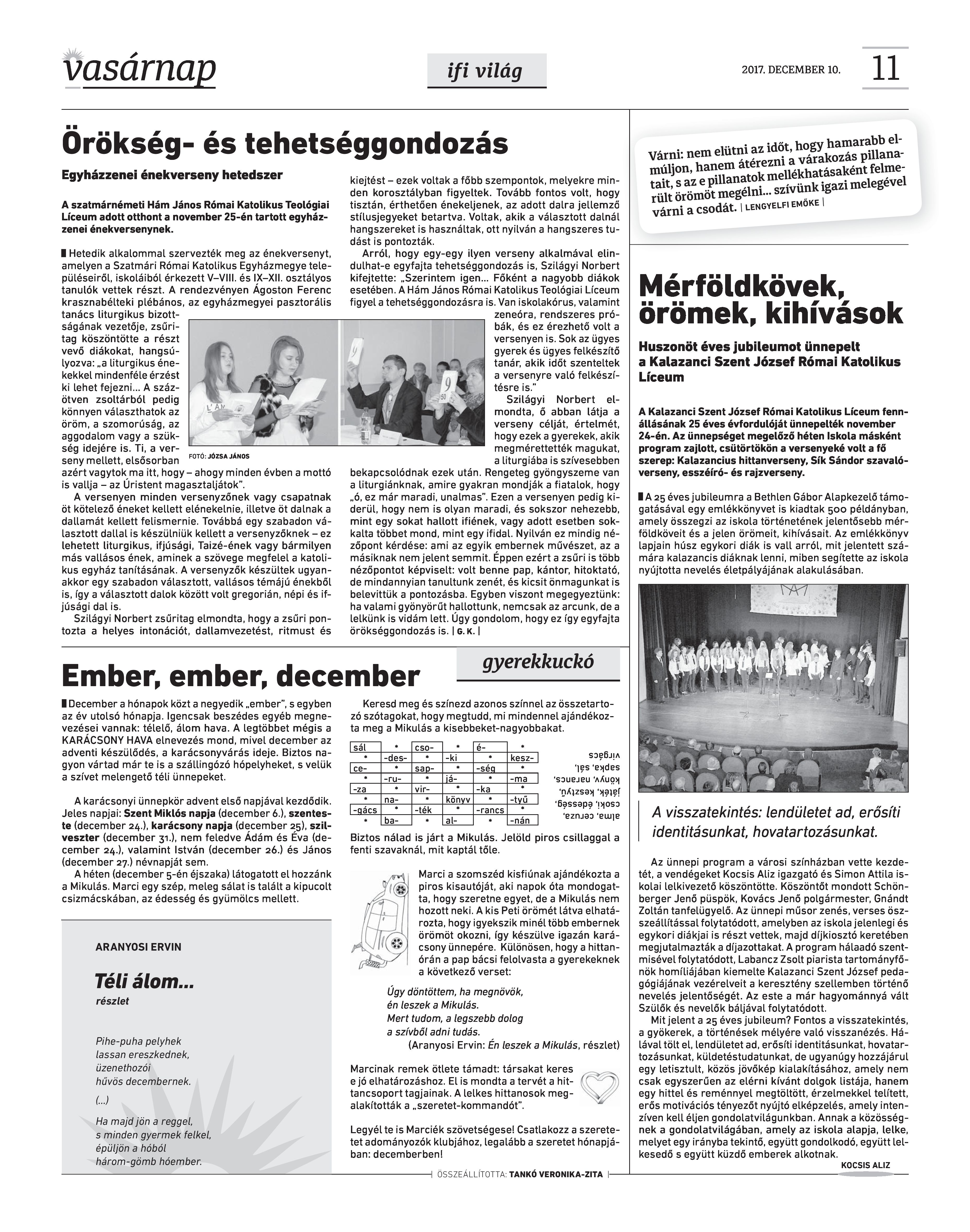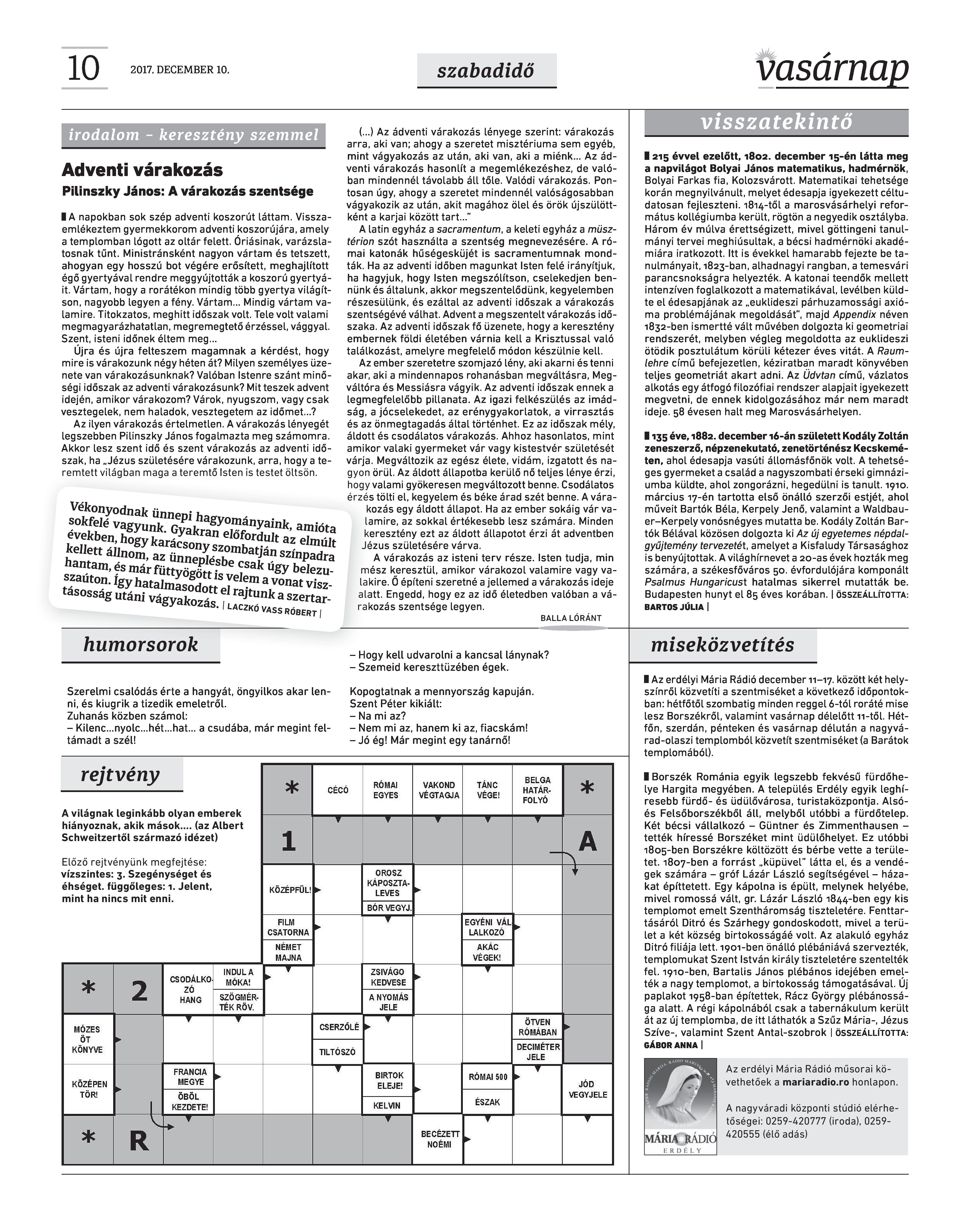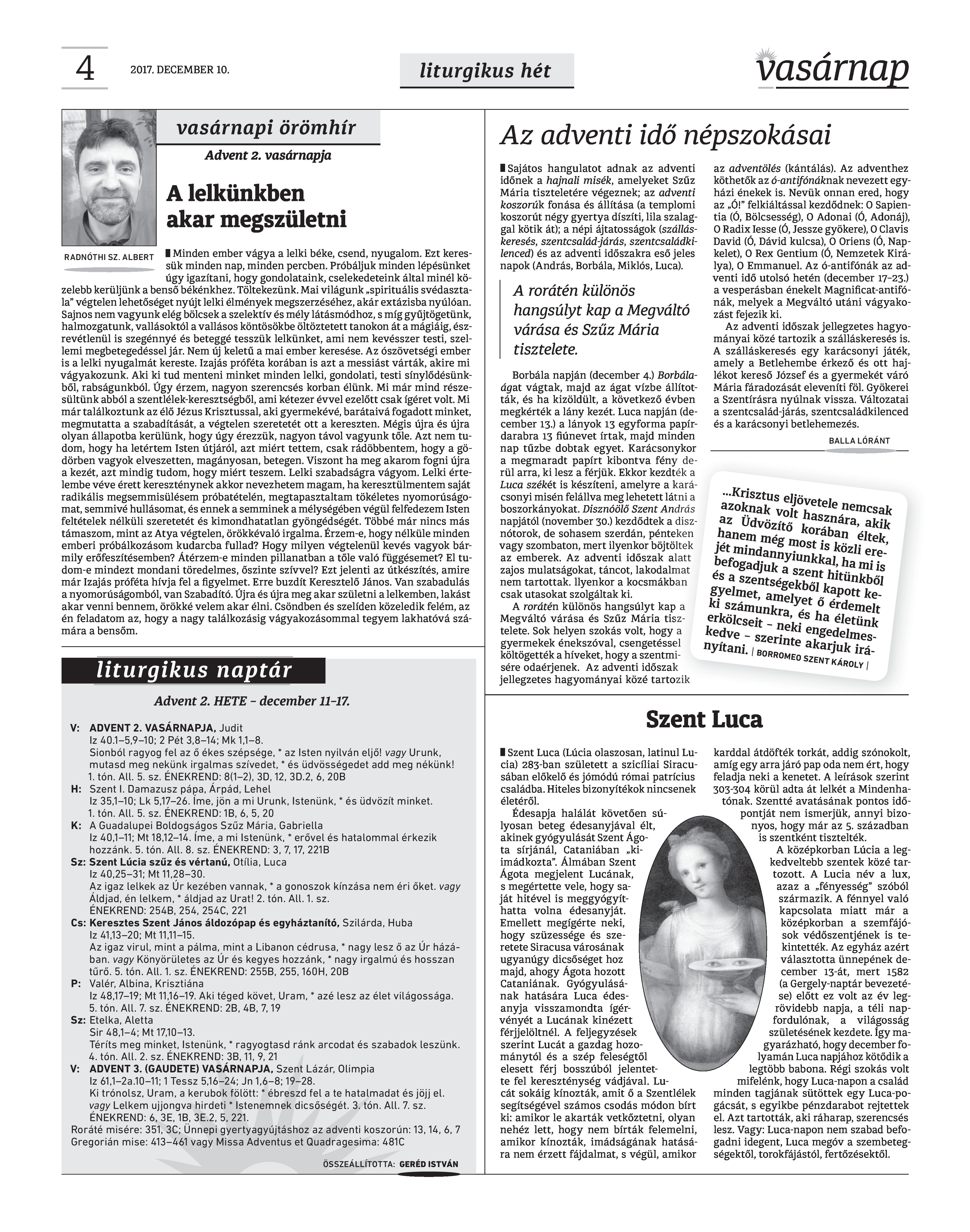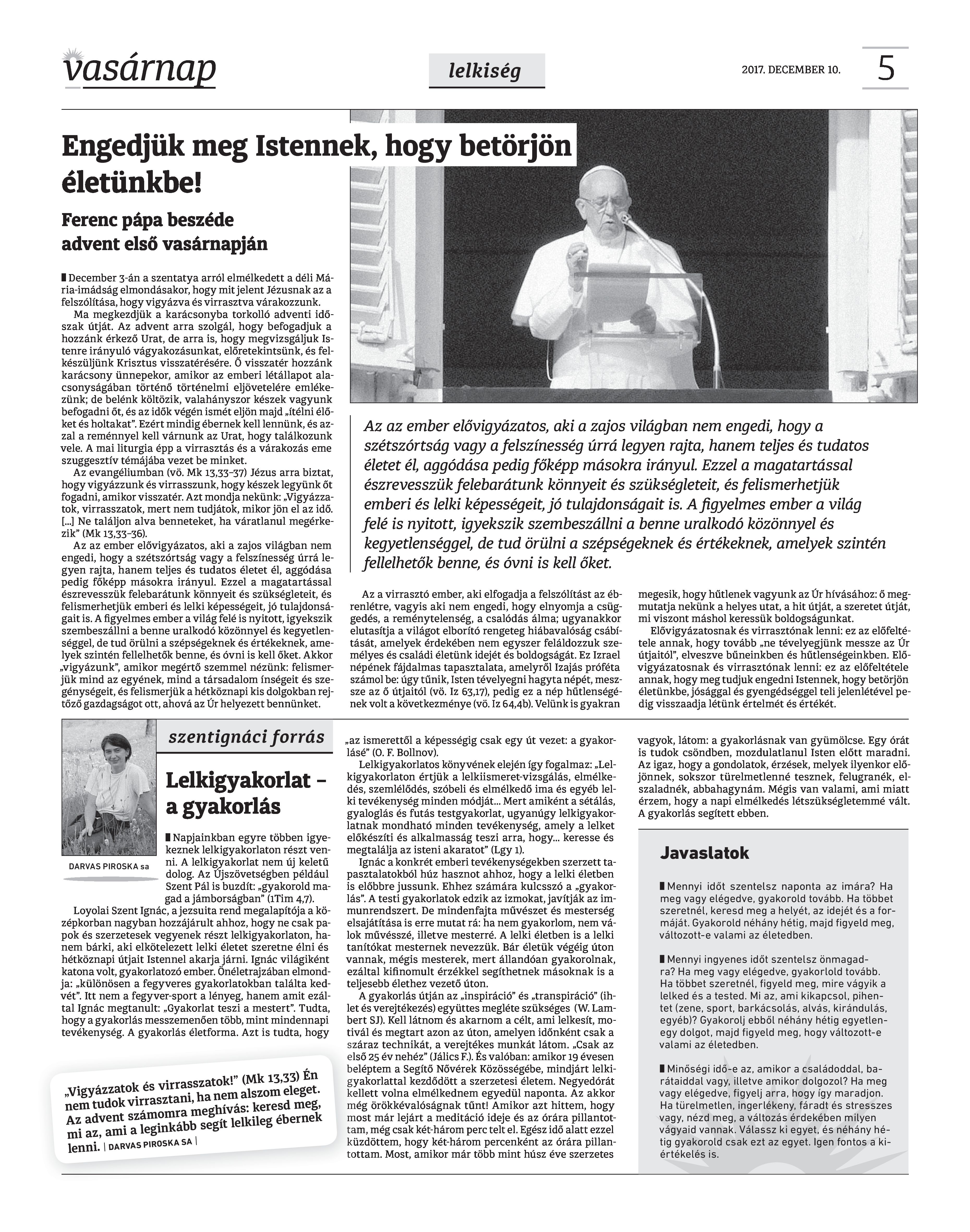 Vasárnap Katolikus Hetilap 2017. december 10. / XXVII. évf. / 50. számának digitális változata.