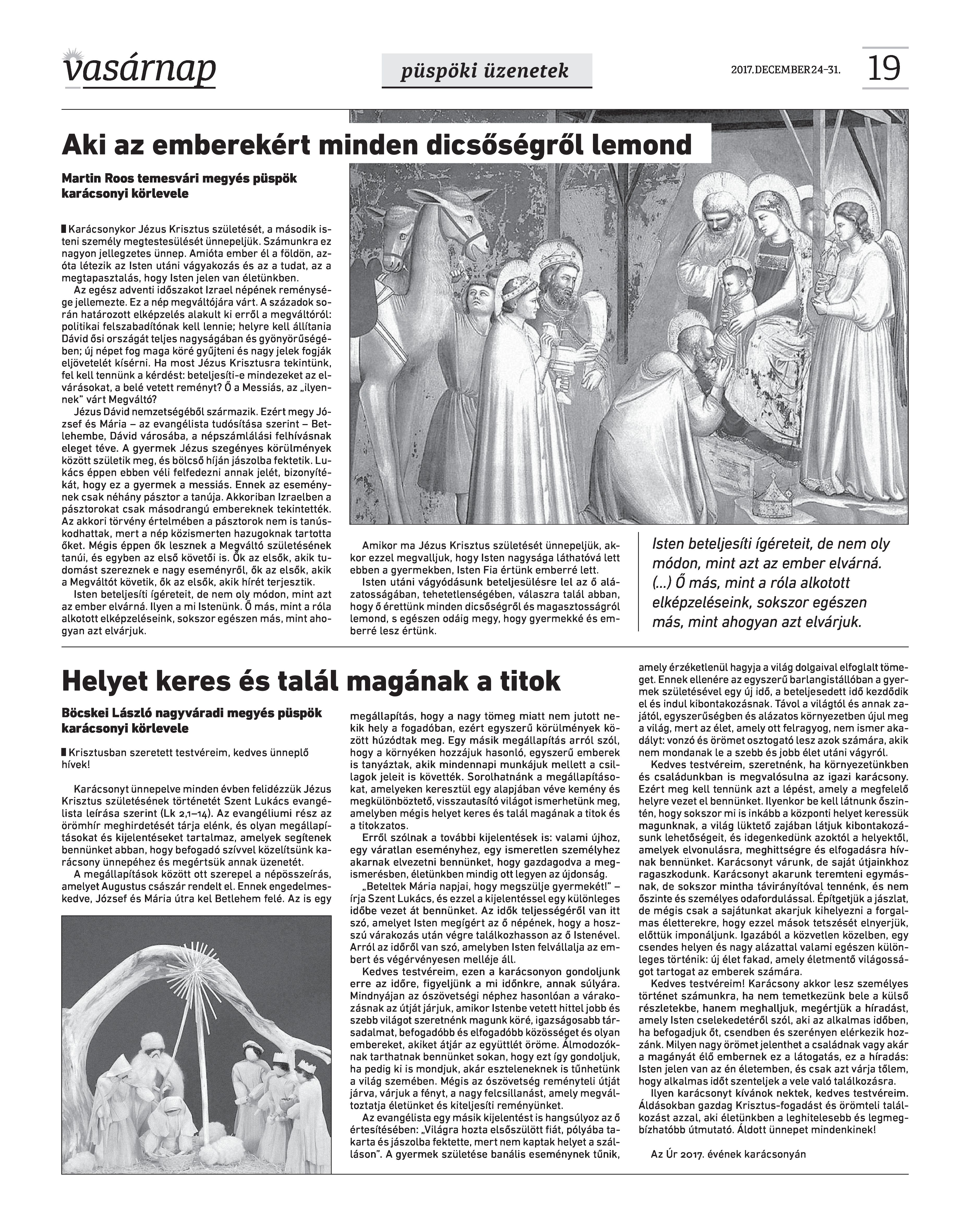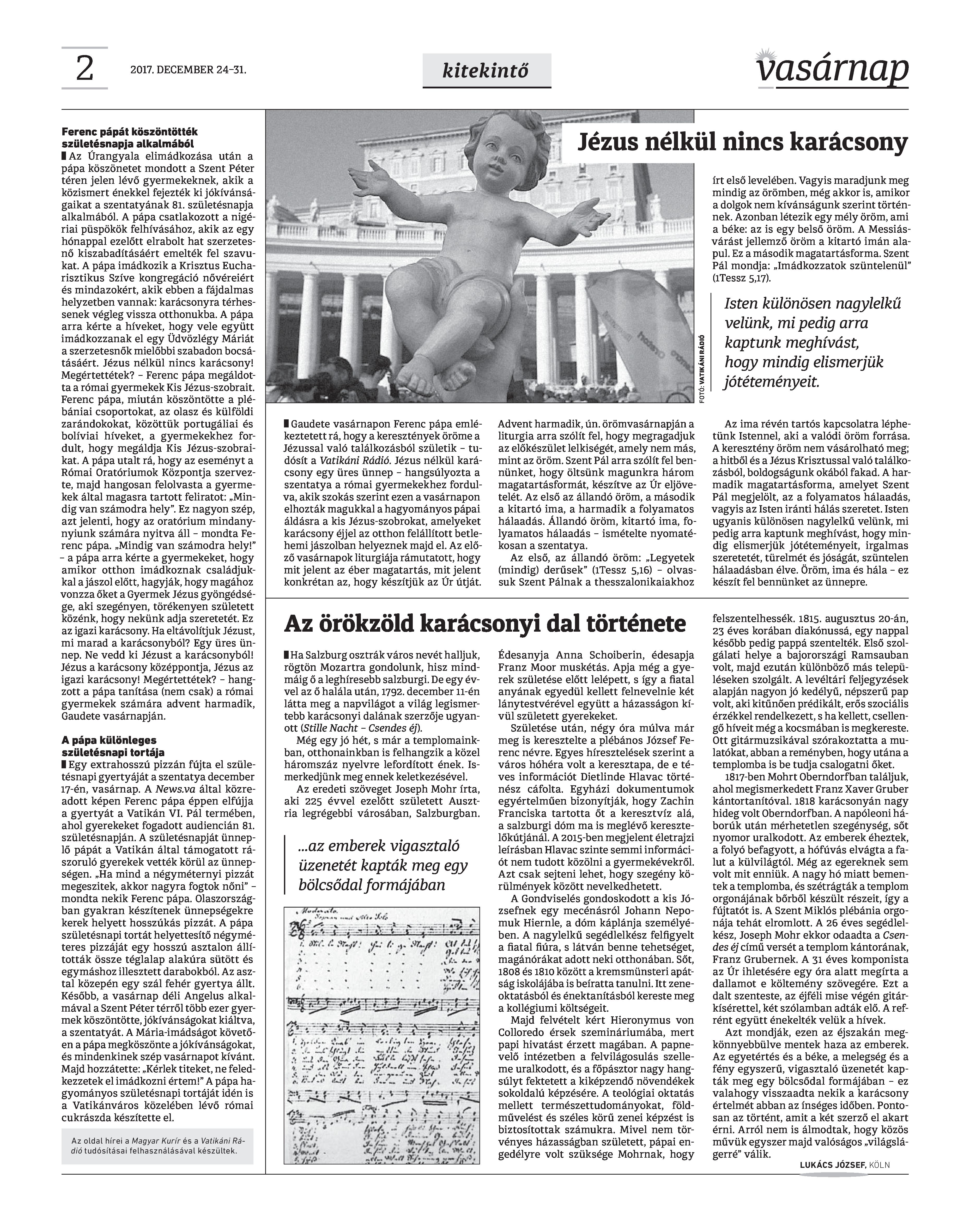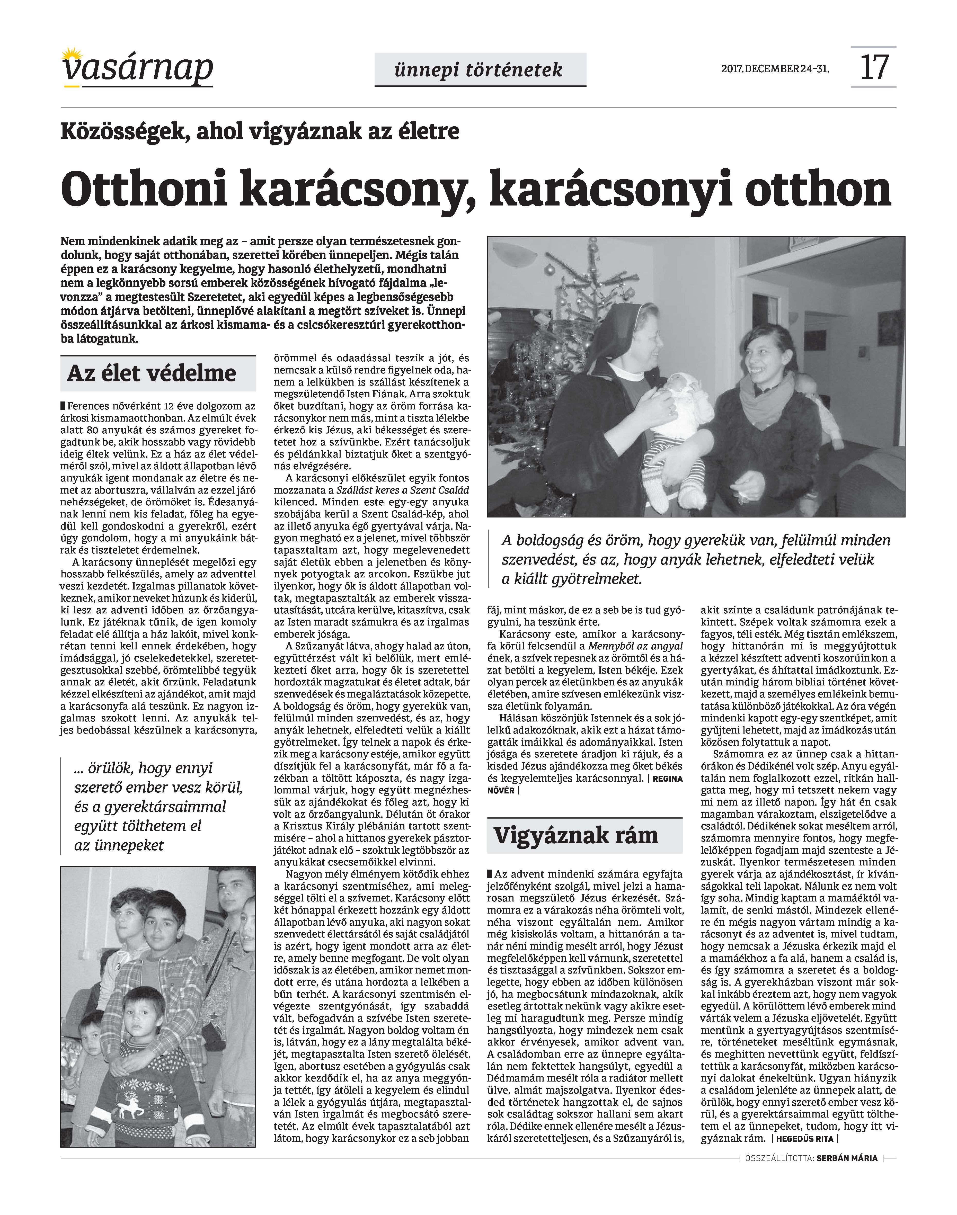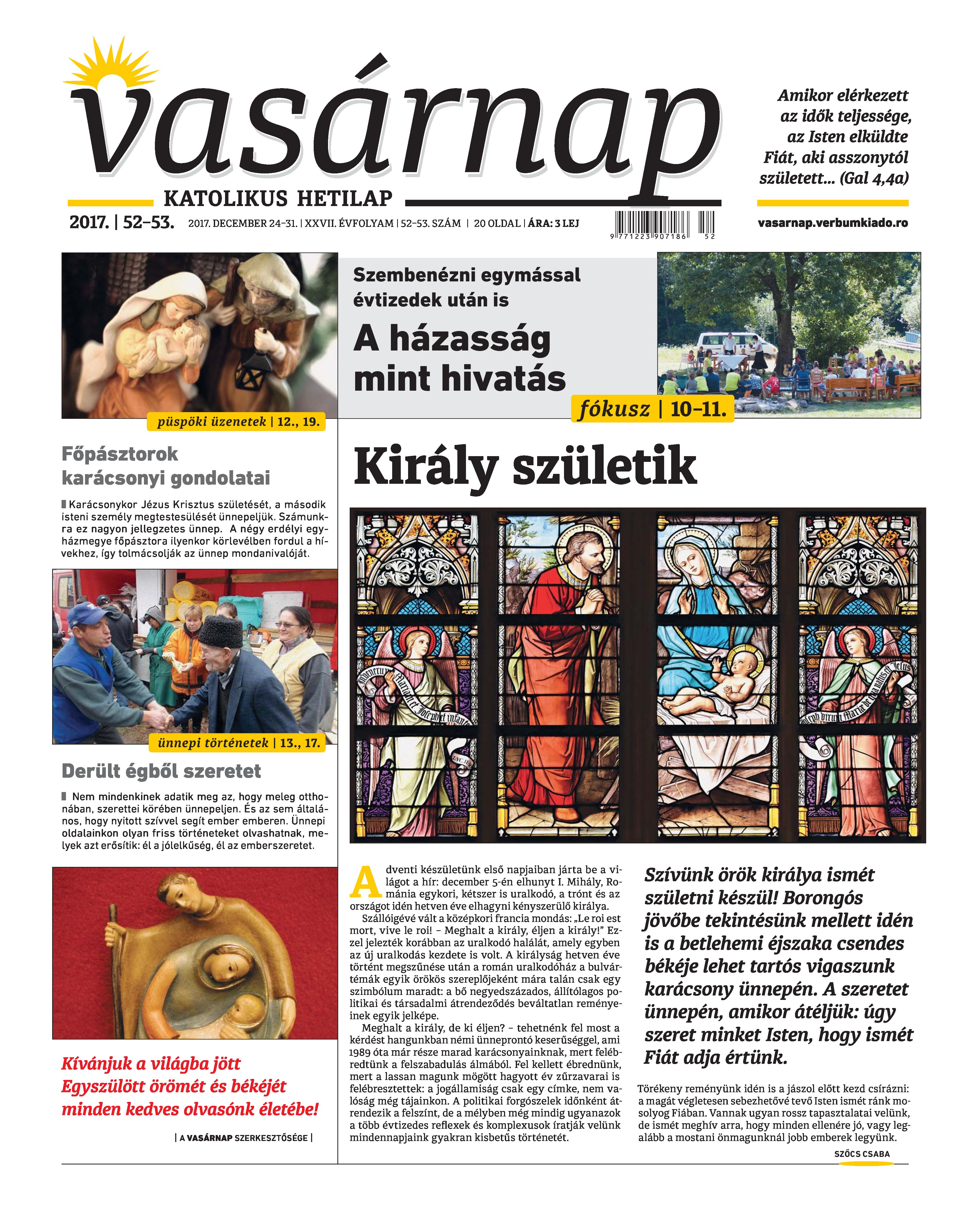 A Vasárnap Katolikus Hetilap 2017. december 24-31. / XXVII. évf. / 52-53. számának digitális változata.