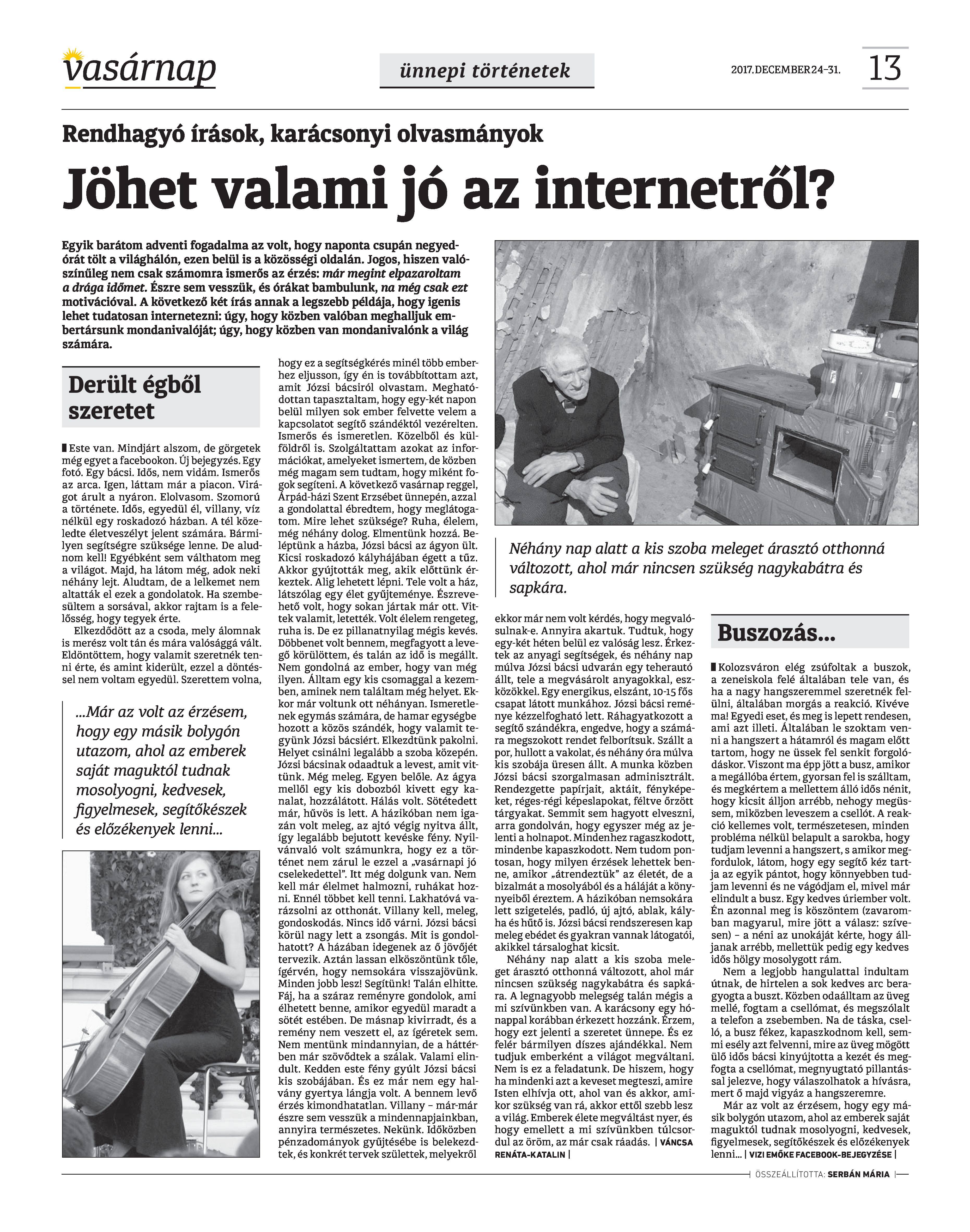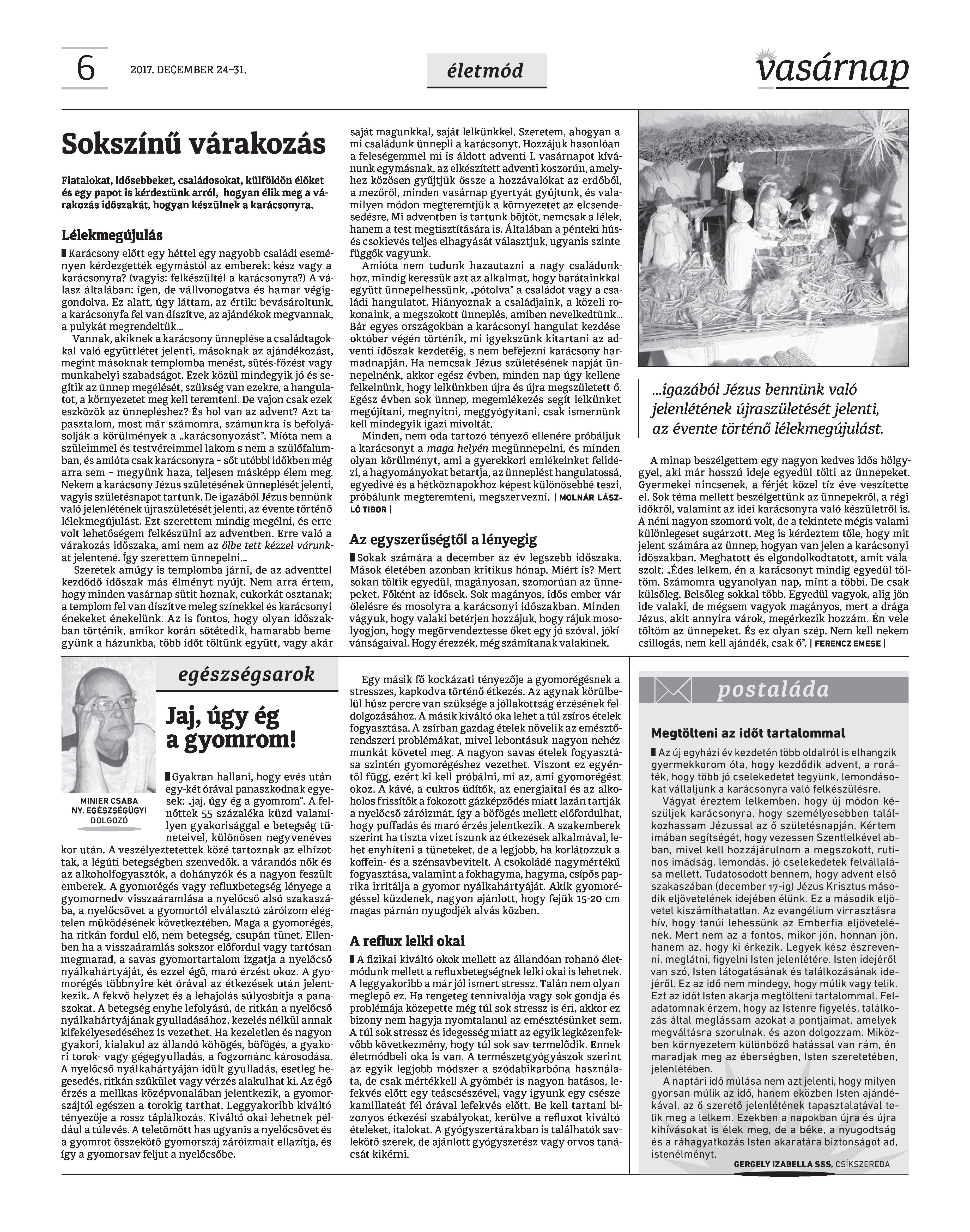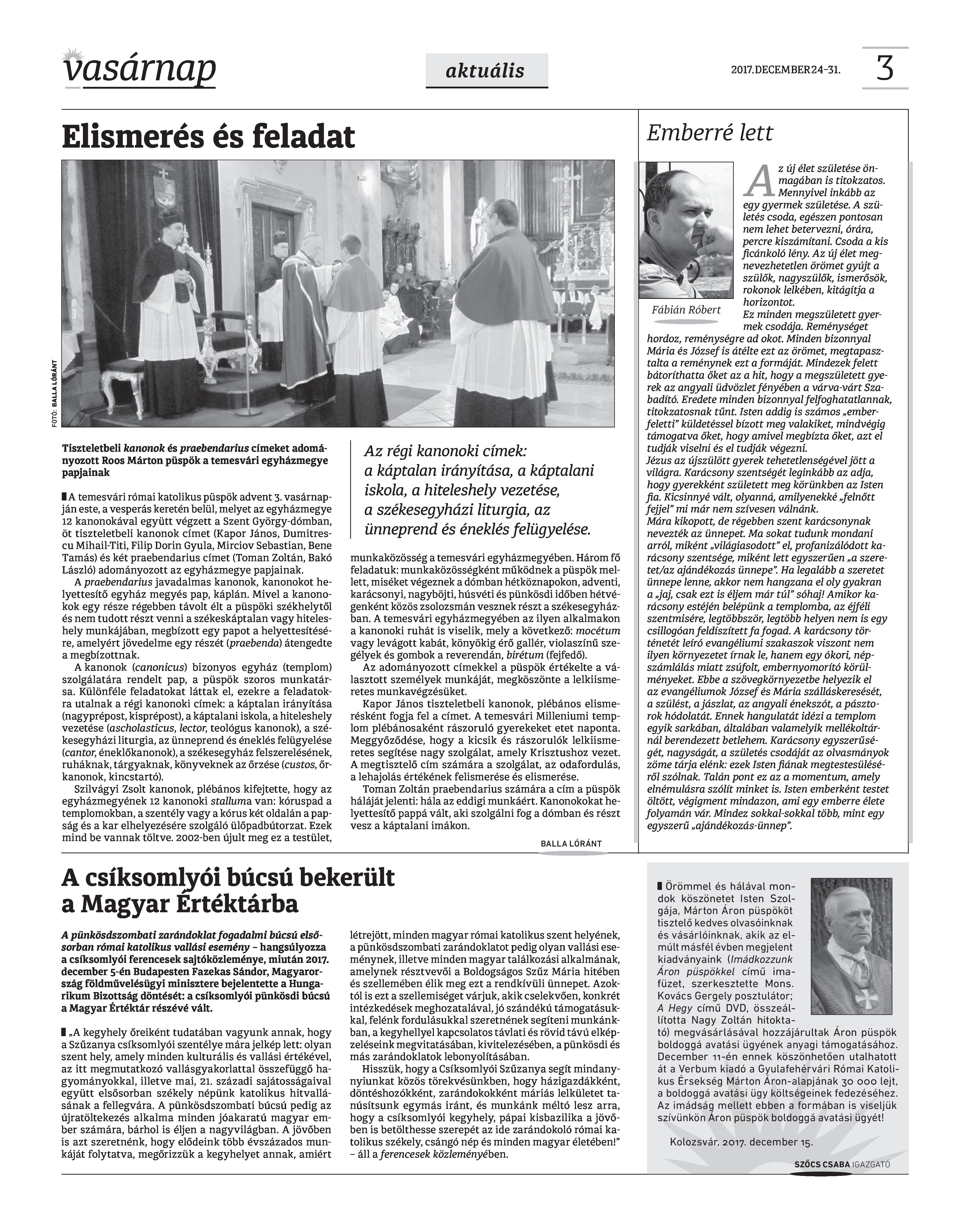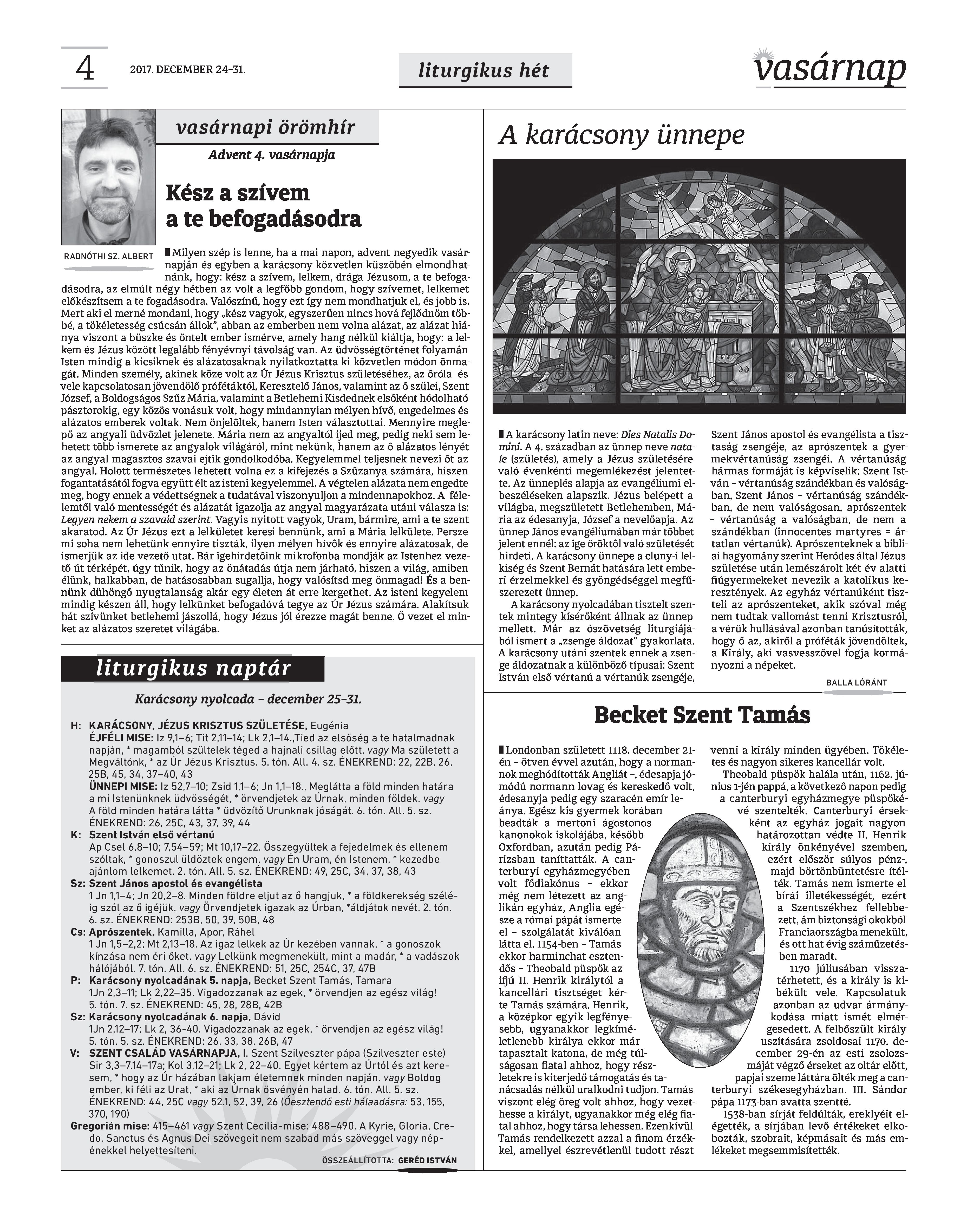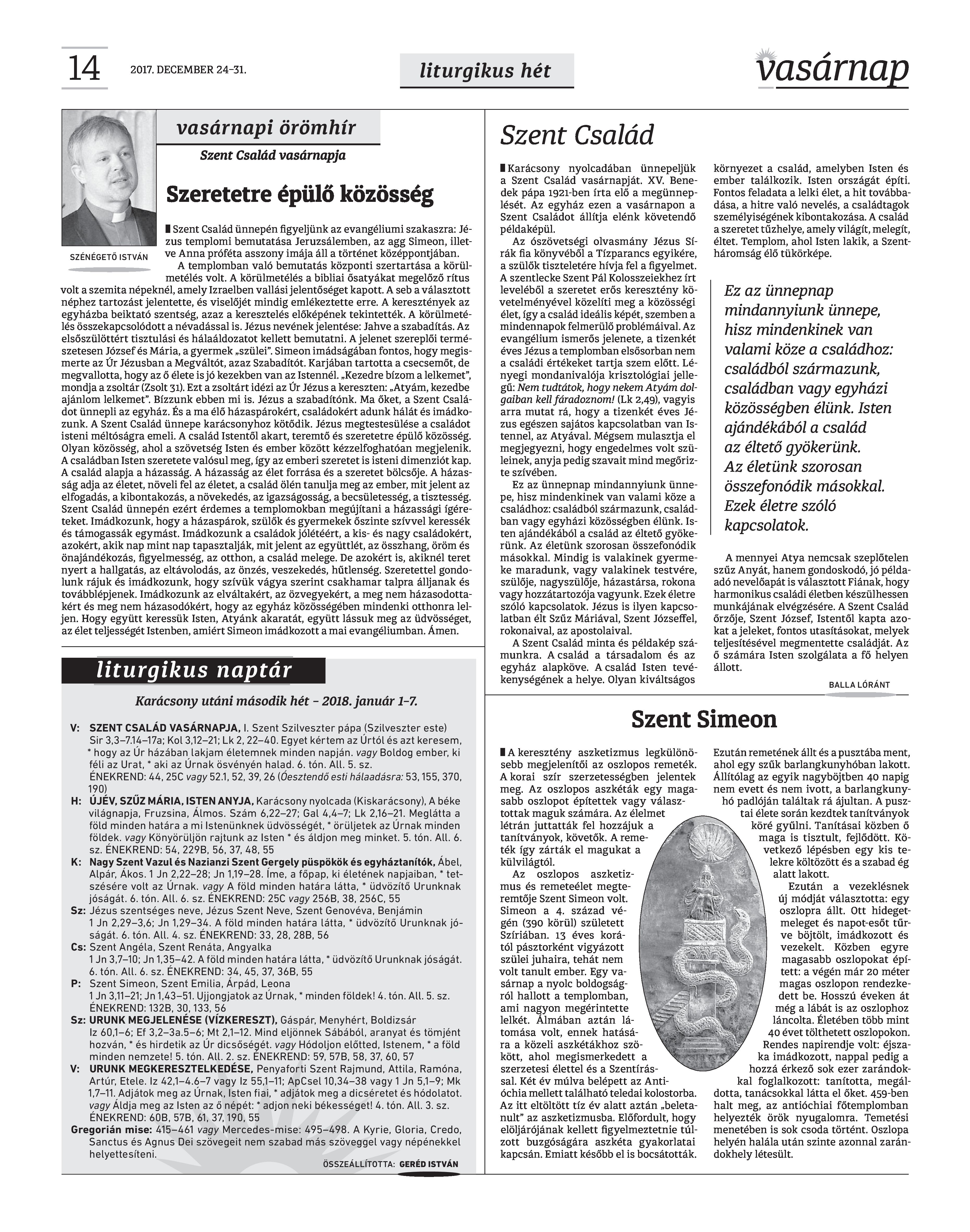 A Vasárnap Katolikus Hetilap 2017. december 24-31. / XXVII. évf. / 52-53. számának digitális változata.