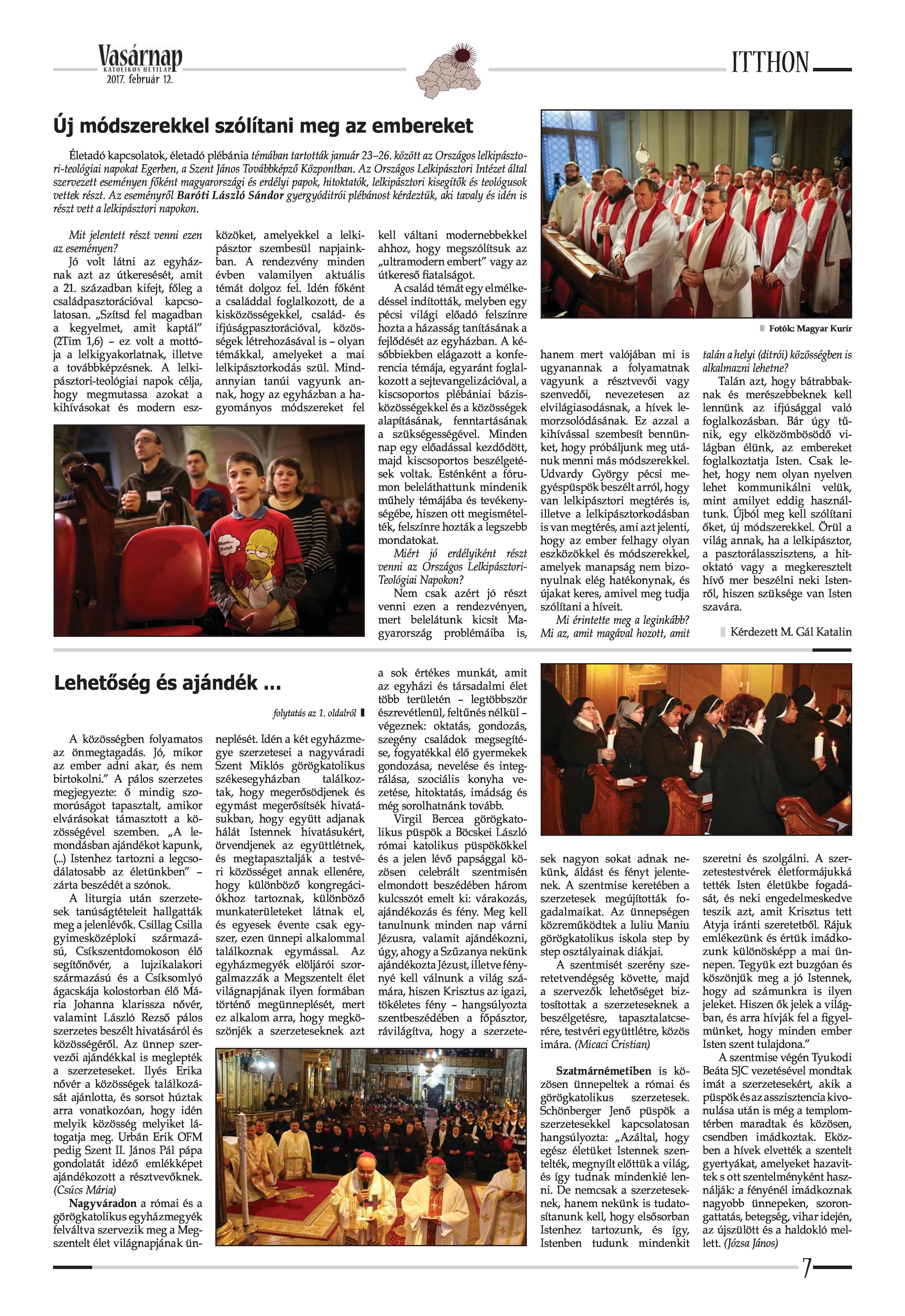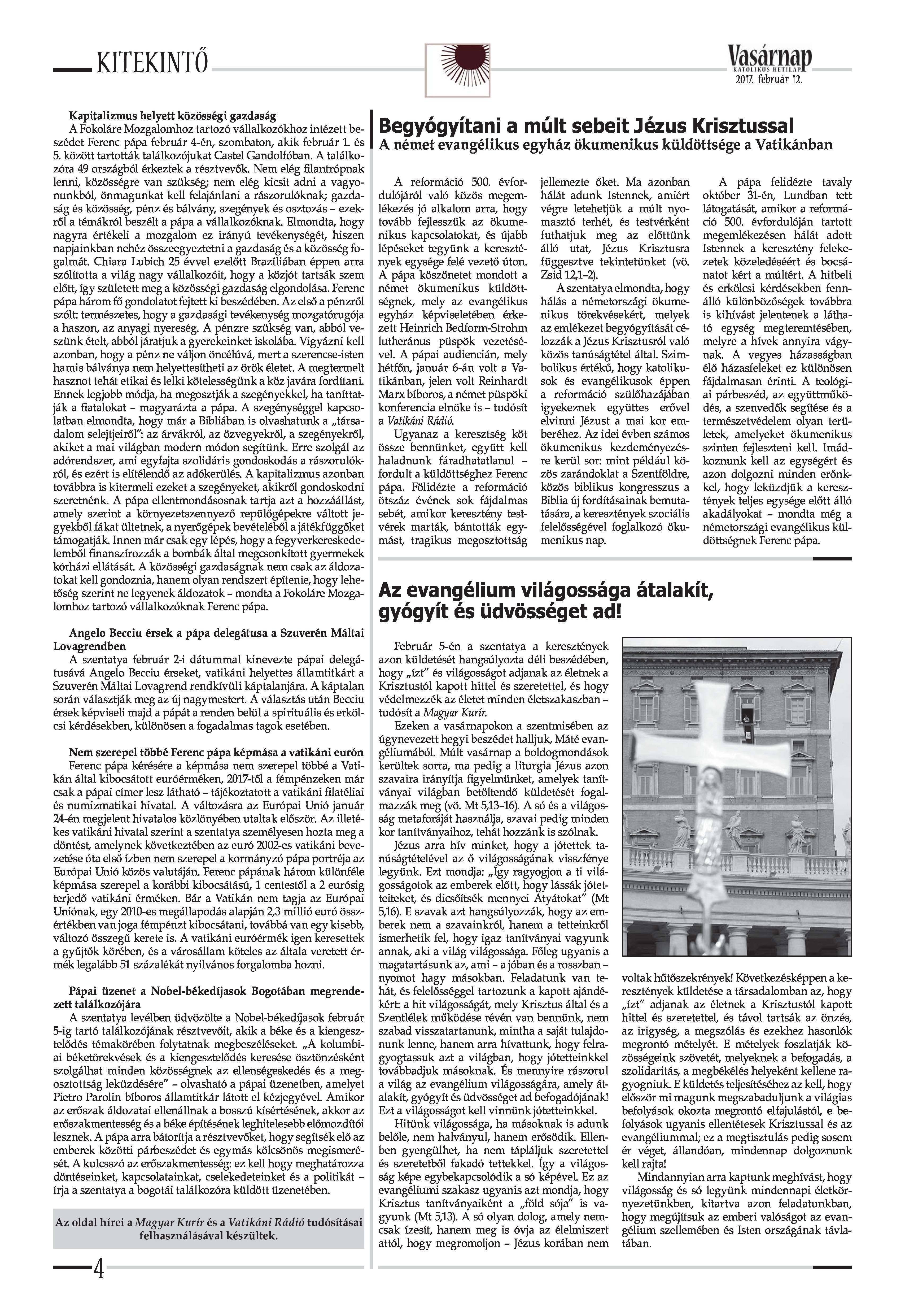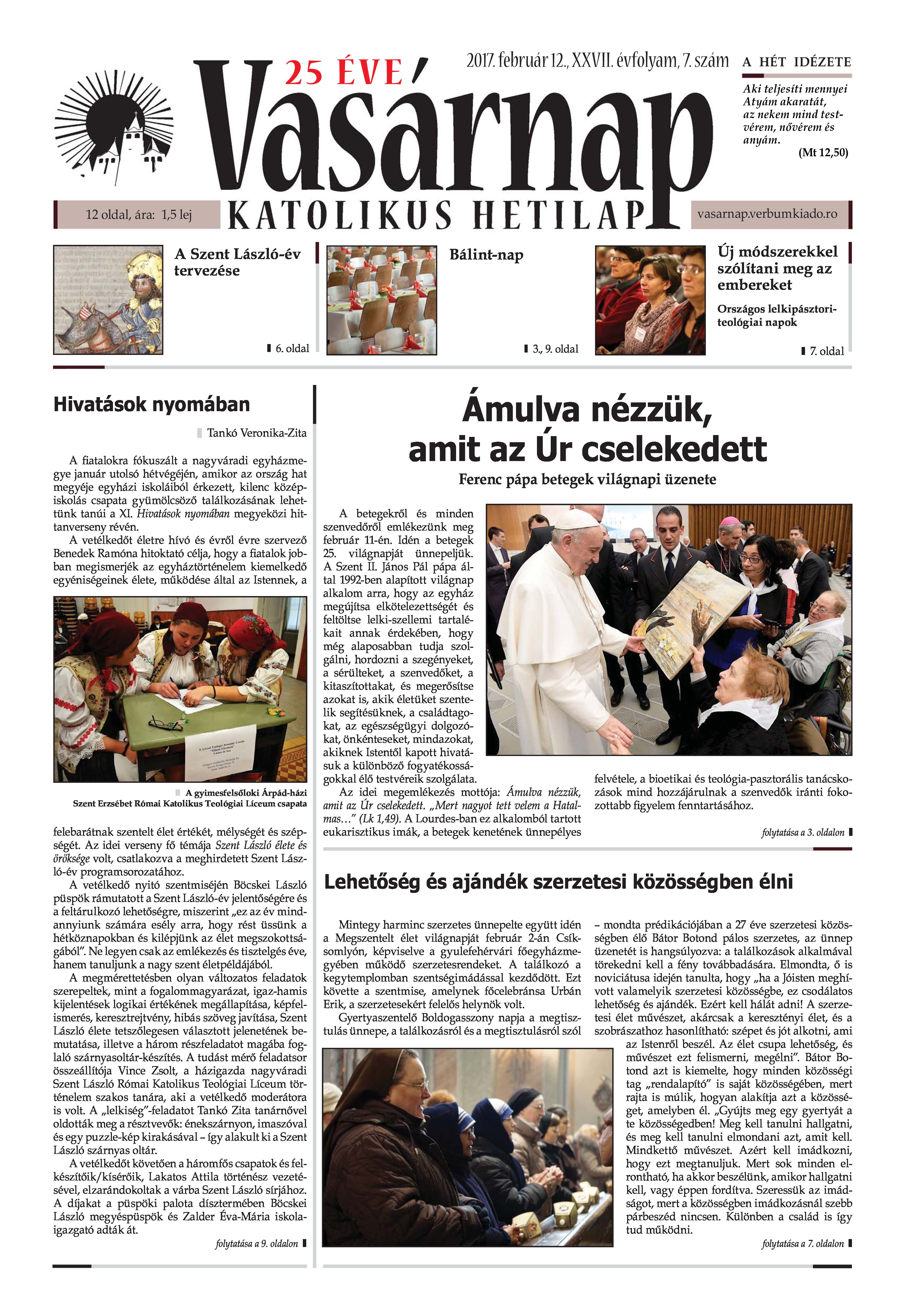 VASÁRNAP - 2017. FEBRUÁR 12. A Vasárnap Katolikus Hetilap 2017. február 12. / XXVII. évf. / 7. számának digitális változata.
