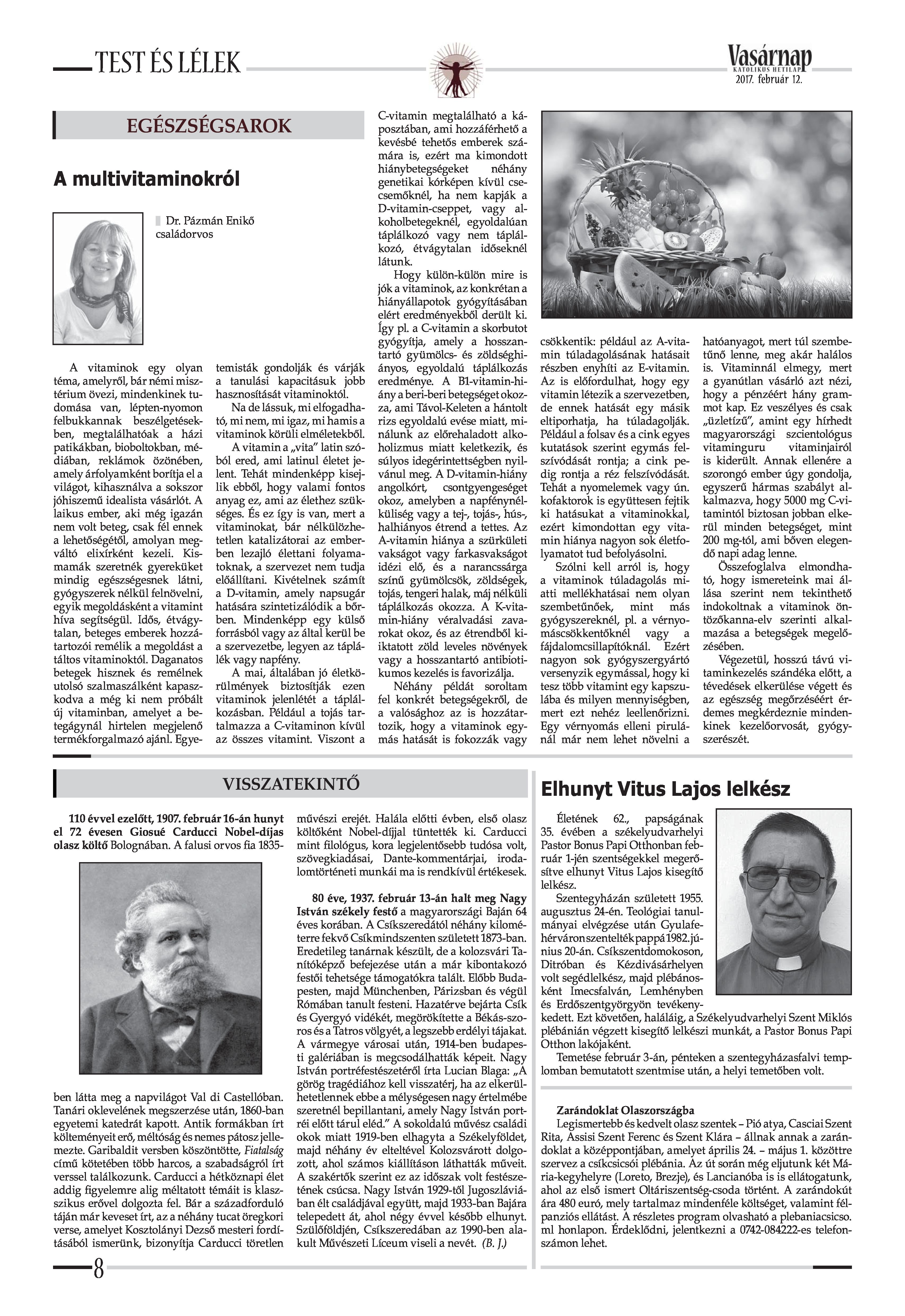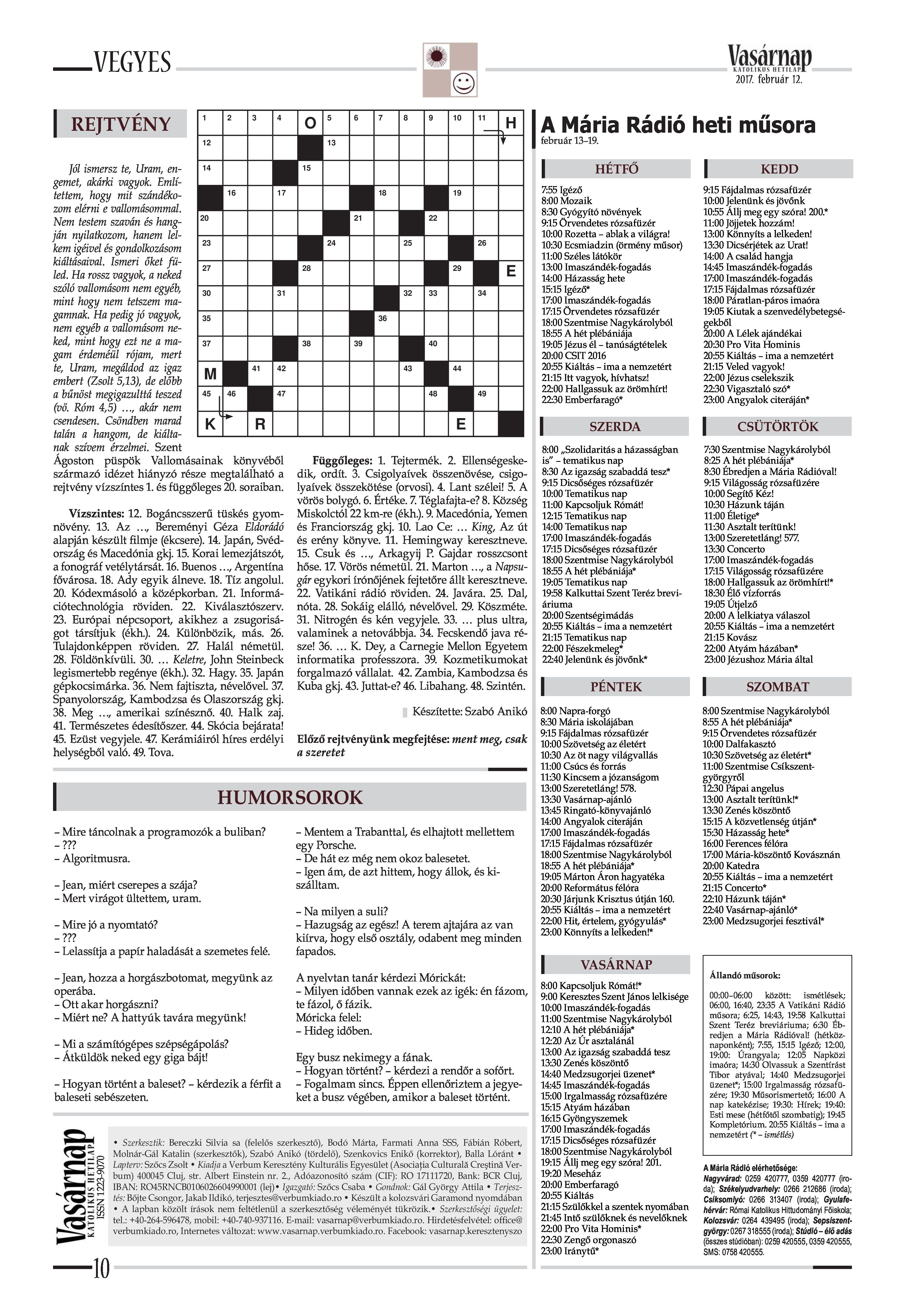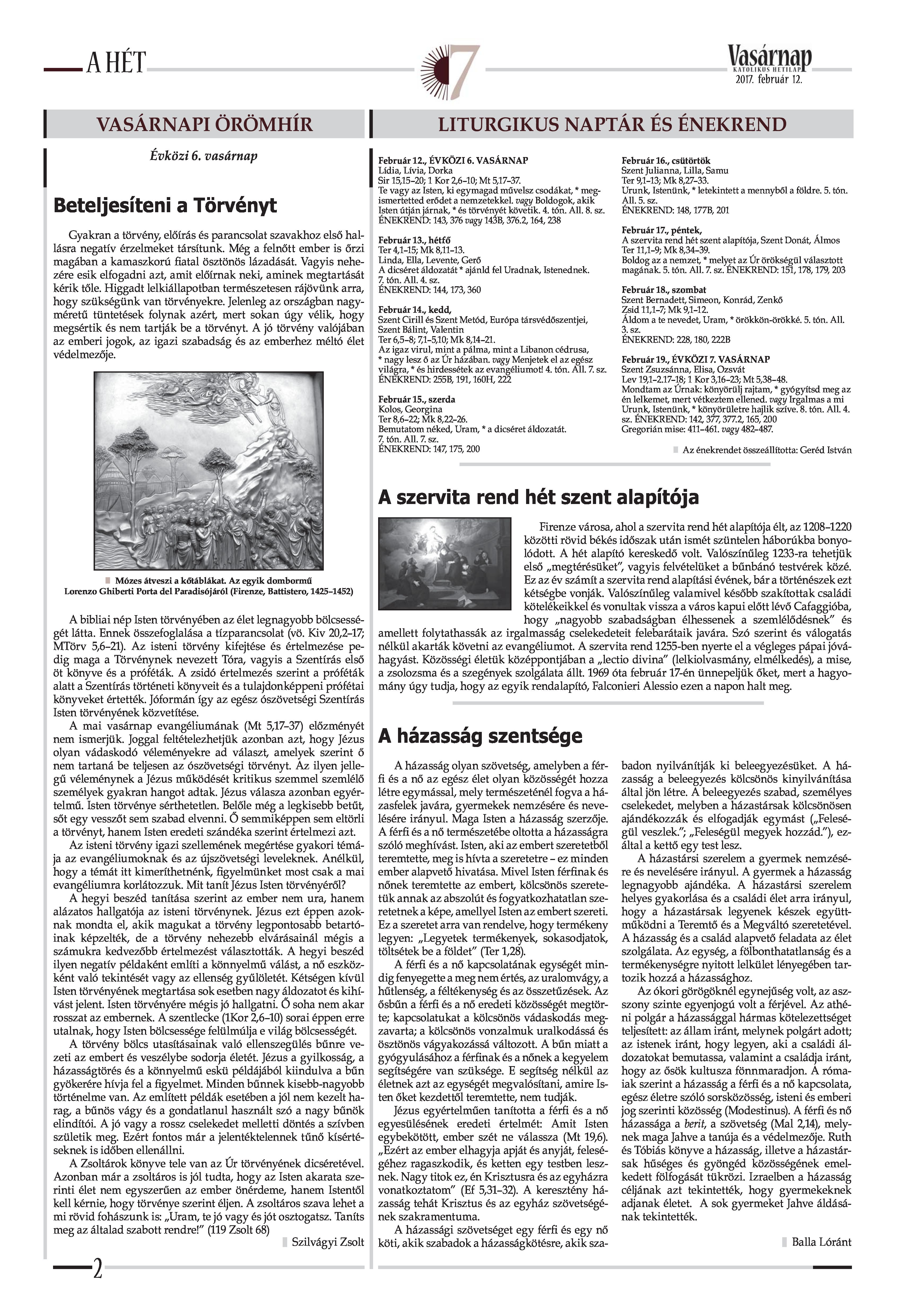 VASÁRNAP - 2017. FEBRUÁR 12. A Vasárnap Katolikus Hetilap 2017. február 12. / XXVII. évf. / 7. számának digitális változata.