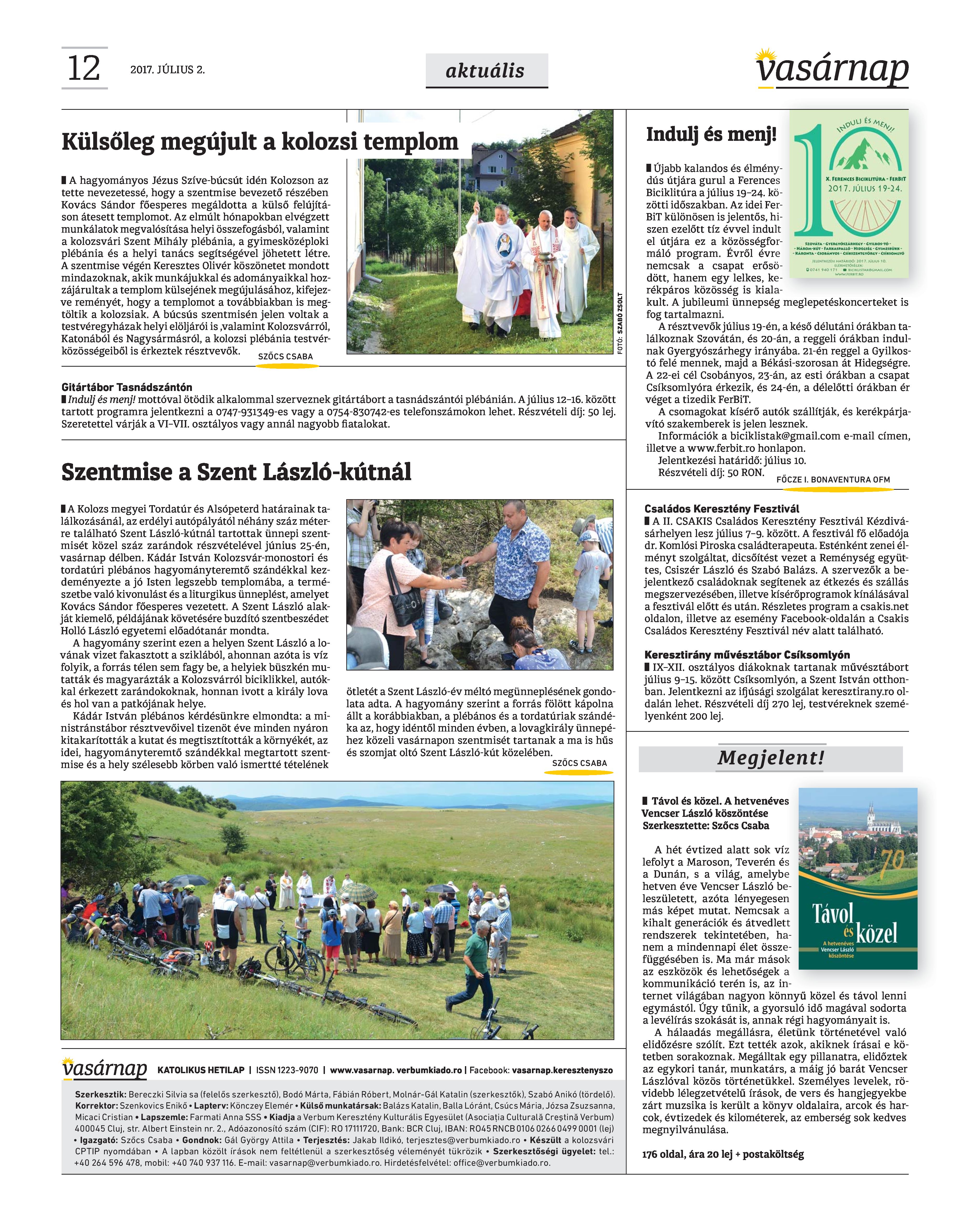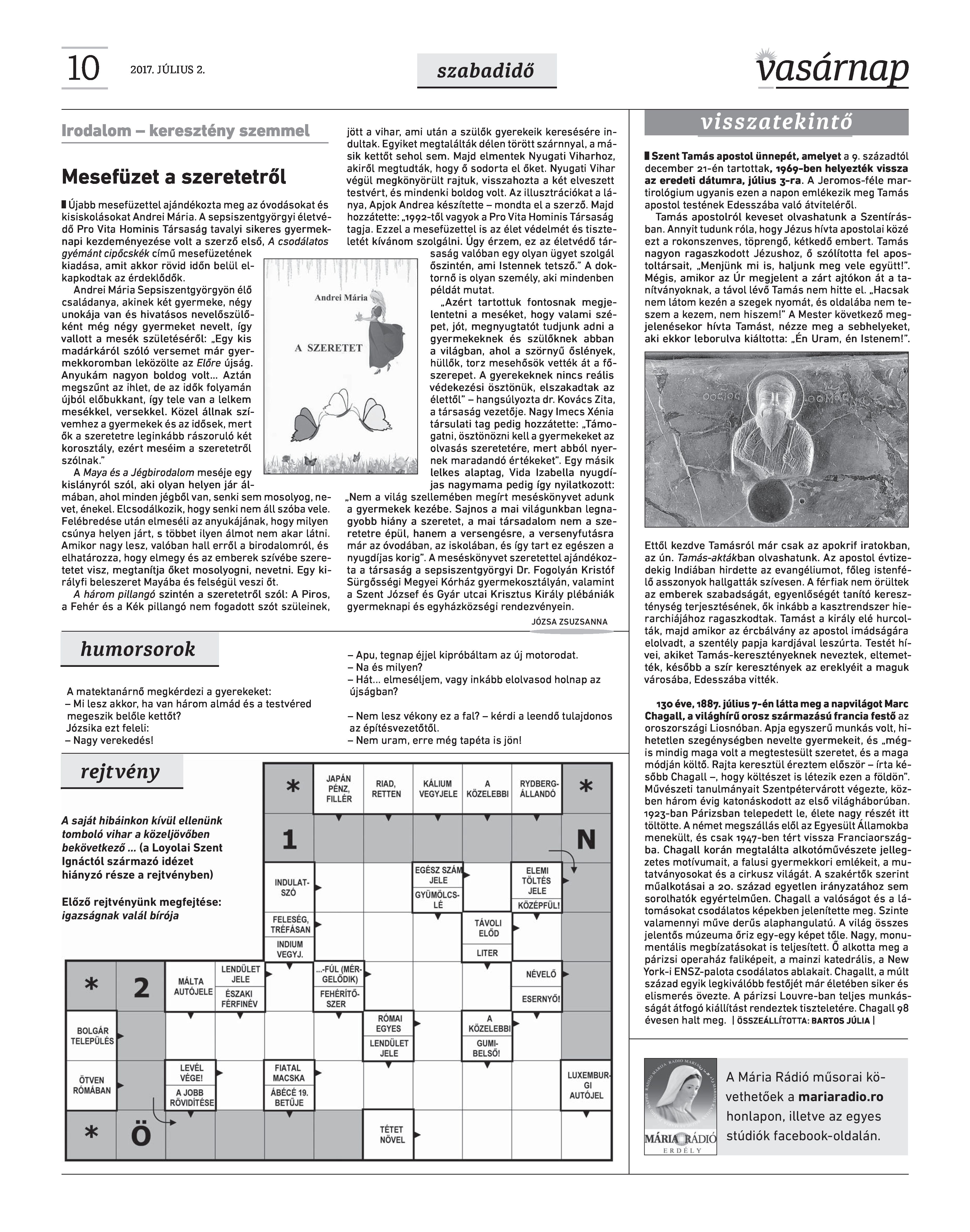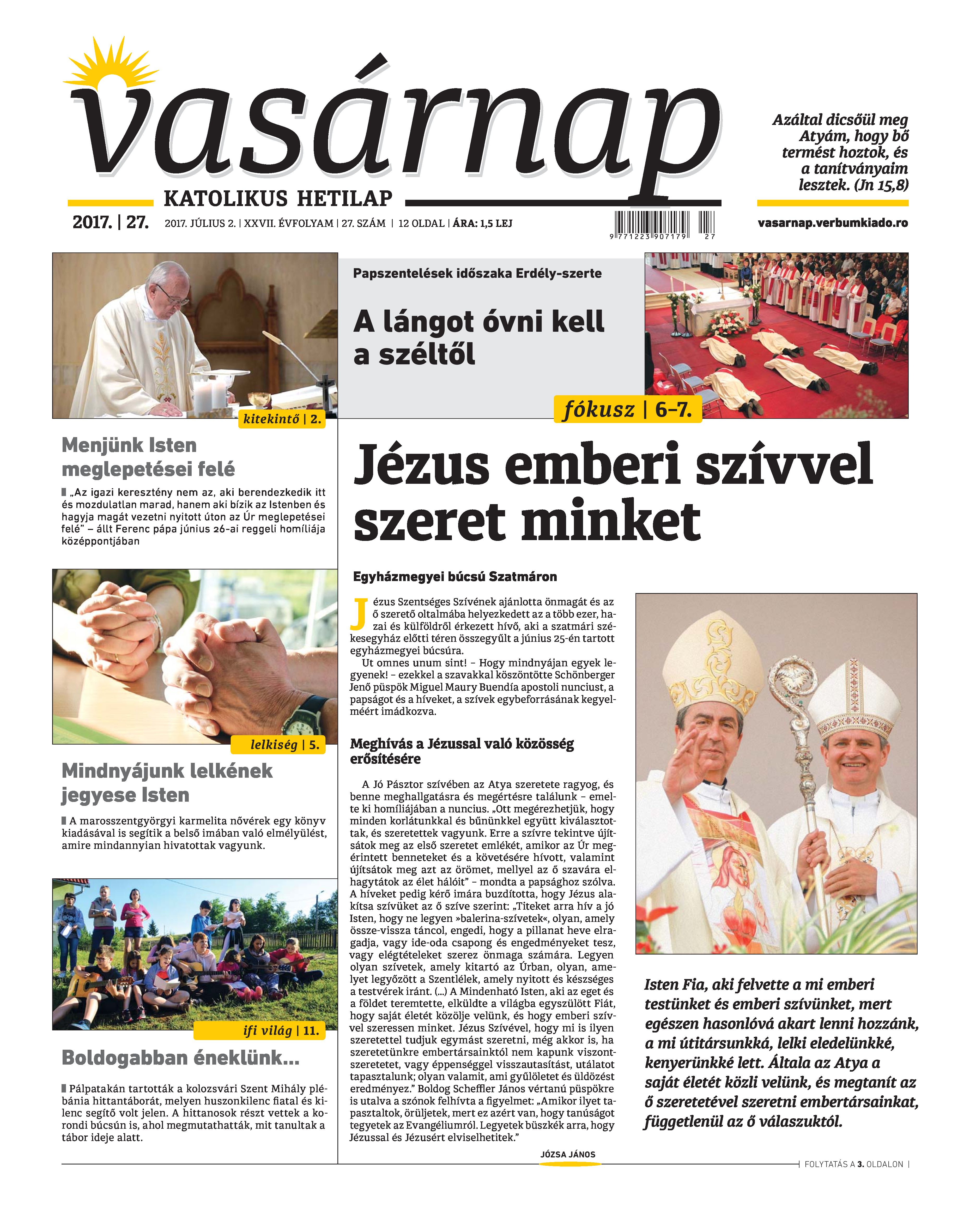 Vasárnap Katolikus Hetilap 2017. július 2. / XXVII. évf. / 27. számának digitális változata