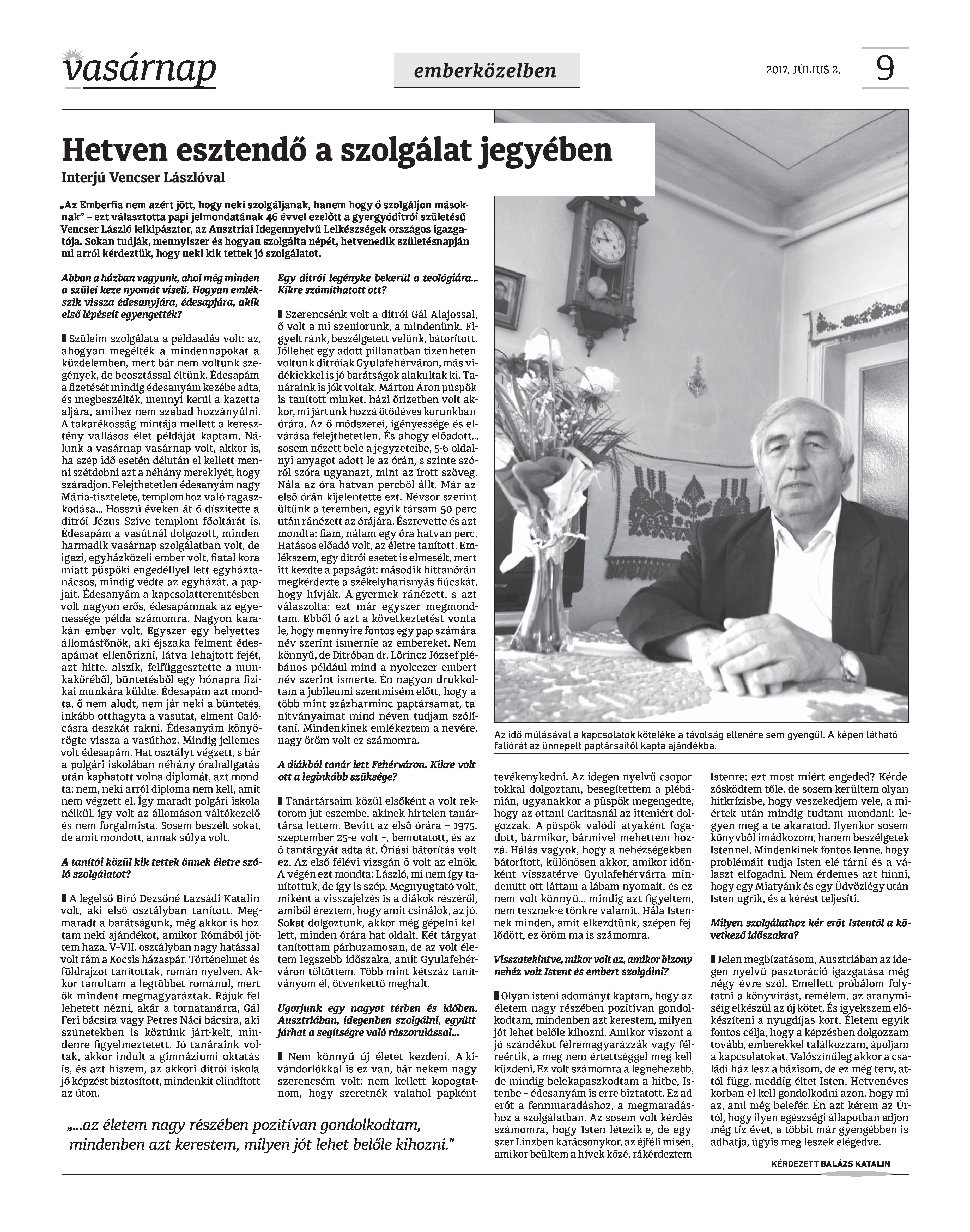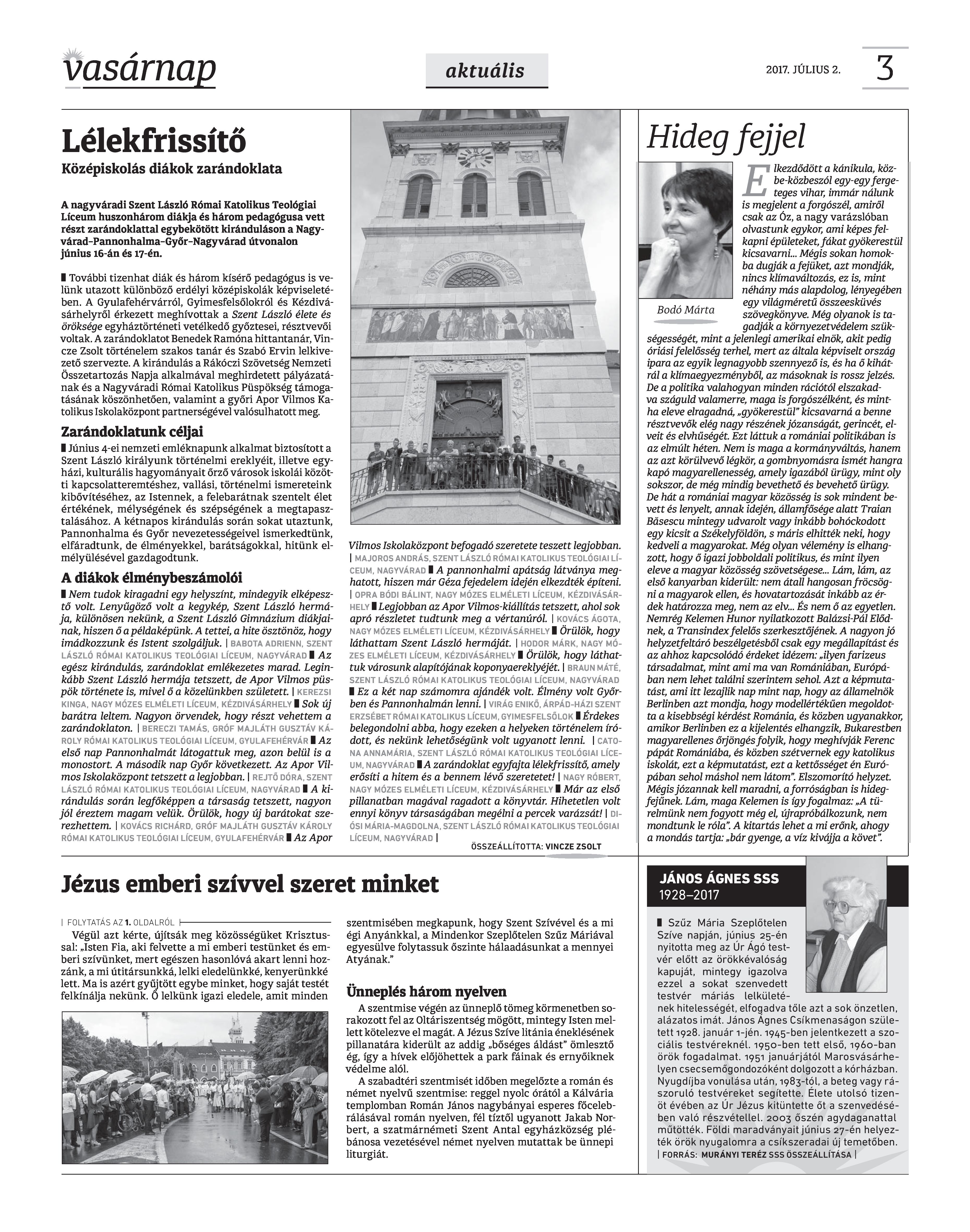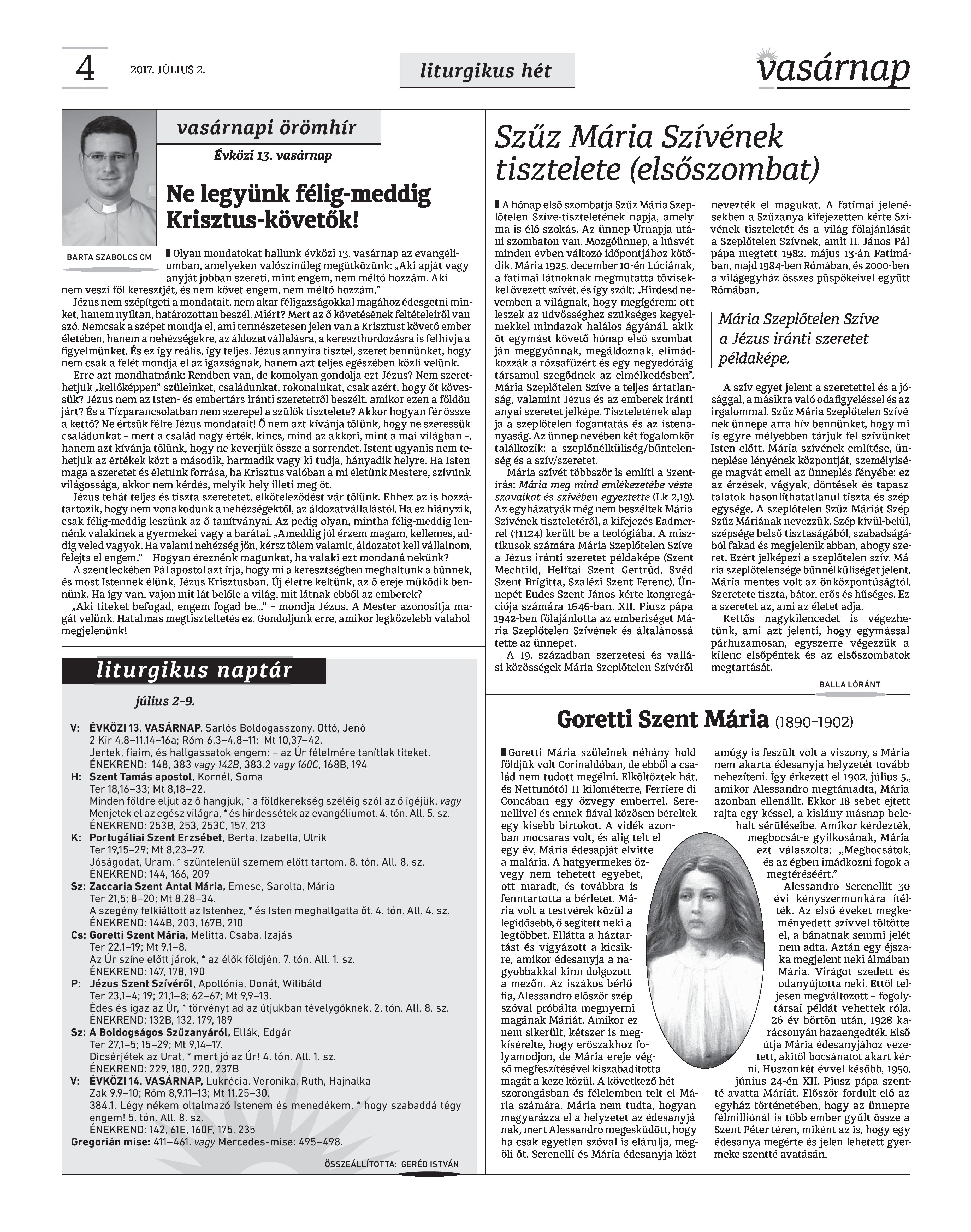 Vasárnap Katolikus Hetilap 2017. július 2. / XXVII. évf. / 27. számának digitális változata