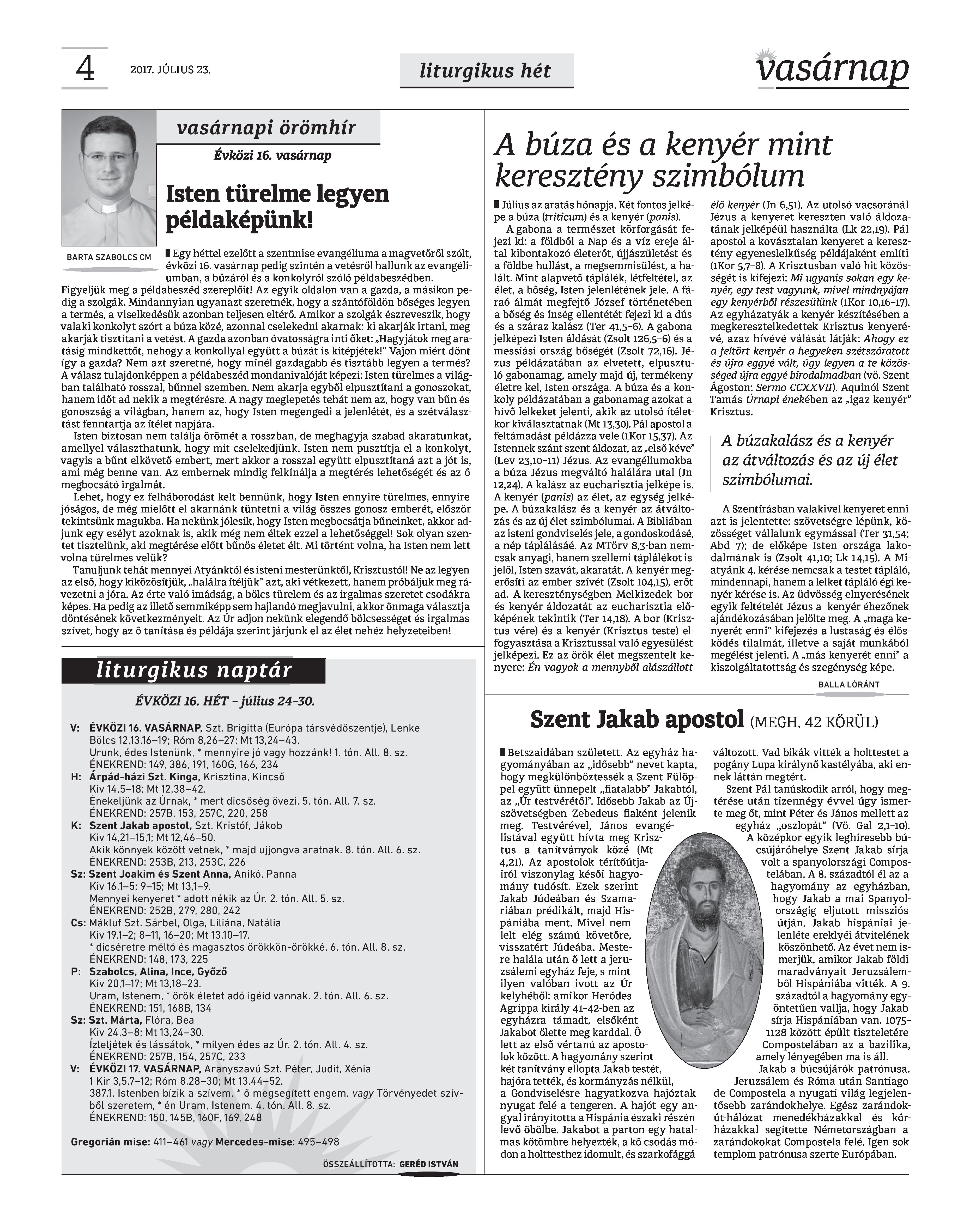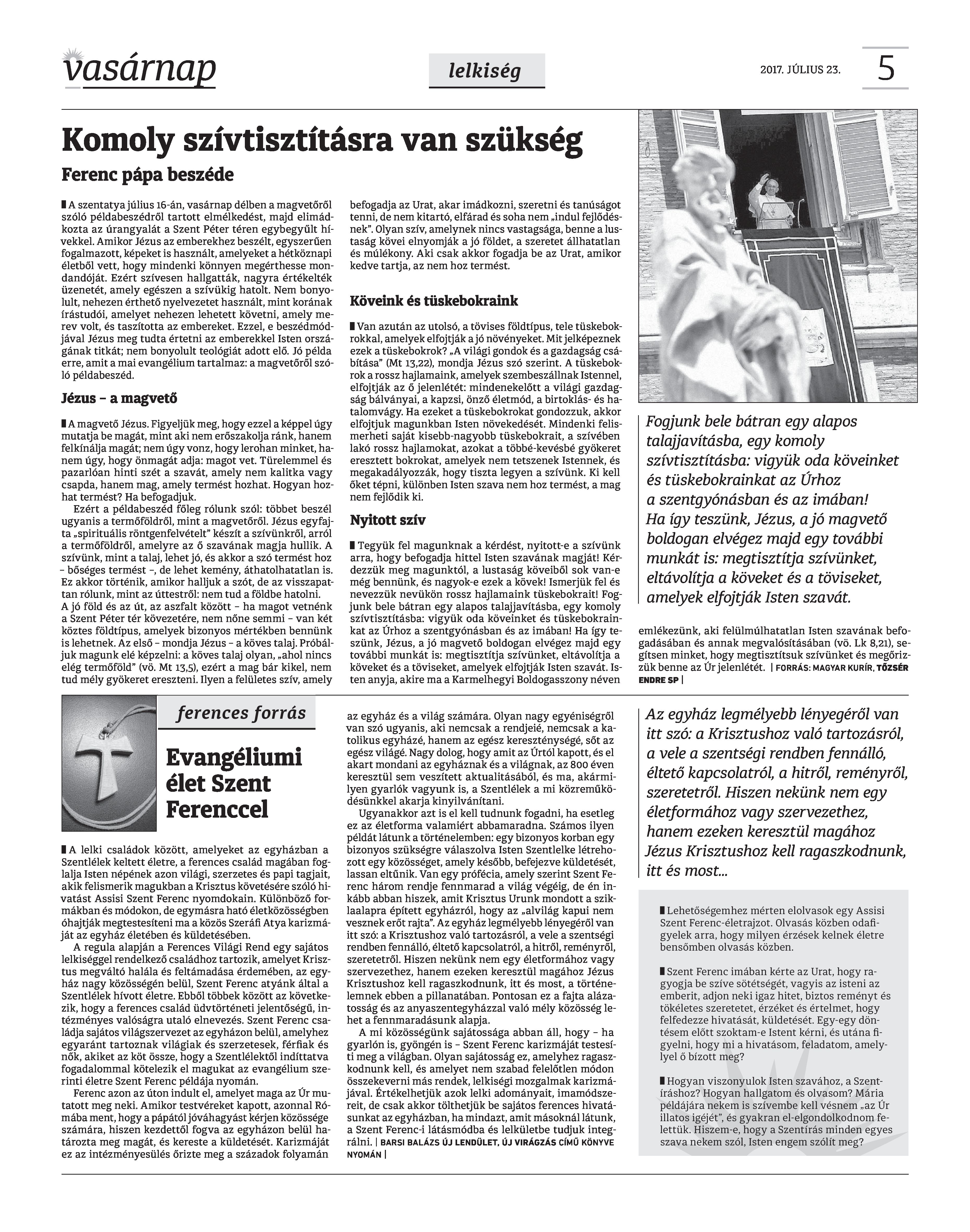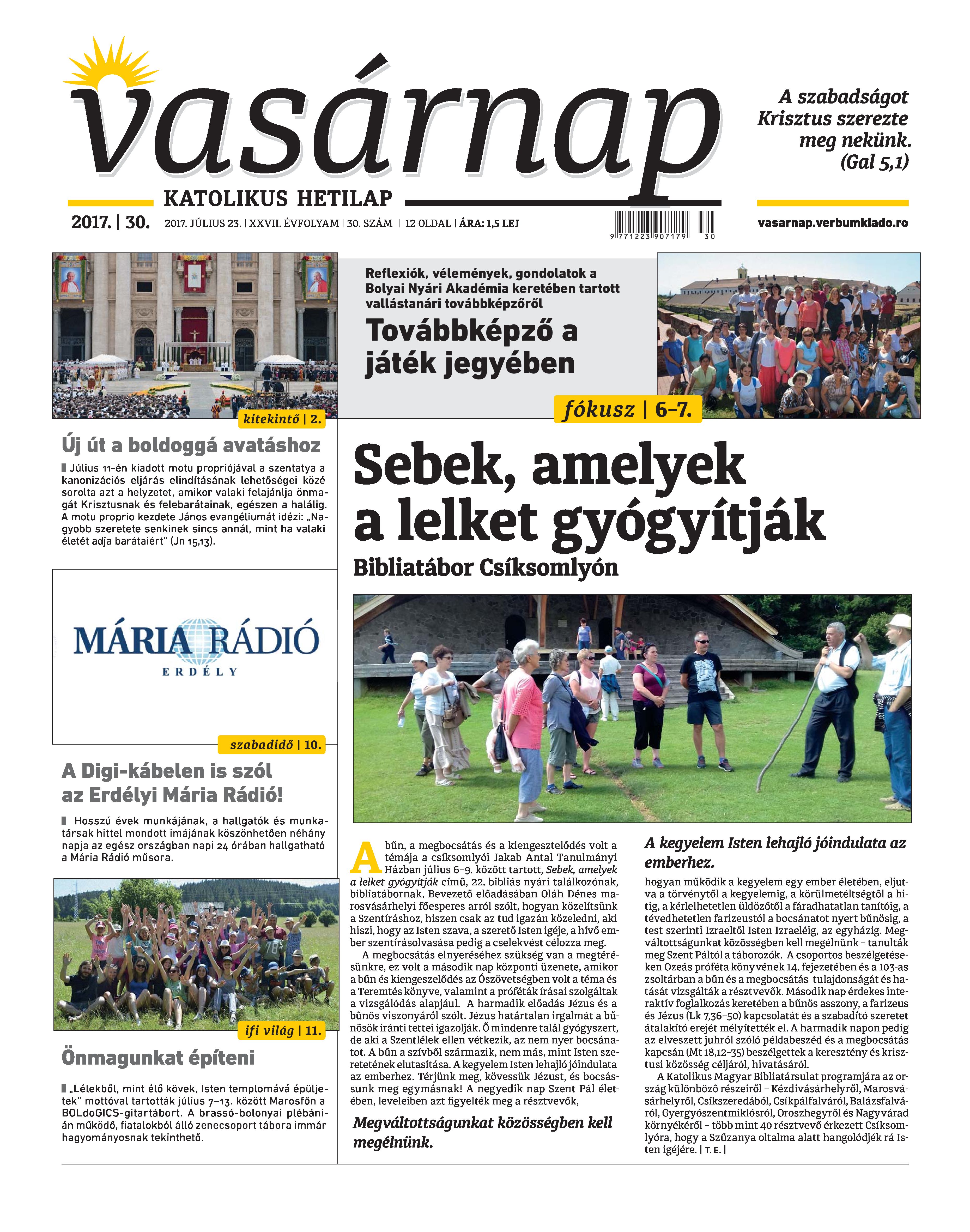 VASÁRNAP - 2017. JÚLIUS 23. A Vasárnap Katolikus Hetilap 2017. július 23. / XXVII. évf. / 30. számának digitális változata. 1 / 12 2 & 3 / 12 4 & 5 / 12 6 & 7 / 12 8 & 9 / 12 10 & 11 / 12 12 / 12