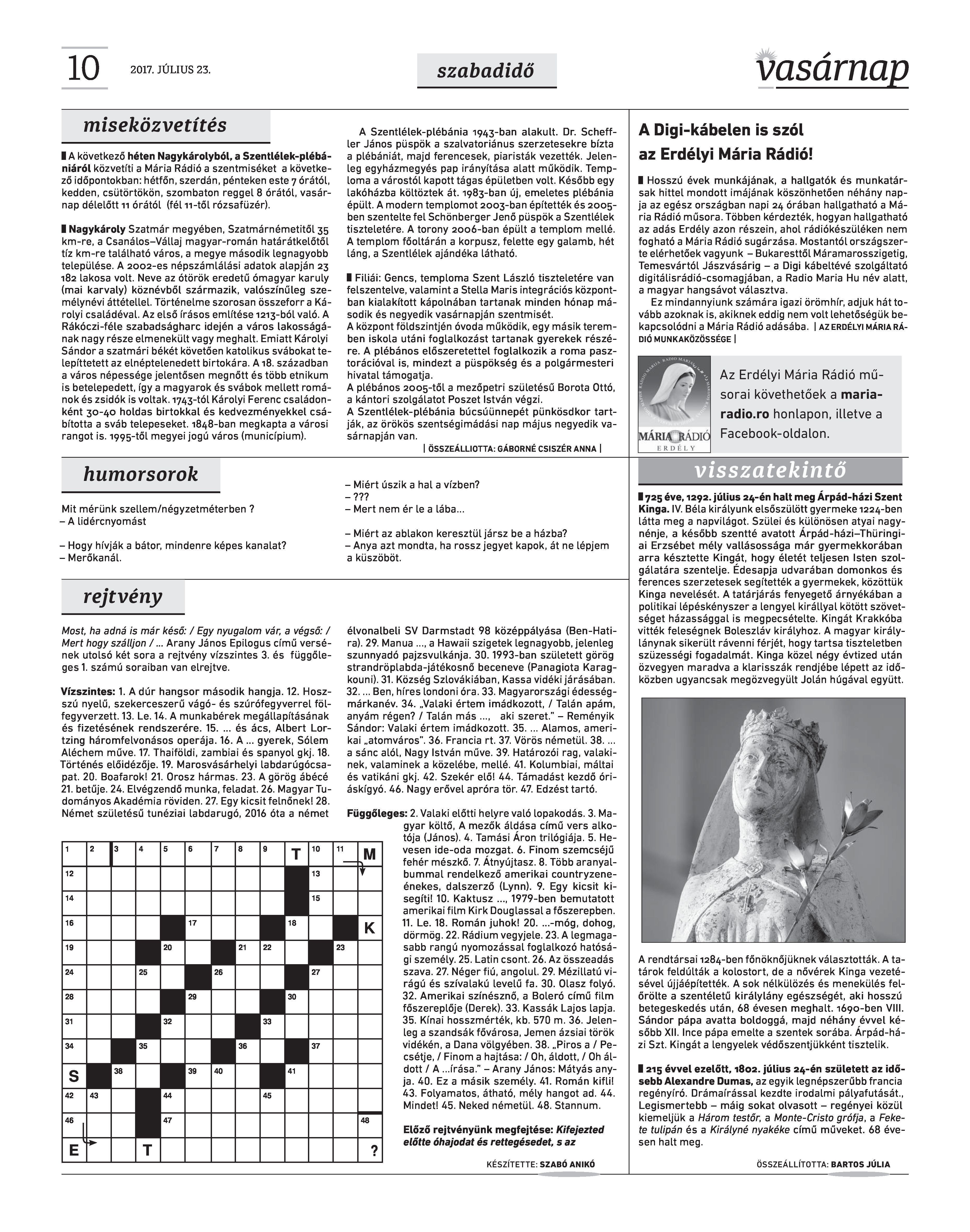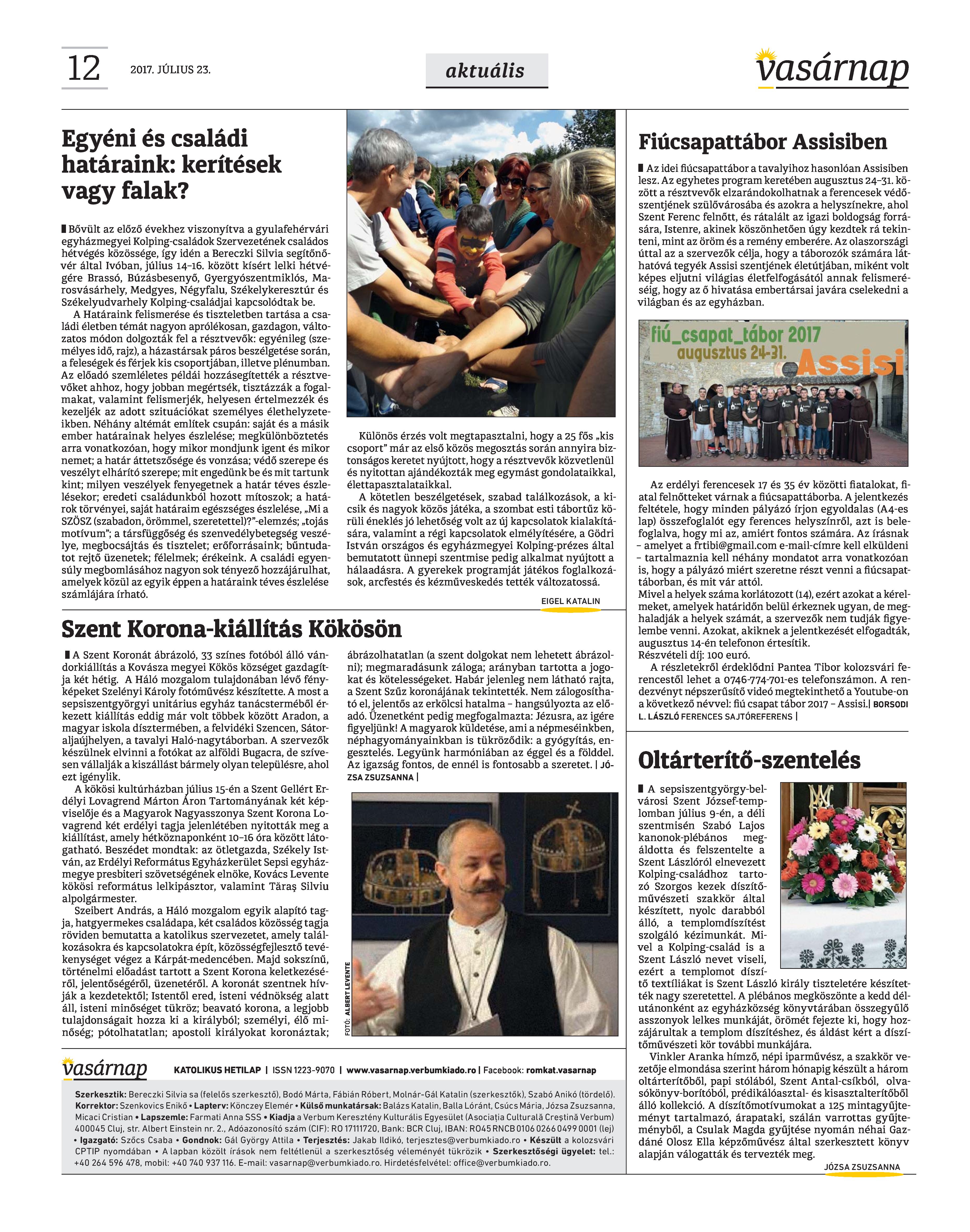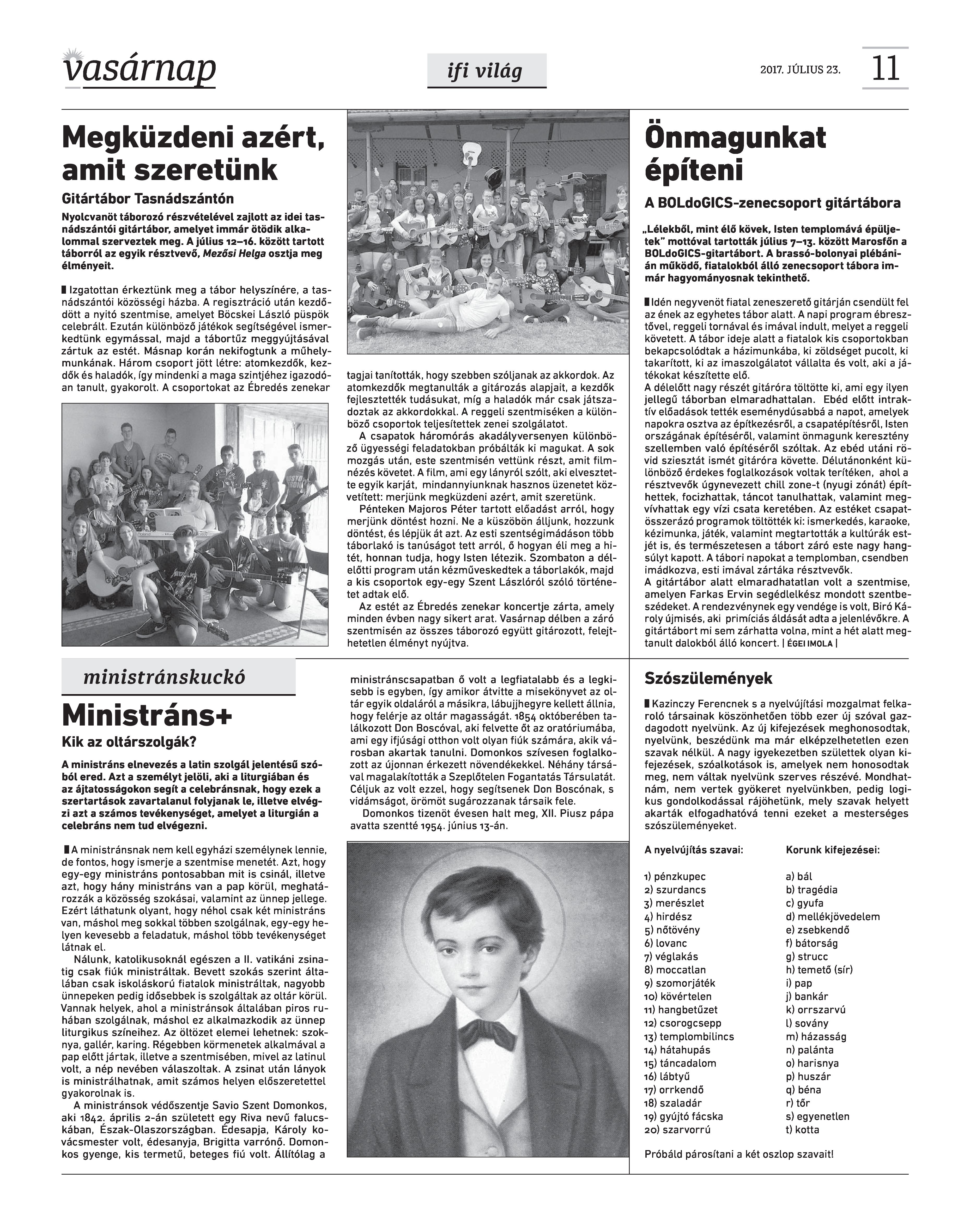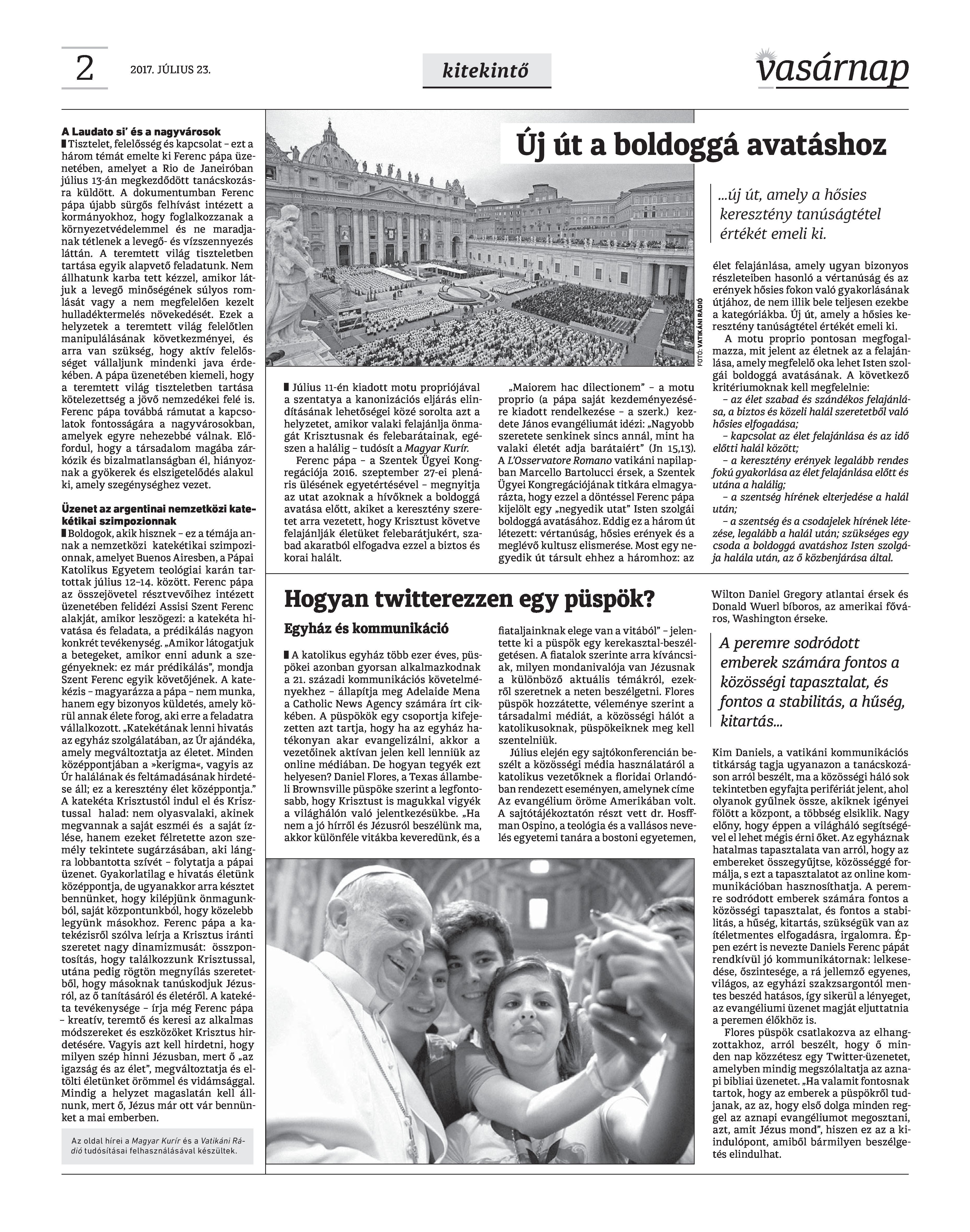 VASÁRNAP - 2017. JÚLIUS 23. A Vasárnap Katolikus Hetilap 2017. július 23. / XXVII. évf. / 30. számának digitális változata. 1 / 12 2 & 3 / 12 4 & 5 / 12 6 & 7 / 12 8 & 9 / 12 10 & 11 / 12 12 / 12