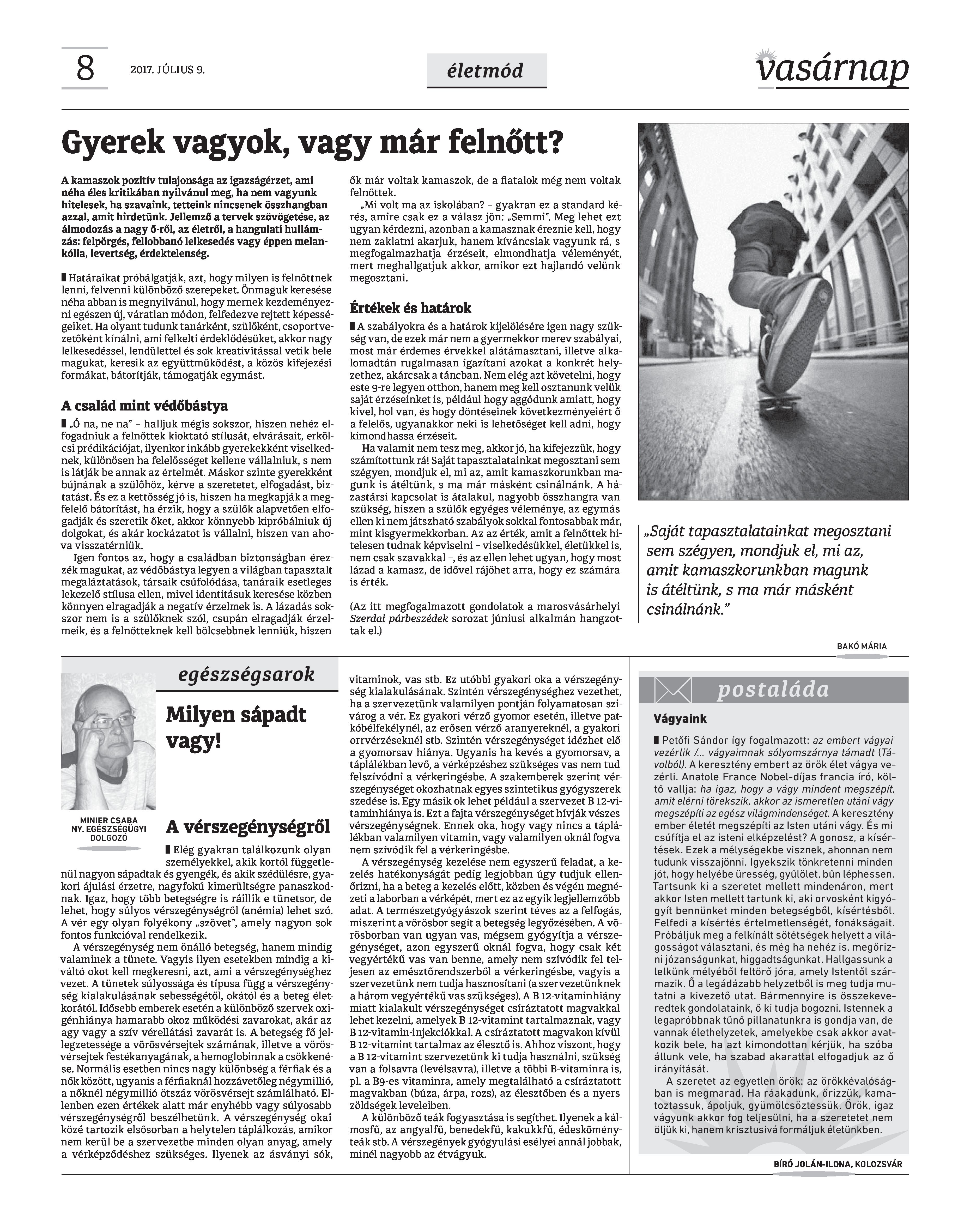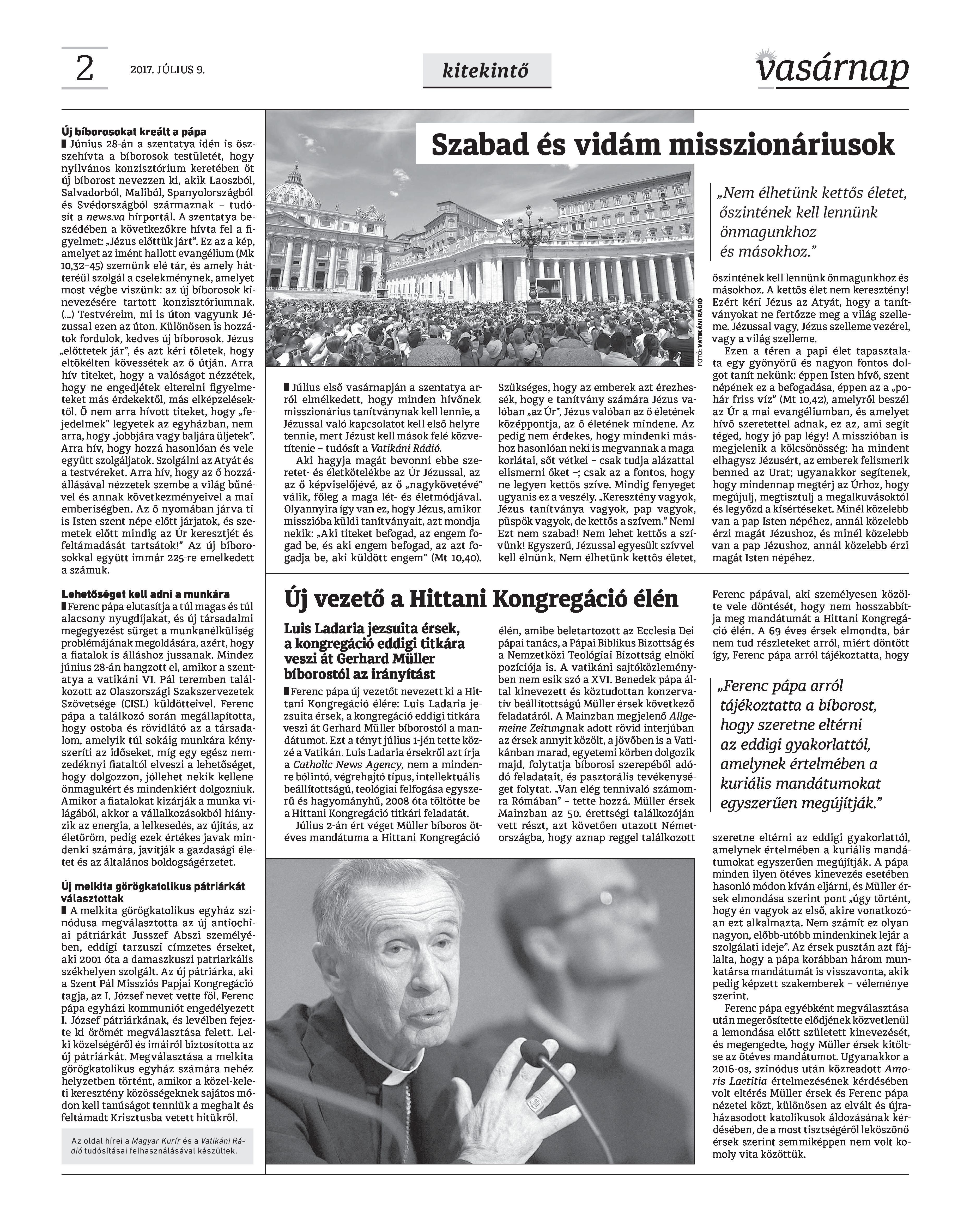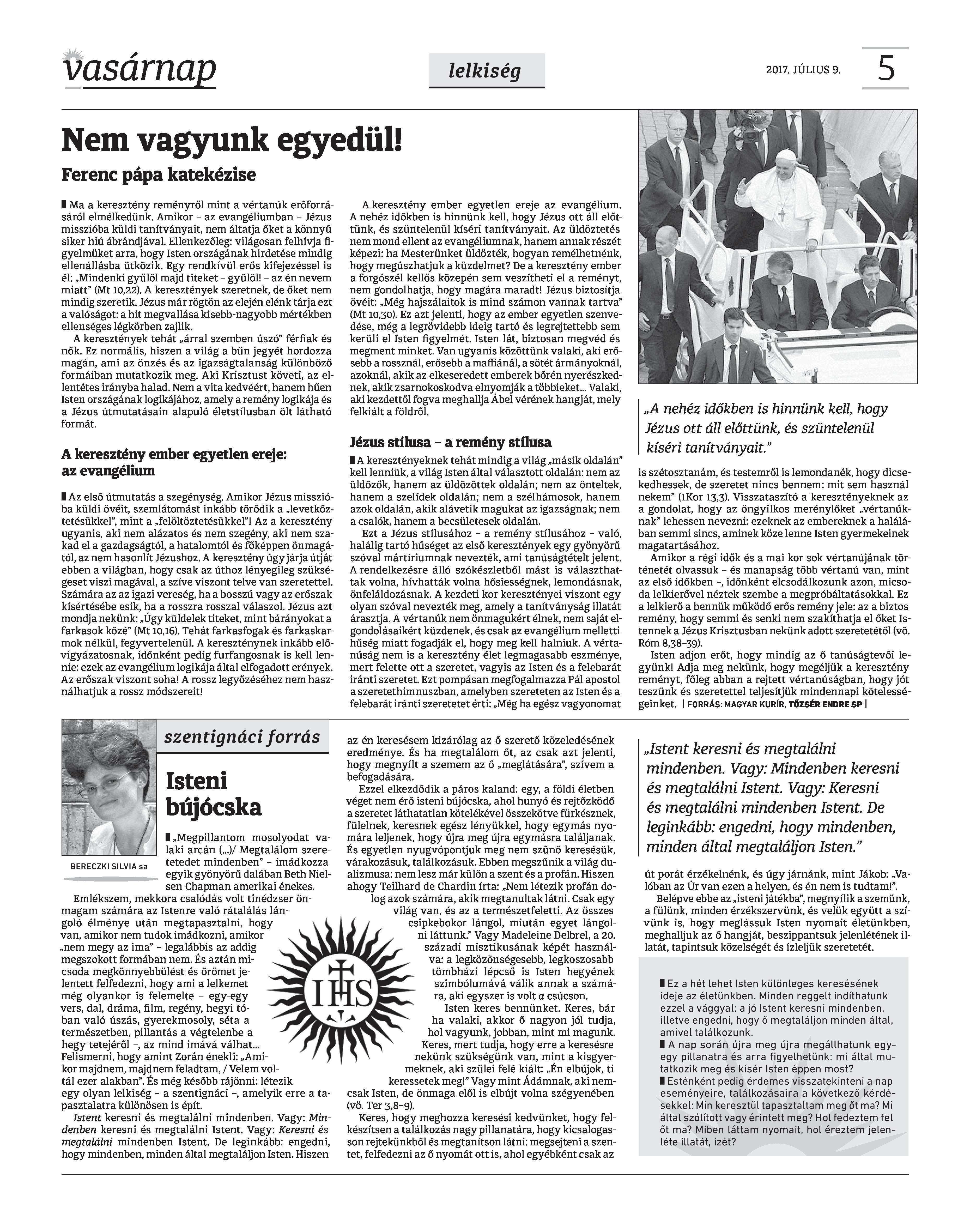 Vasárnap Katolikus Hetilap 2017. július 9. / XXVII. évf. / 28. számának digitális változata