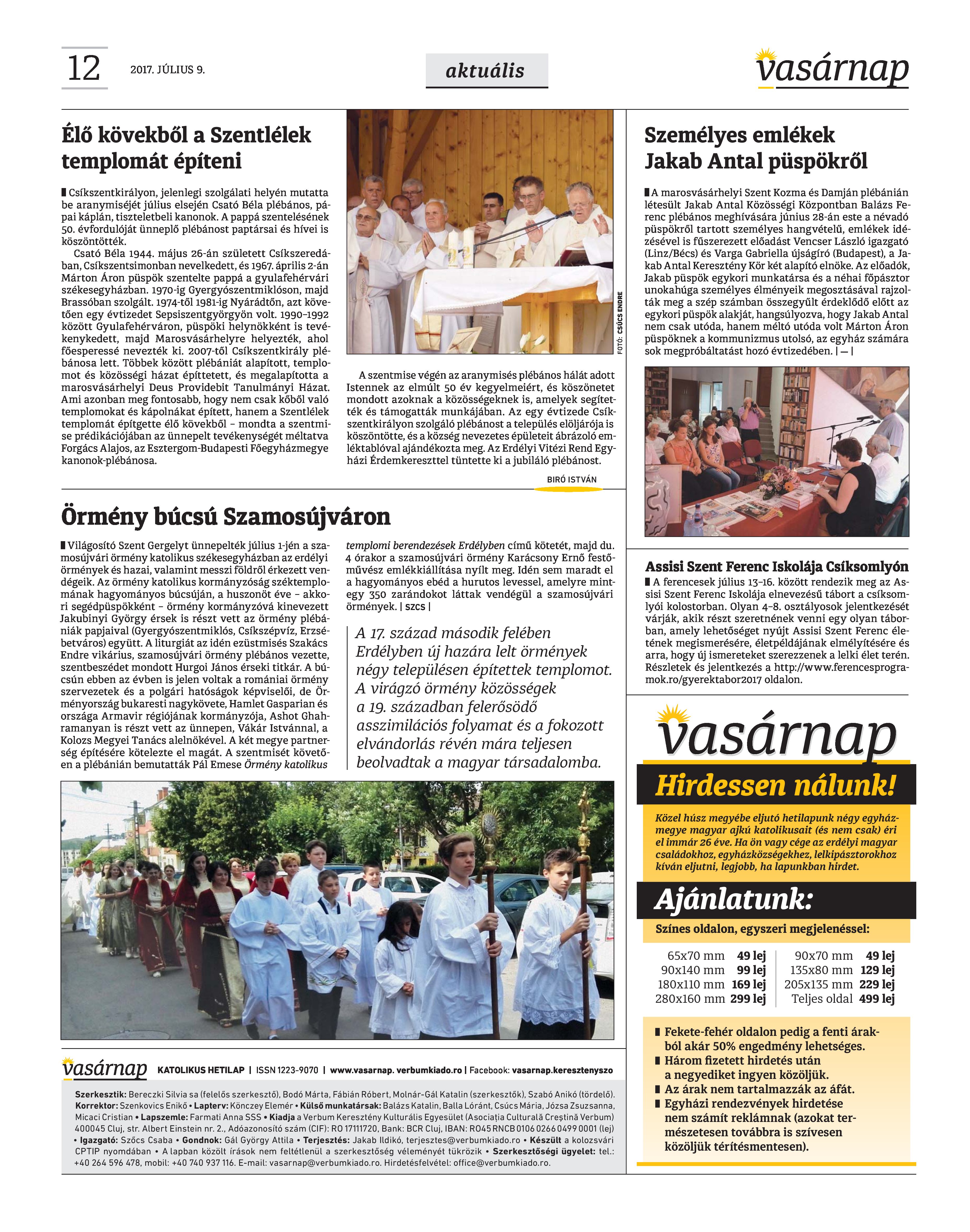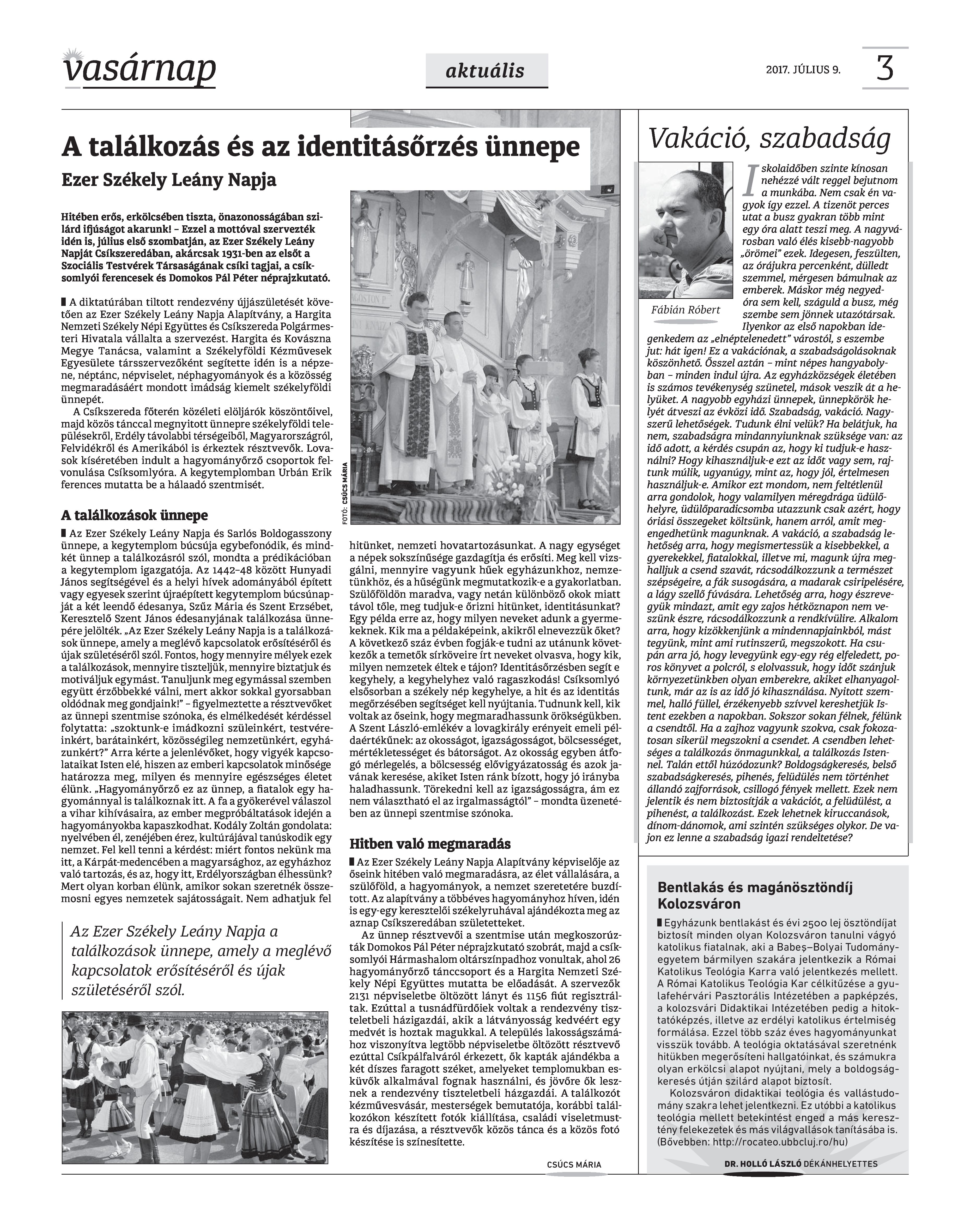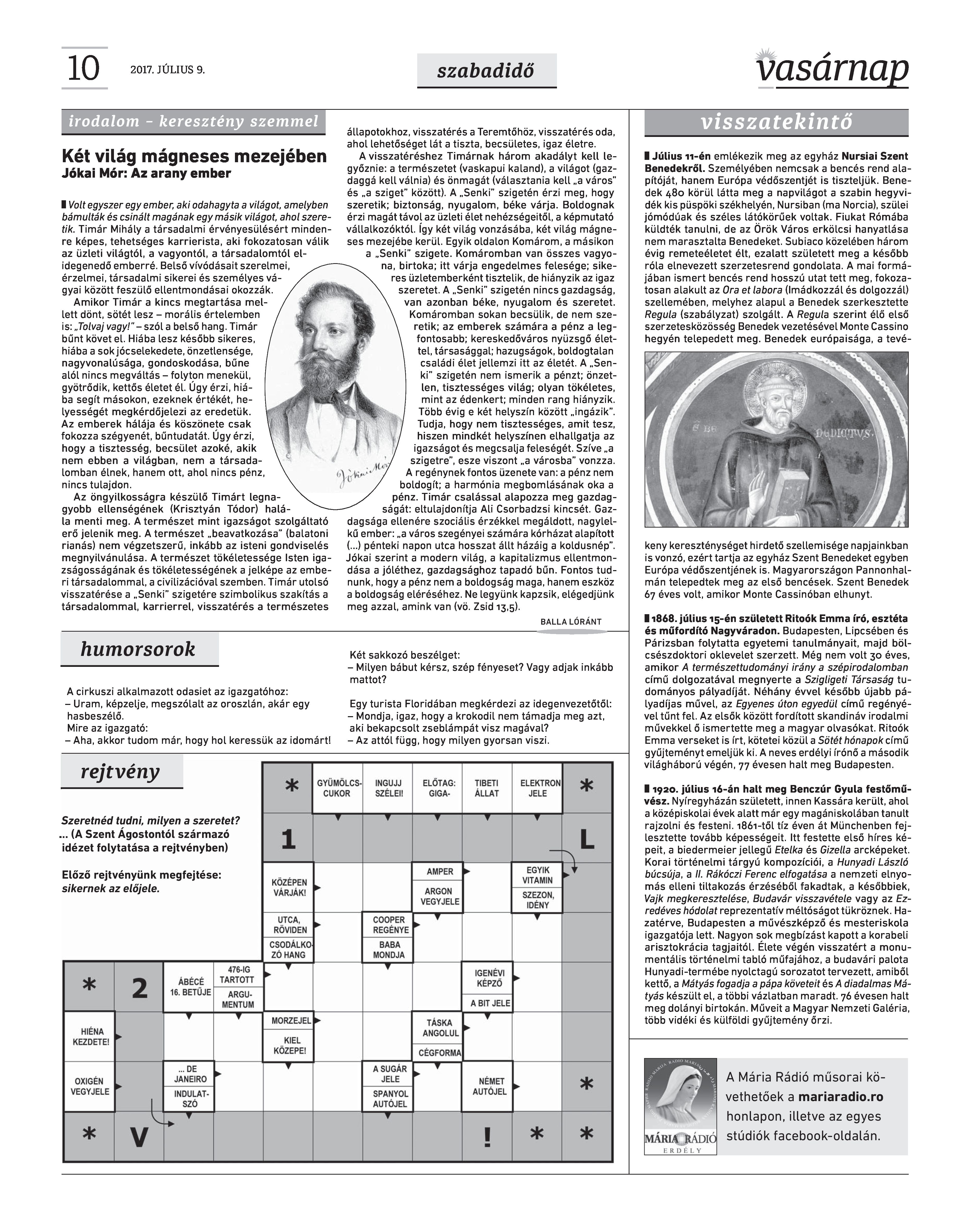 Vasárnap Katolikus Hetilap 2017. július 9. / XXVII. évf. / 28. számának digitális változata
