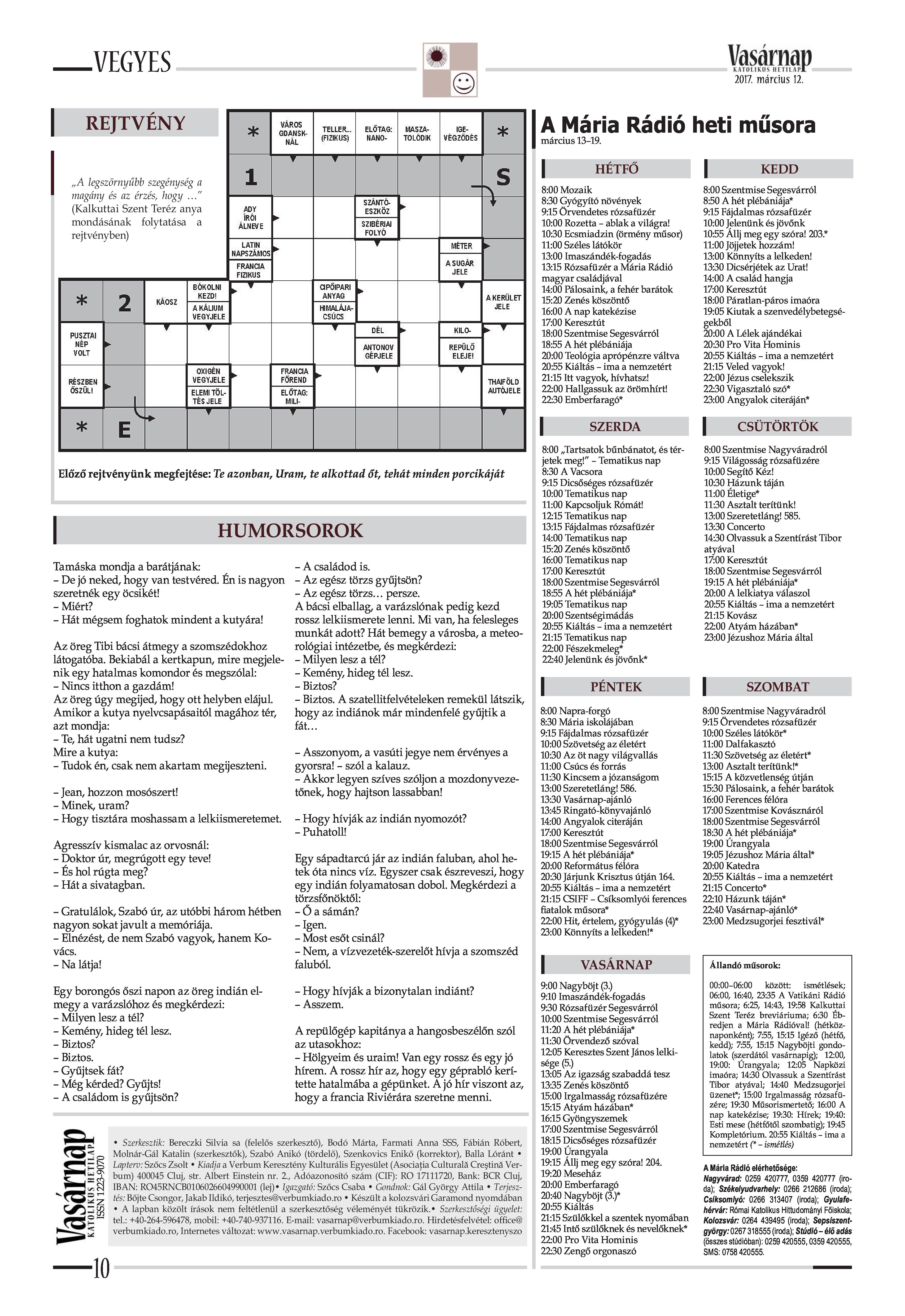 VASÁRNAP - 2017. MÁRCIUS 12. A Vasárnap Katolikus Hetilap 2017. március 12. / XXVII. évf. / 11. számának digitális változata.