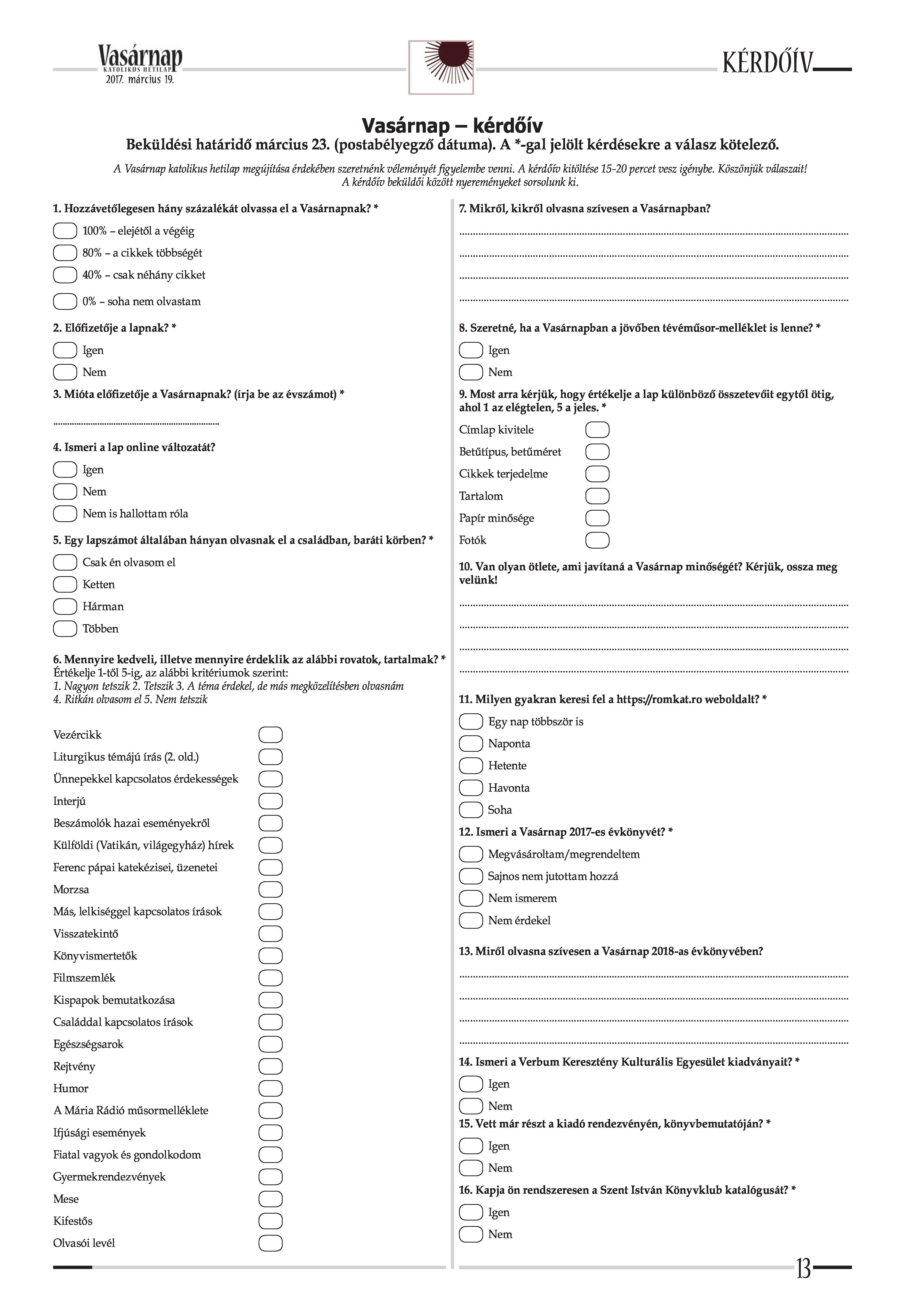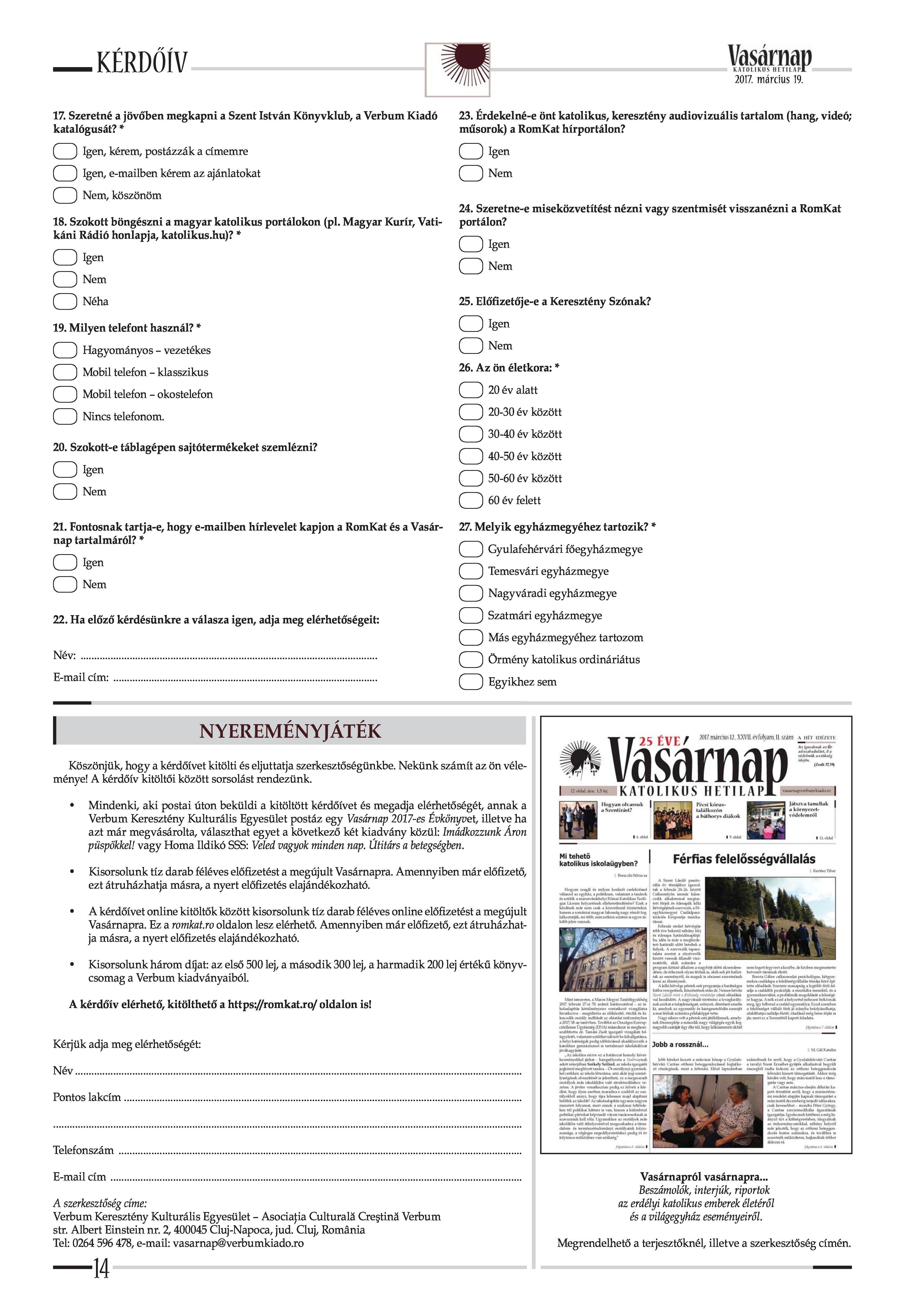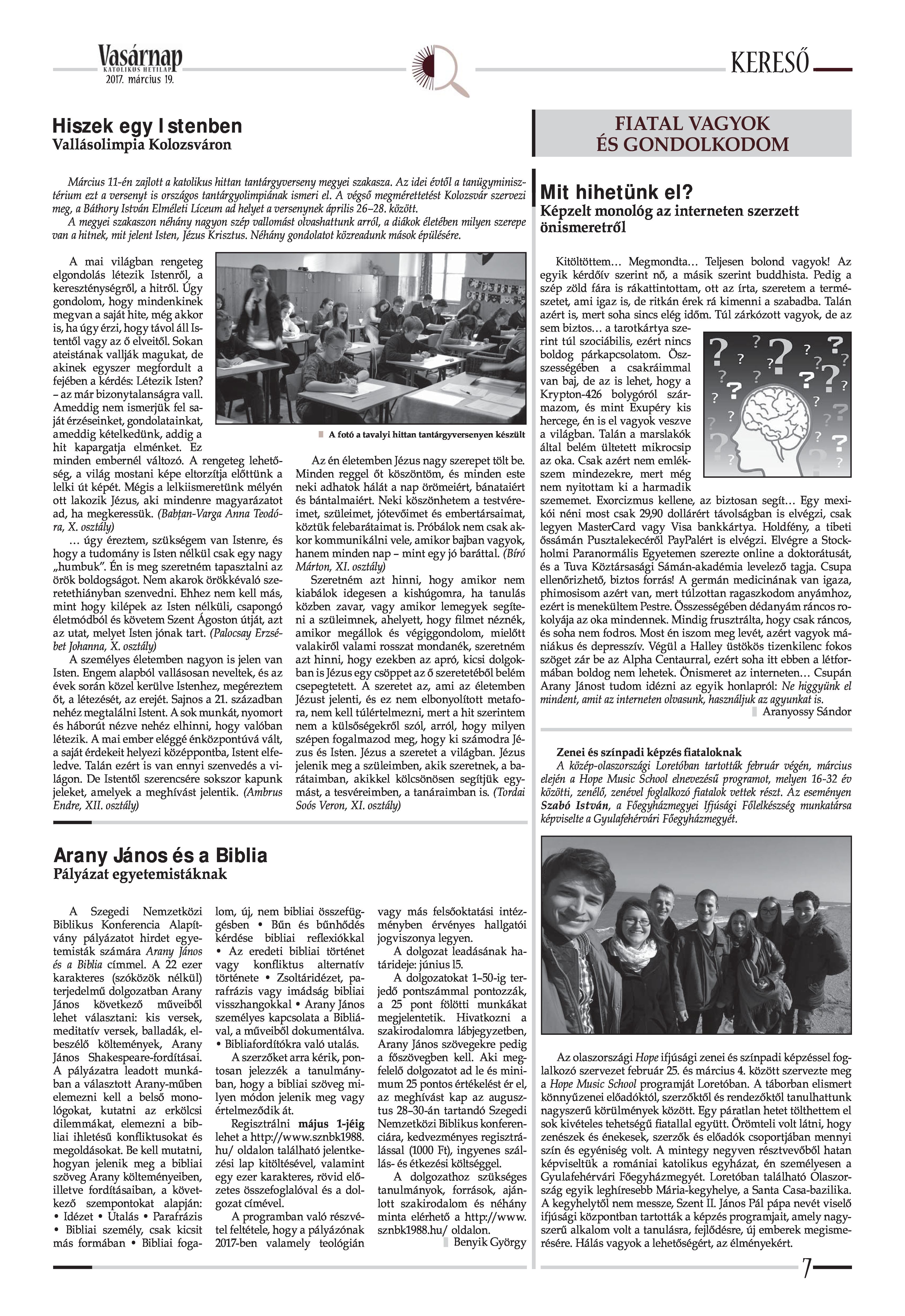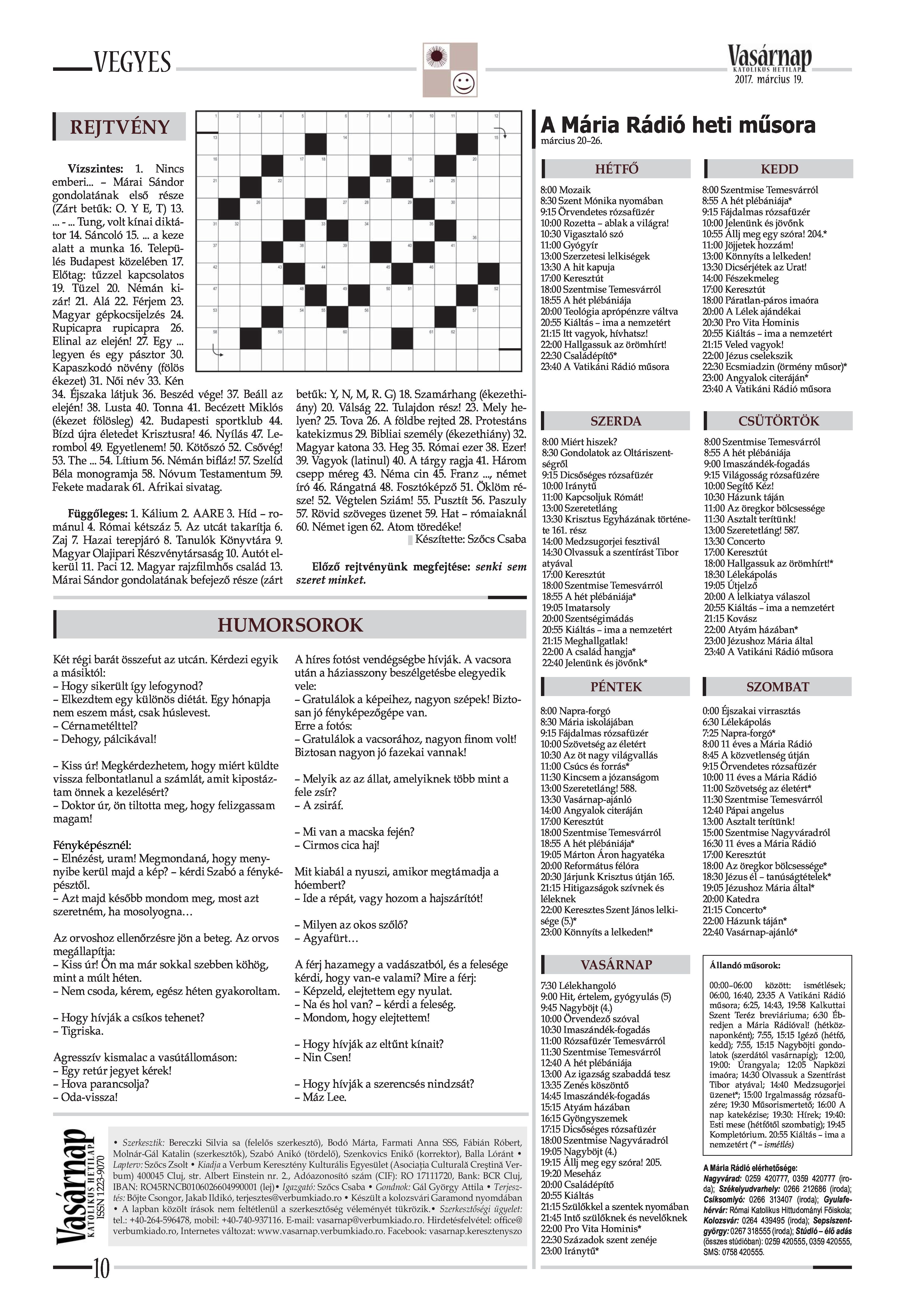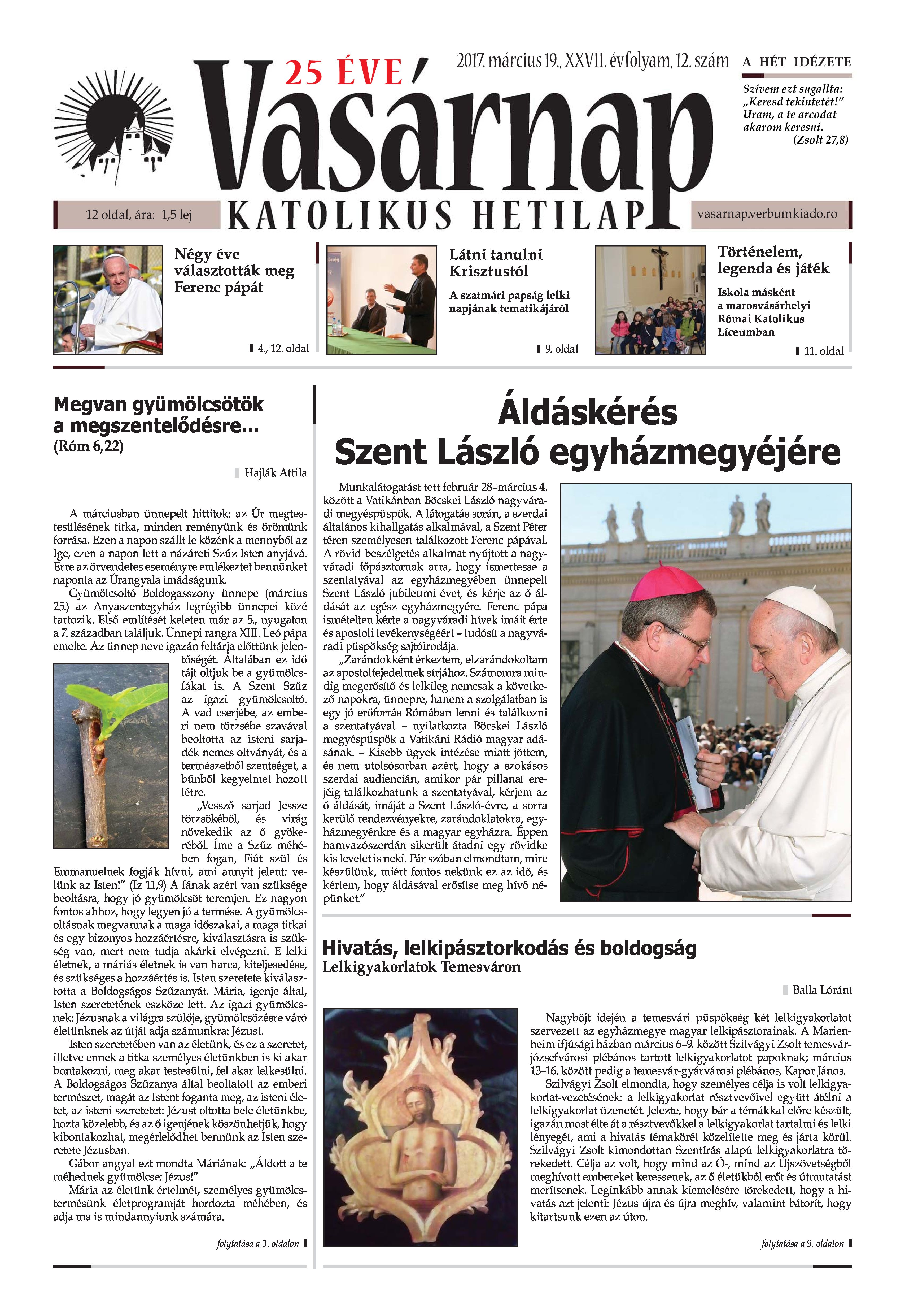 VASÁRNAP - 2017. MÁRCIUS 19. A Vasárnap Katolikus Hetilap 2017. március 19. / XXVII. évf. / 12. számának digitális változata.