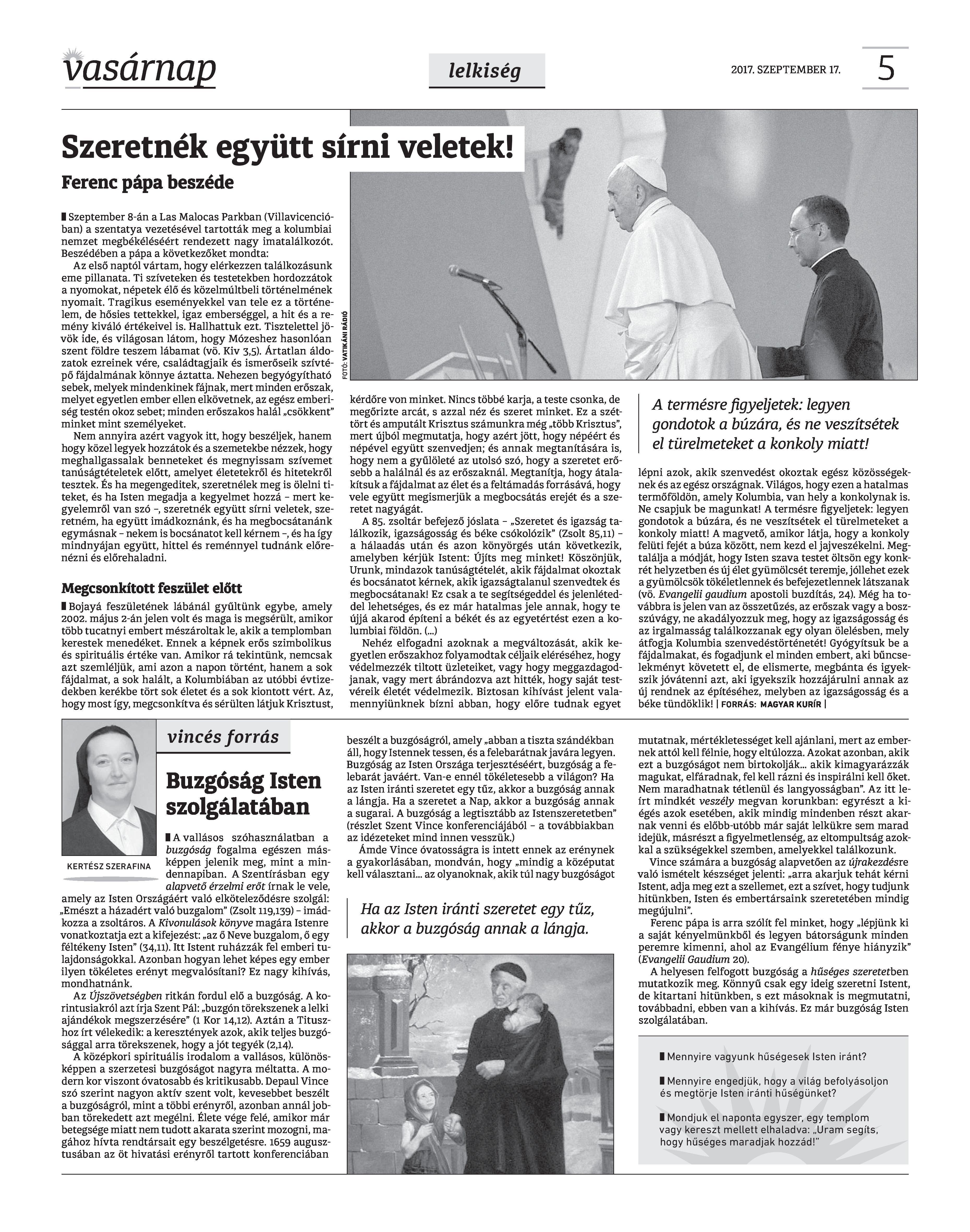 VASÁRNAP - 2017. SZEPTEMBER 17. A Vasárnap Katolikus Hetilap 2017. szeptember 17. / XXVII. évf. / 38. számának digitális változata. 1 / 12 2 & 3 / 12 4 & 5 / 12 6 & 7 / 12 8 & 9 / 12 10 & 11 / 12 12 / 12