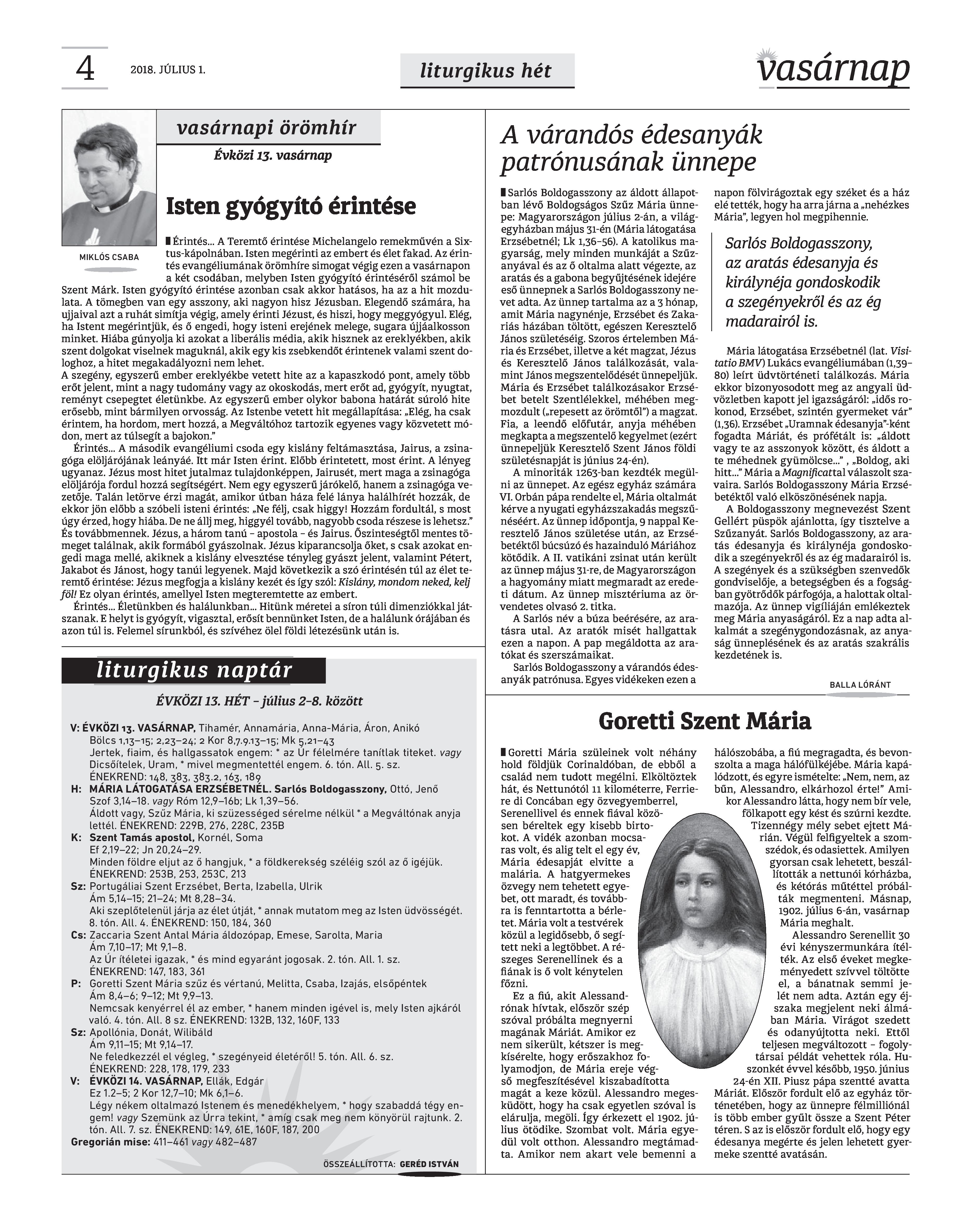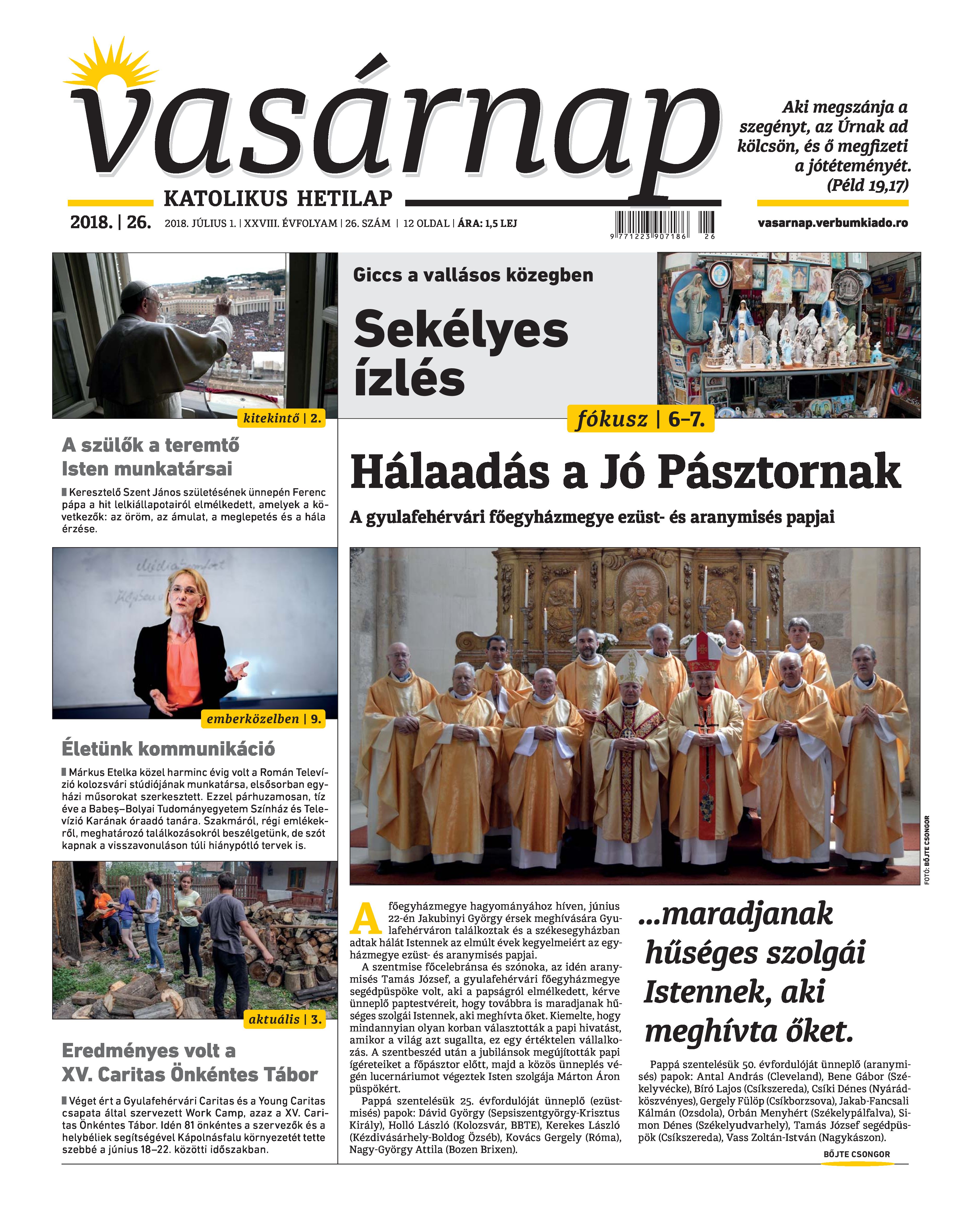 VASÁRNAP - 2018. JÚLIUS 1. A Vasárnap Katolikus Hetilap 2018. július 1. / XXVIII. évf. / 26. számának digitális változata. 1 / 12 2 & 3 / 12 4 & 5 / 12 6 & 7 / 12 8 & 9 / 12 10 & 11 / 12 12 / 12