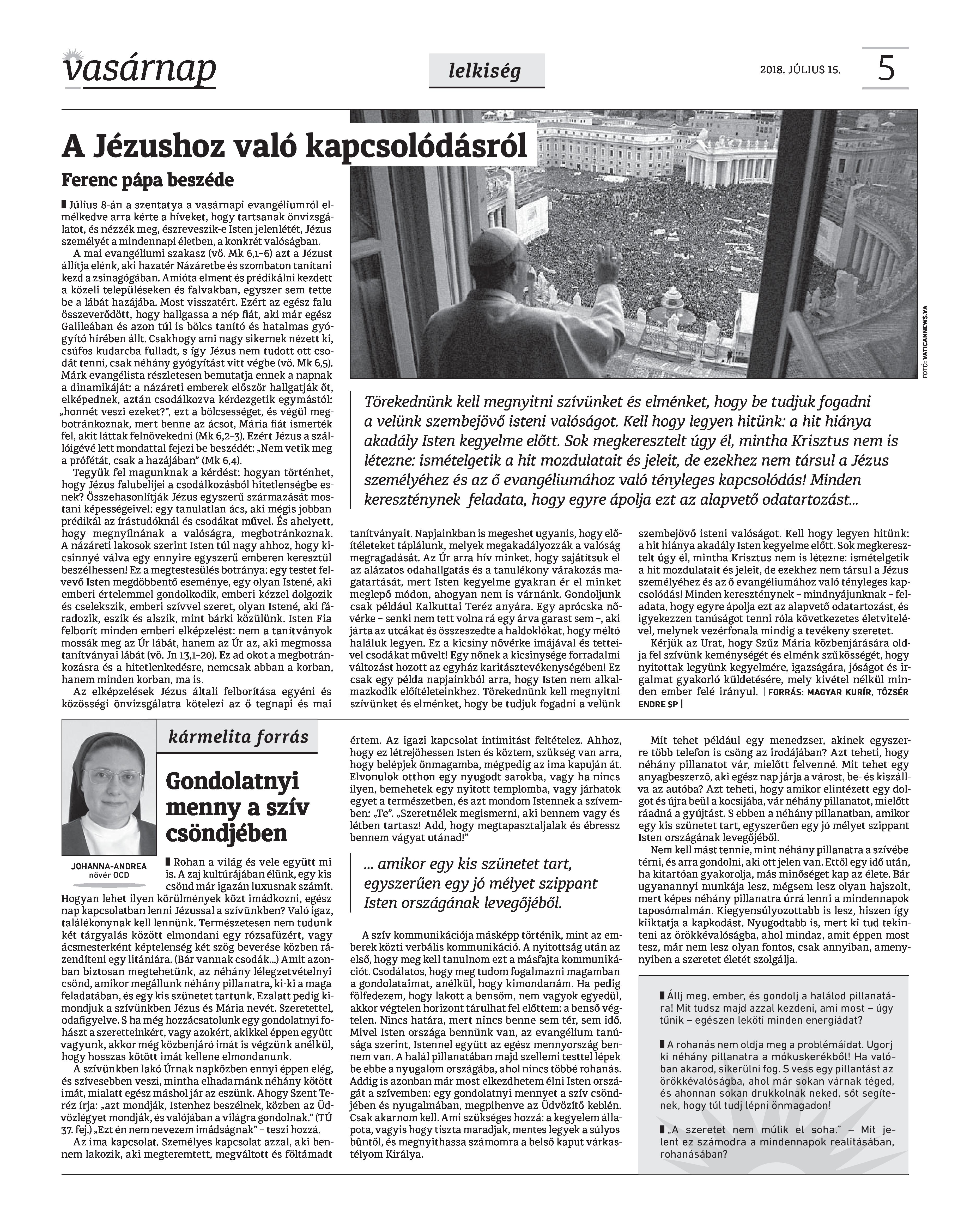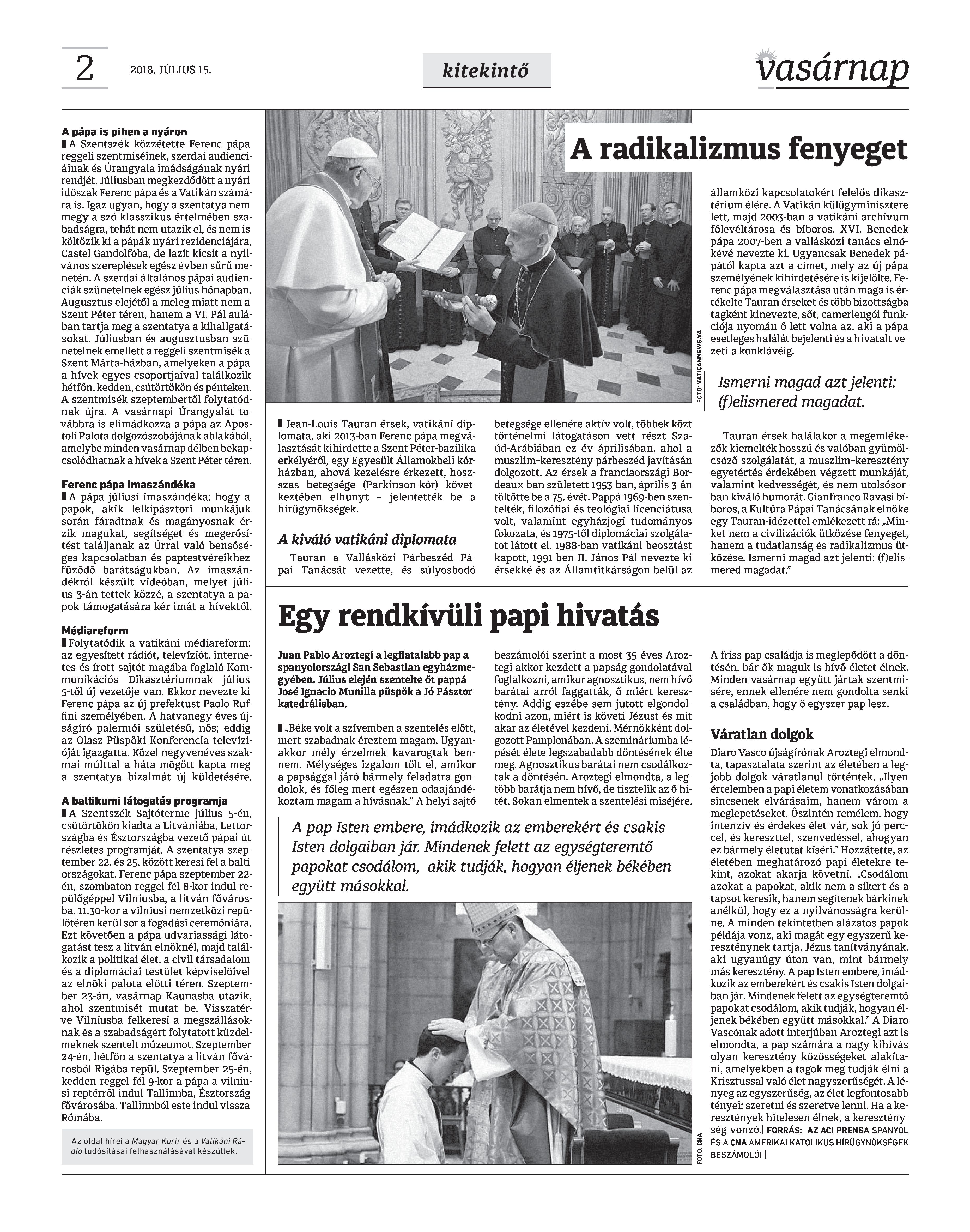 Vasárnap Katolikus Hetilap 2018. július 15. / XXVIII. évf. / 28. számának digitális változata.