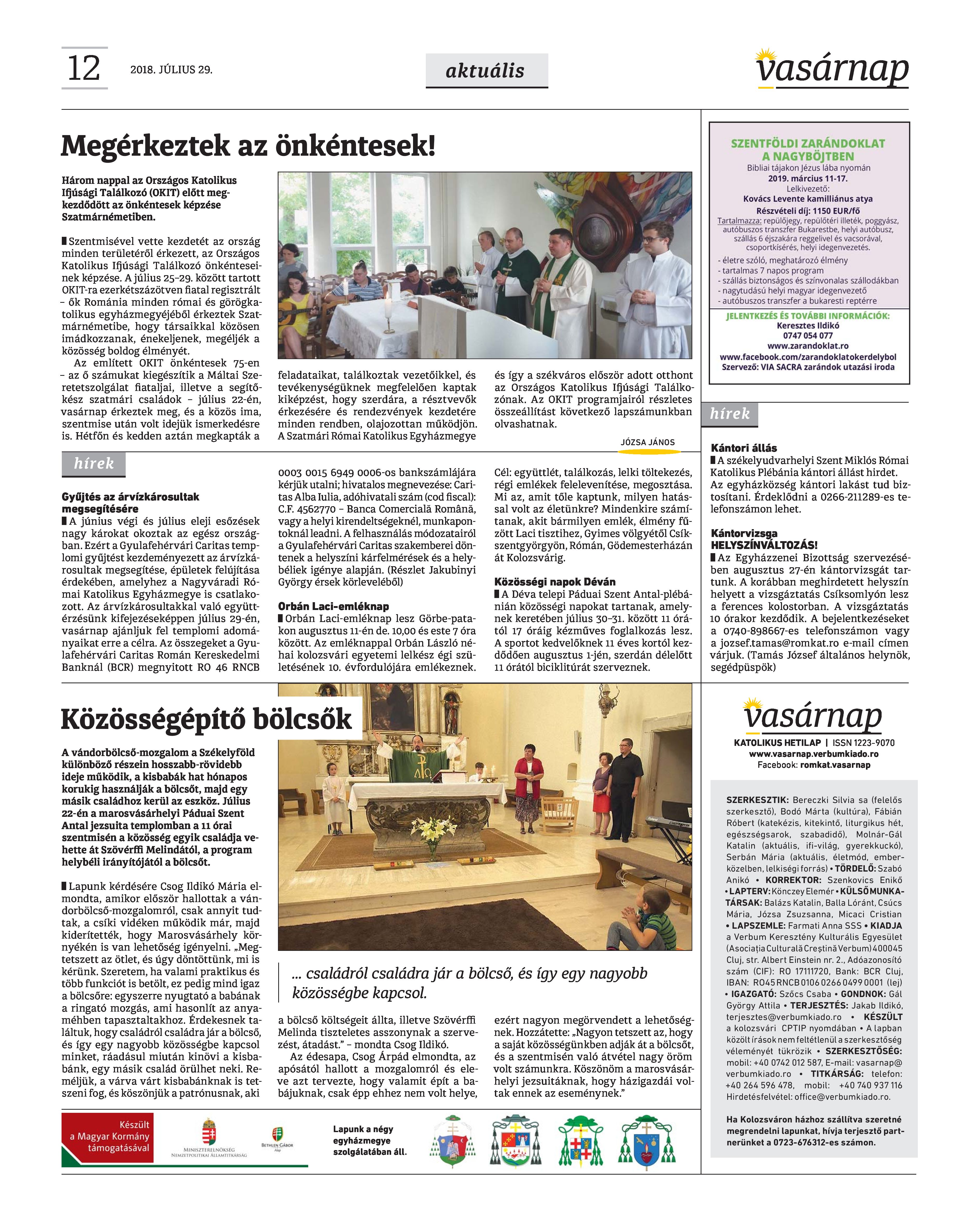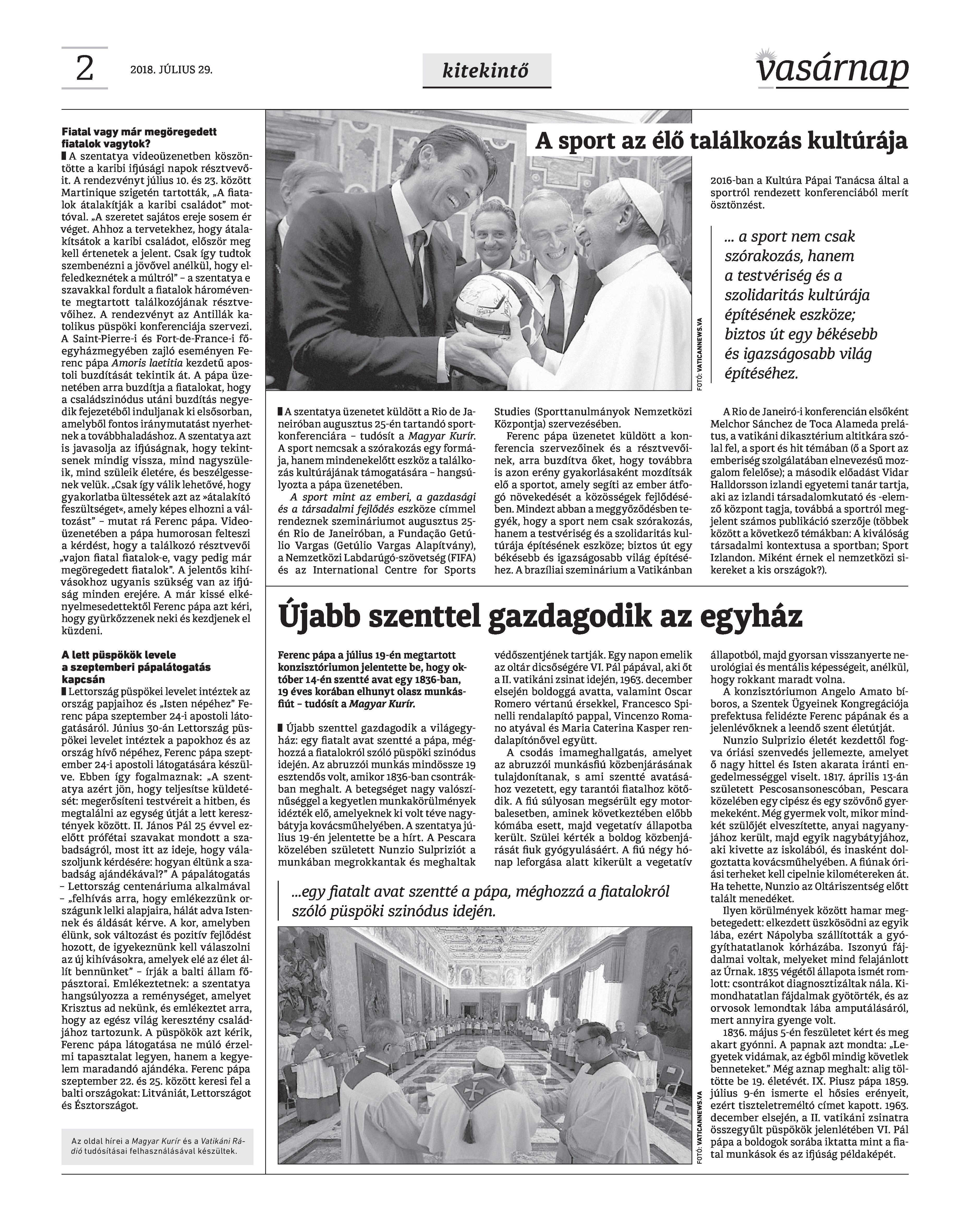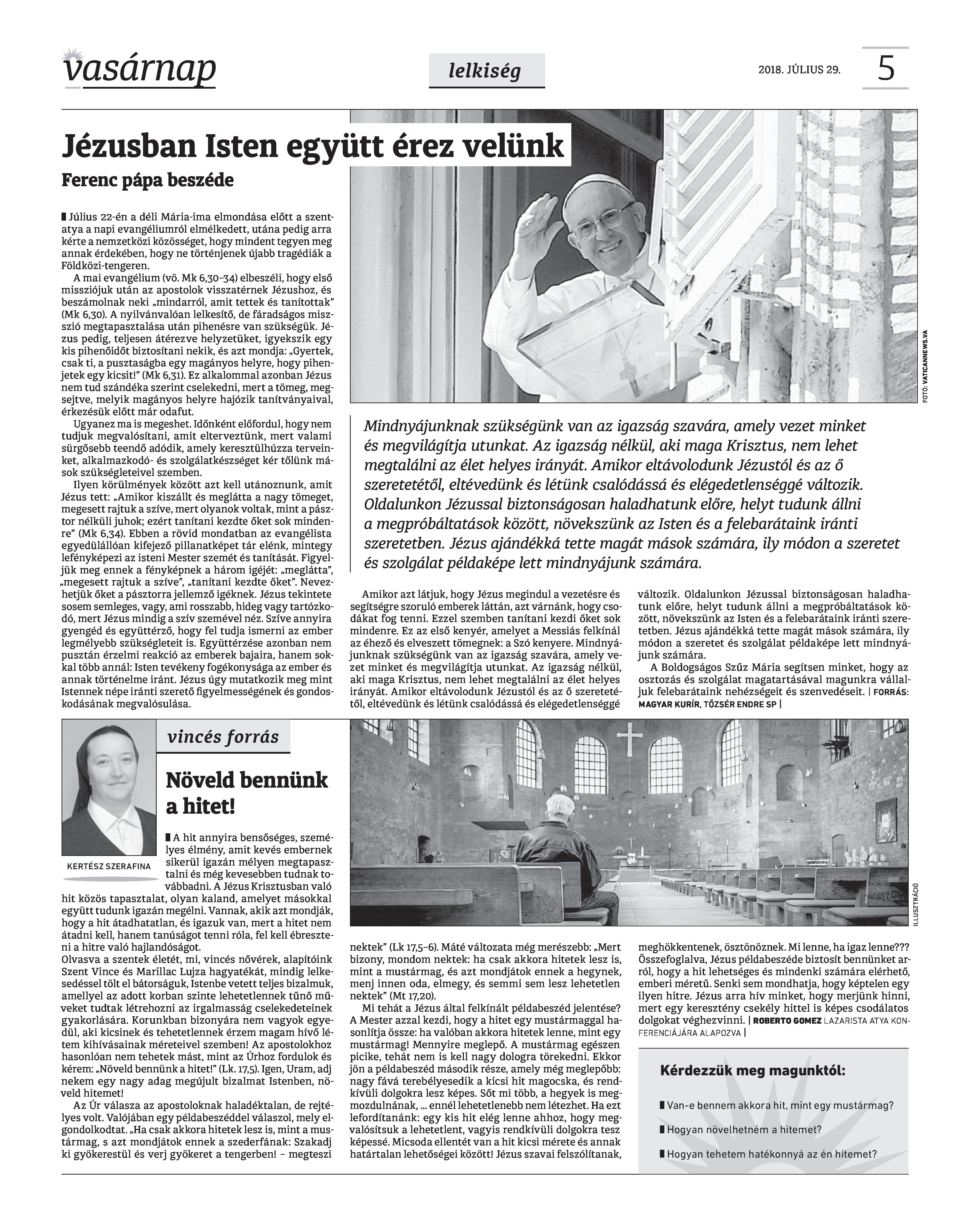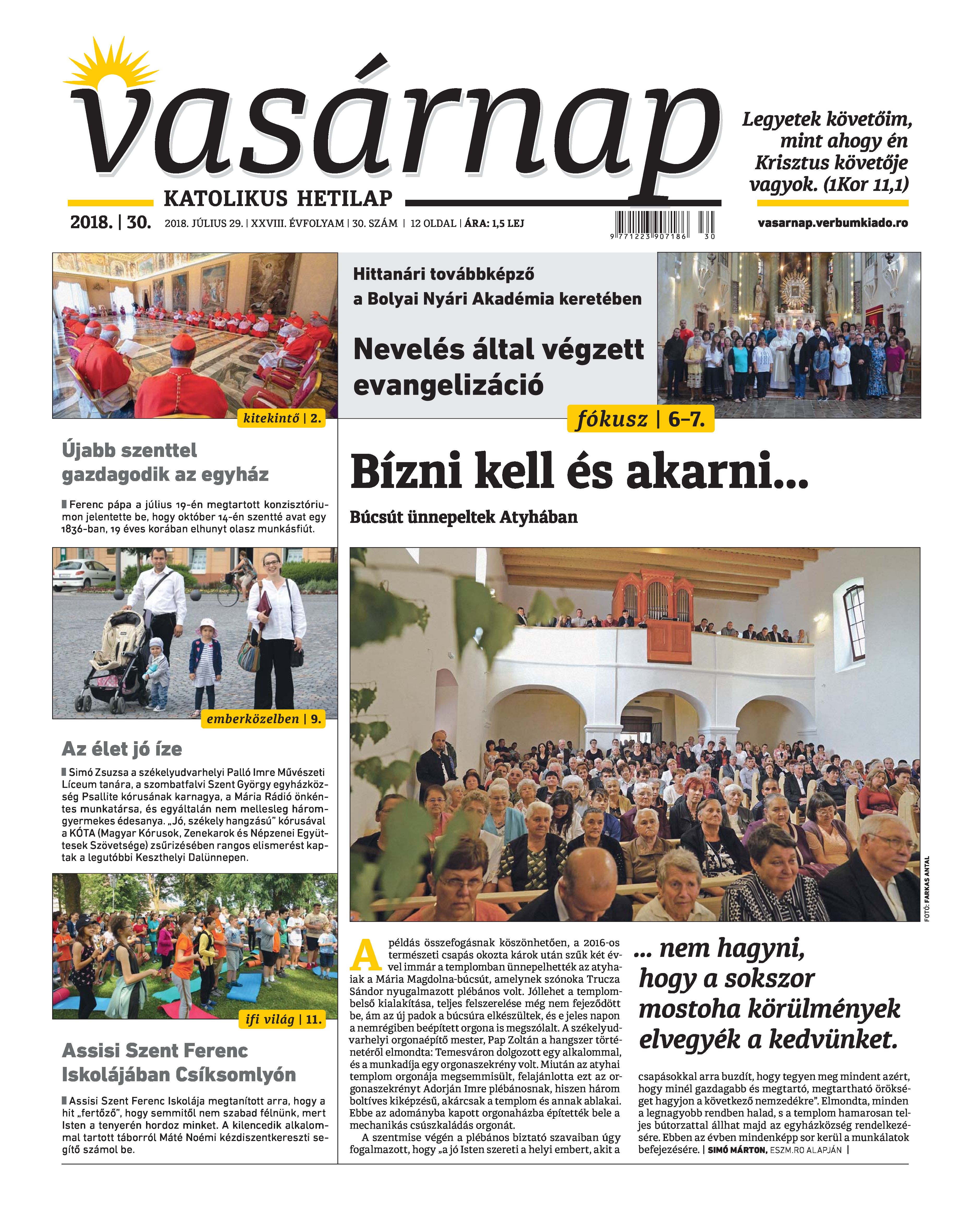 VASÁRNAP - 2018. JÚLIUS 29. A Vasárnap Katolikus Hetilap 2018. július 29. / XXVIII. évf. / 30. számának digitális változata. 1 / 12 2 & 3 / 12 4 & 5 / 12 6 & 7 / 12 8 & 9 / 12 10 & 11 / 12 12 / 12