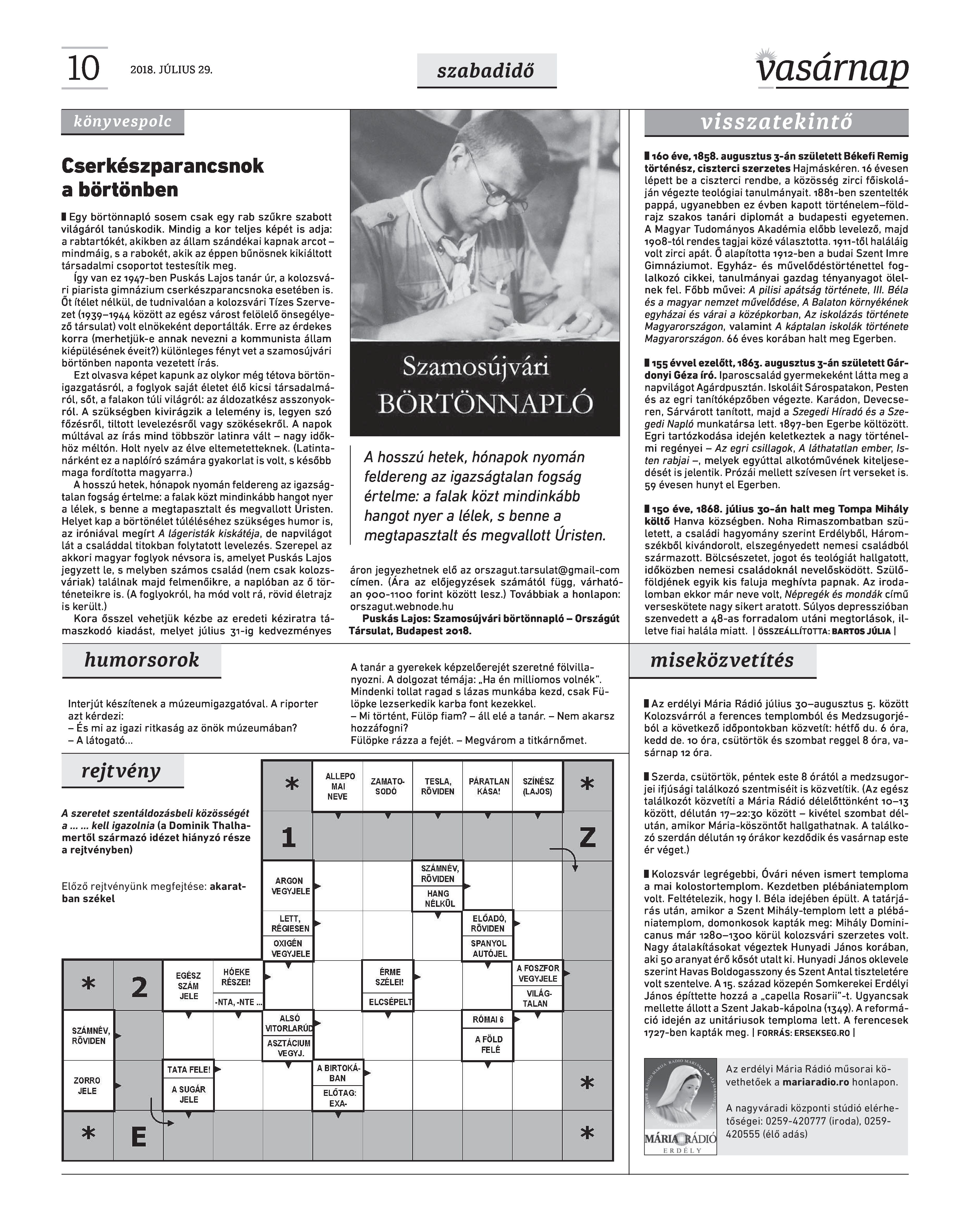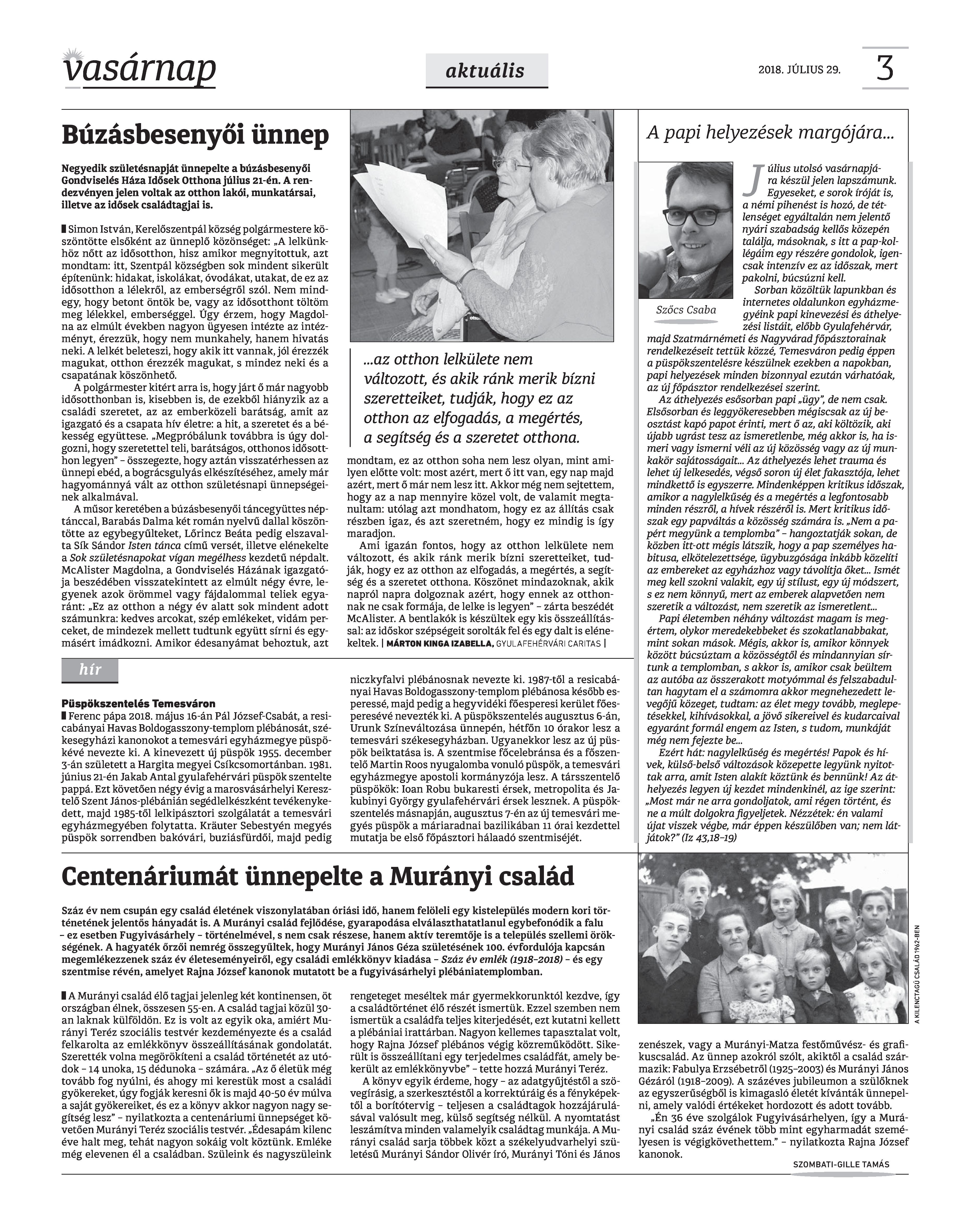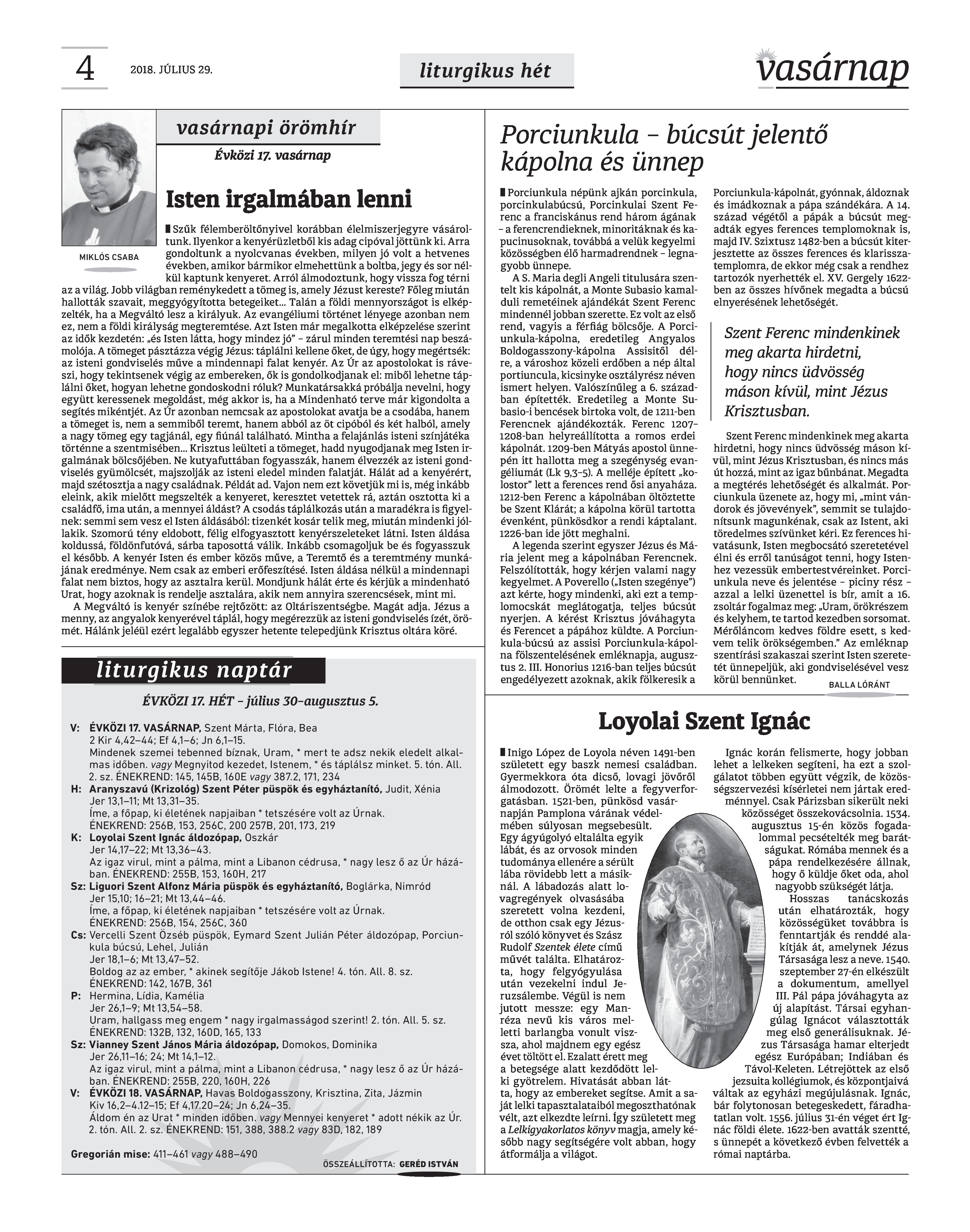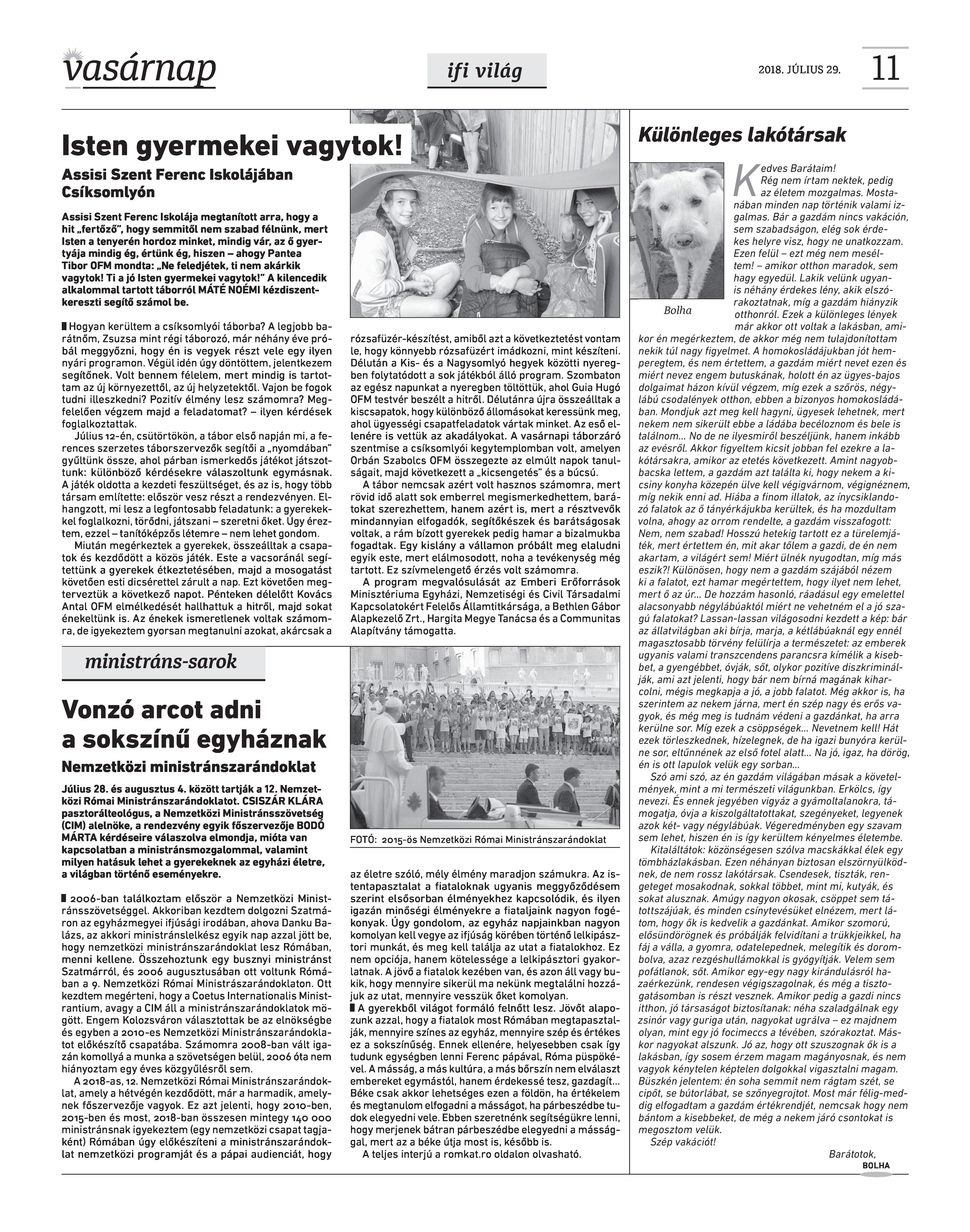 VASÁRNAP - 2018. JÚLIUS 29. A Vasárnap Katolikus Hetilap 2018. július 29. / XXVIII. évf. / 30. számának digitális változata. 1 / 12 2 & 3 / 12 4 & 5 / 12 6 & 7 / 12 8 & 9 / 12 10 & 11 / 12 12 / 12
