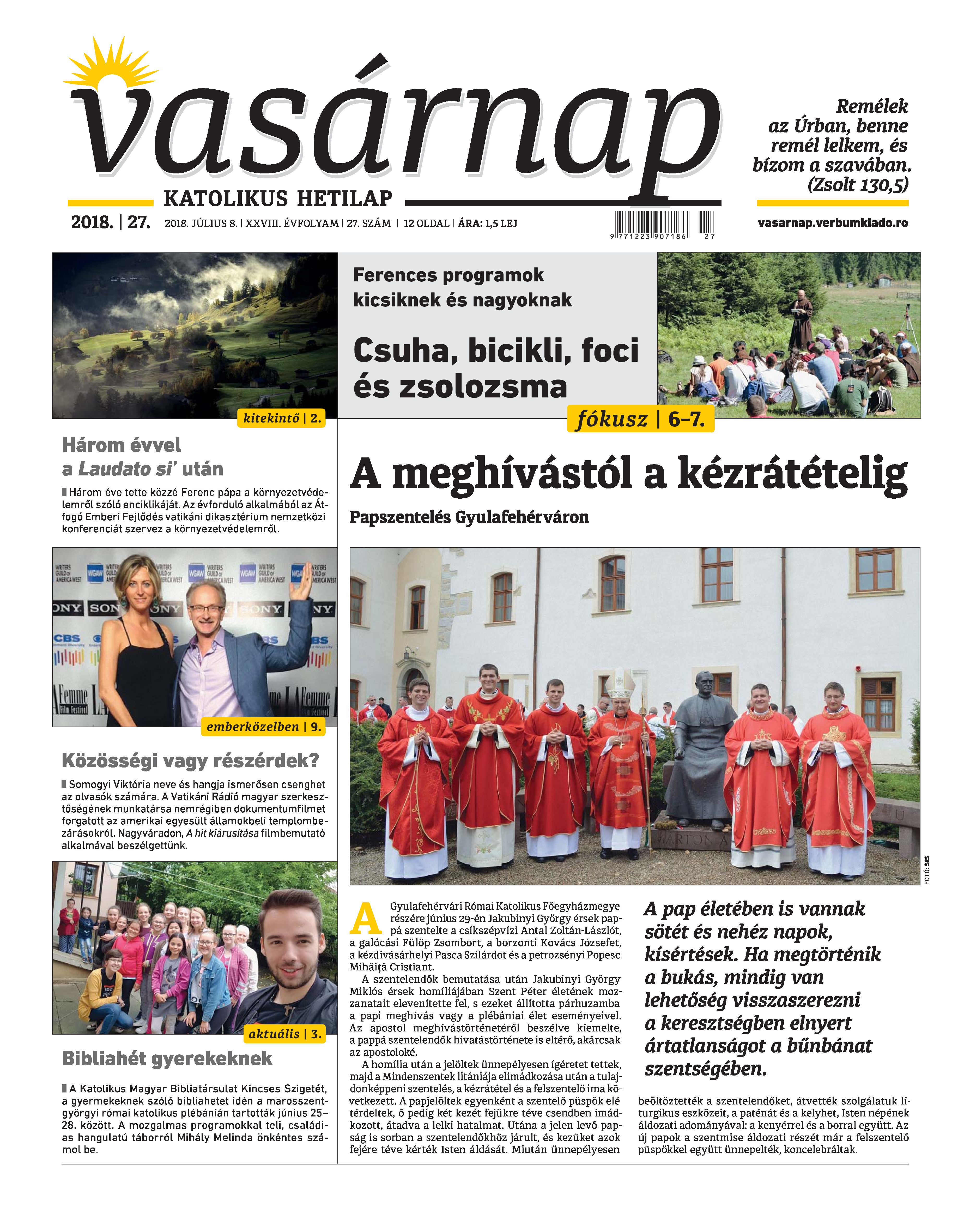 Vasárnap Katolikus Hetilap 2018. július 8. / XXVIII. évf. / 27. számának digitális változata.