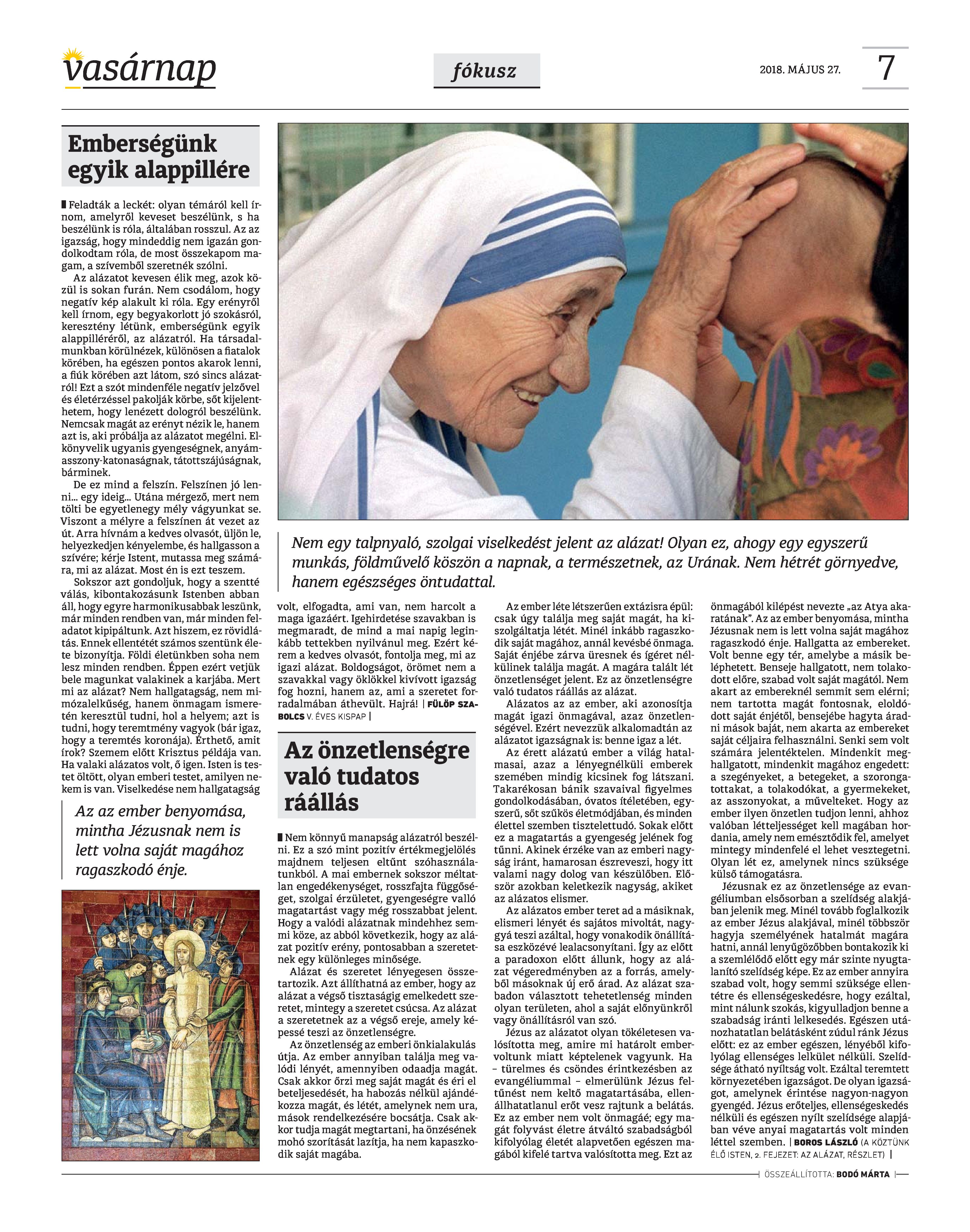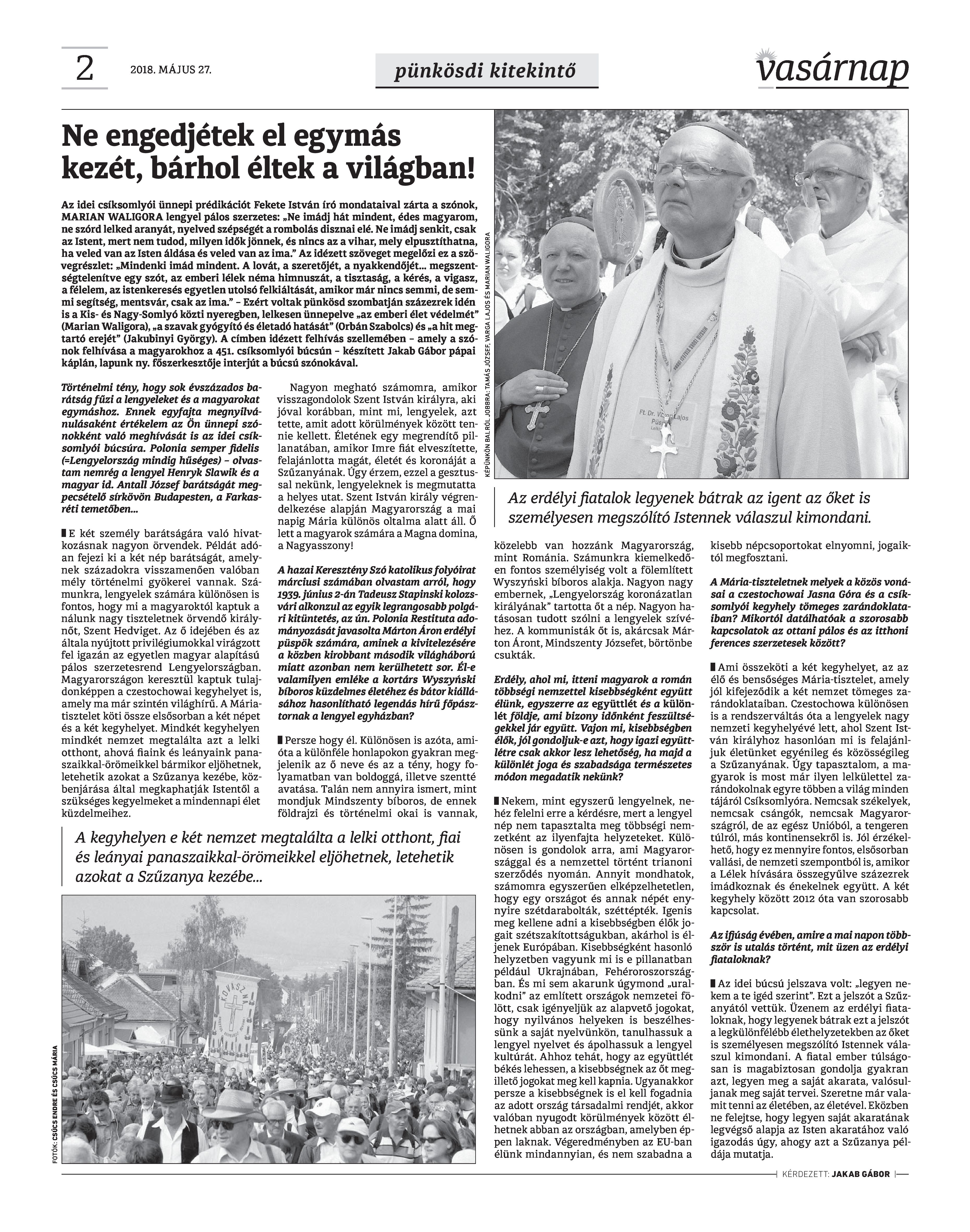 VASÁRNAP - 2018. MÁJUS 27. A Vasárnap Katolikus Hetilap 2018. május 27. / XXVIII. évf. / 21. számának digitális változata. 1 / 12 2 & 3 / 12 4 & 5 / 12 6 & 7 / 12 8 & 9 / 12 10 & 11 / 12 12 / 12