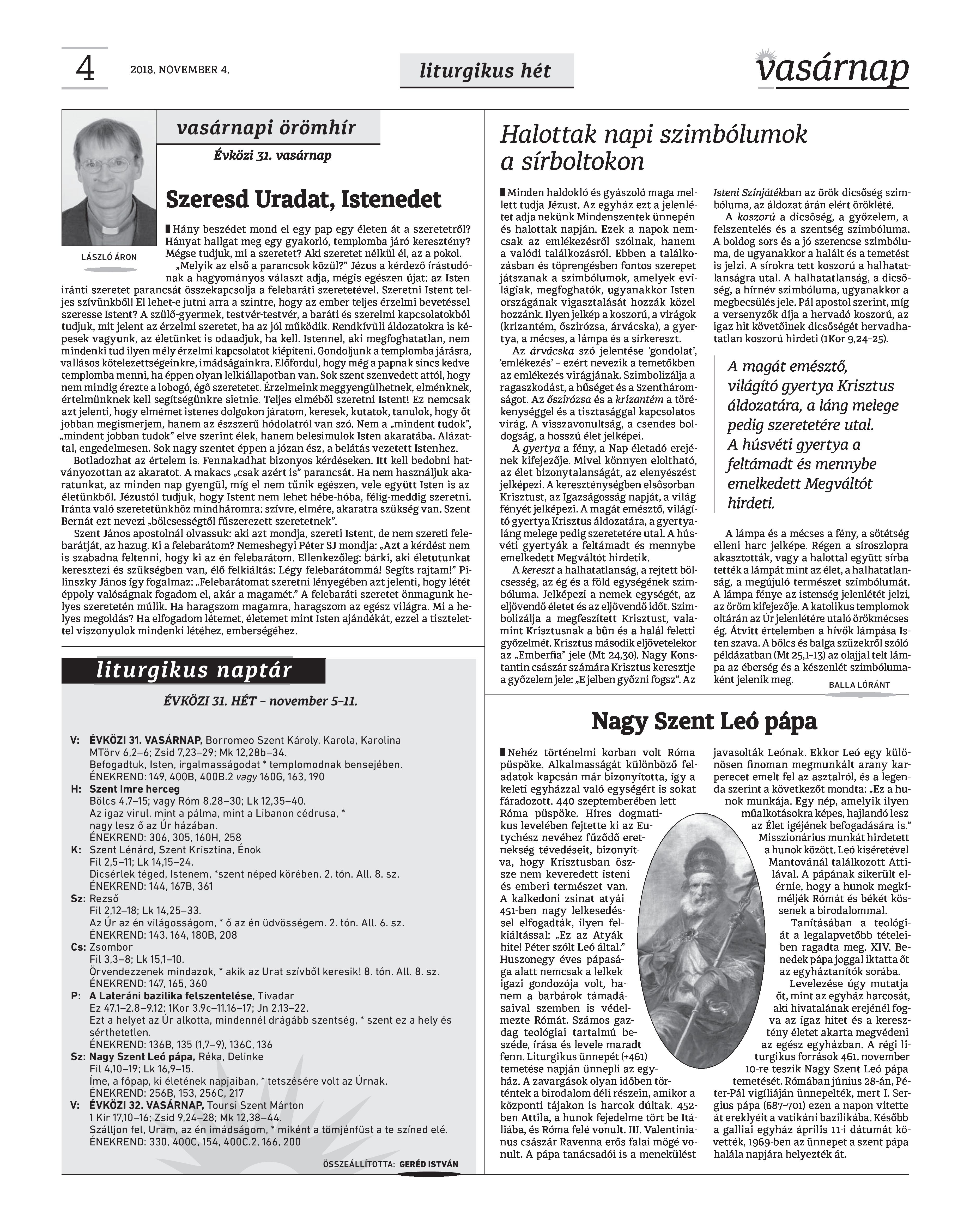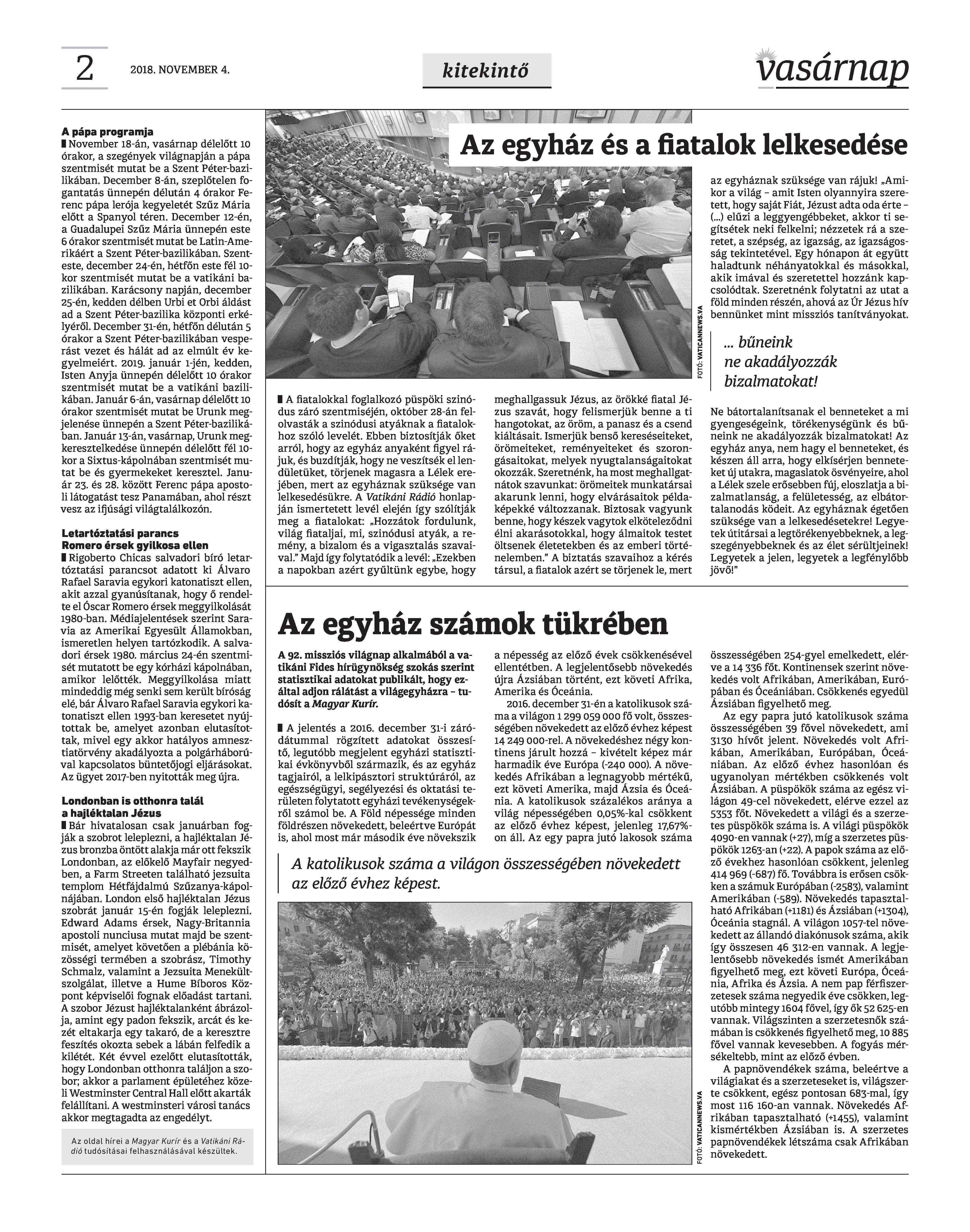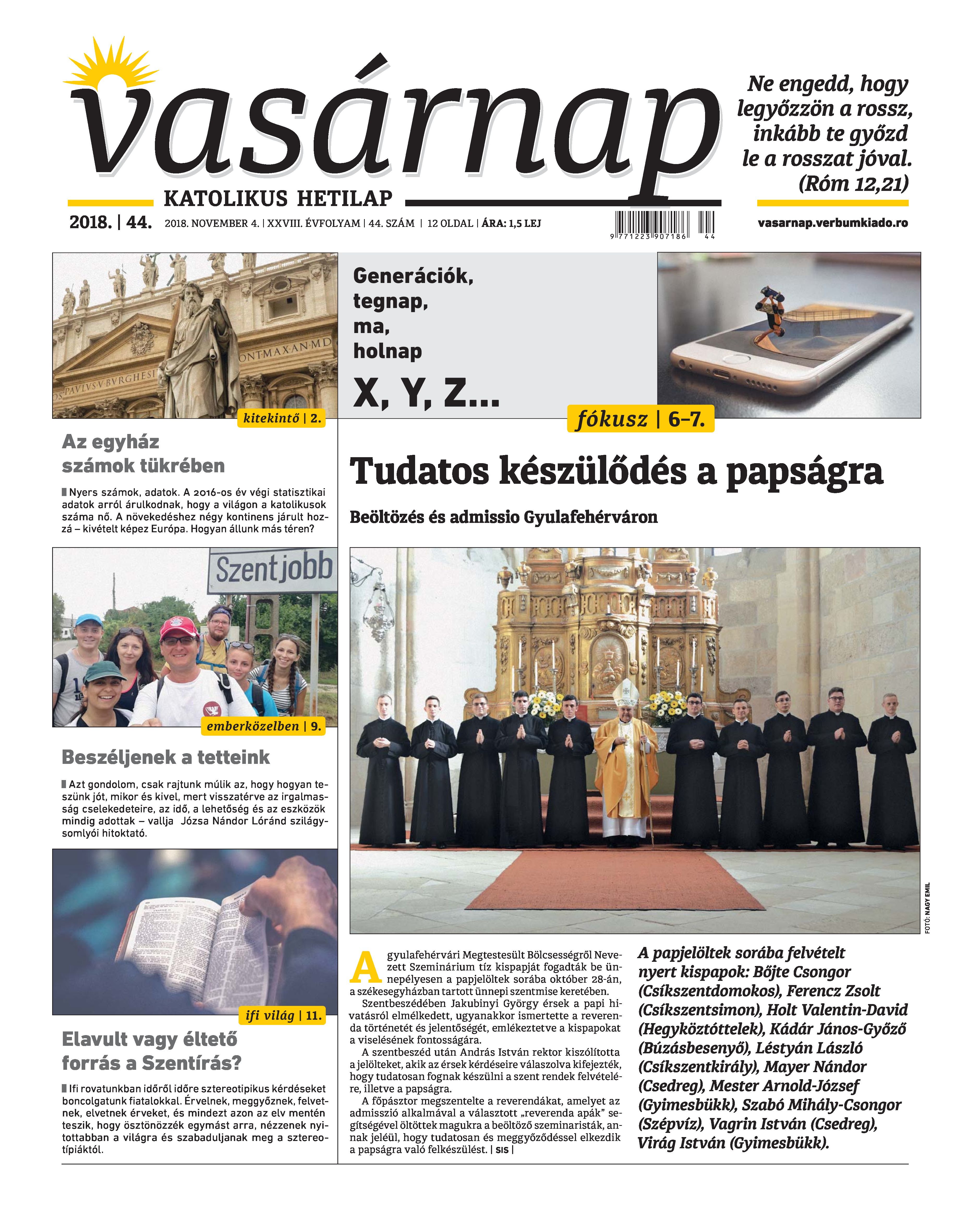 VASÁRNAP - 2018. NOVEMBER 4. A Vasárnap Katolikus Hetilap 2018. november 4. / XXVIII. évf. / 44. számának digitális változata.