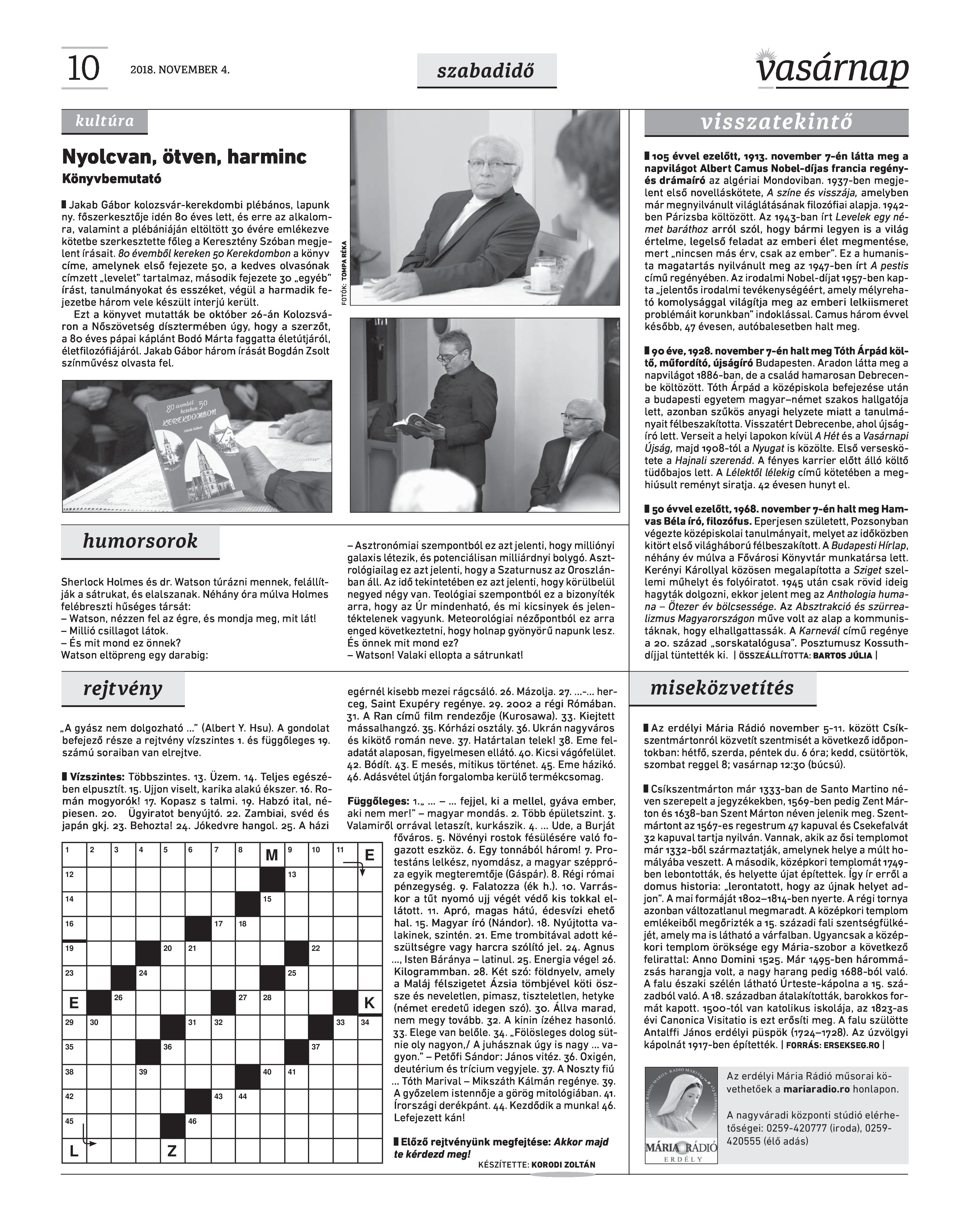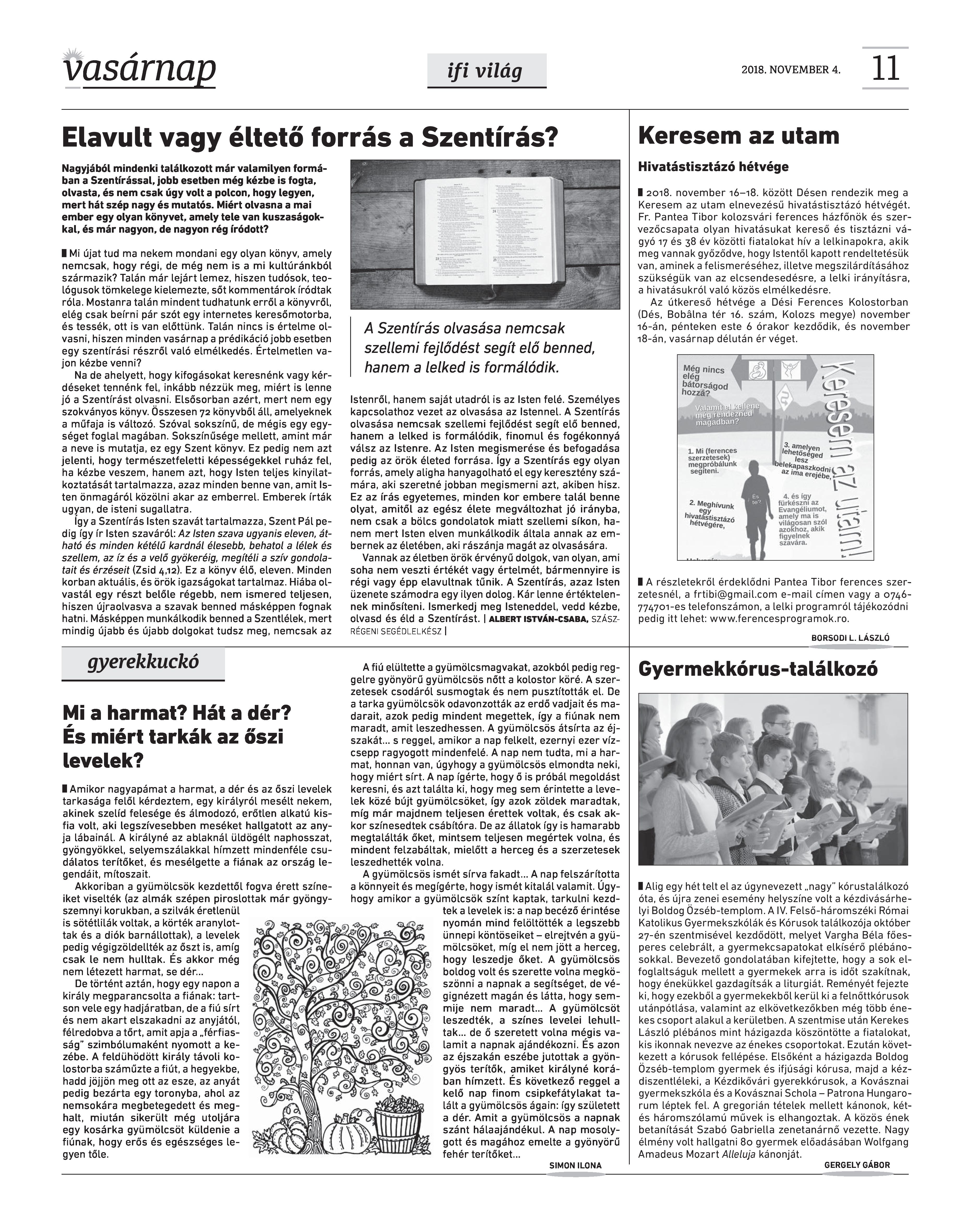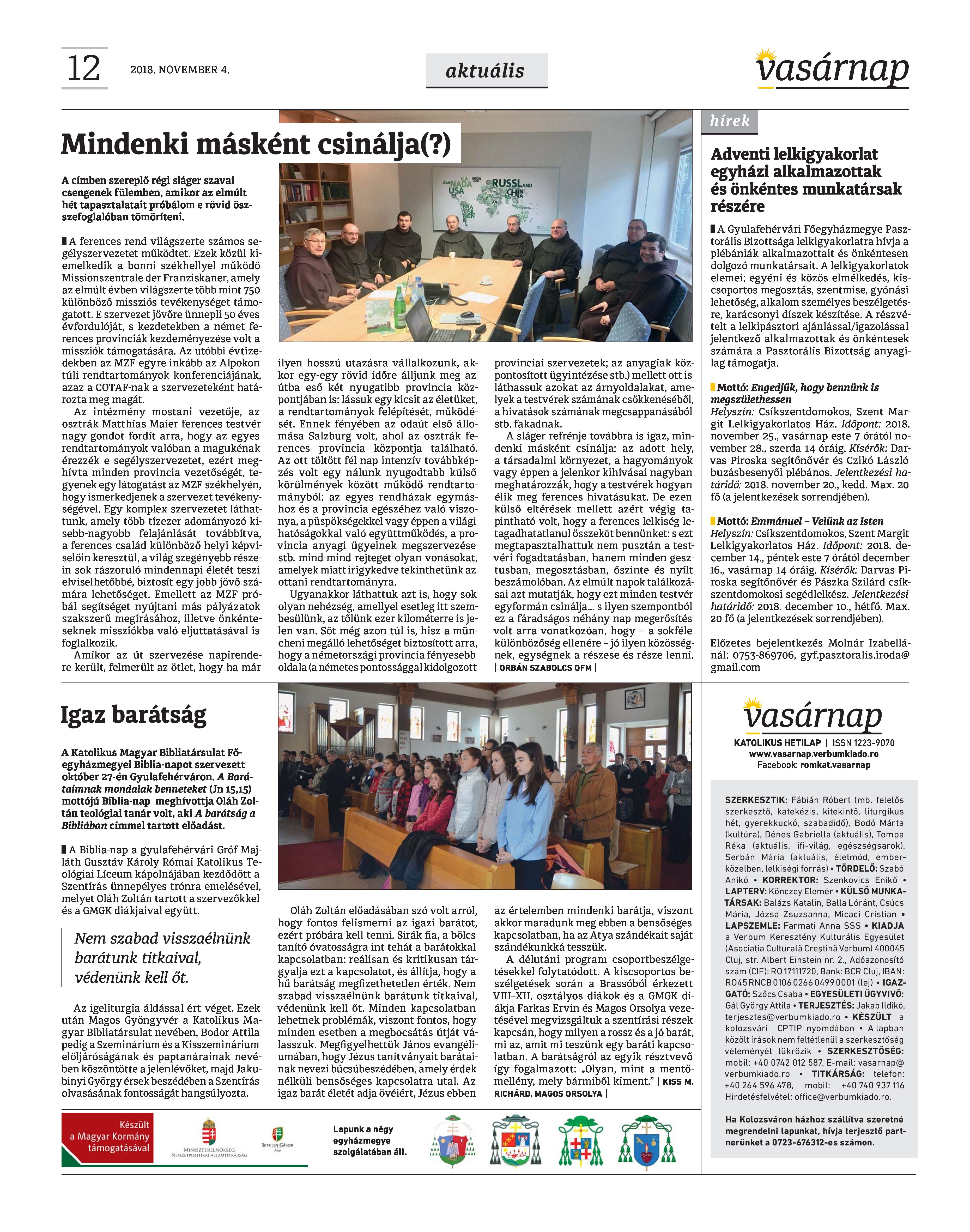 VASÁRNAP - 2018. NOVEMBER 4. A Vasárnap Katolikus Hetilap 2018. november 4. / XXVIII. évf. / 44. számának digitális változata.