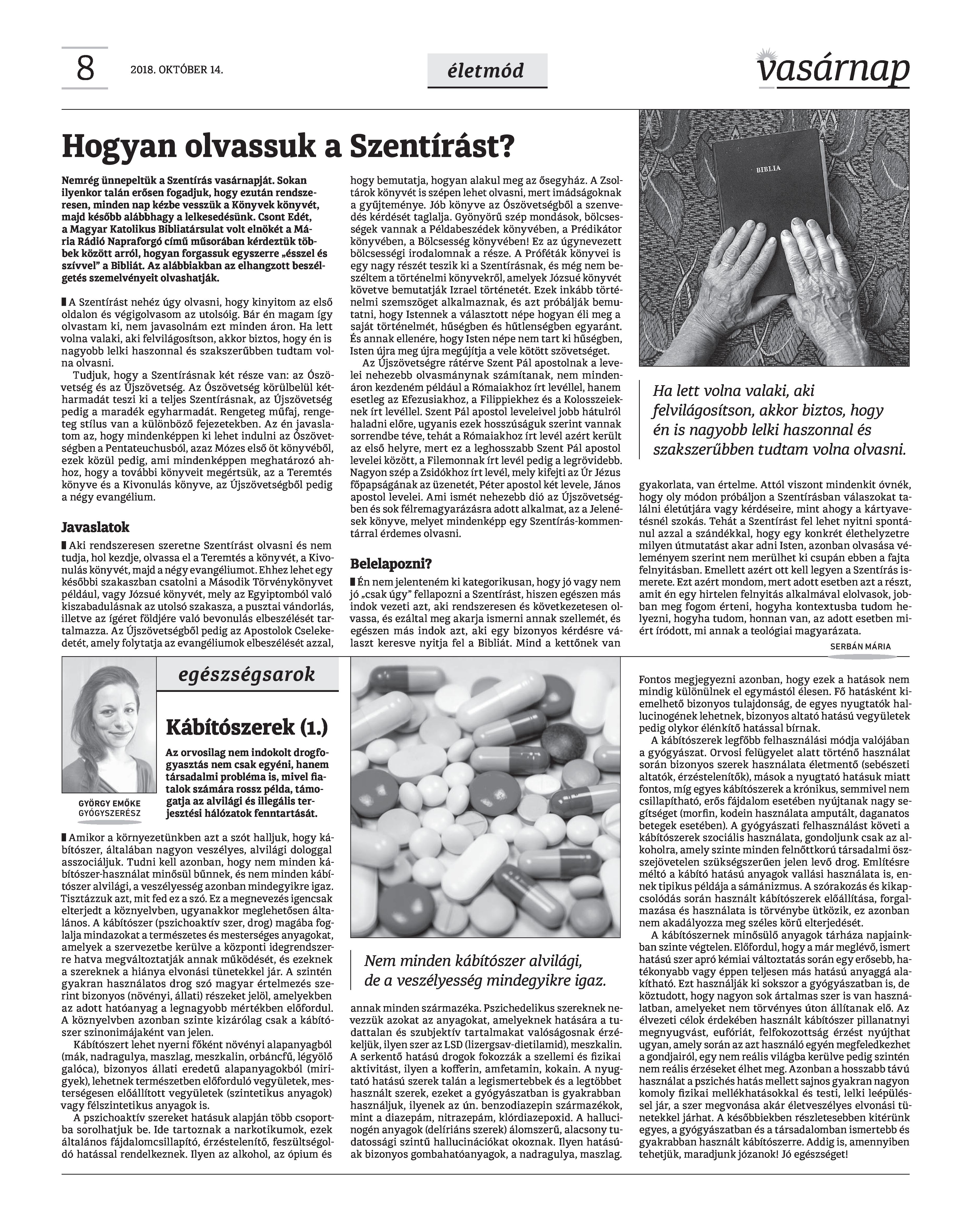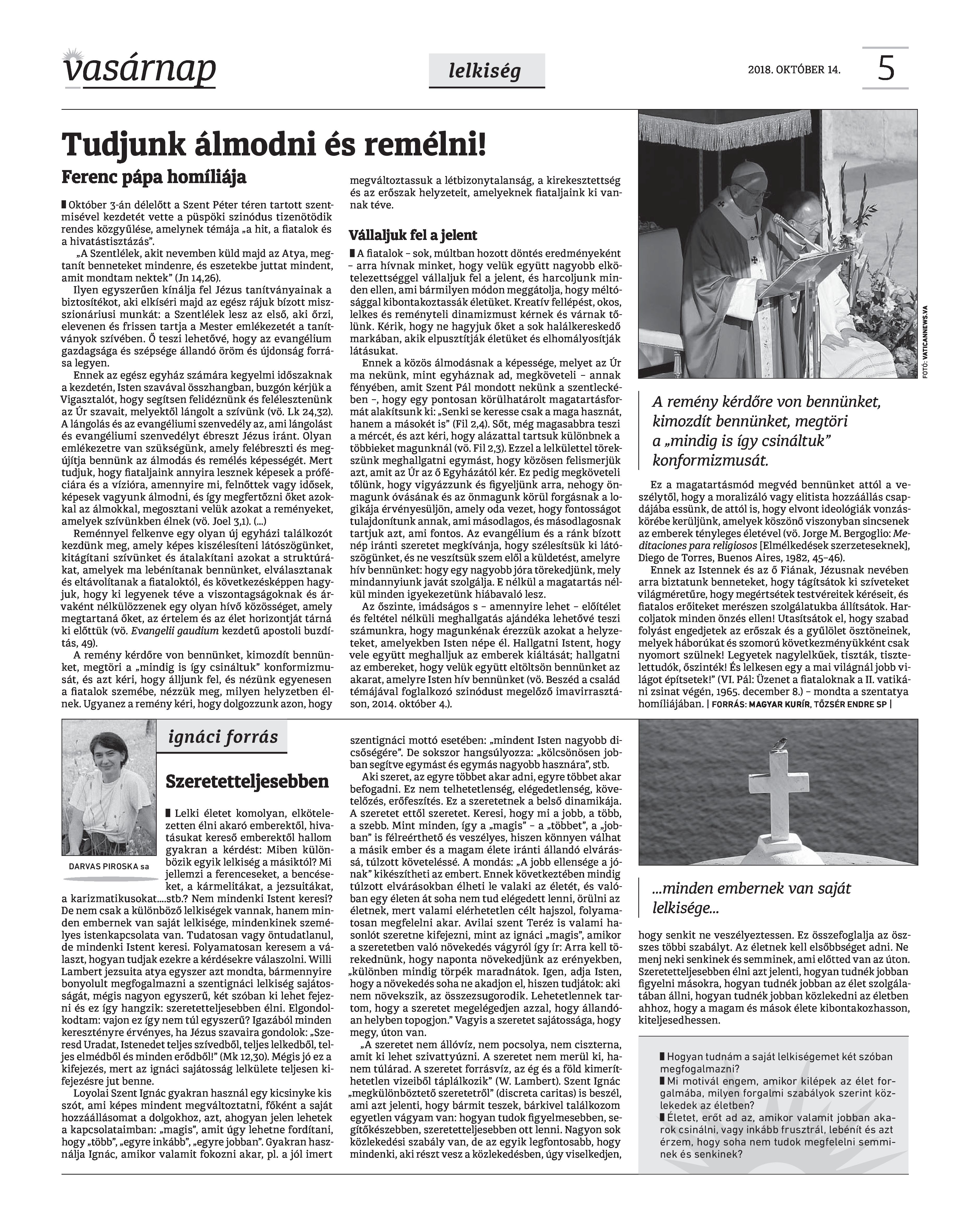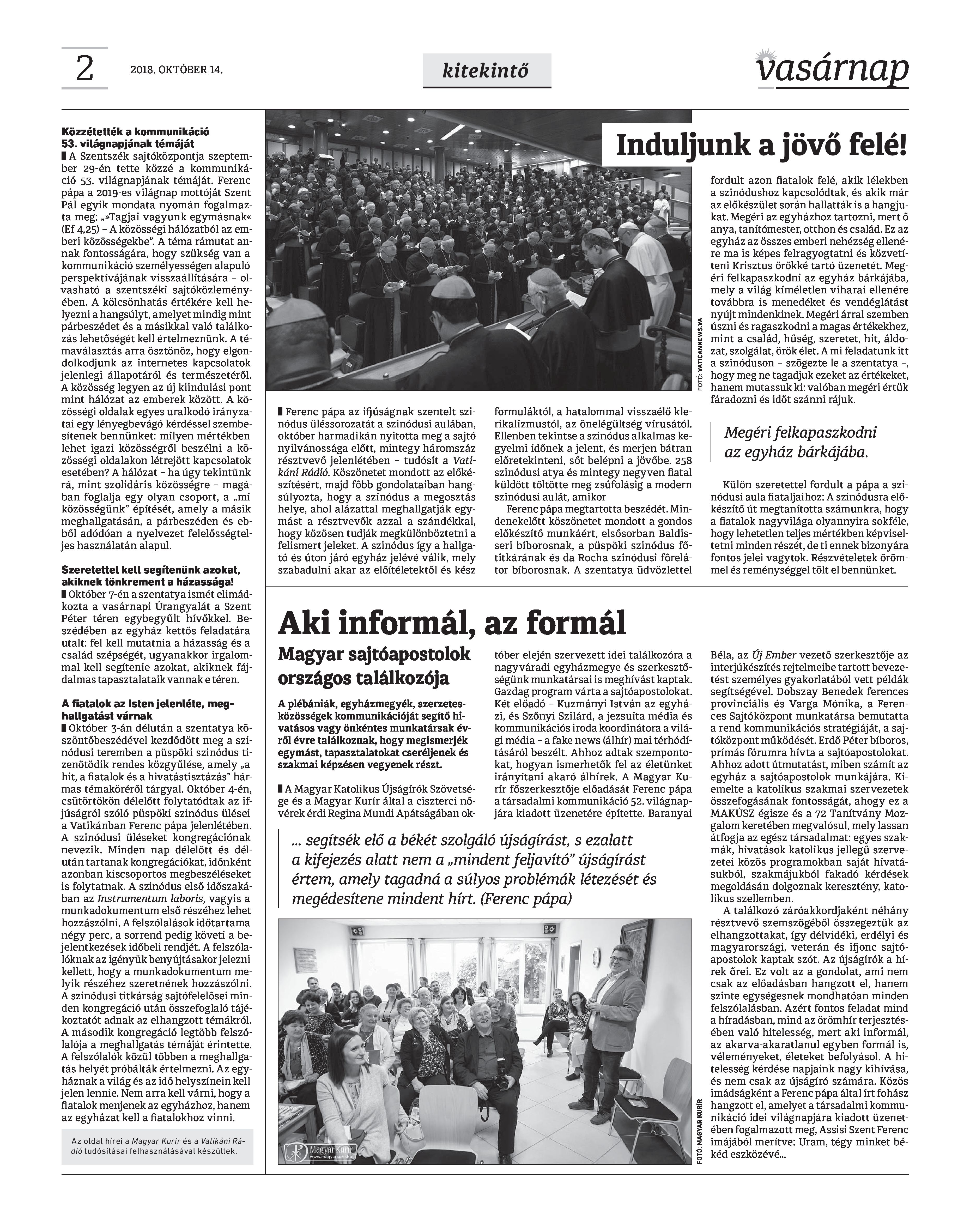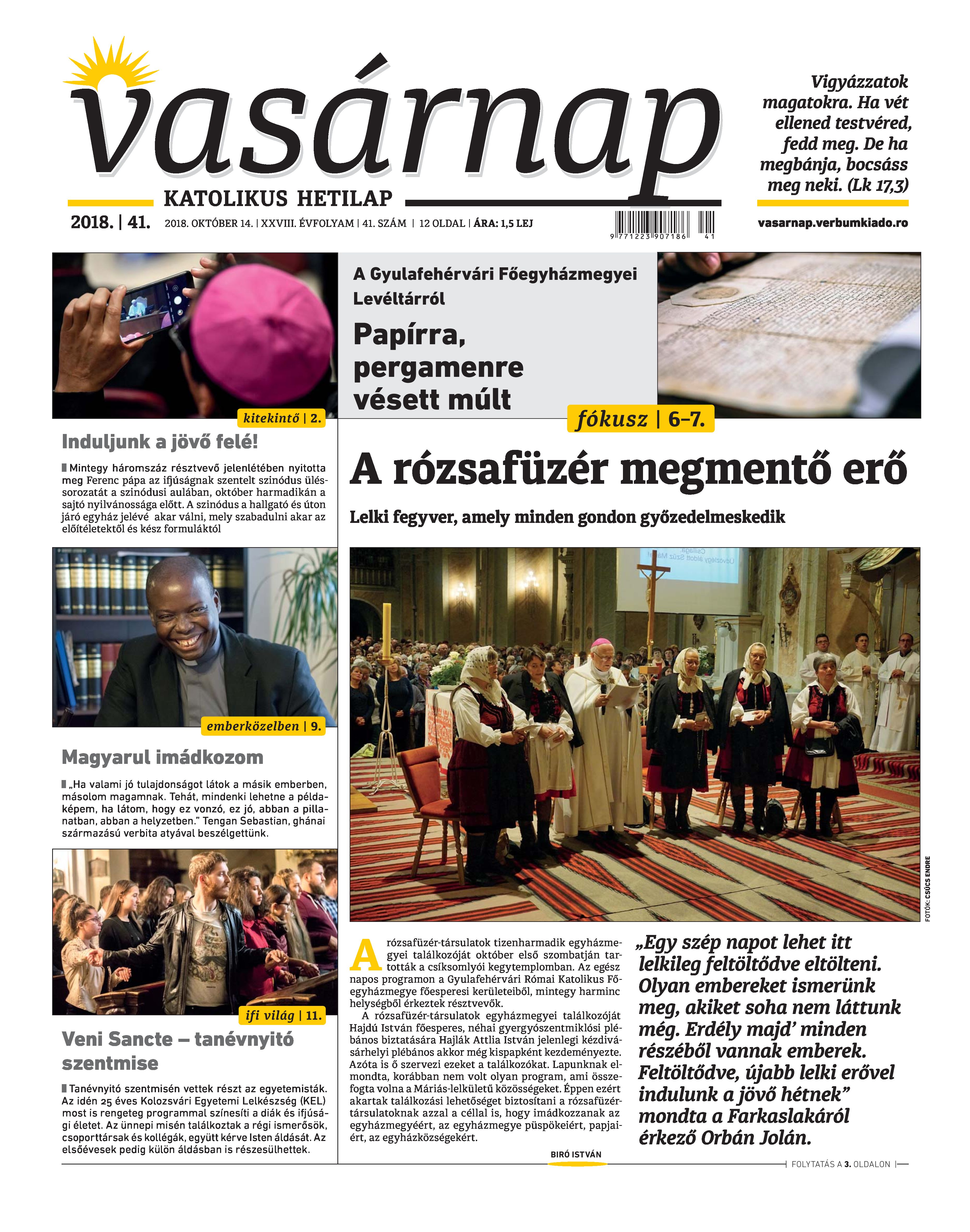 VASÁRNAP - 2018. OKTÓBER 14. A Vasárnap Katolikus Hetilap 2018. október 14. / XXVIII. évf. / 41. számának digitális változata.