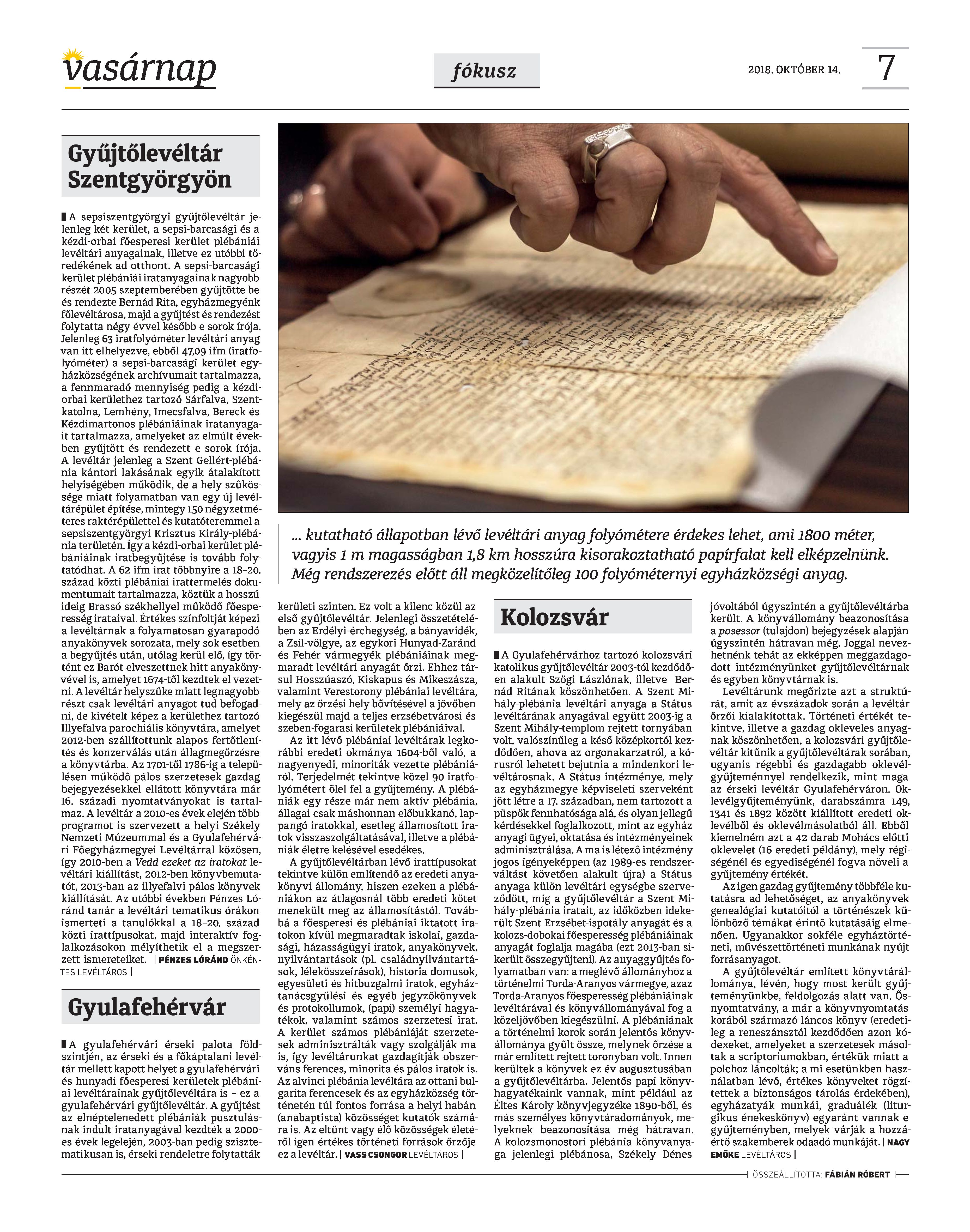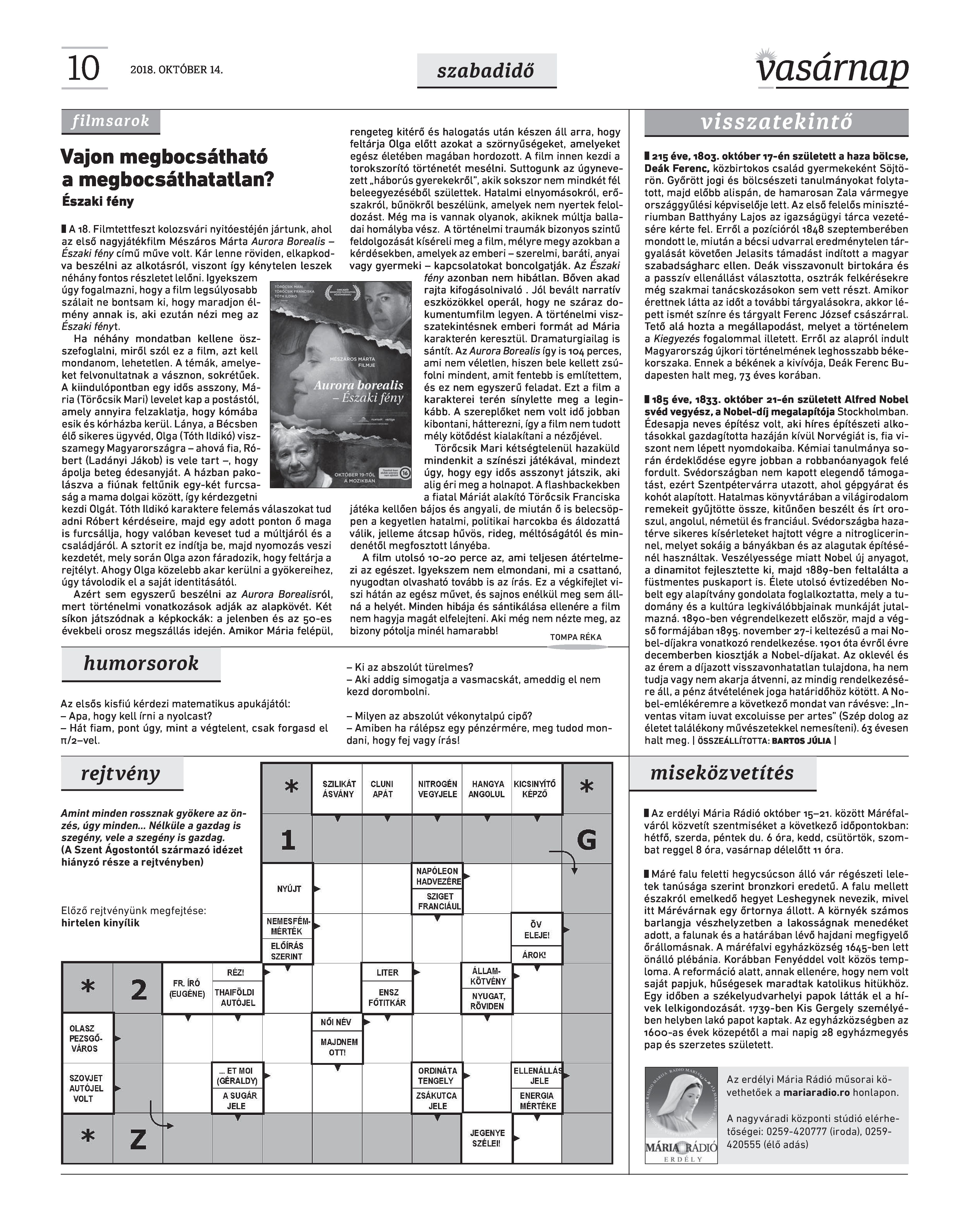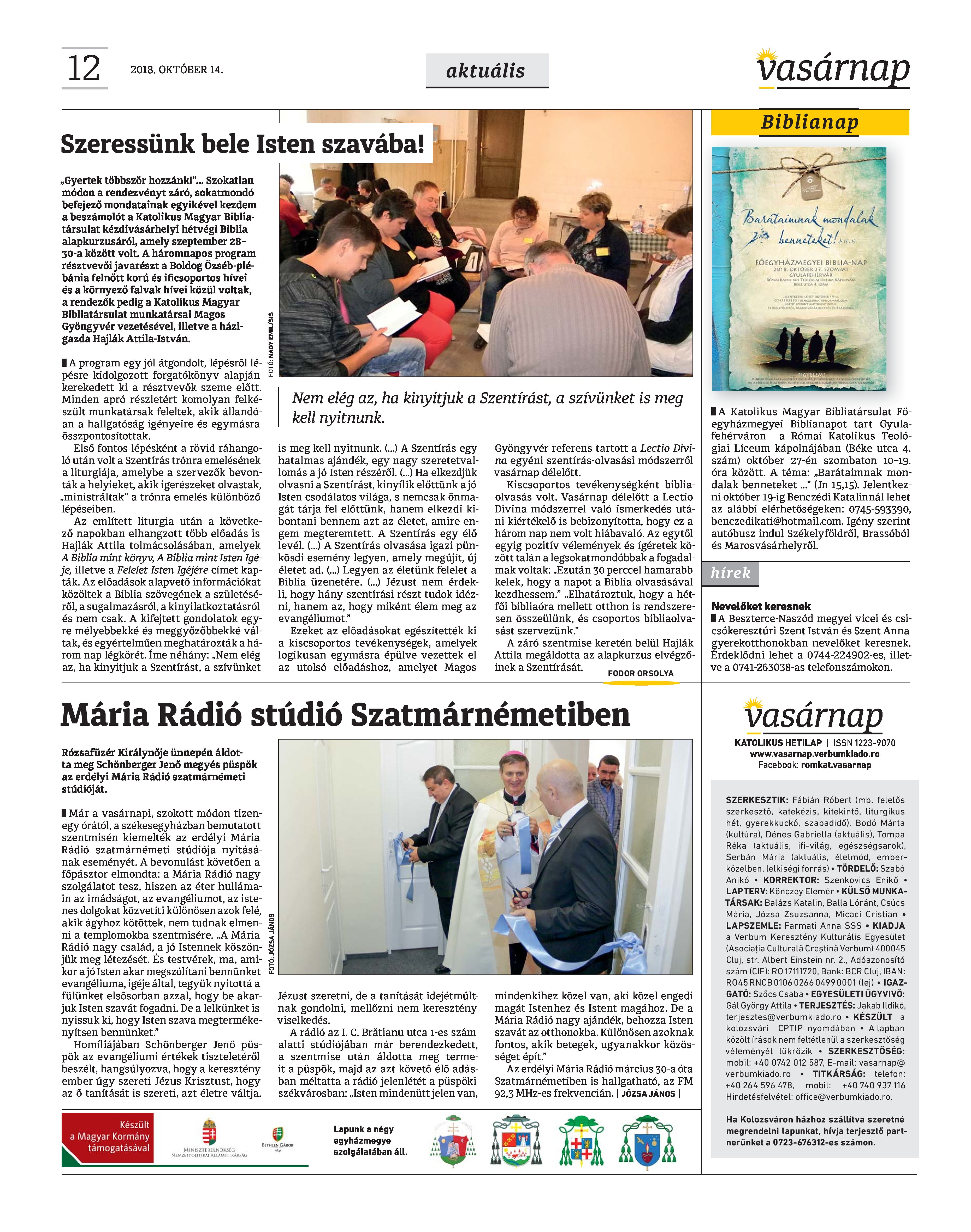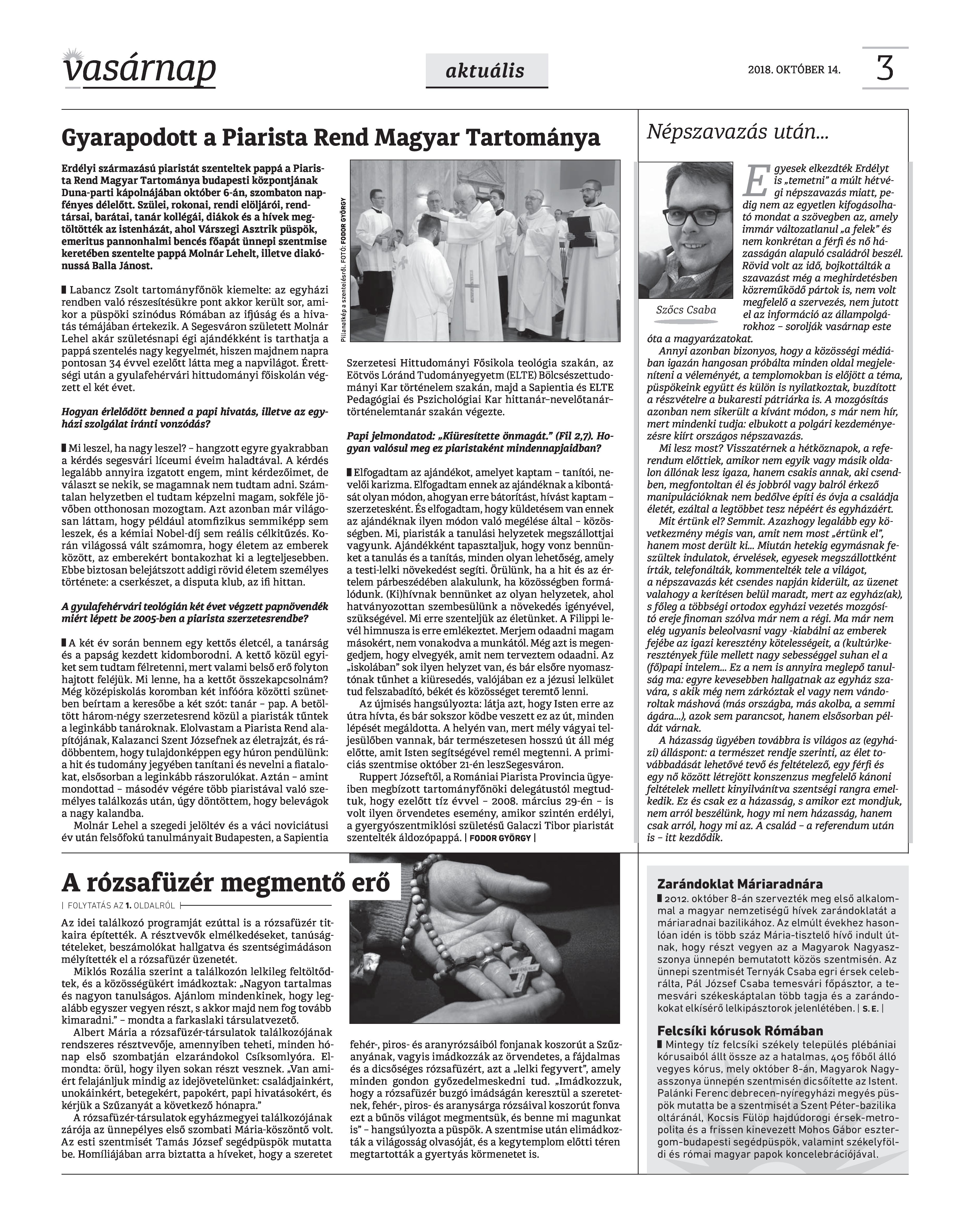 VASÁRNAP - 2018. OKTÓBER 14. A Vasárnap Katolikus Hetilap 2018. október 14. / XXVIII. évf. / 41. számának digitális változata.
