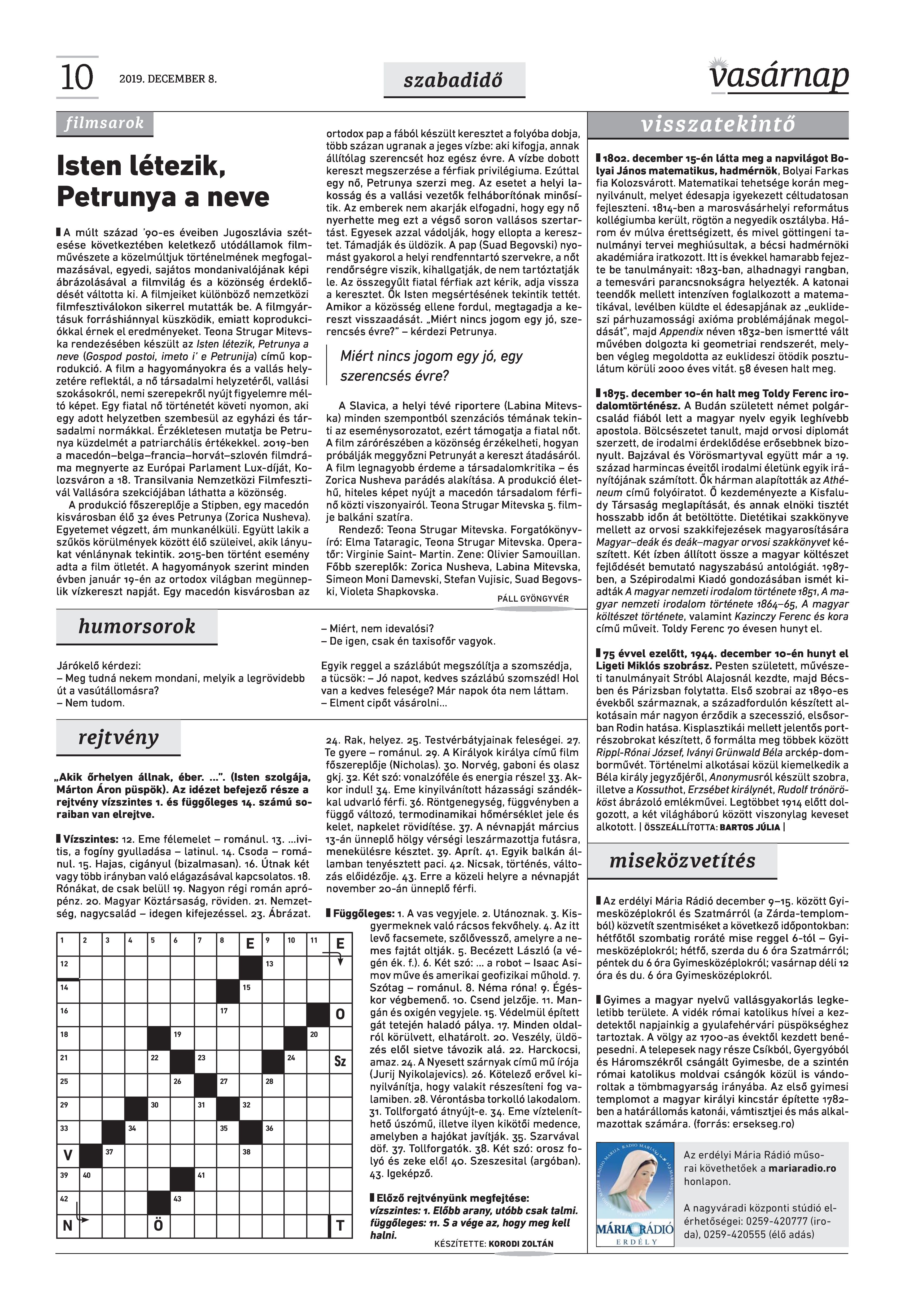 VASÁRNAP - 2019. DECEMBER 8. A Vasárnap Katolikus Hetilap 2019. december 8.. / XXIX évf. / 49. számának digitális változata. 1 / 12 2 & 3 / 12 4 & 5 / 12 6 & 7 / 12 8 & 9 / 12 10 & 11 / 12 12 / 12