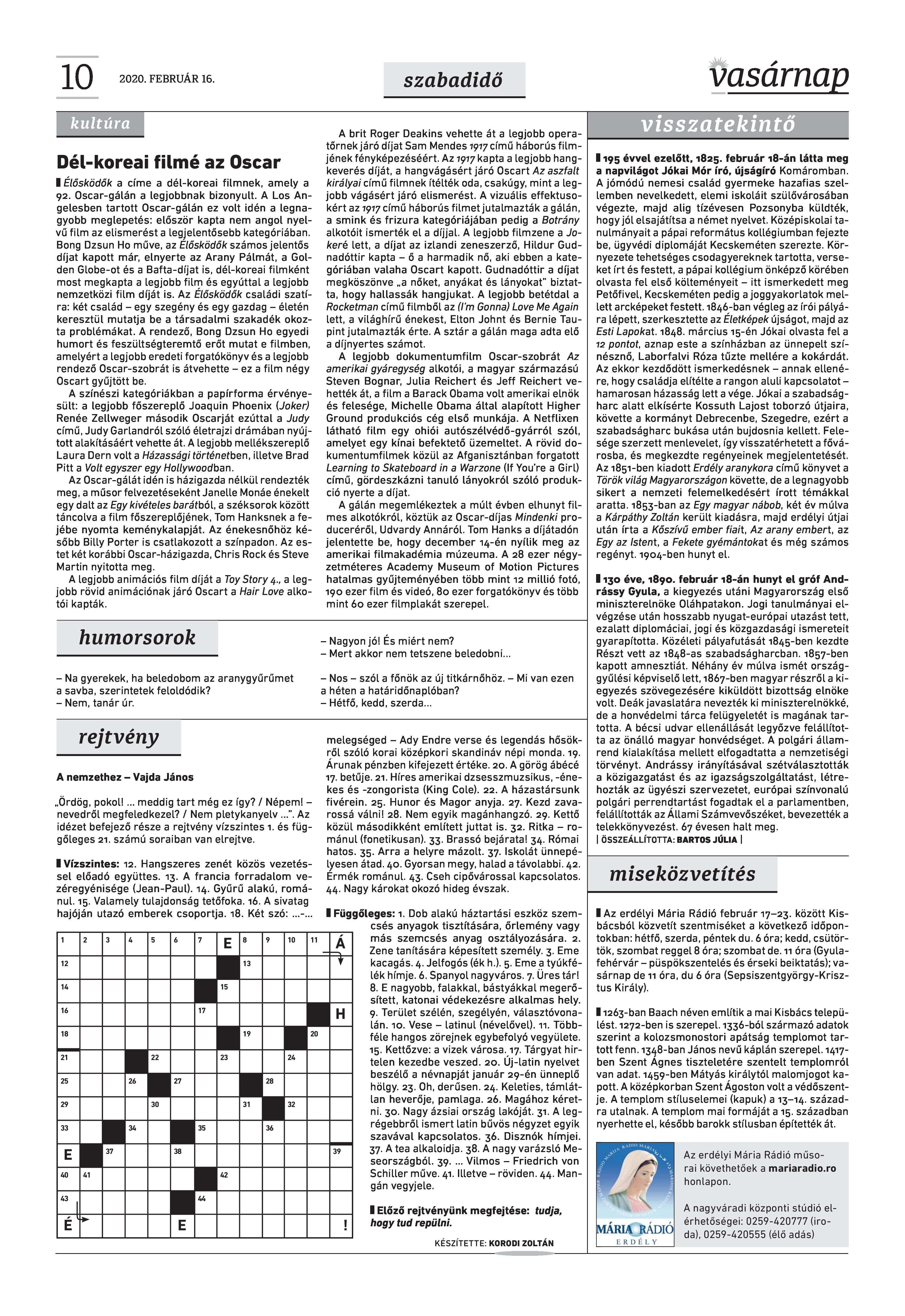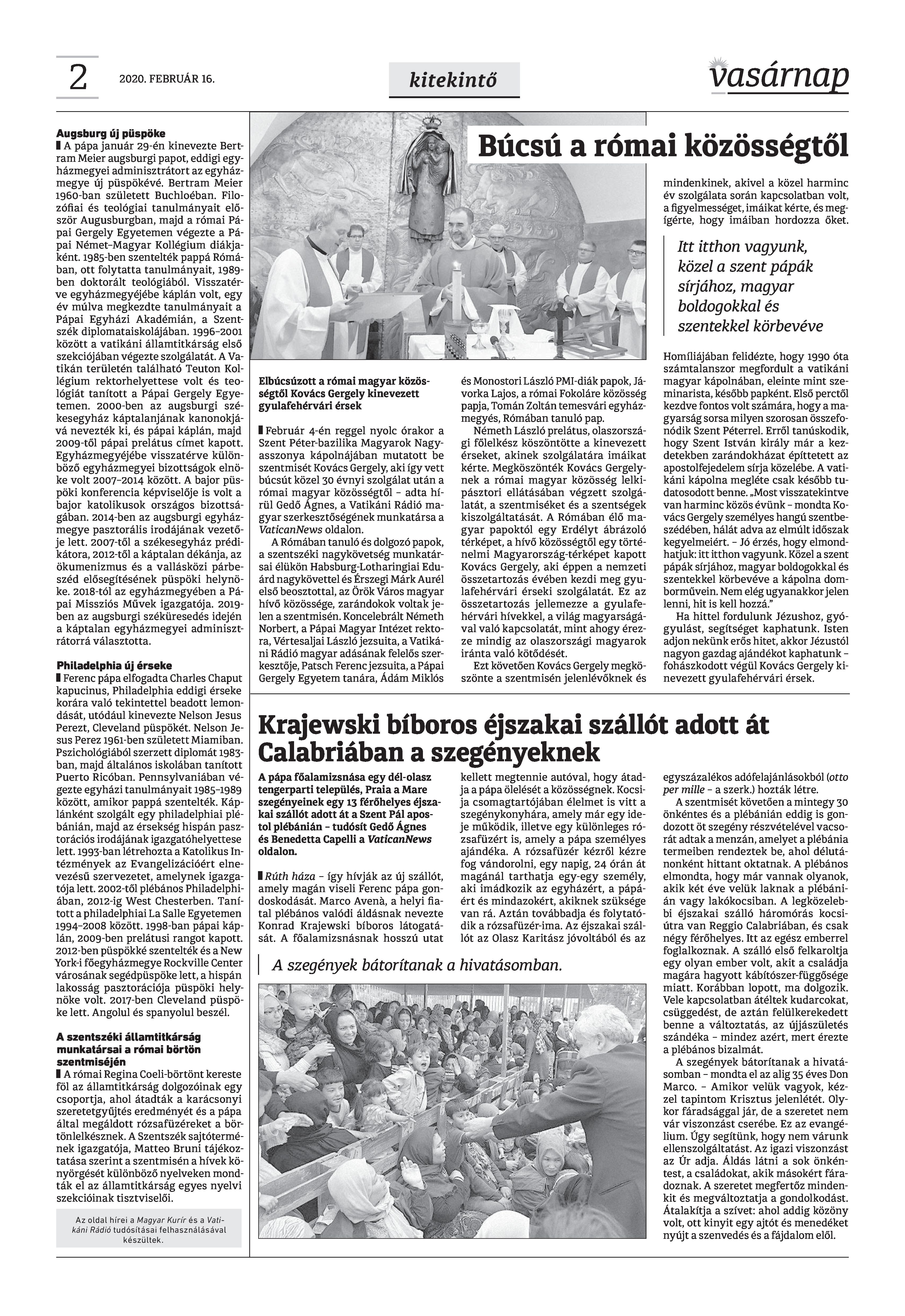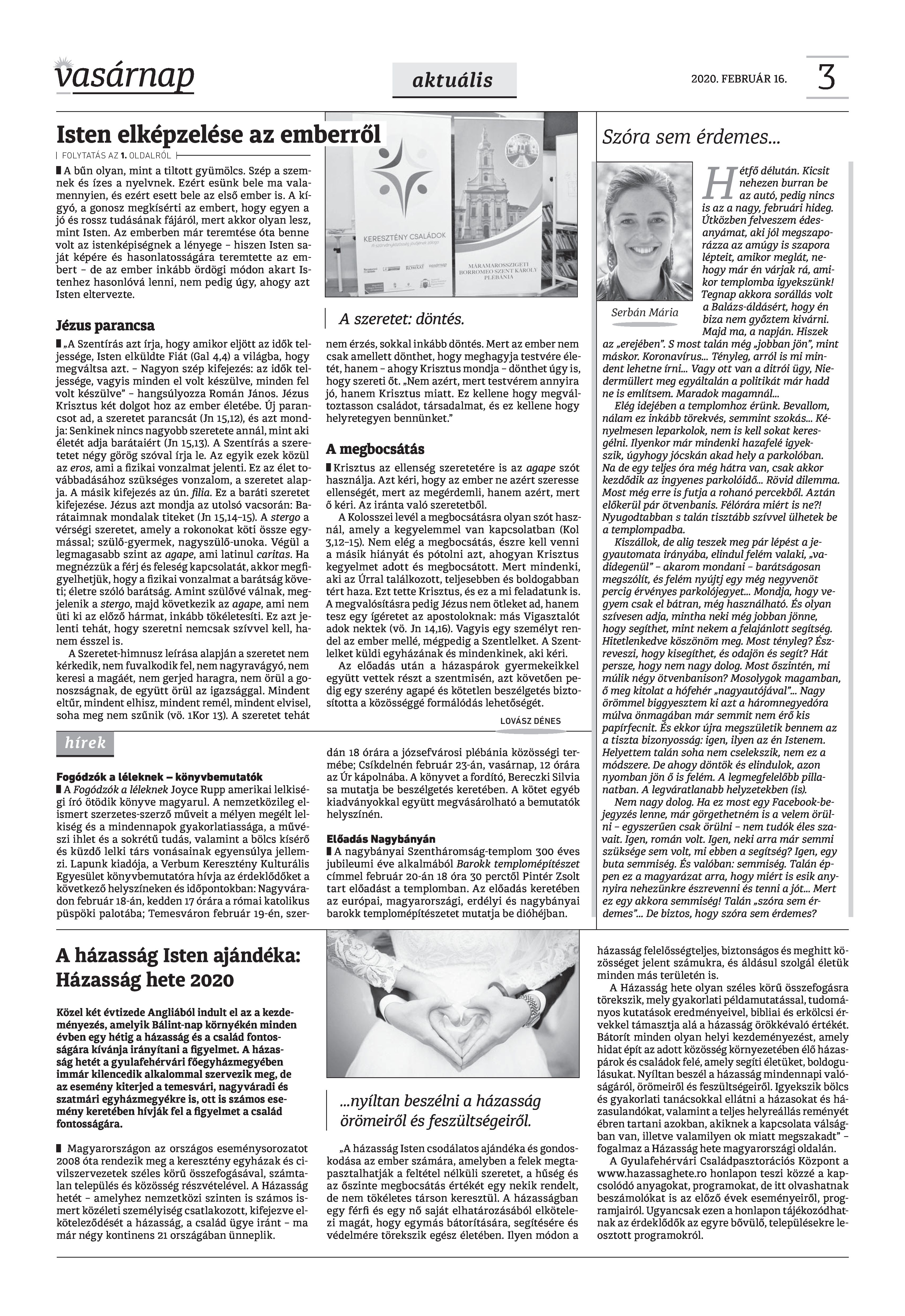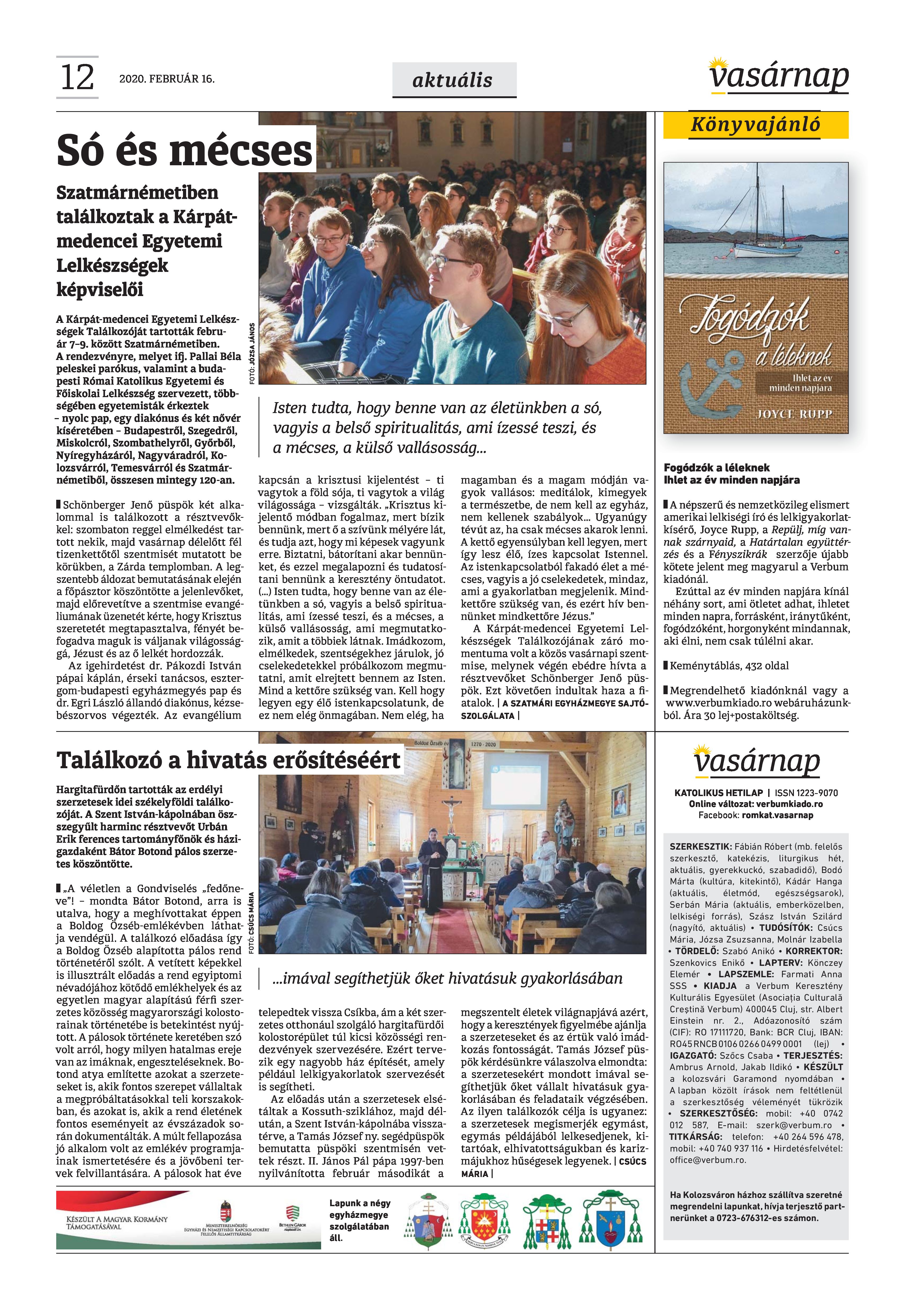VASÁRNAP - 2020. FEBRUÁR 16. A Vasárnap Katolikus Hetilap 2020. február 16. / XXX évf. / 7. számának digitális változata. 1 / 12 2 & 3 / 12 4 & 5 / 12 6 & 7 / 12 8 & 9 / 12 10 & 11 / 12 12 / 12