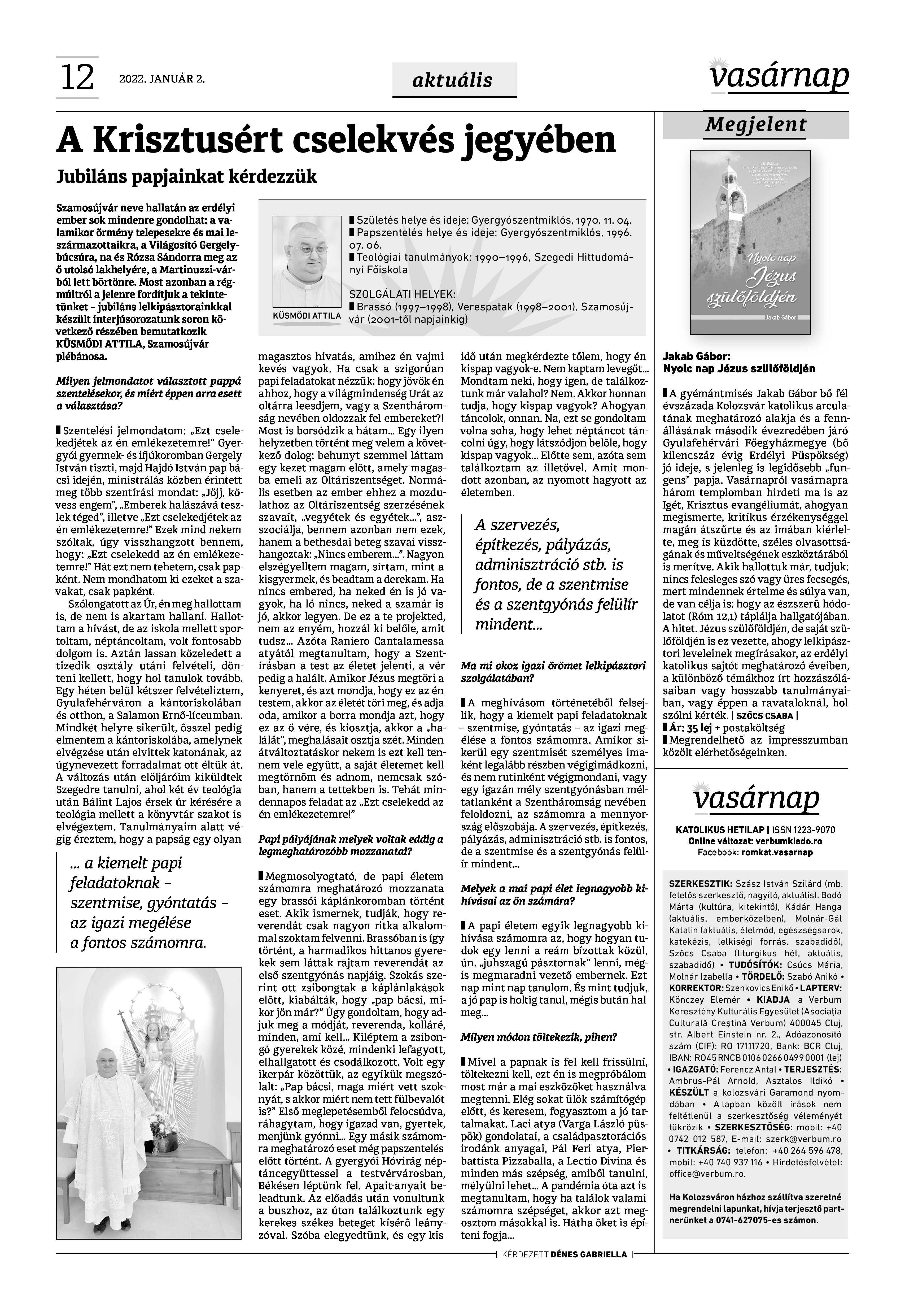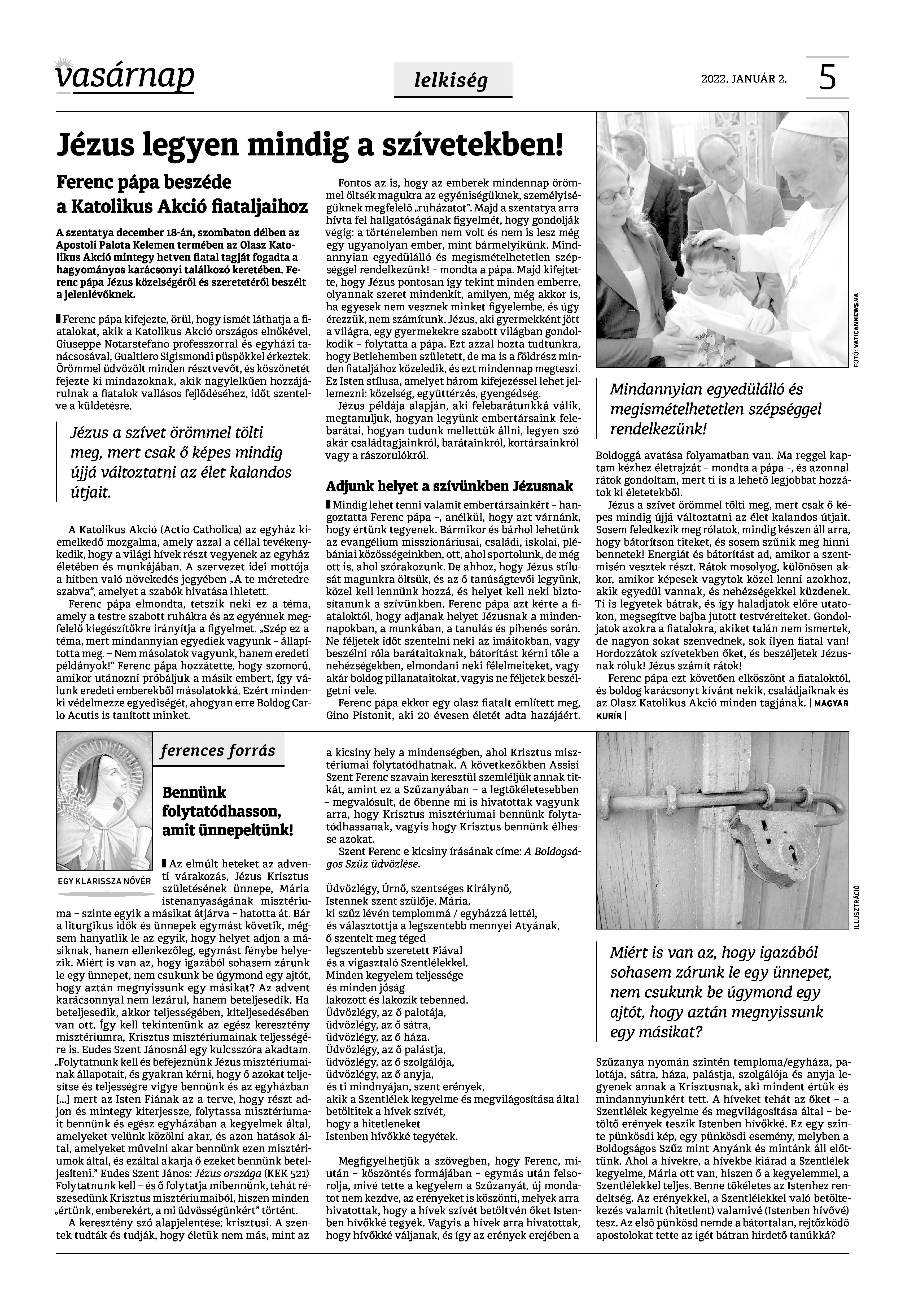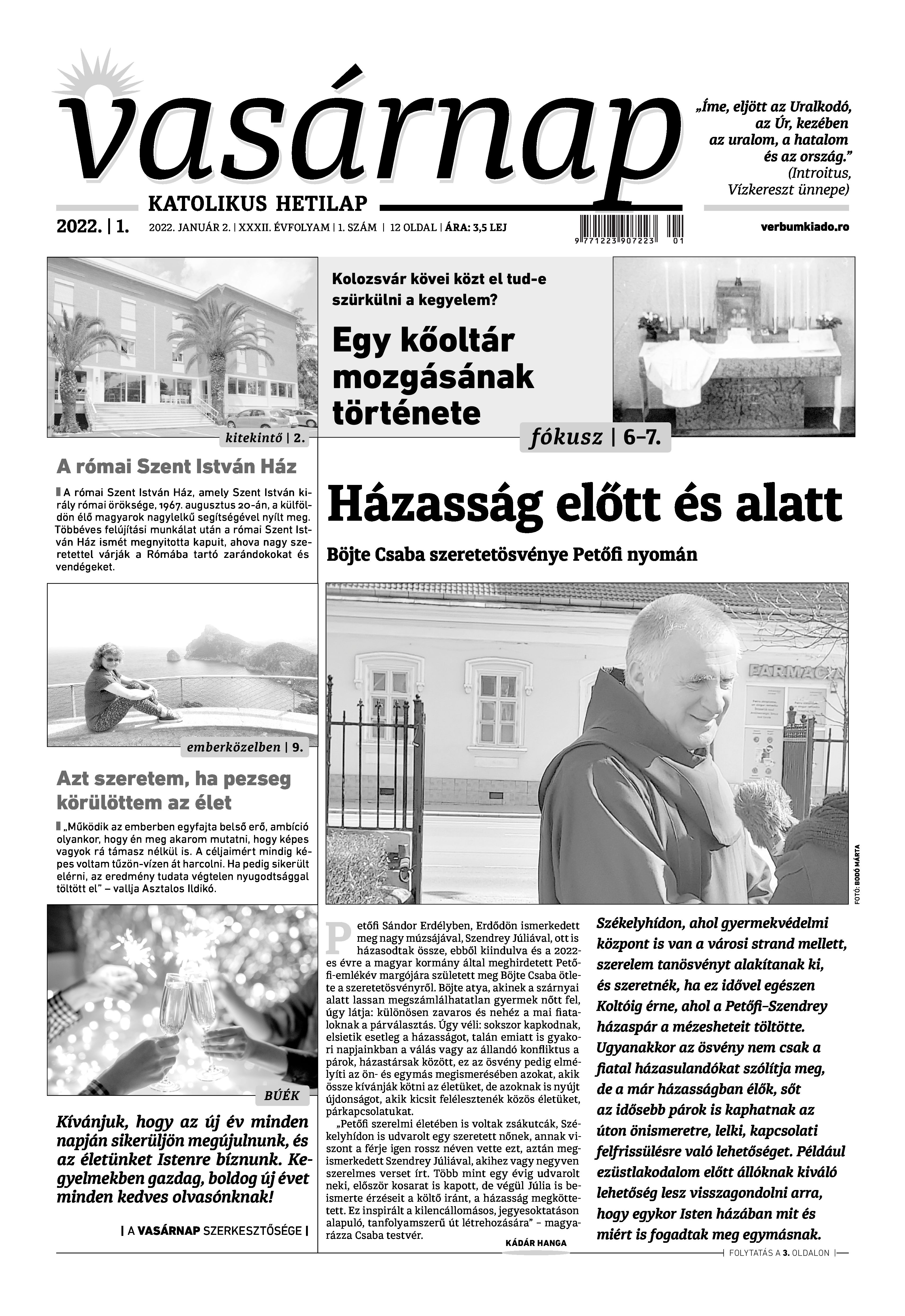 VASÁRNAP - 2022. JANUÁR 2. A Vasárnap Katolikus Hetilap 2022. január 2. / XXXII évf. / 1. számának digitális változata. 1 / 12 2 & 3 / 12 4 & 5 / 12 6 & 7 / 12 8 & 9 / 12 10 & 11 / 12 12 / 12