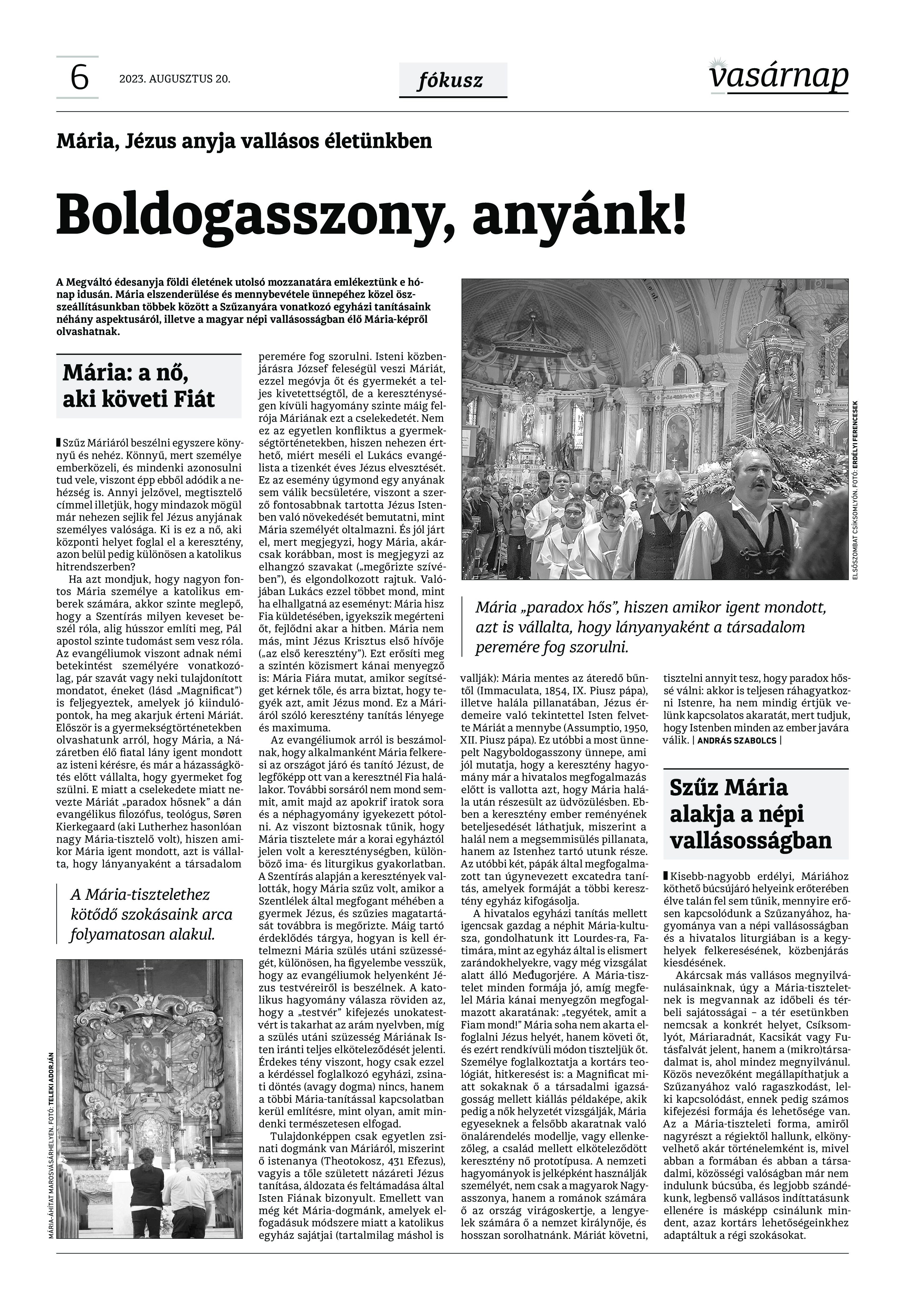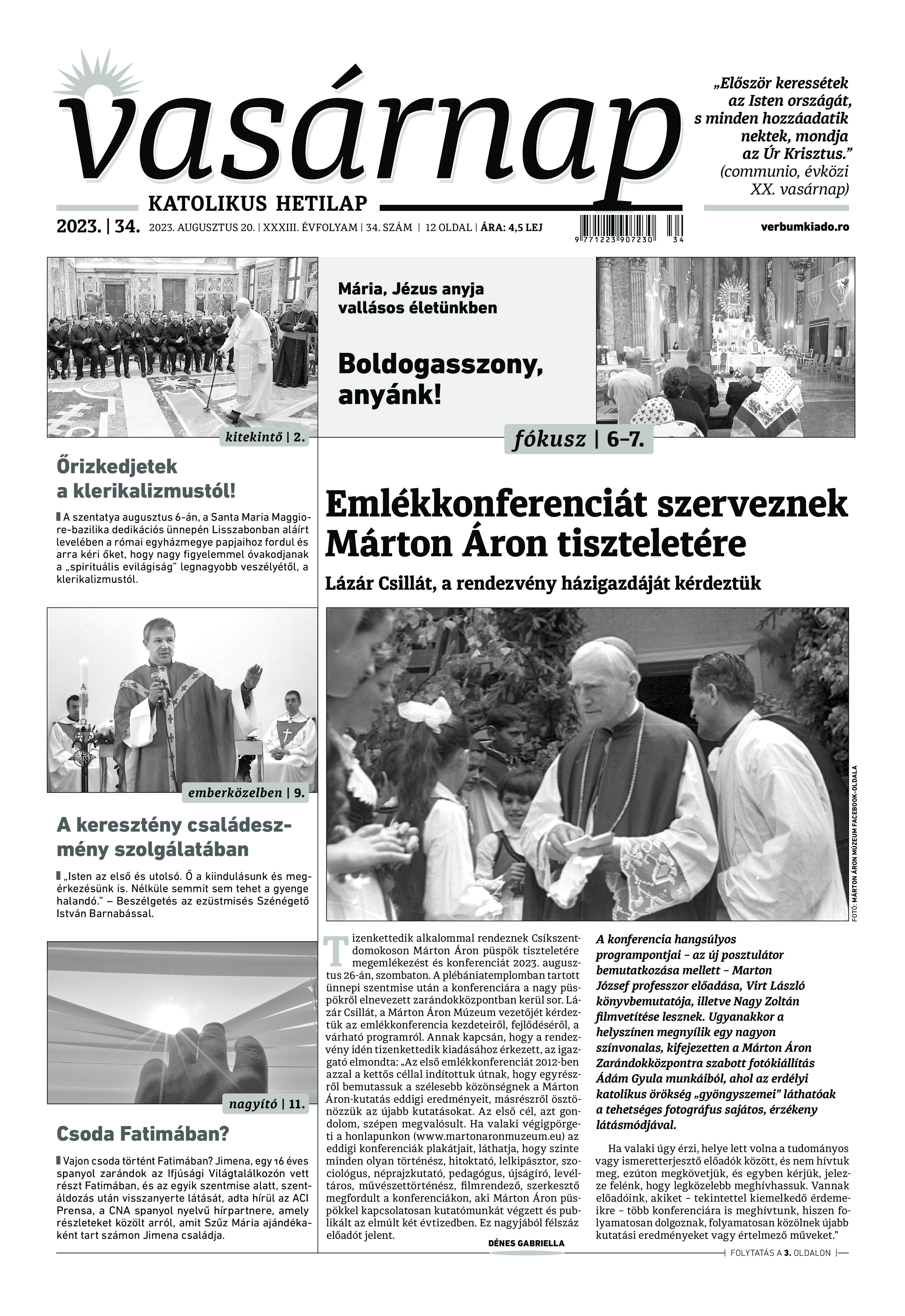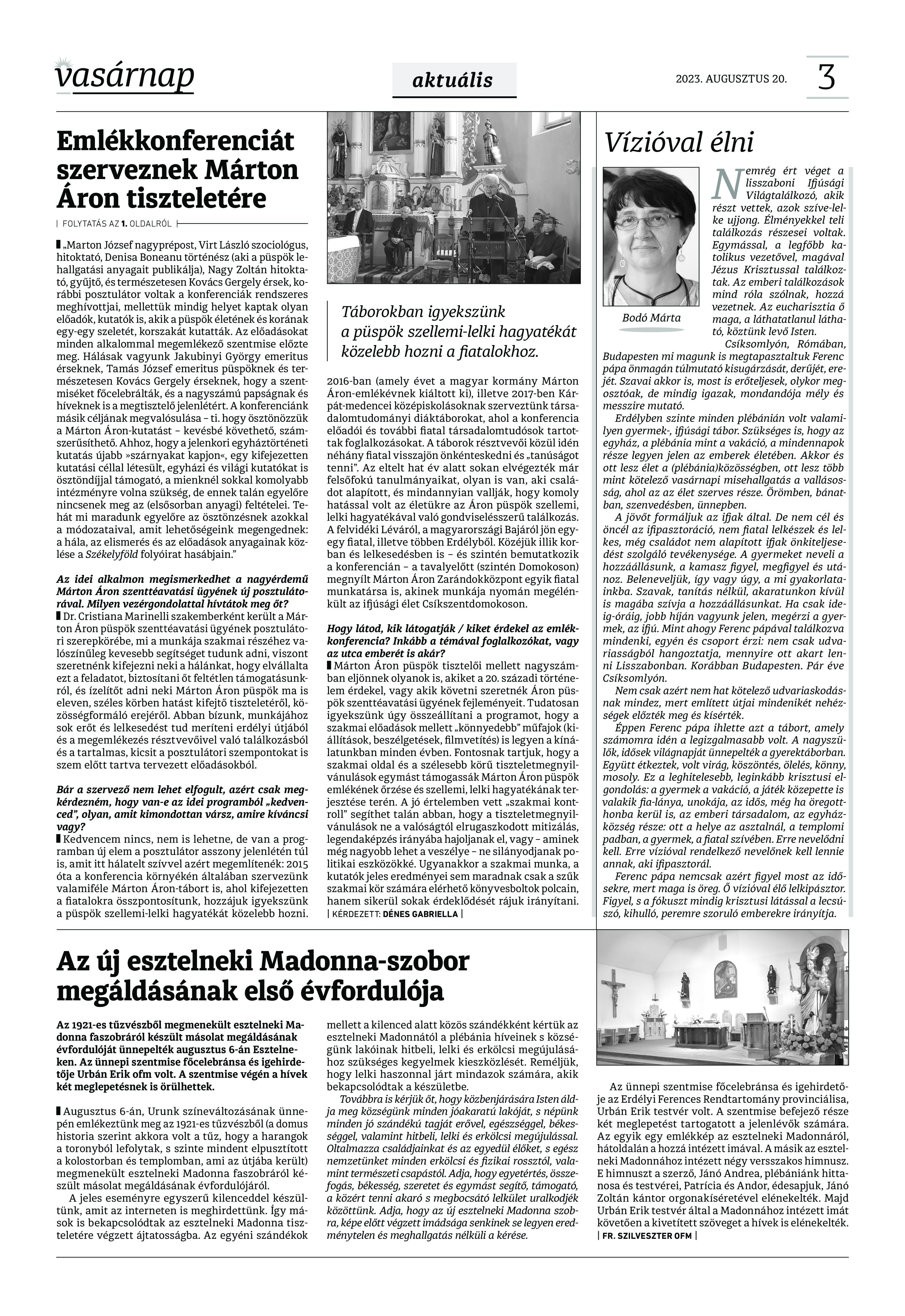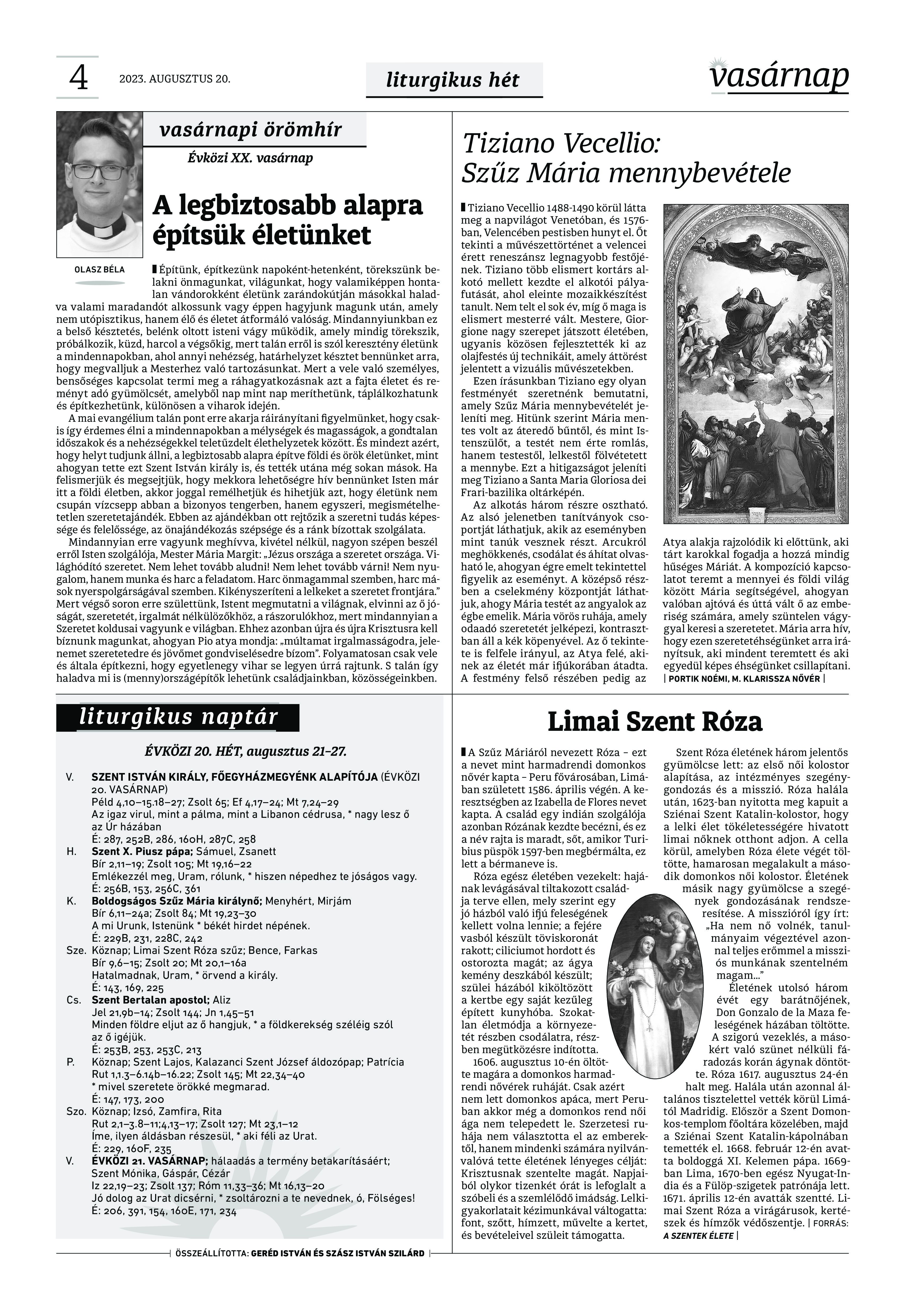 VASÁRNAP - 2023. augusztus 20. A Vasárnap Katolikus Hetilap 2023. augusztus 20. / XXXIII évf. / 34. számának digitális változata 1 / 12 2 & 3 / 12 4 & 5 / 12 6 & 7 / 12 8 & 9 / 12 10 & 11 / 12 12 / 12