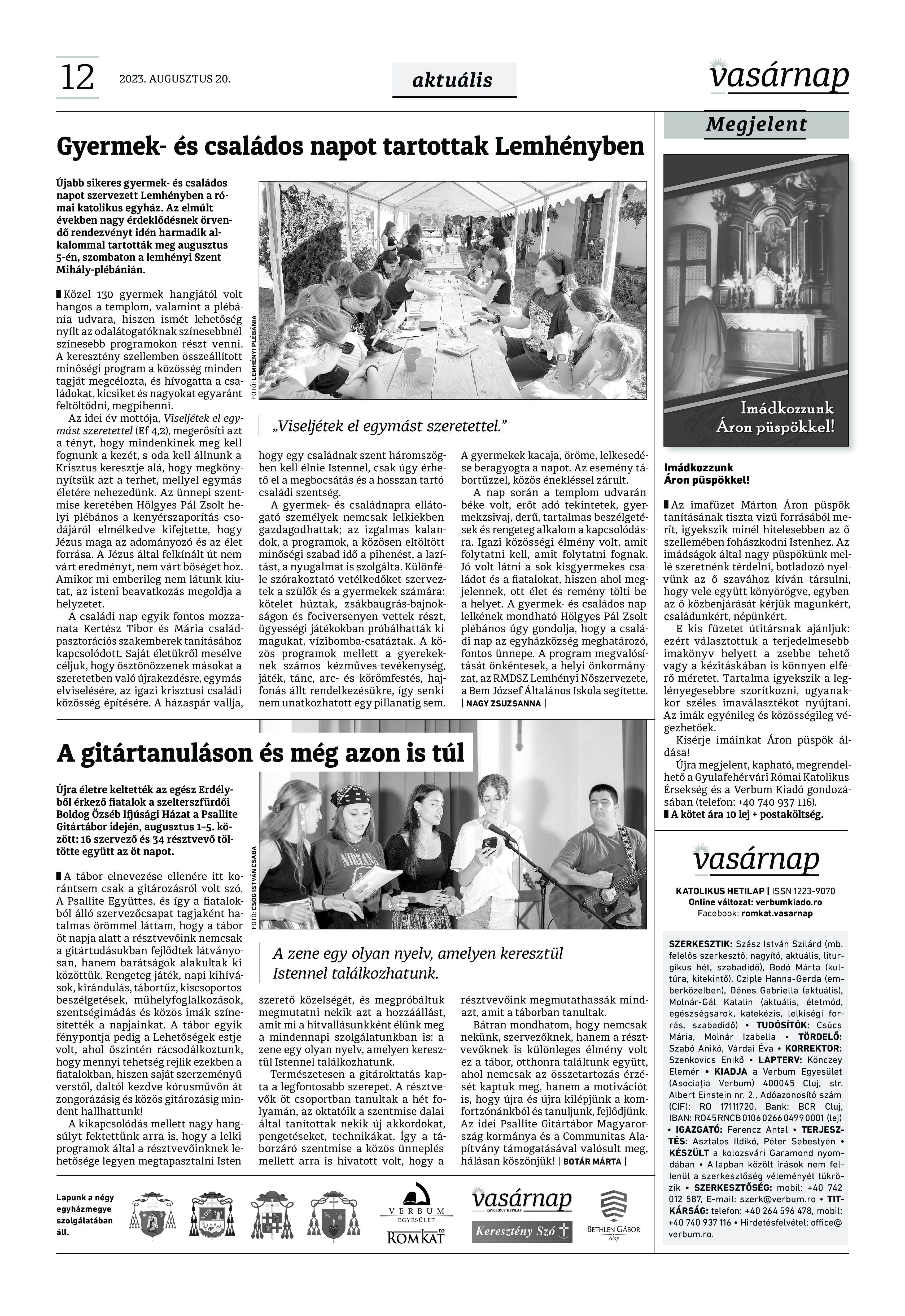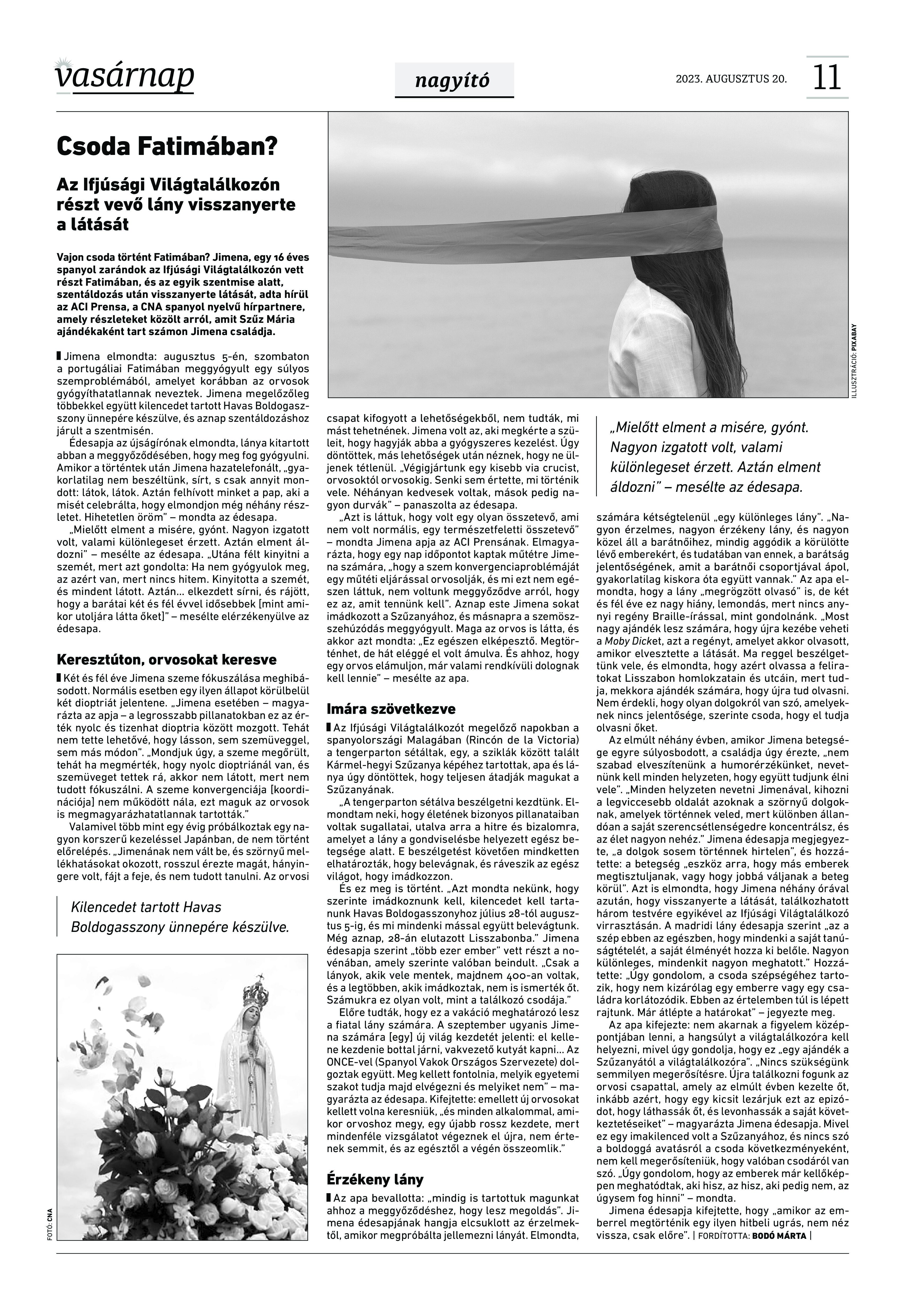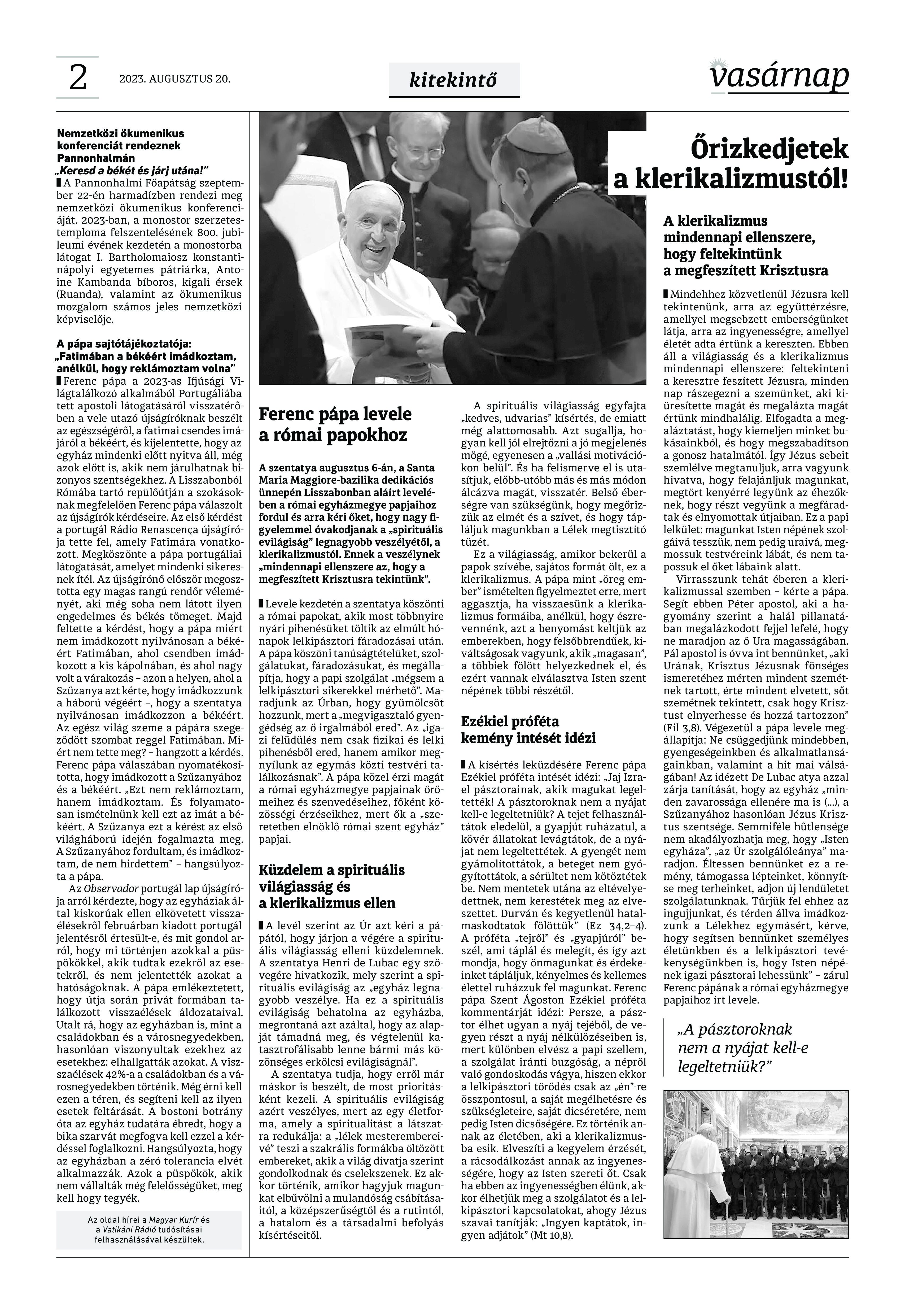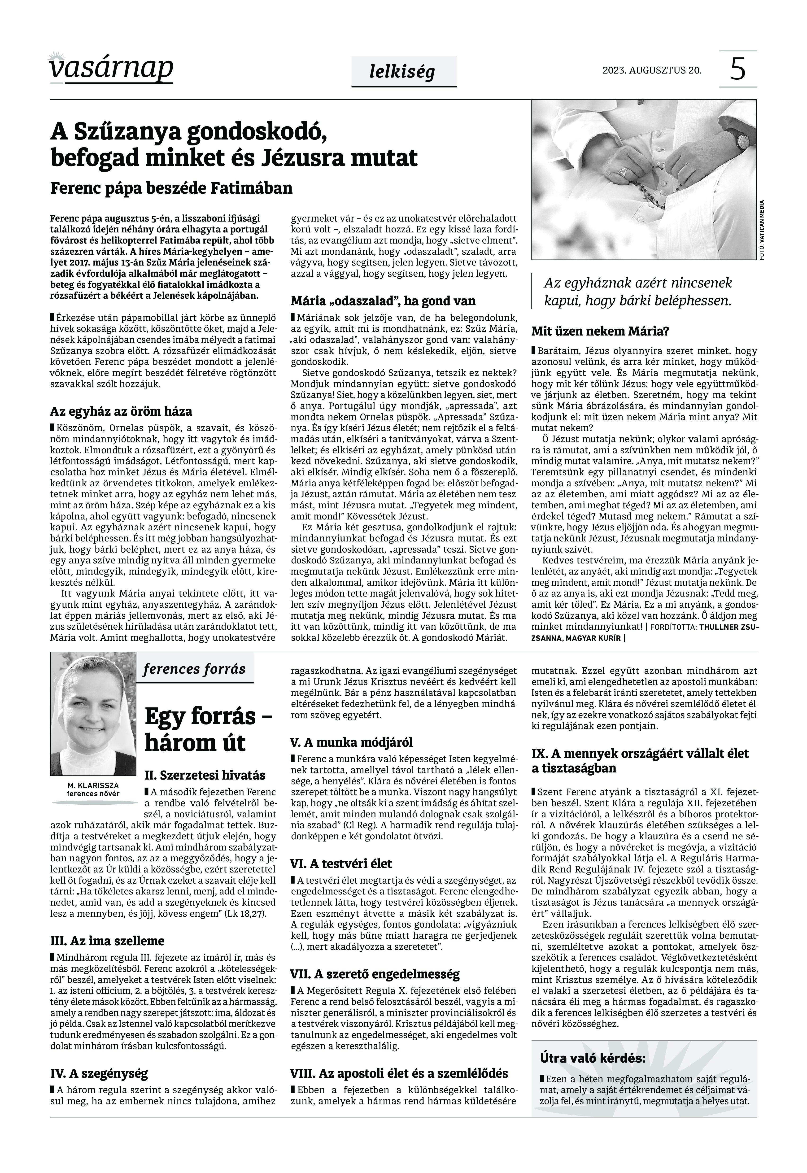 VASÁRNAP - 2023. augusztus 20. A Vasárnap Katolikus Hetilap 2023. augusztus 20. / XXXIII évf. / 34. számának digitális változata 1 / 12 2 & 3 / 12 4 & 5 / 12 6 & 7 / 12 8 & 9 / 12 10 & 11 / 12 12 / 12
