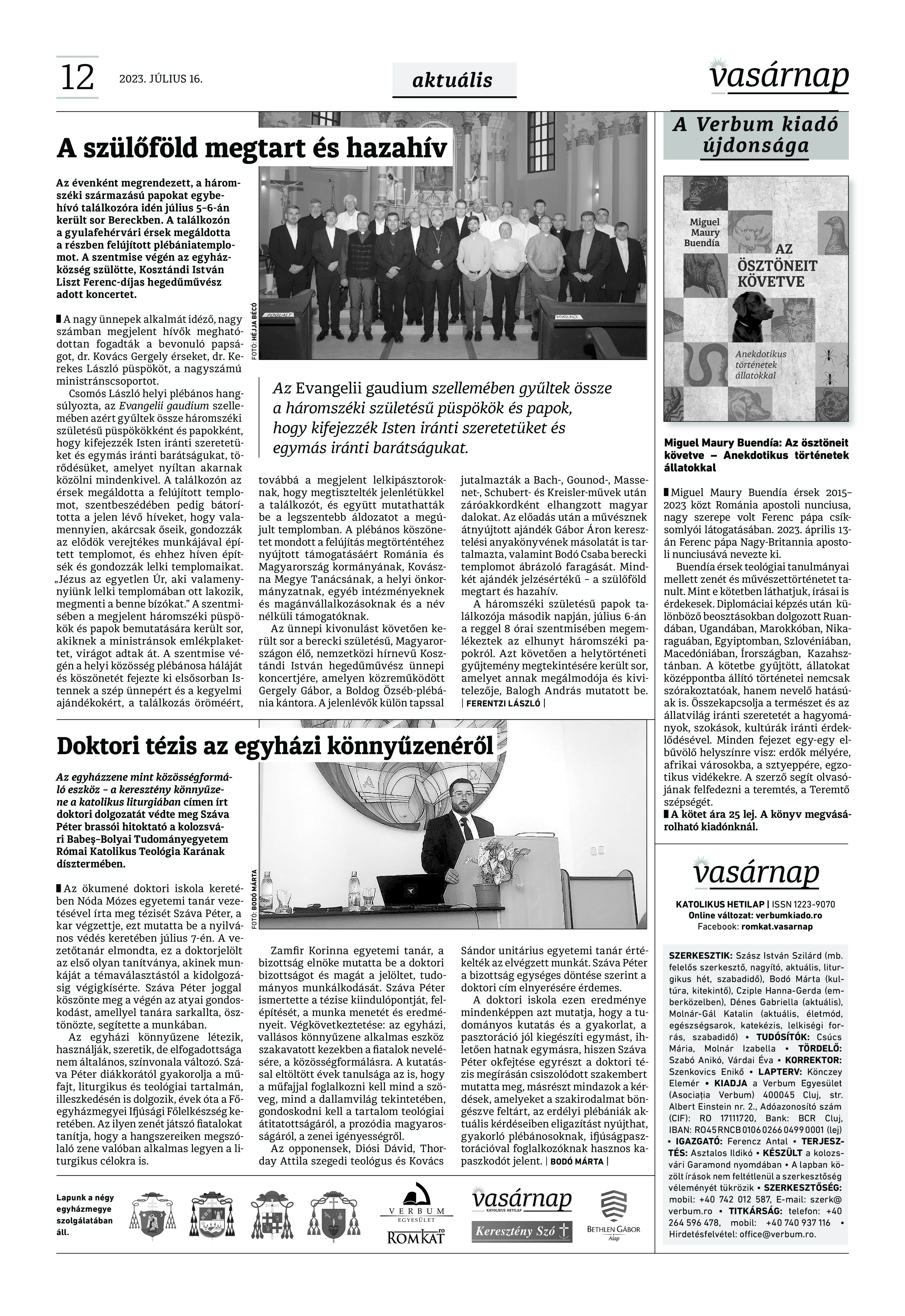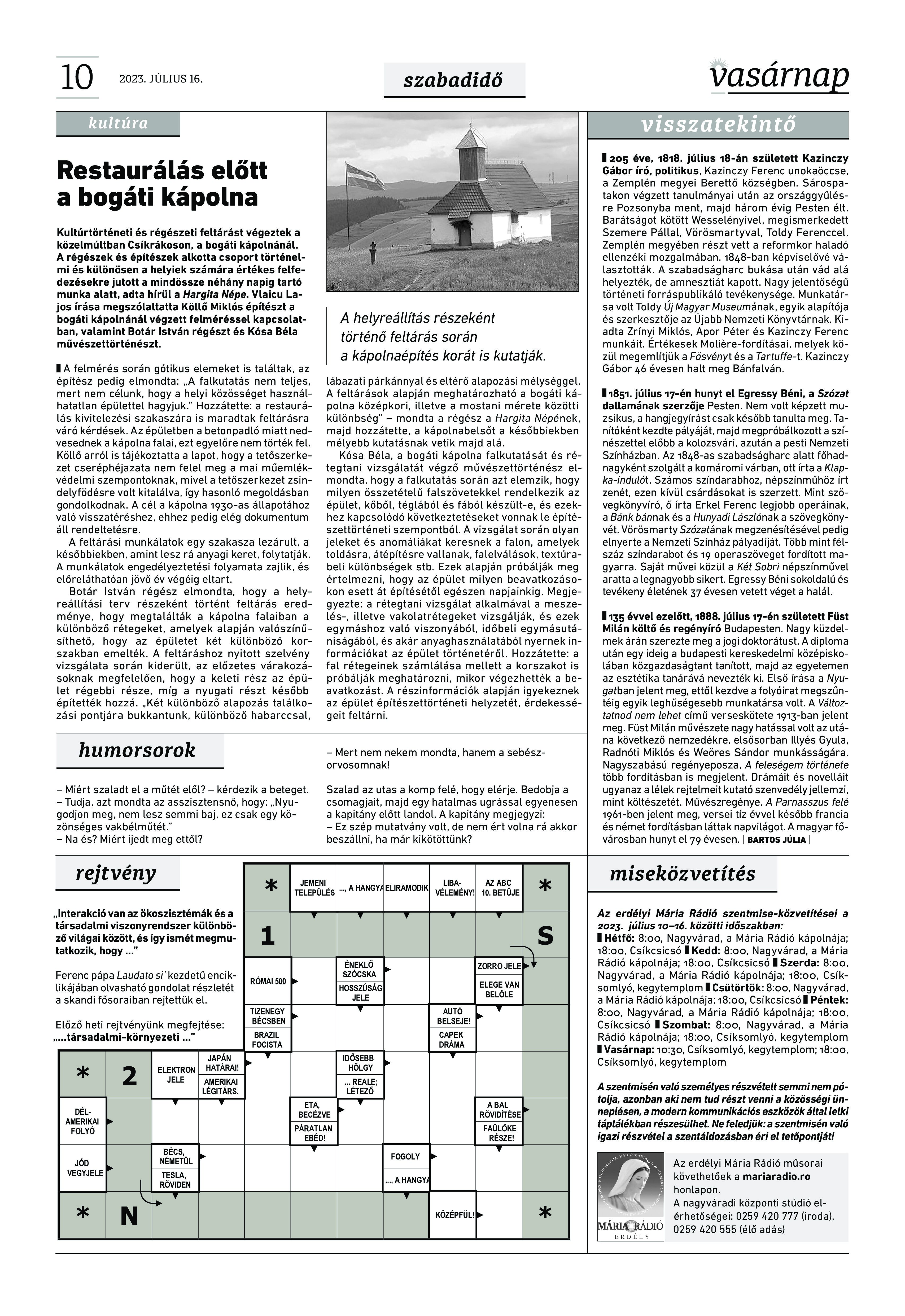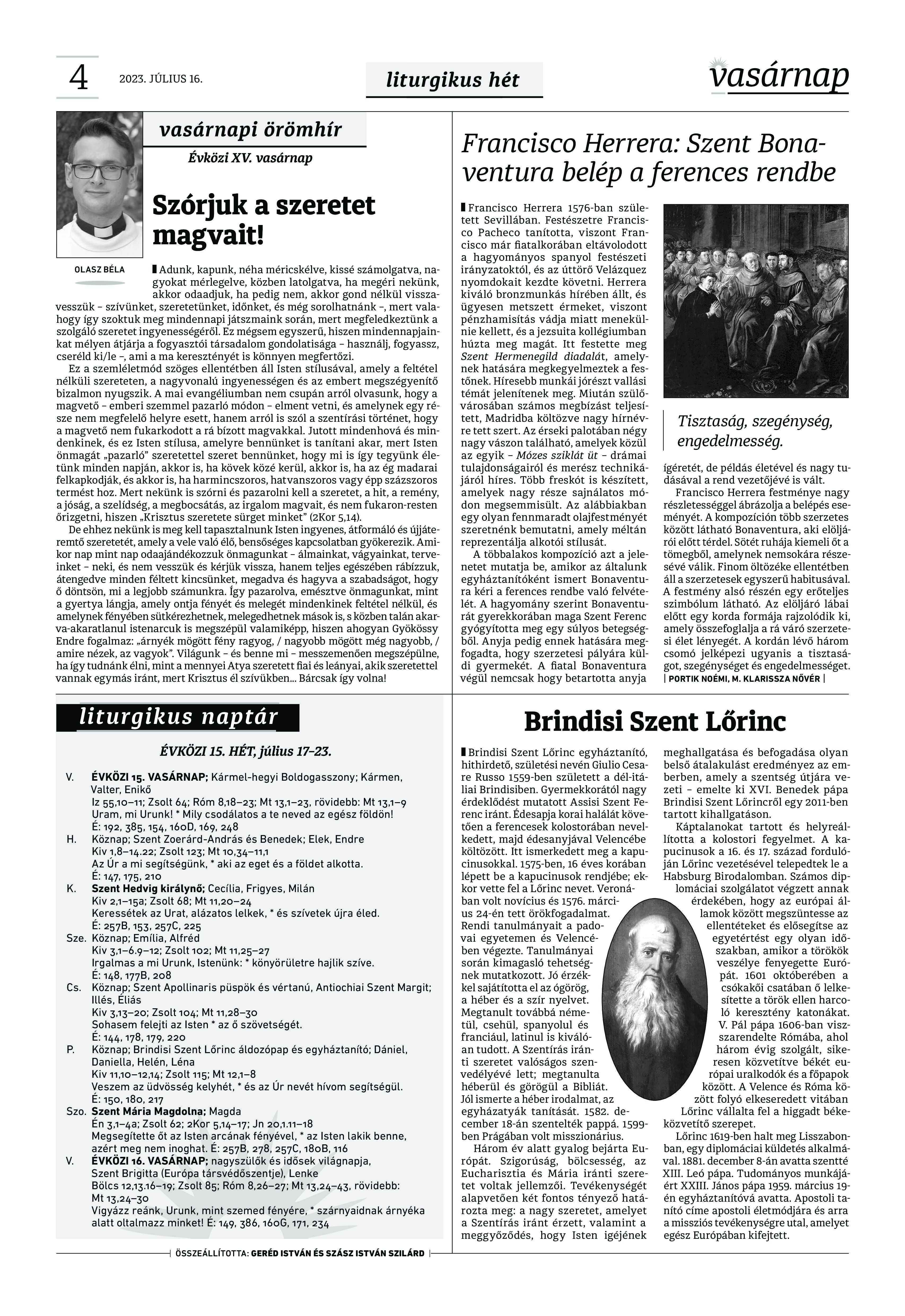 VASÁRNAP - 2023. JÚLIUS 16. A Vasárnap Katolikus Hetilap 2023. július 16. / XXXIII évf. / 29. számának digitális változata