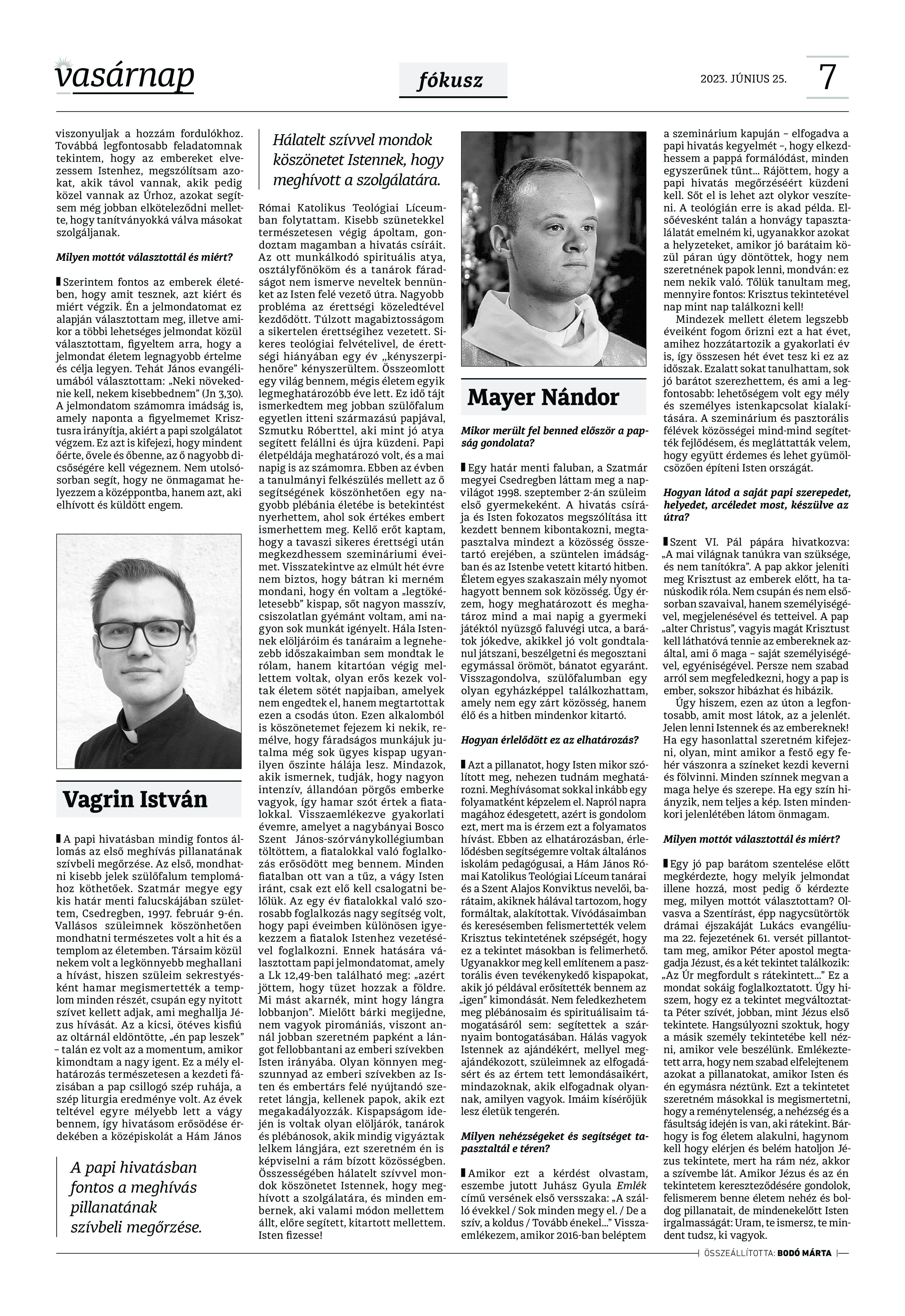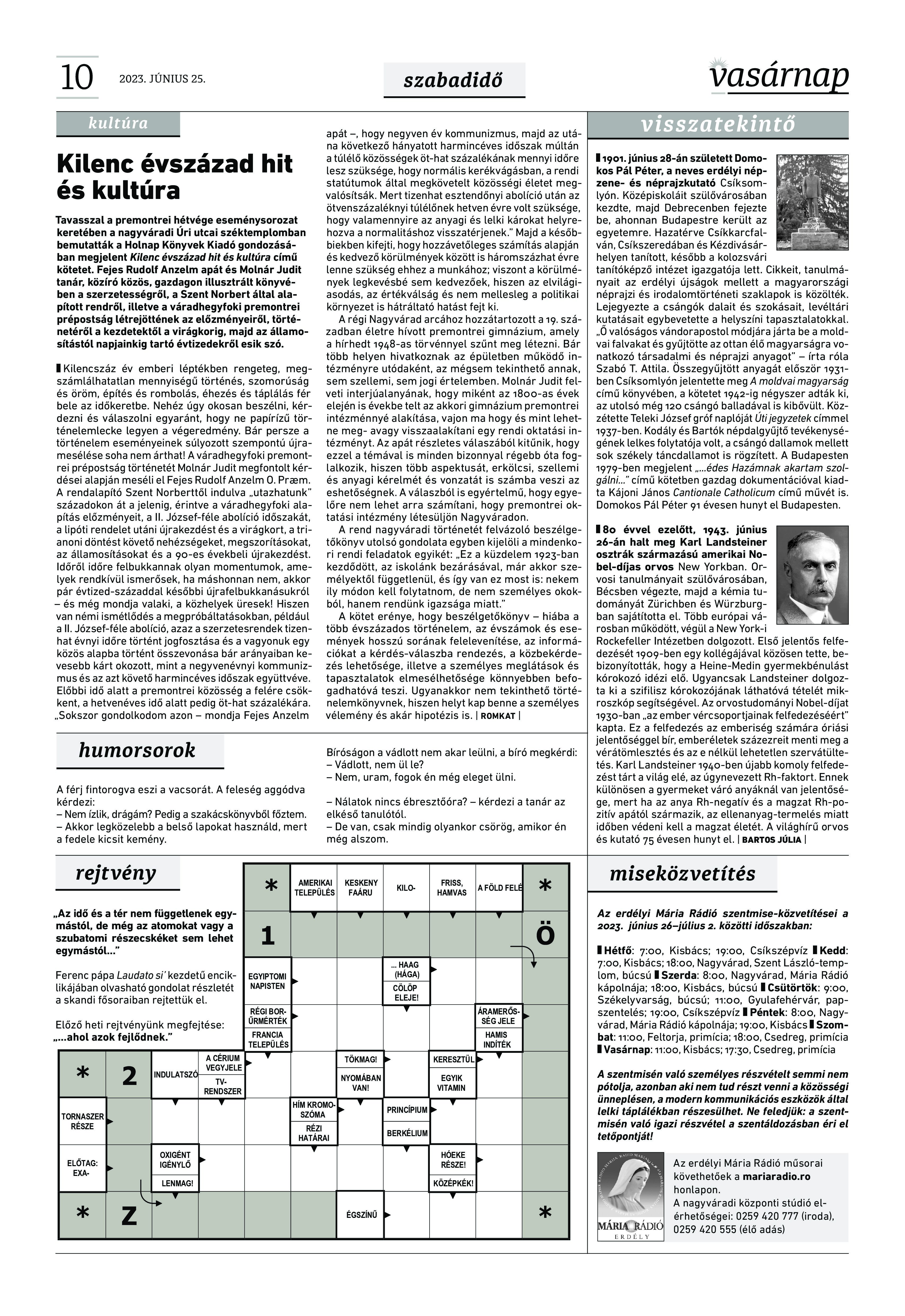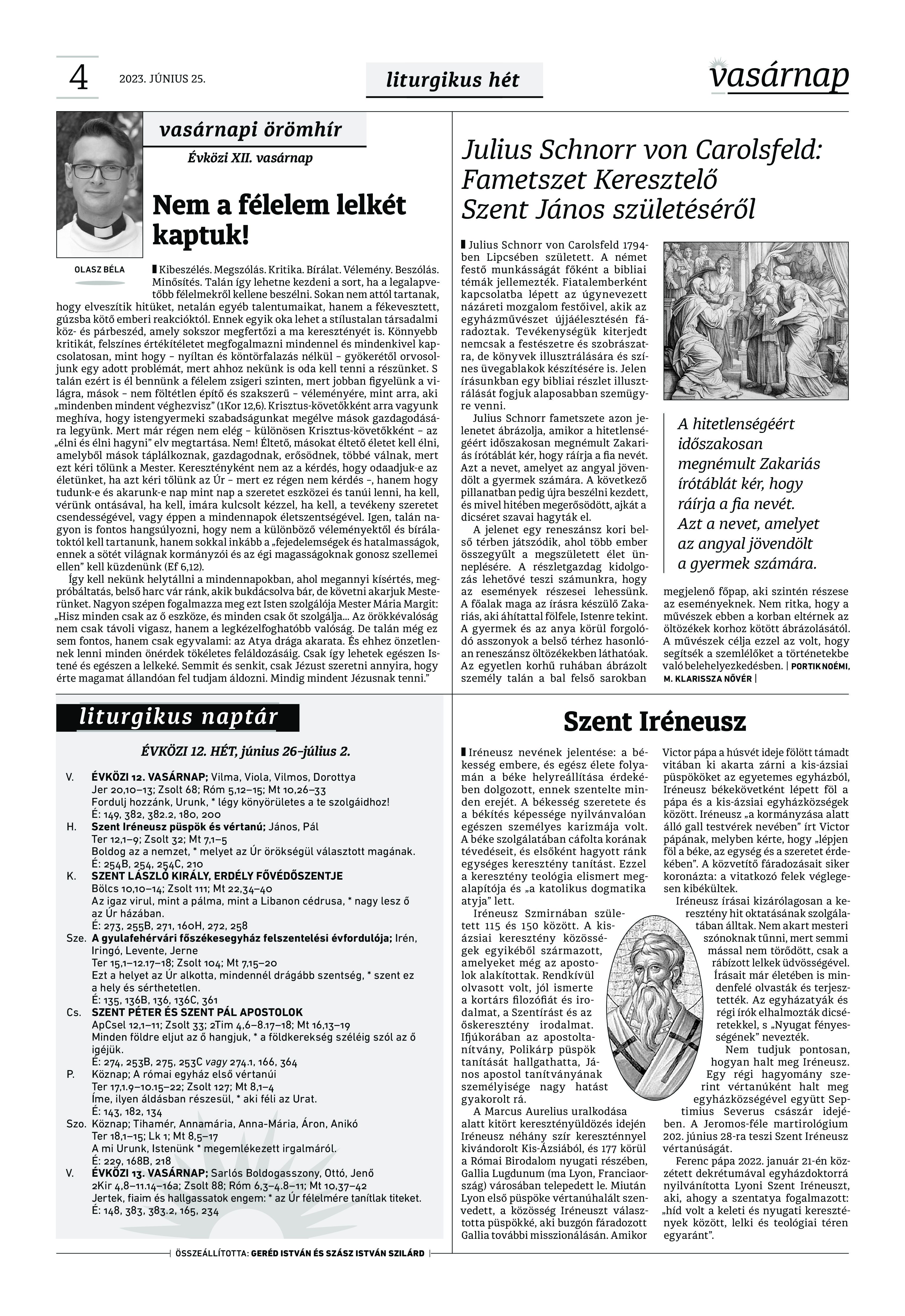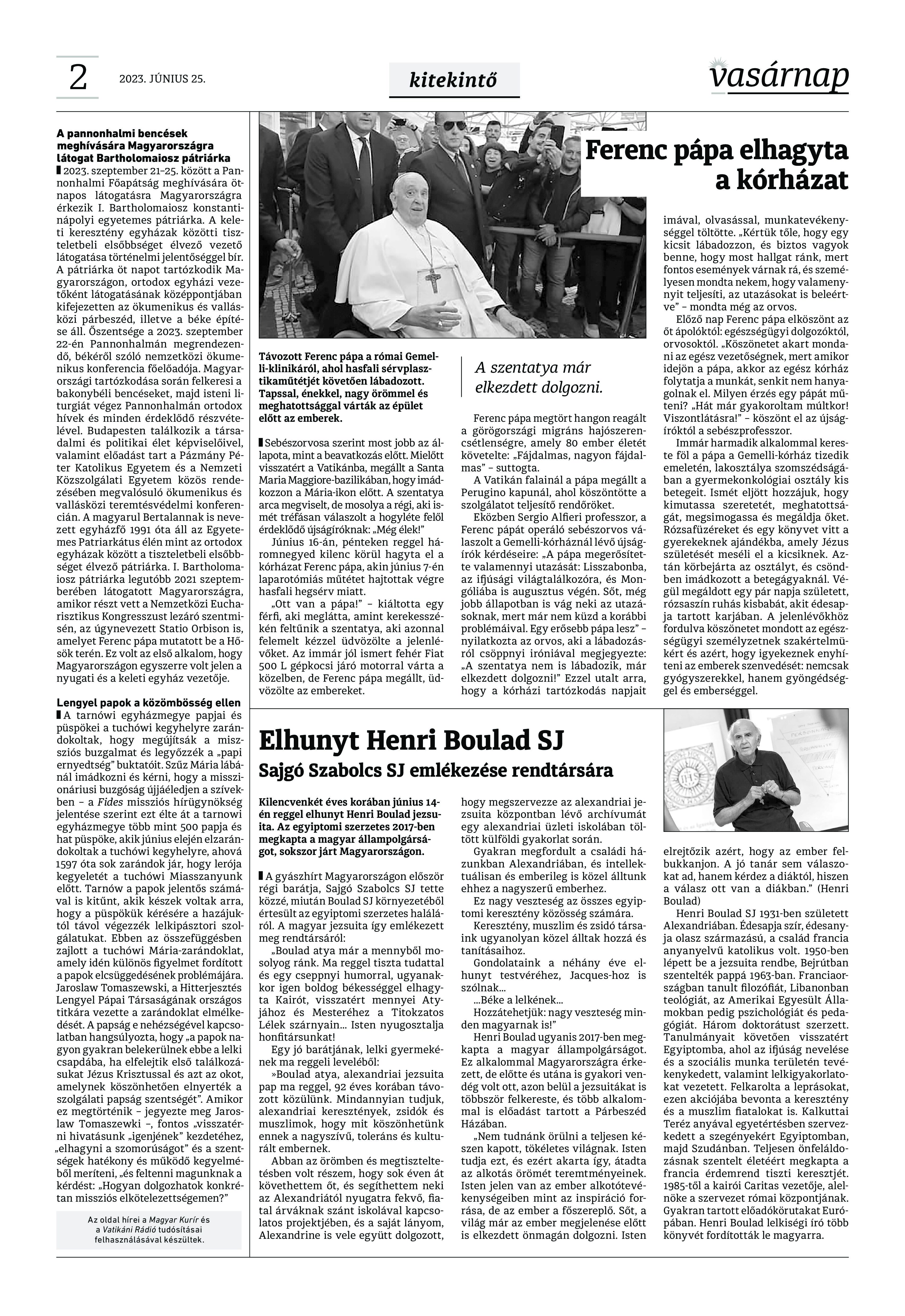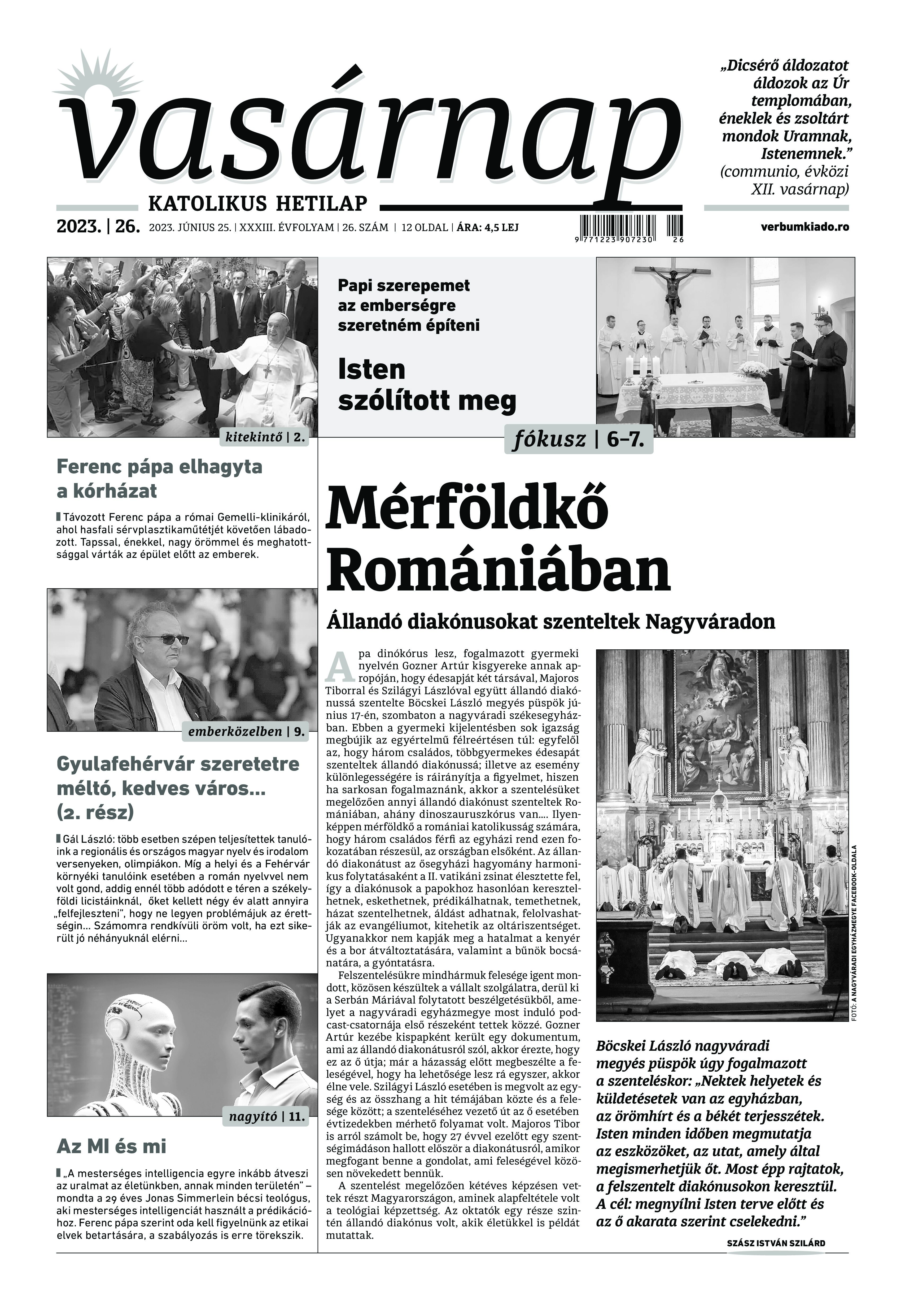A Vasárnap Katolikus Hetilap 2023. június 25. / XXXIII évf. / 26. számának digitális változata