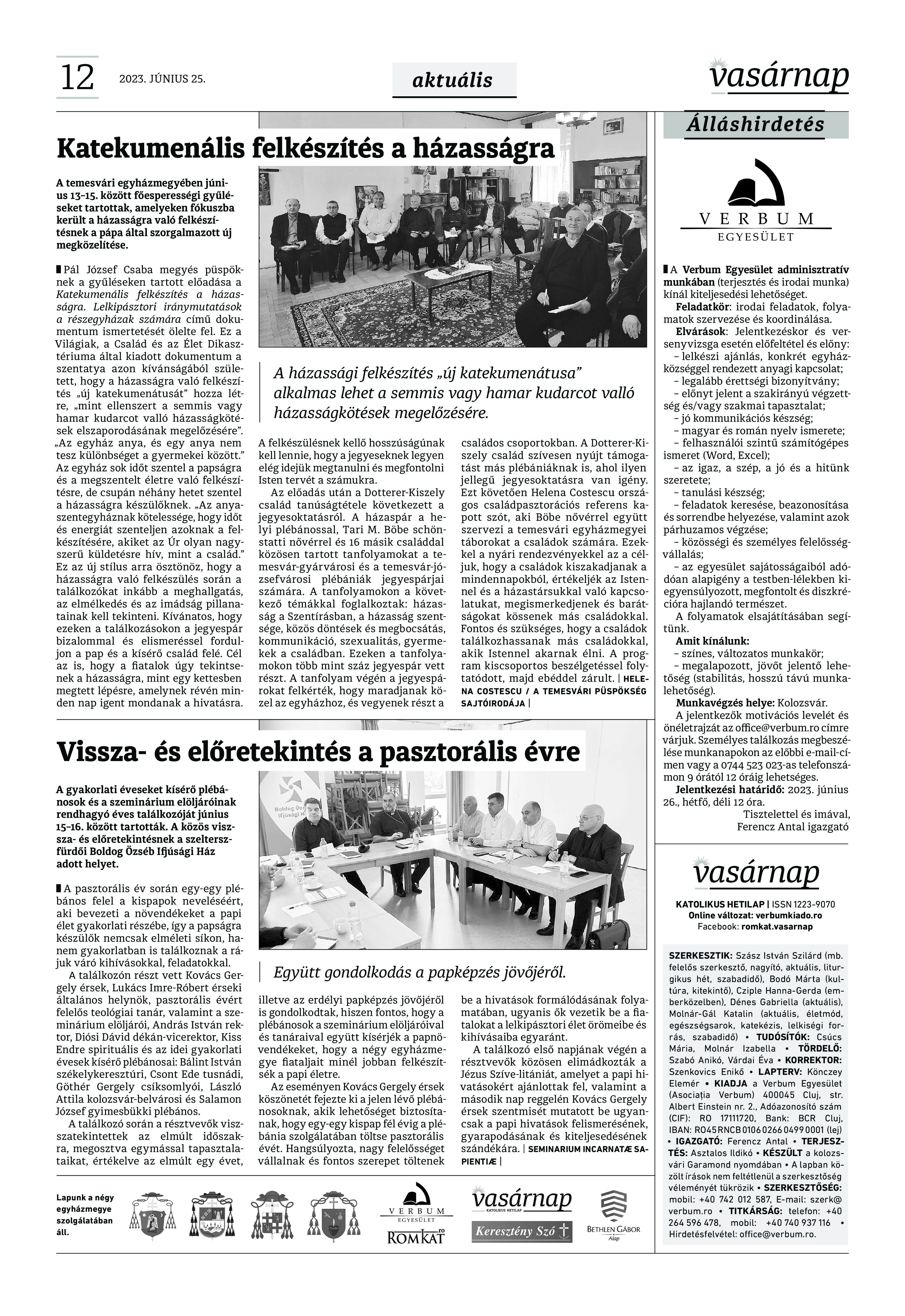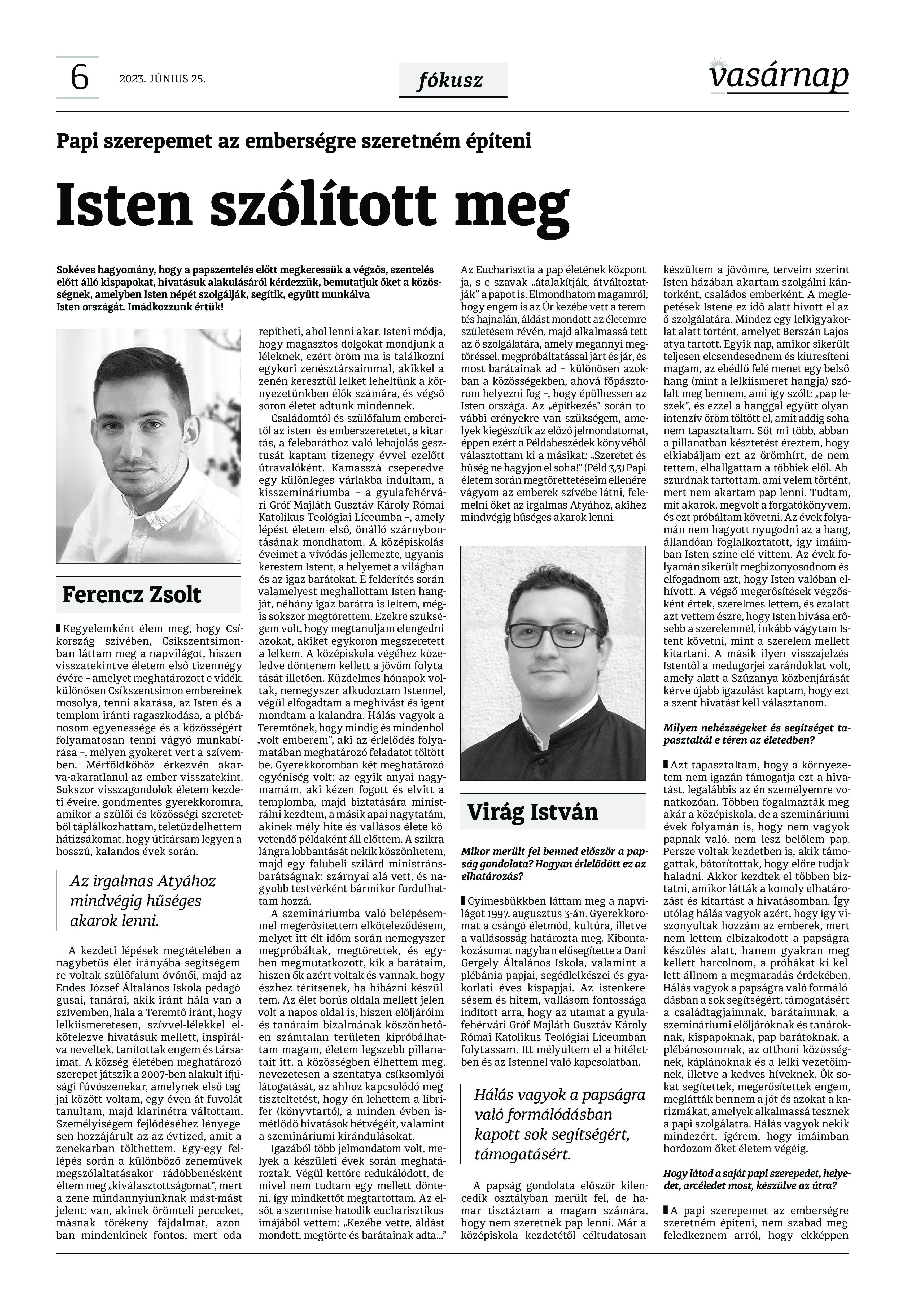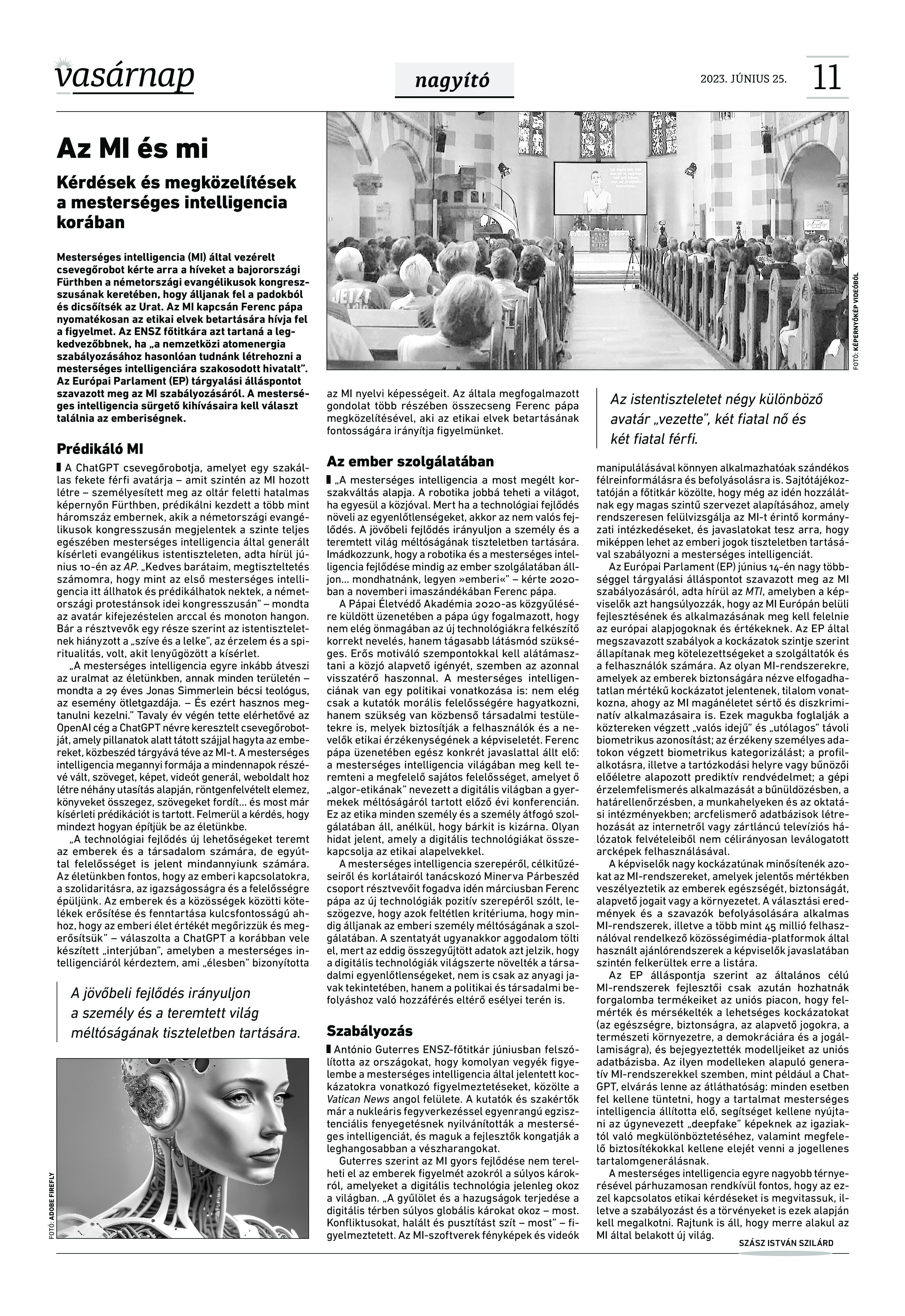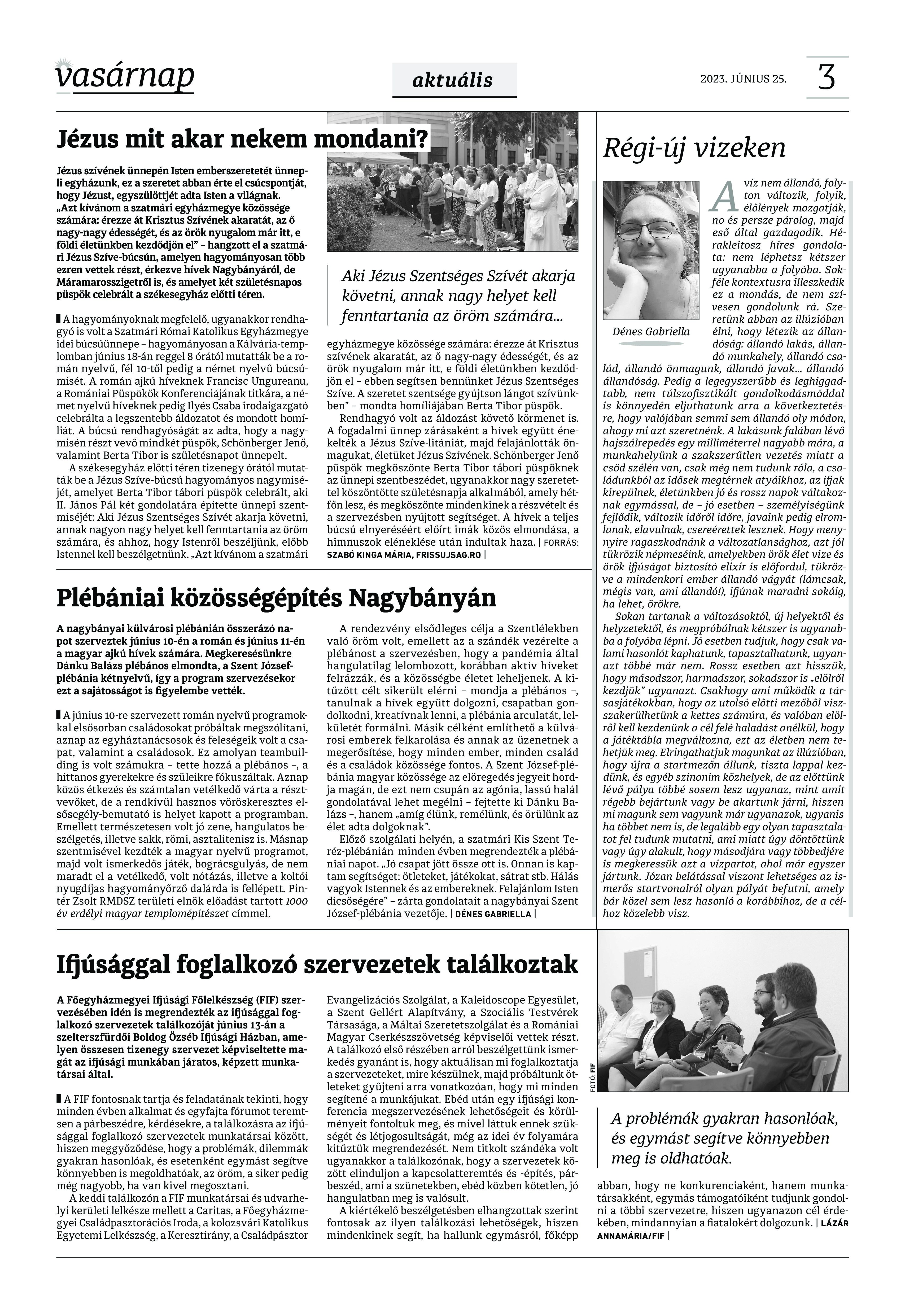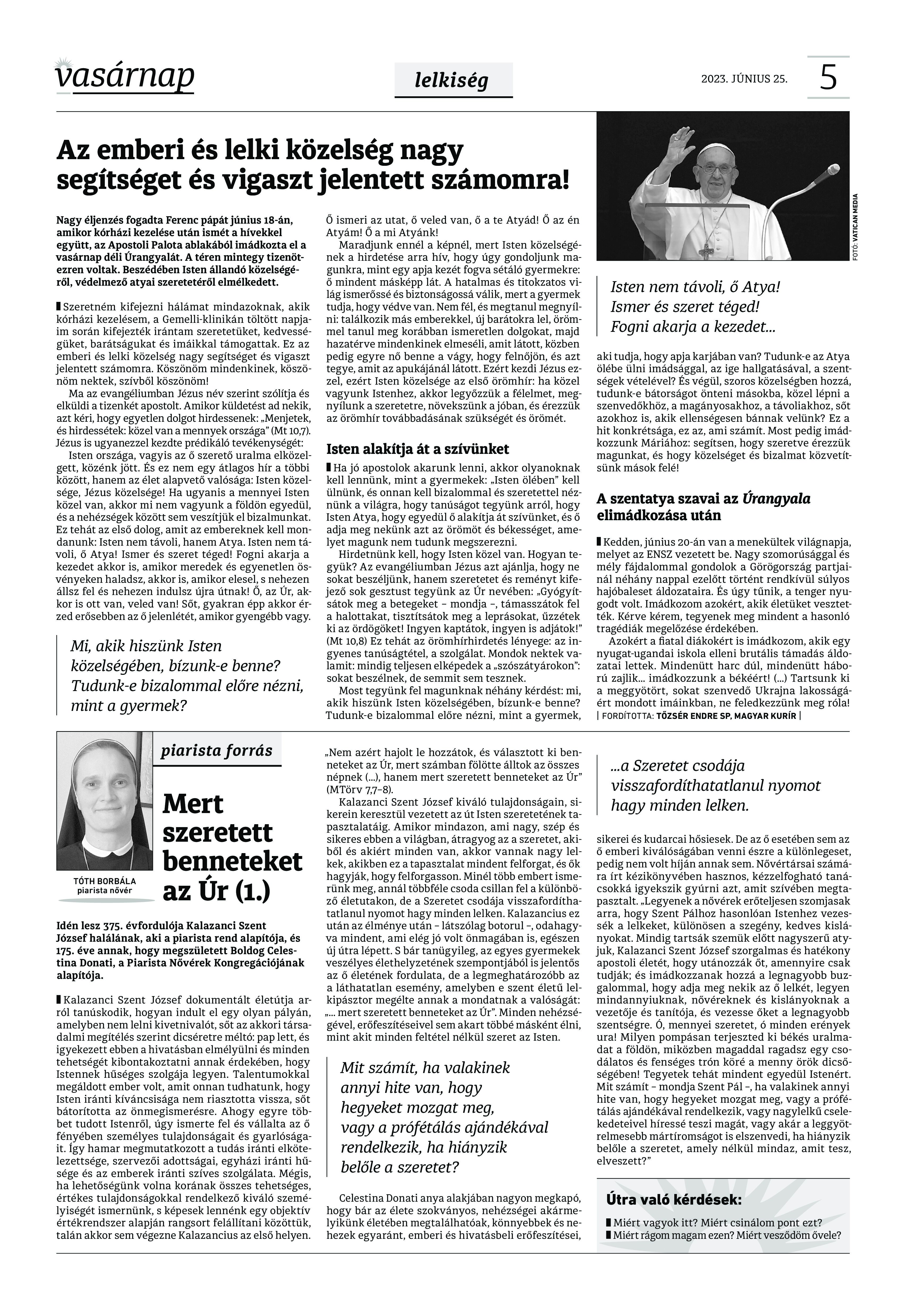 VASÁRNAP - 2023. JÚNIUS 25. A Vasárnap Katolikus Hetilap 2023. június 25. / XXXIII évf. / 26. számának digitális változata