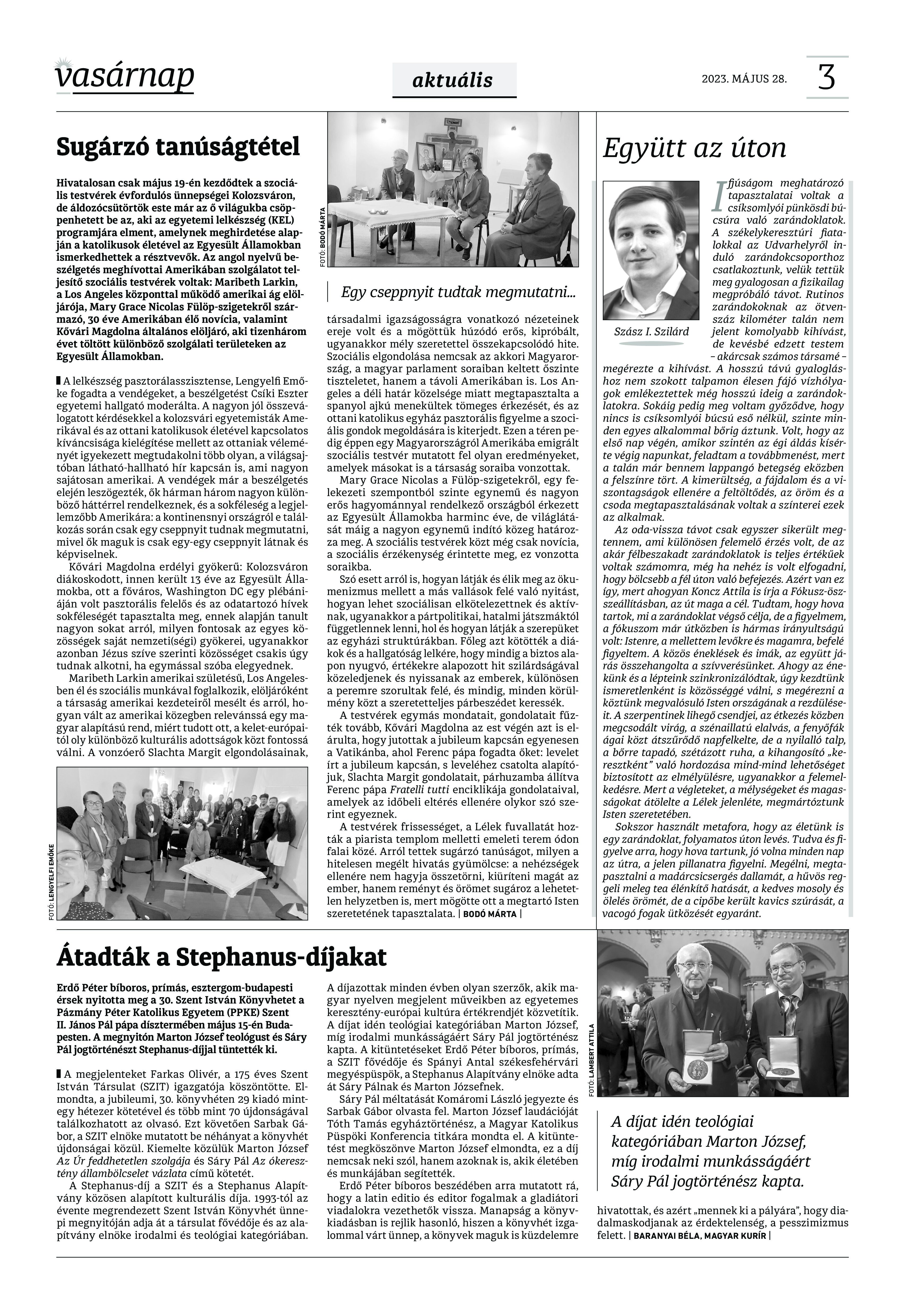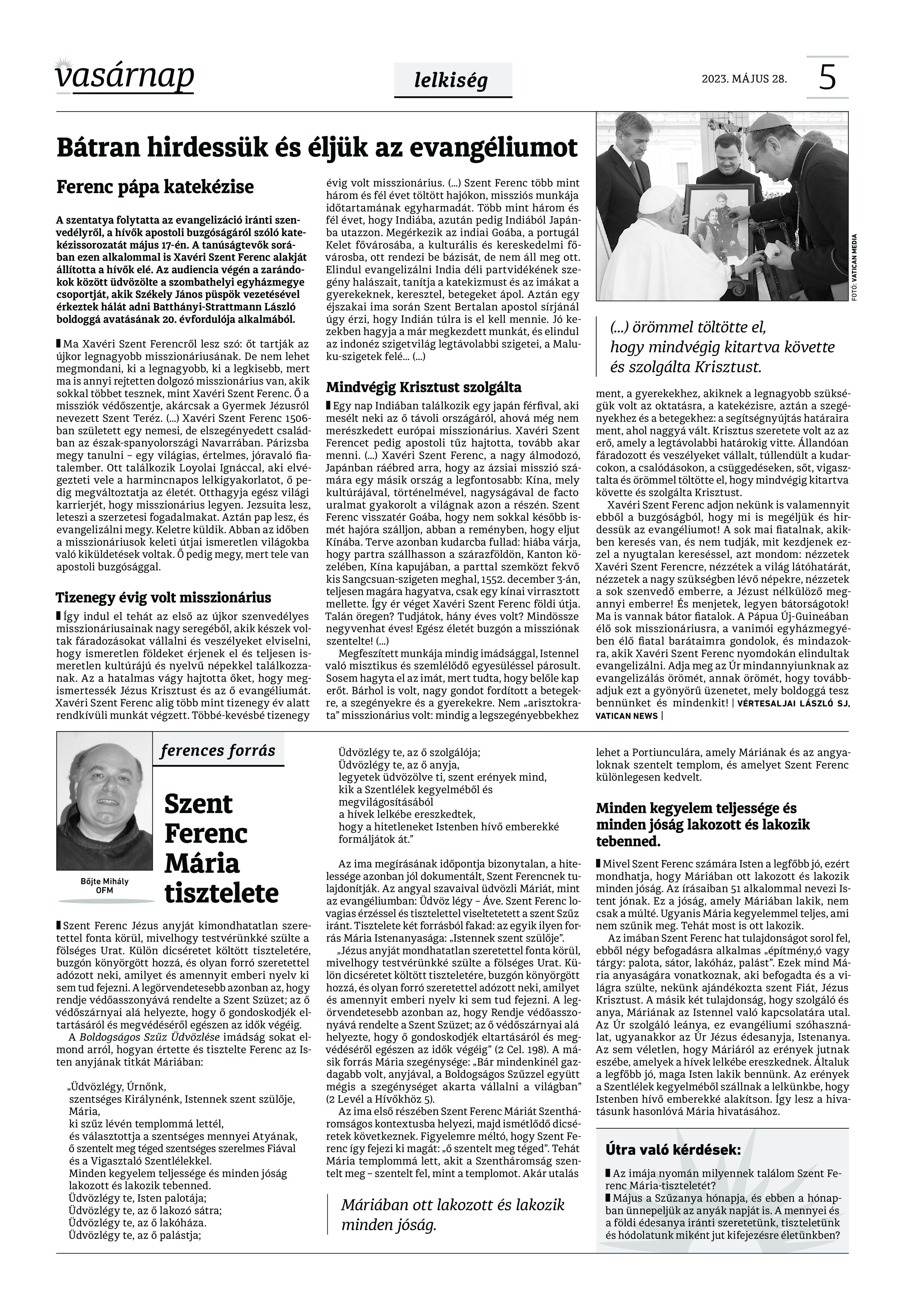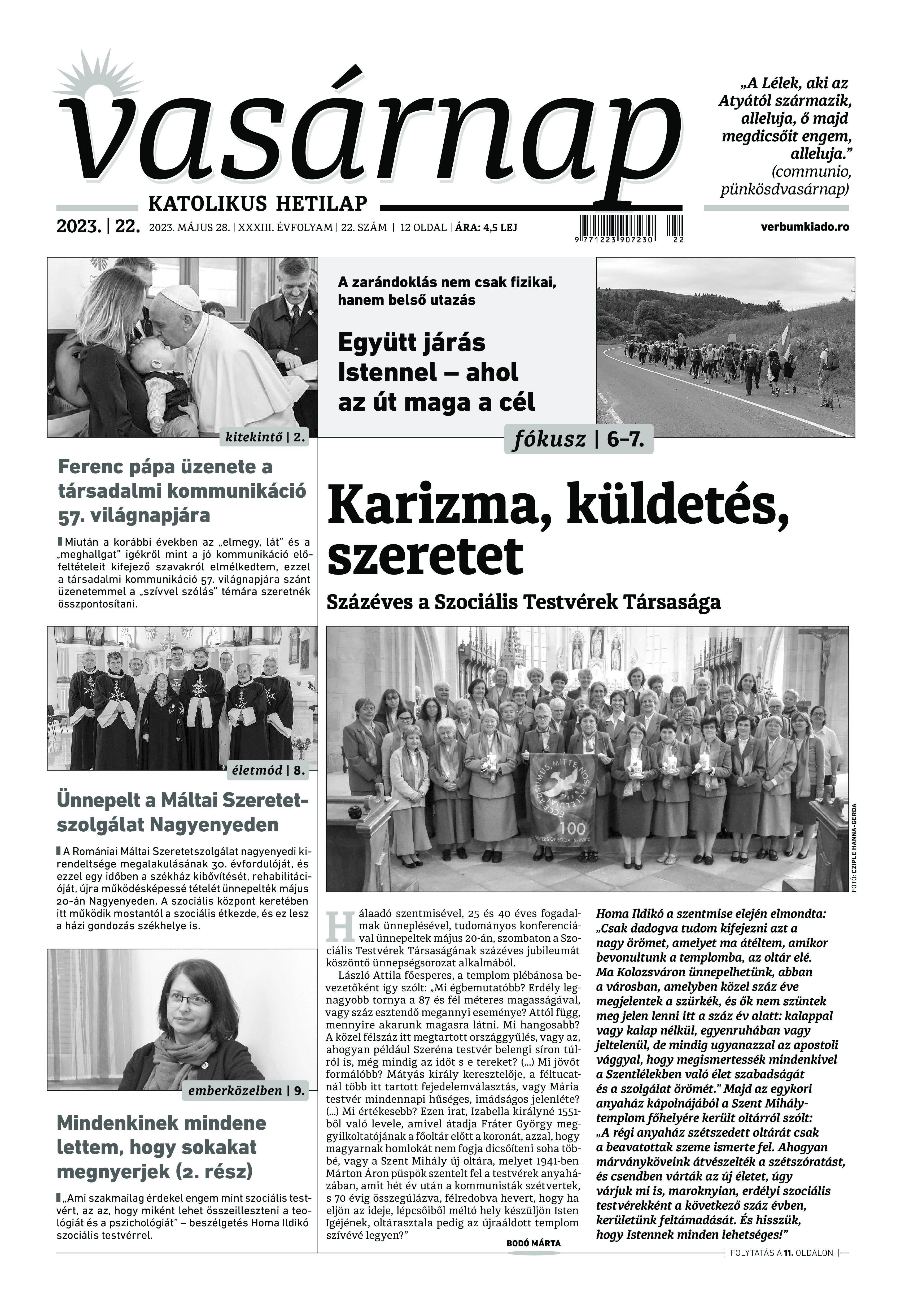 A Vasárnap Katolikus Hetilap 2023. május 28. / XXXIII évf. / 22. számának digitális változata