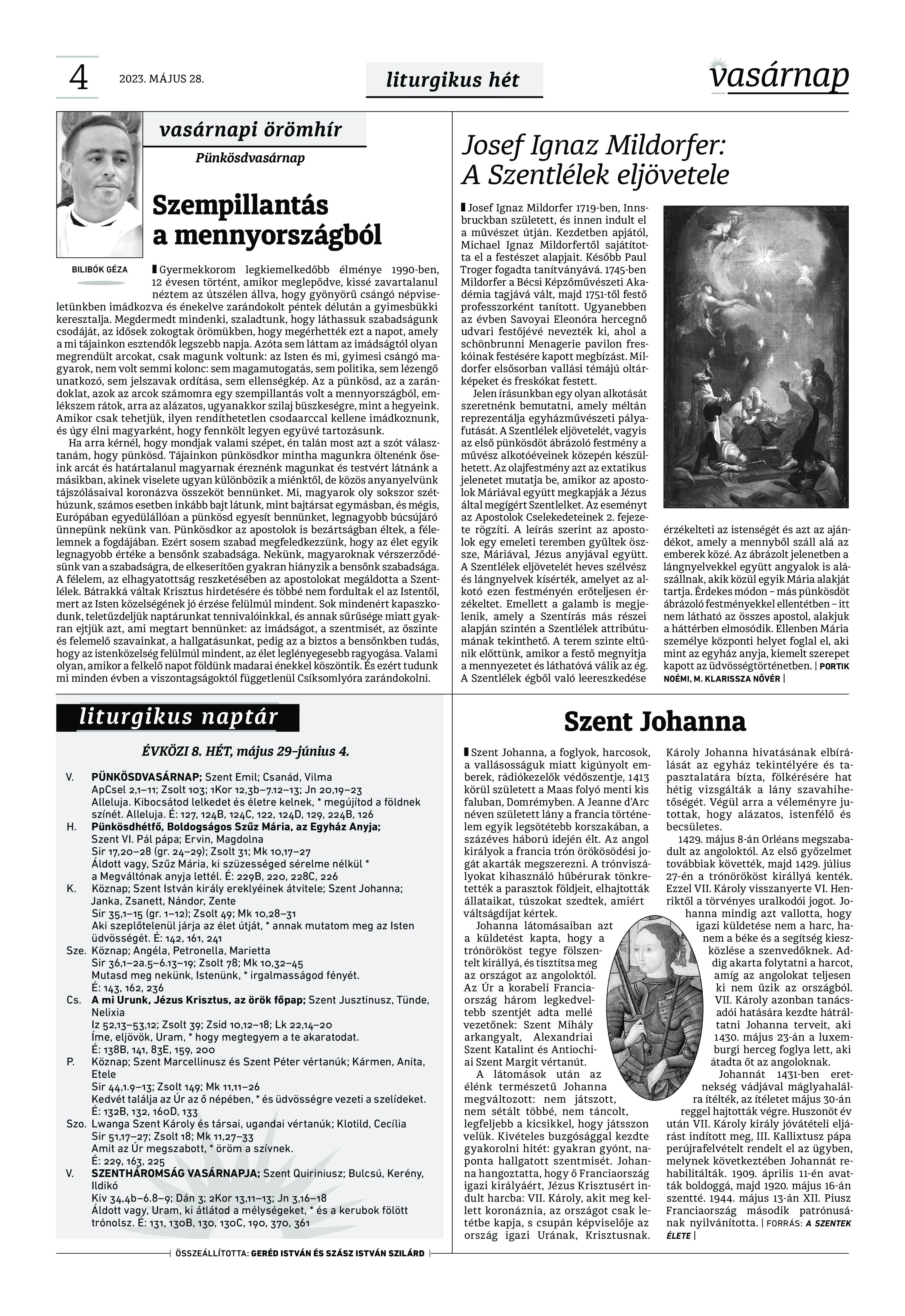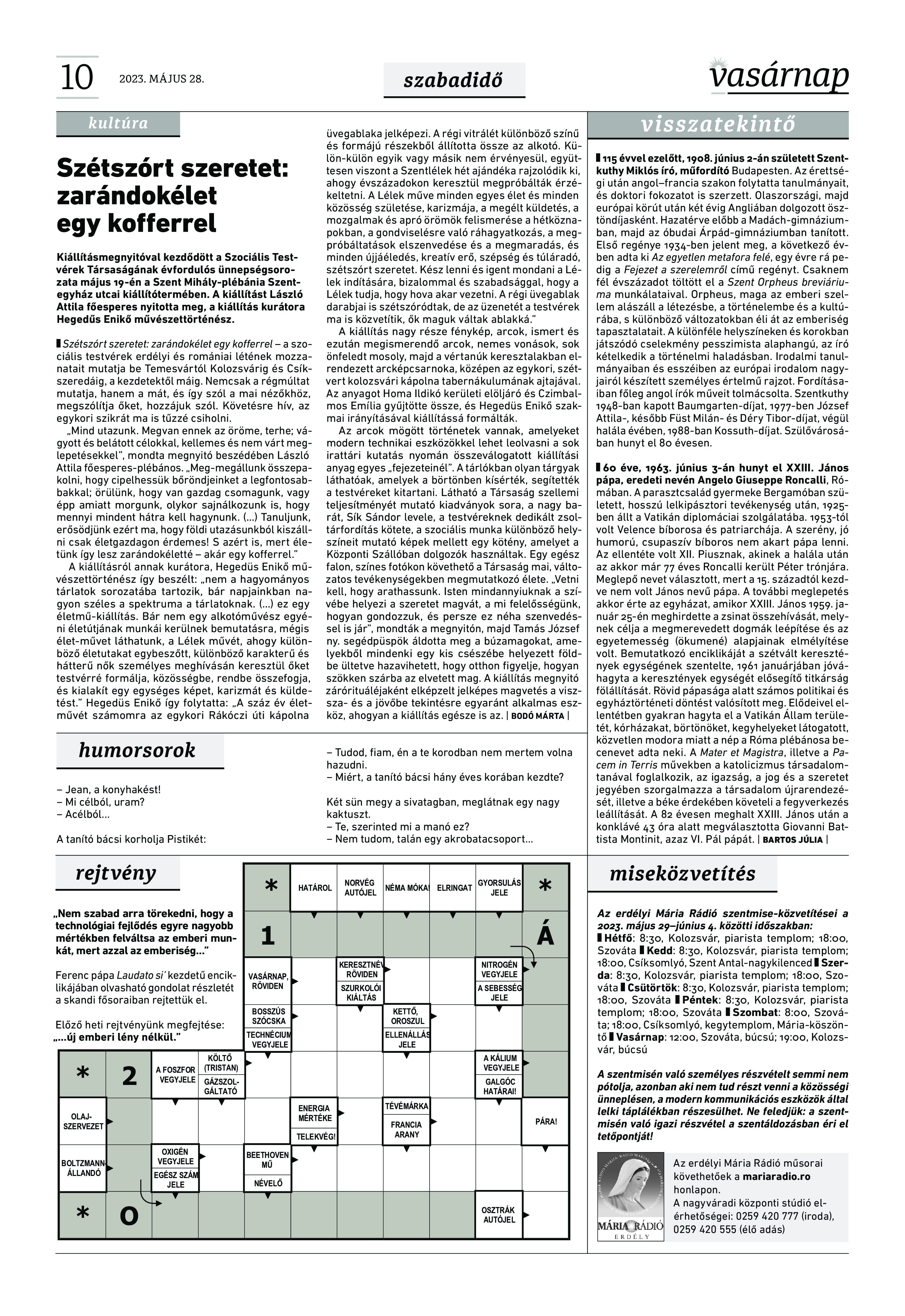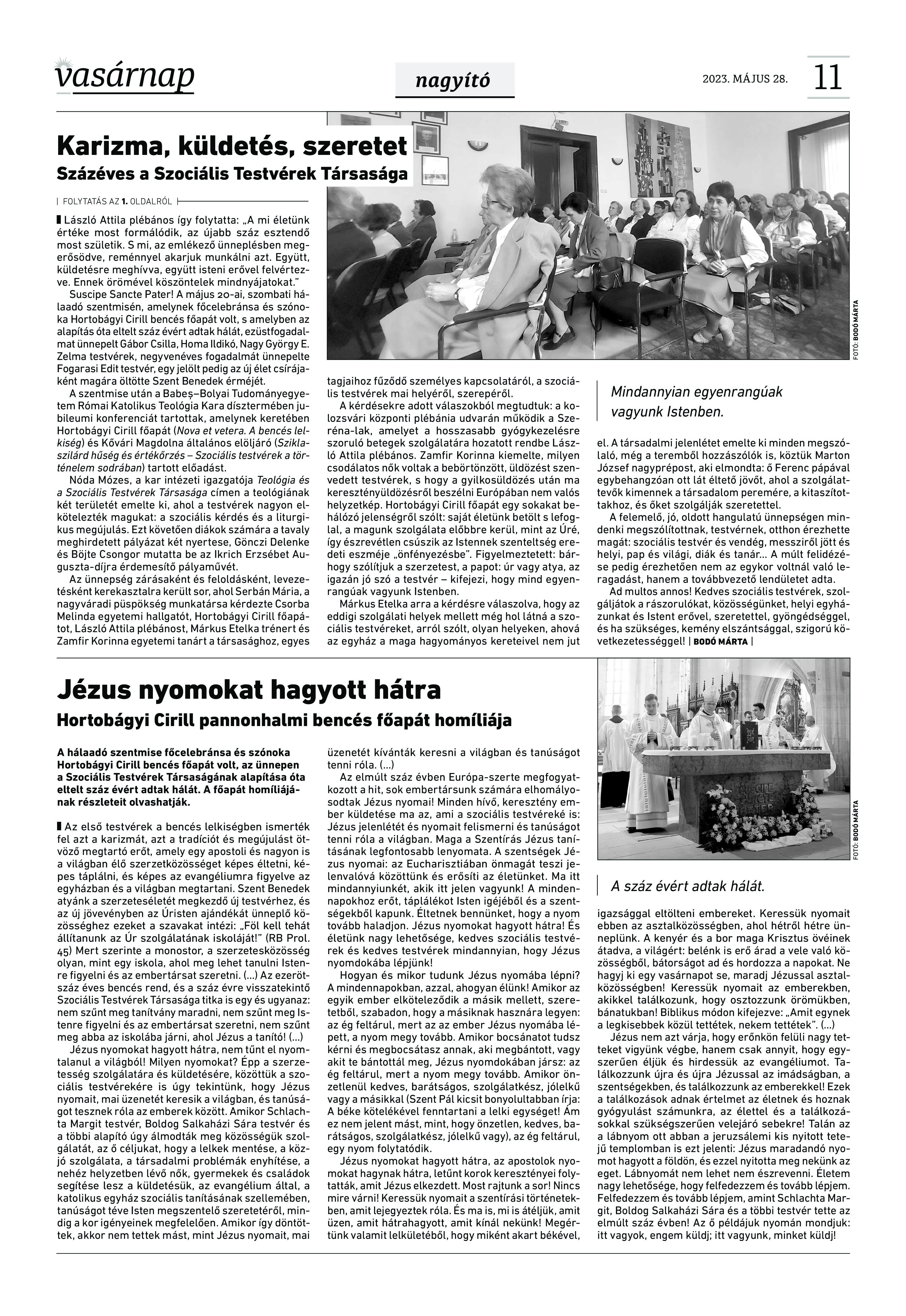 A Vasárnap Katolikus Hetilap 2023. május 28. / XXXIII évf. / 22. számának digitális változata