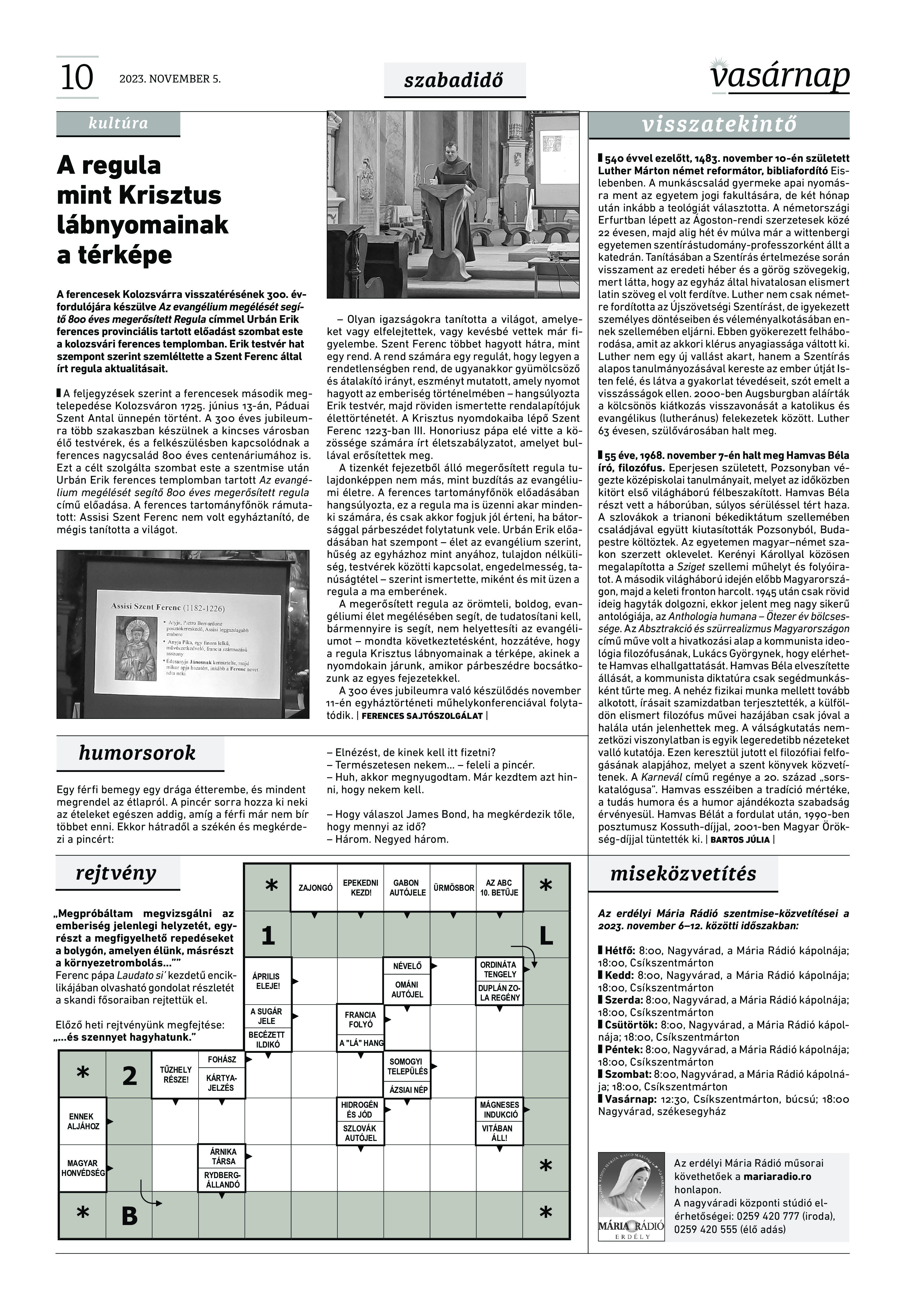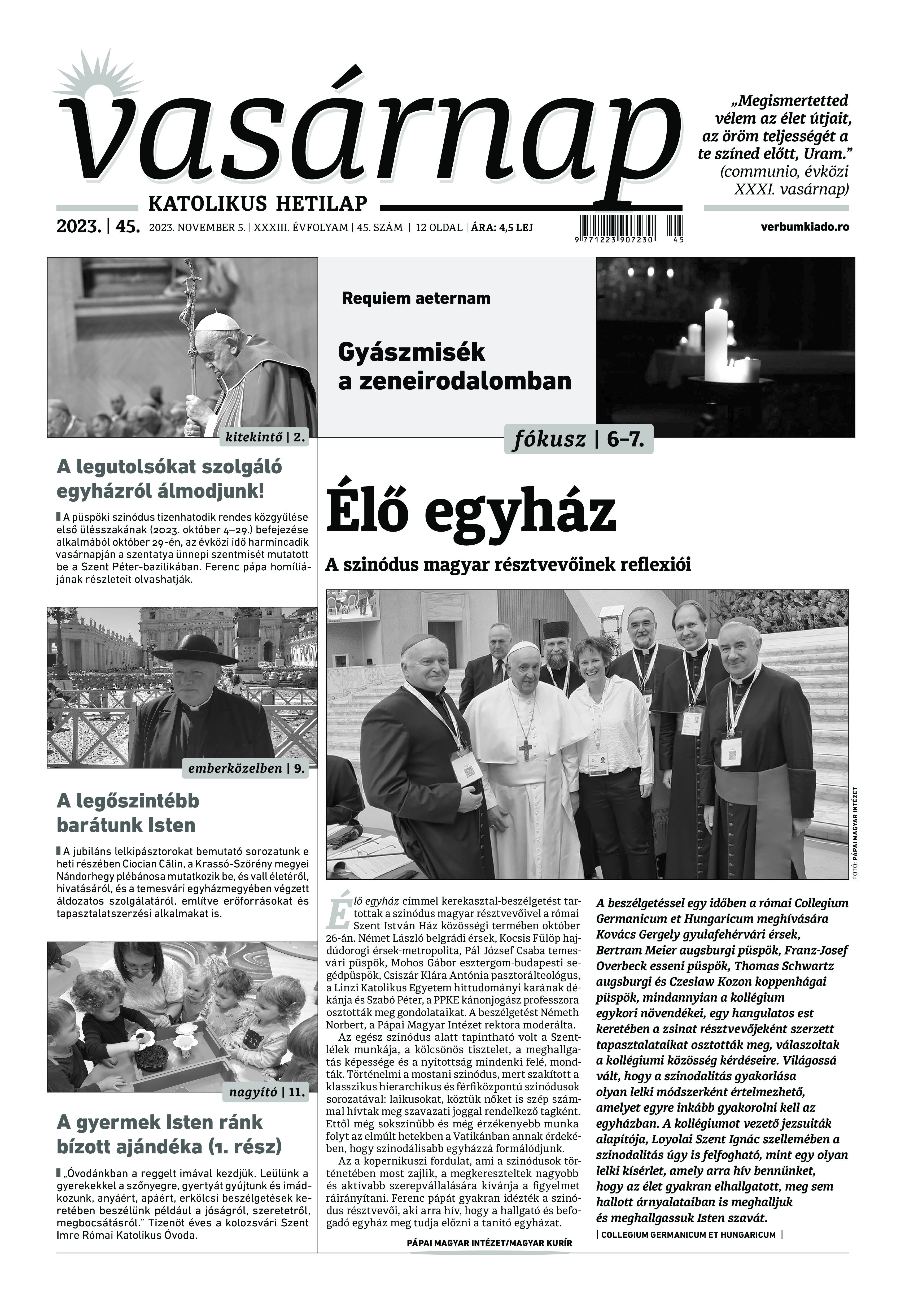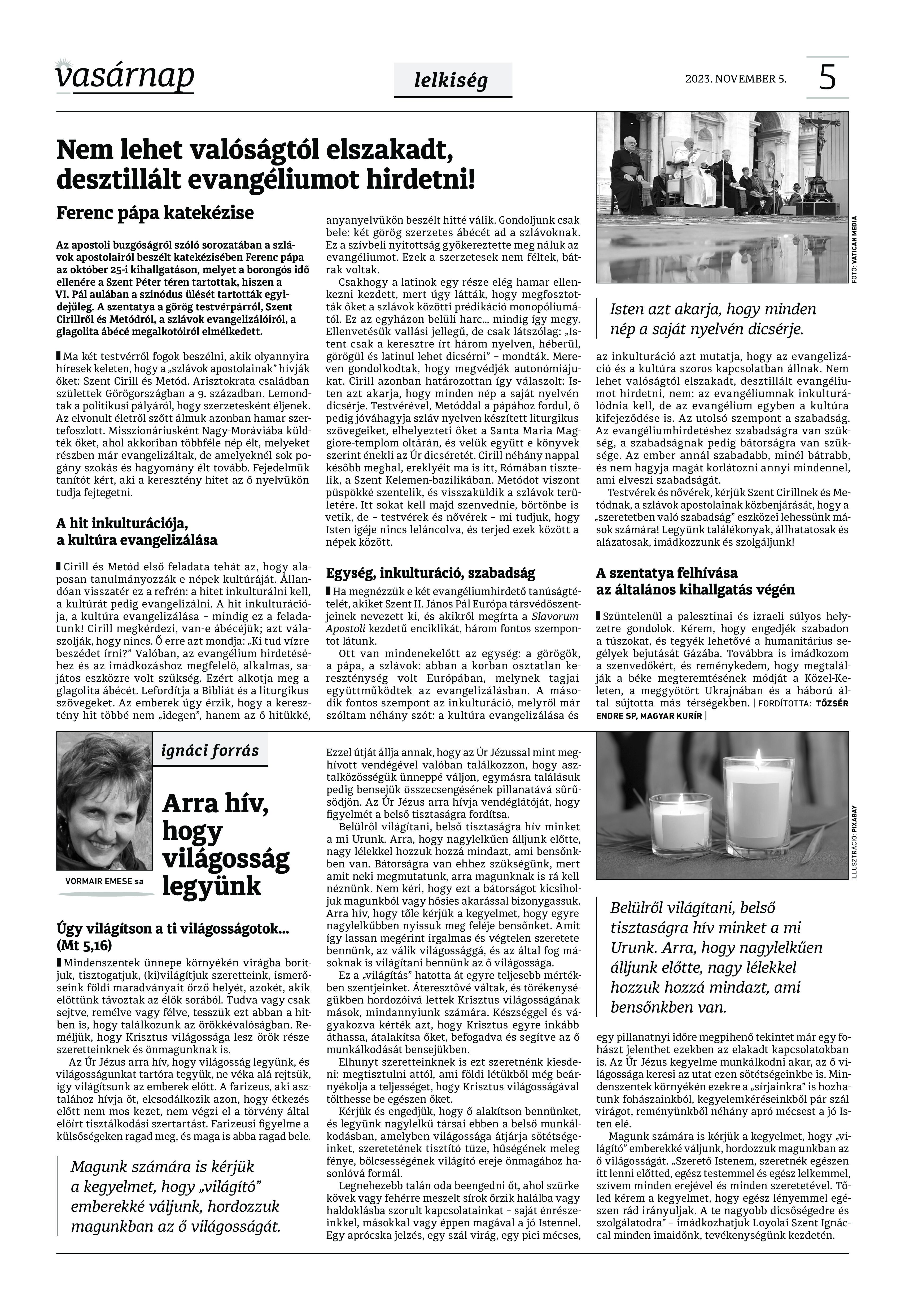 VASÁRNAP - 2023. november 5. A Vasárnap Katolikus Hetilap 2023. november 5. / XXXIII évf. / 45. számának digitális változata 1 / 12 2 & 3 / 12 4 & 5 / 12 6 & 7 / 12 8 & 9 / 12 10 & 11 / 12 12 / 12