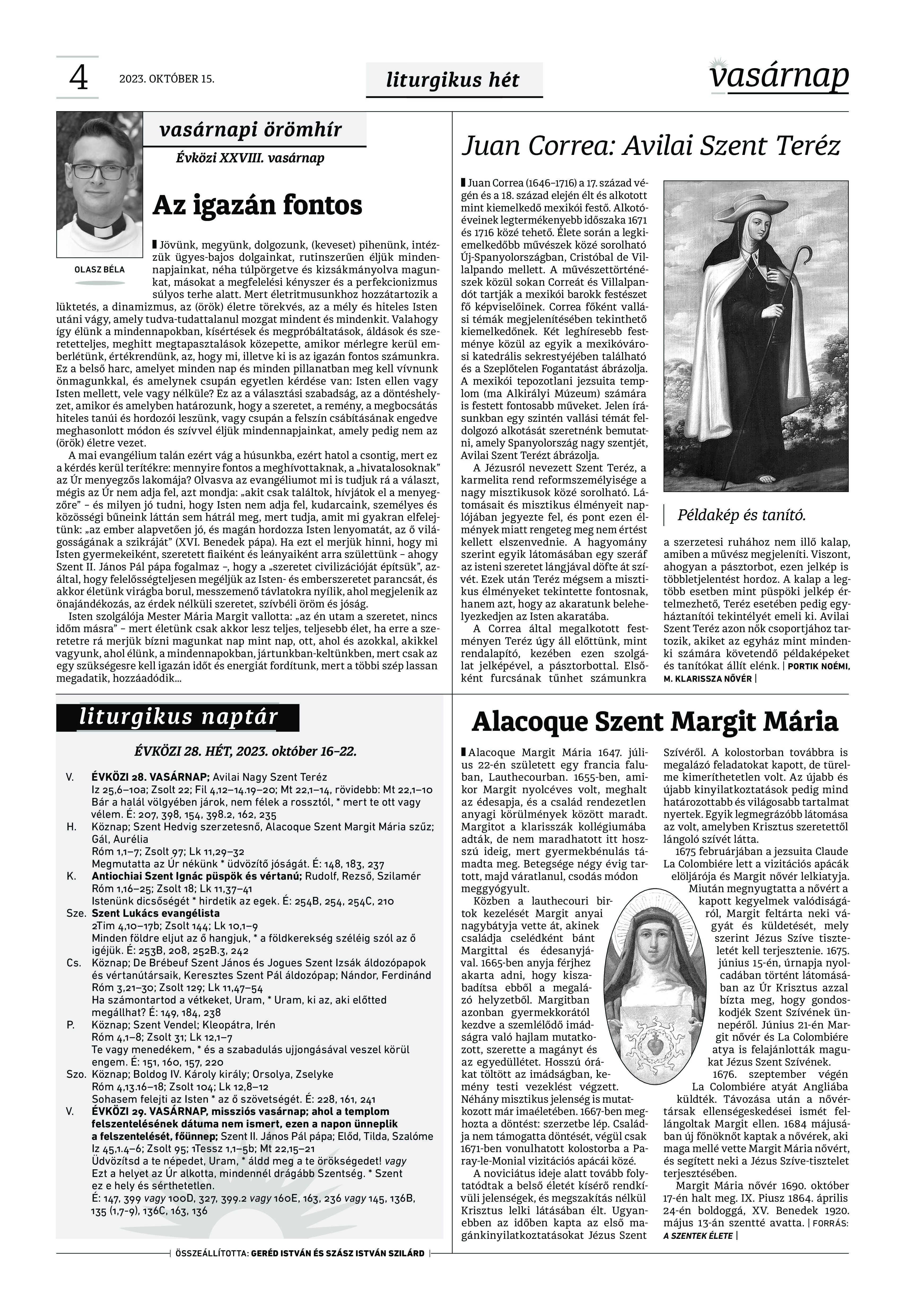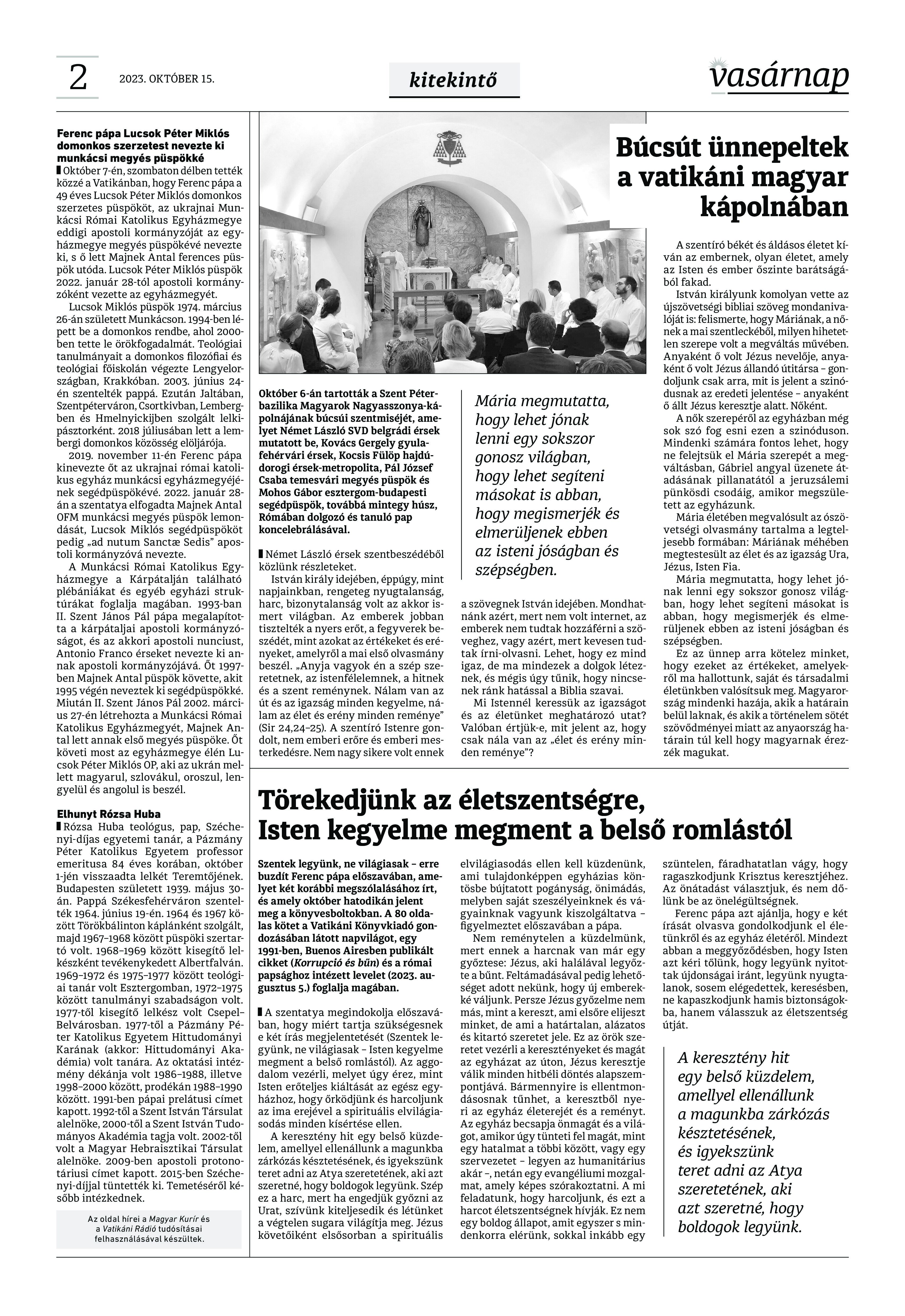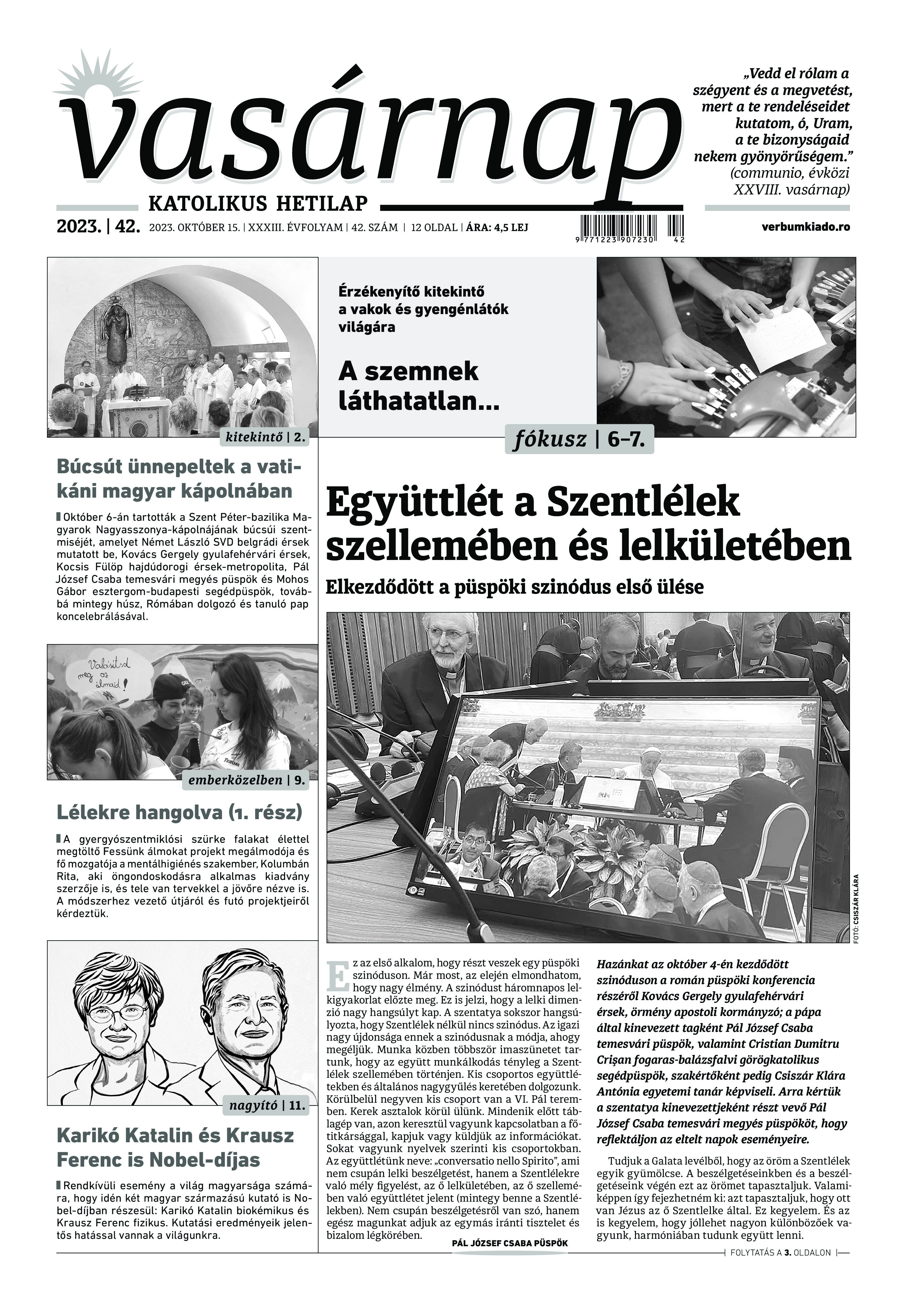 VASÁRNAP - 2023. október 15. A Vasárnap Katolikus Hetilap 2023. október 15. / XXXIII évf. / 42. számának digitális változata