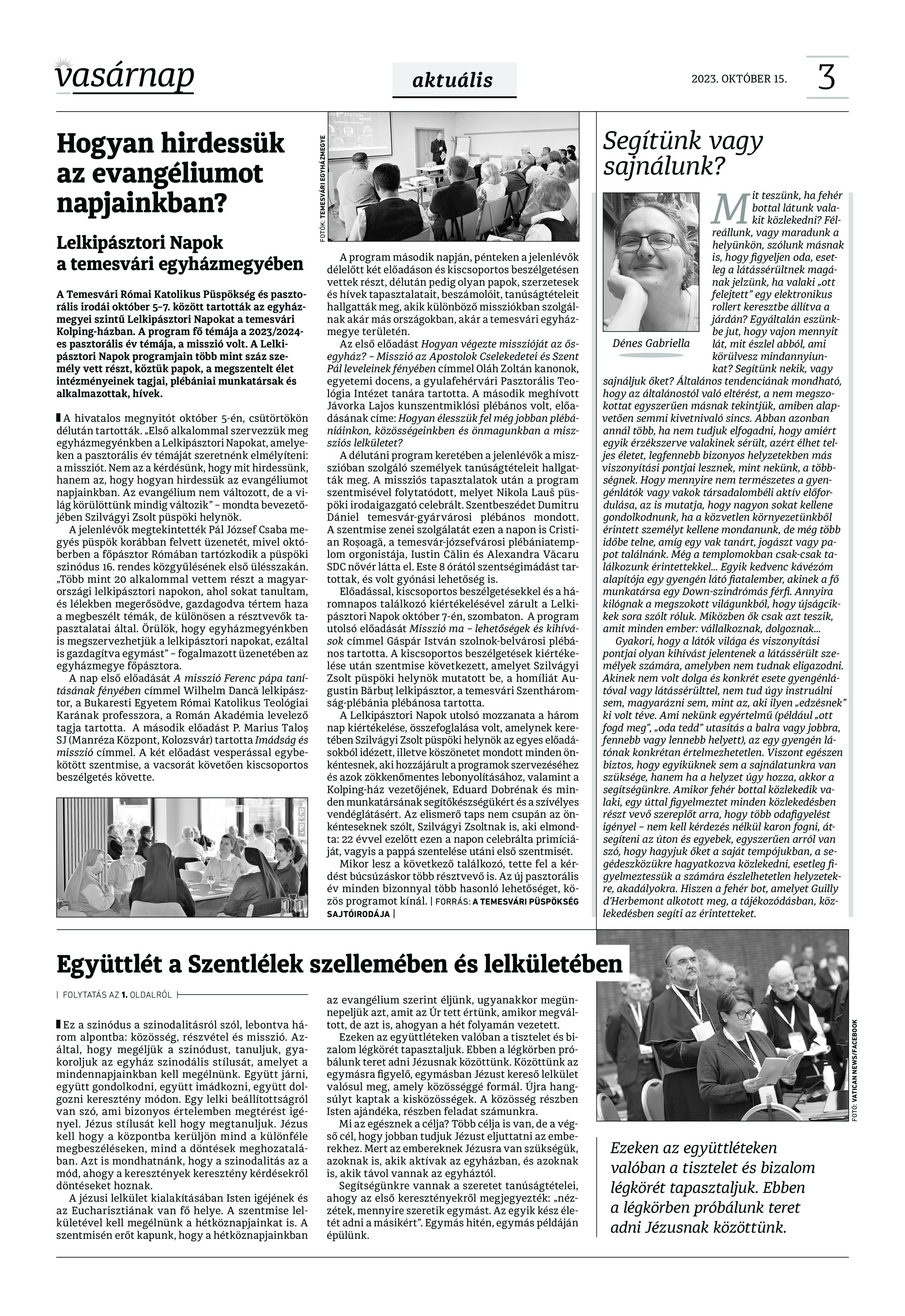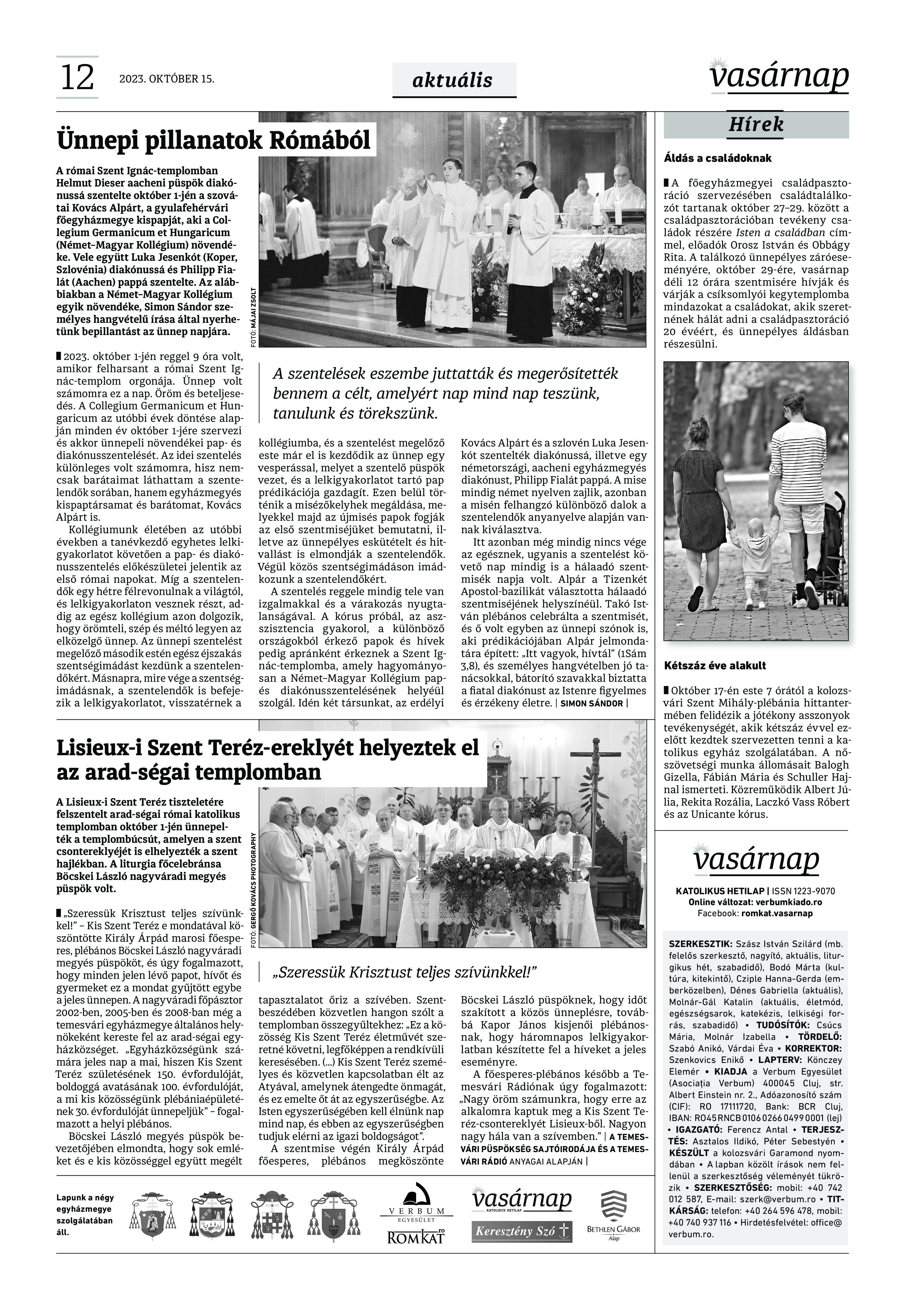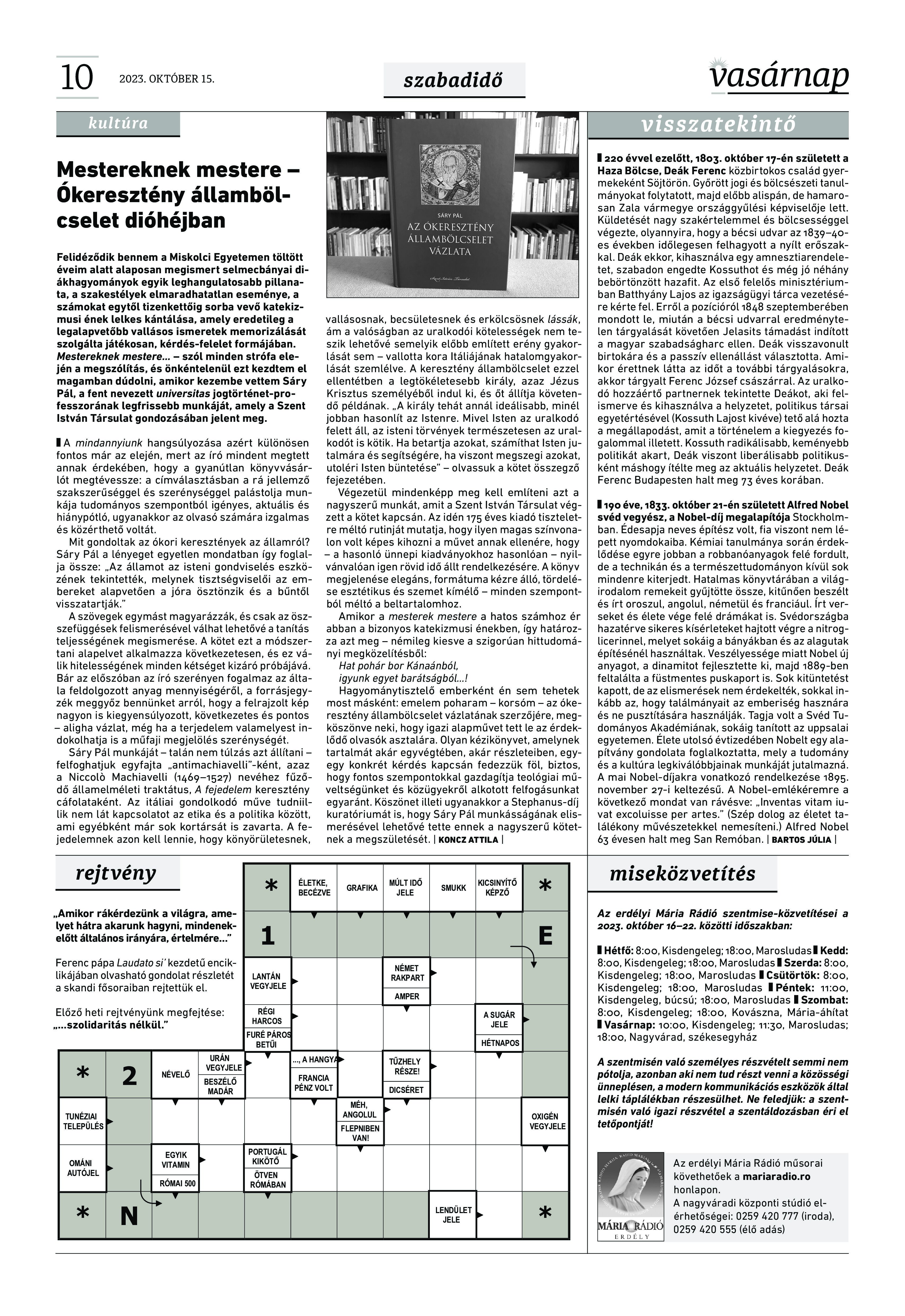 VASÁRNAP - 2023. október 15. A Vasárnap Katolikus Hetilap 2023. október 15. / XXXIII évf. / 42. számának digitális változata