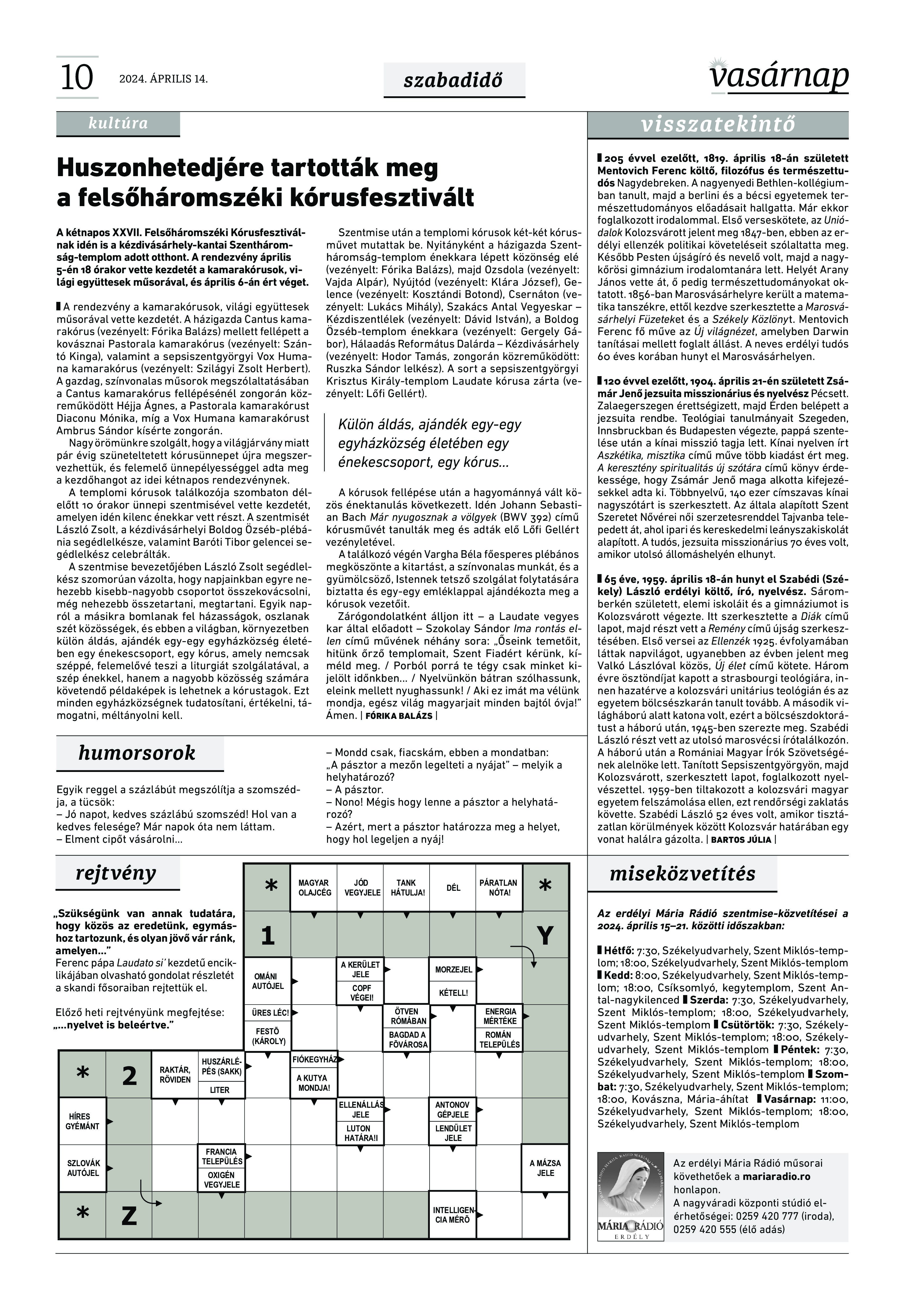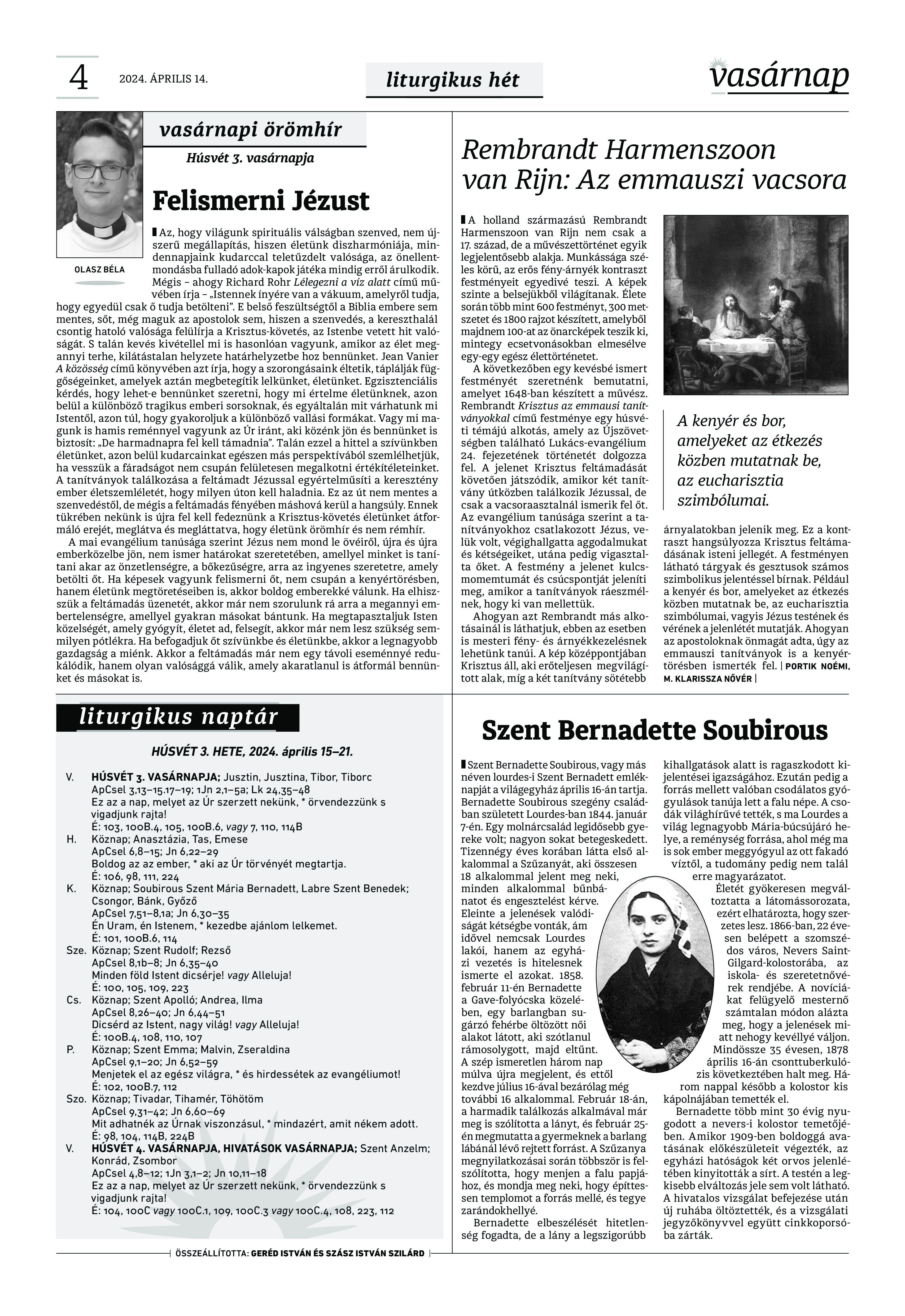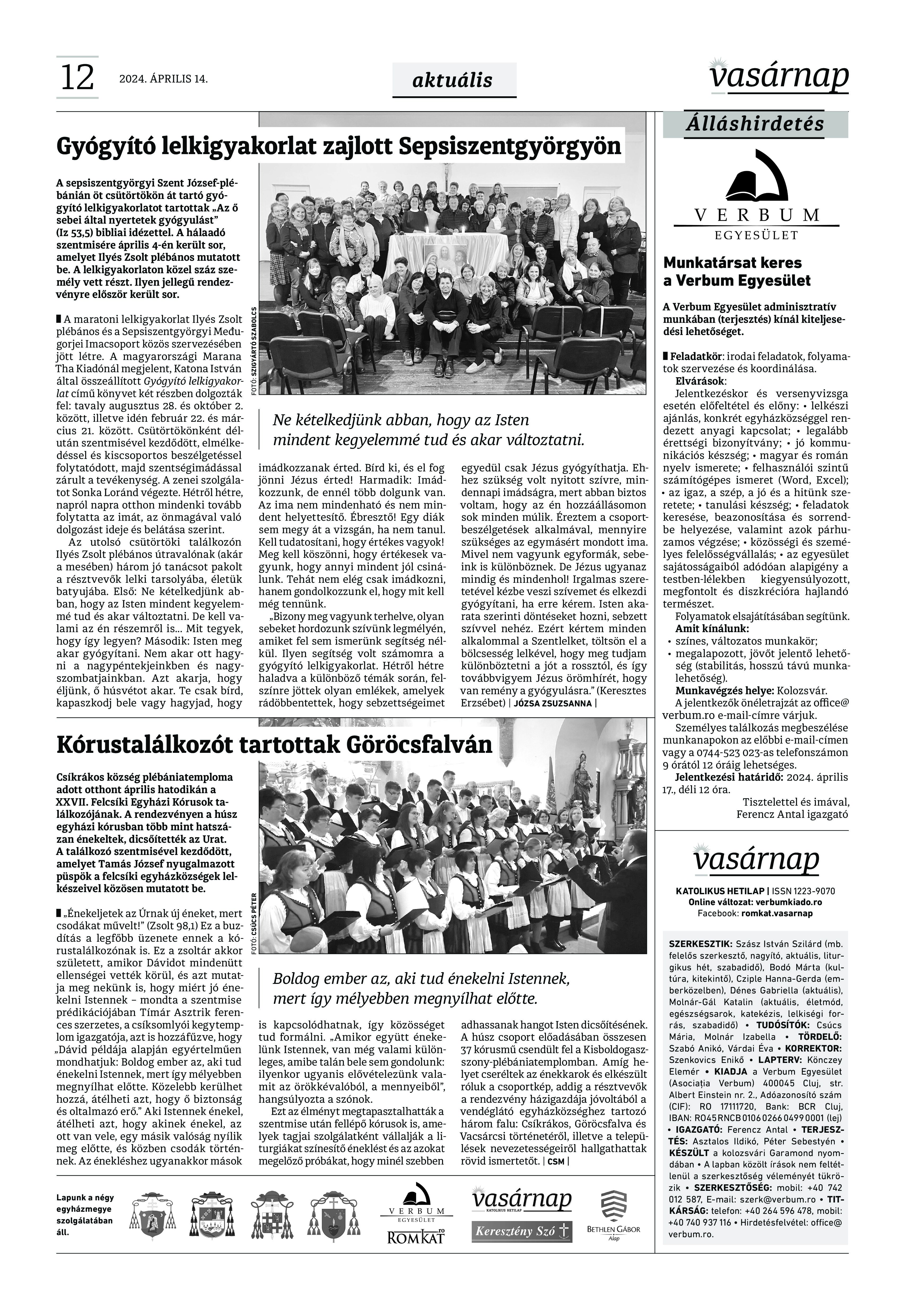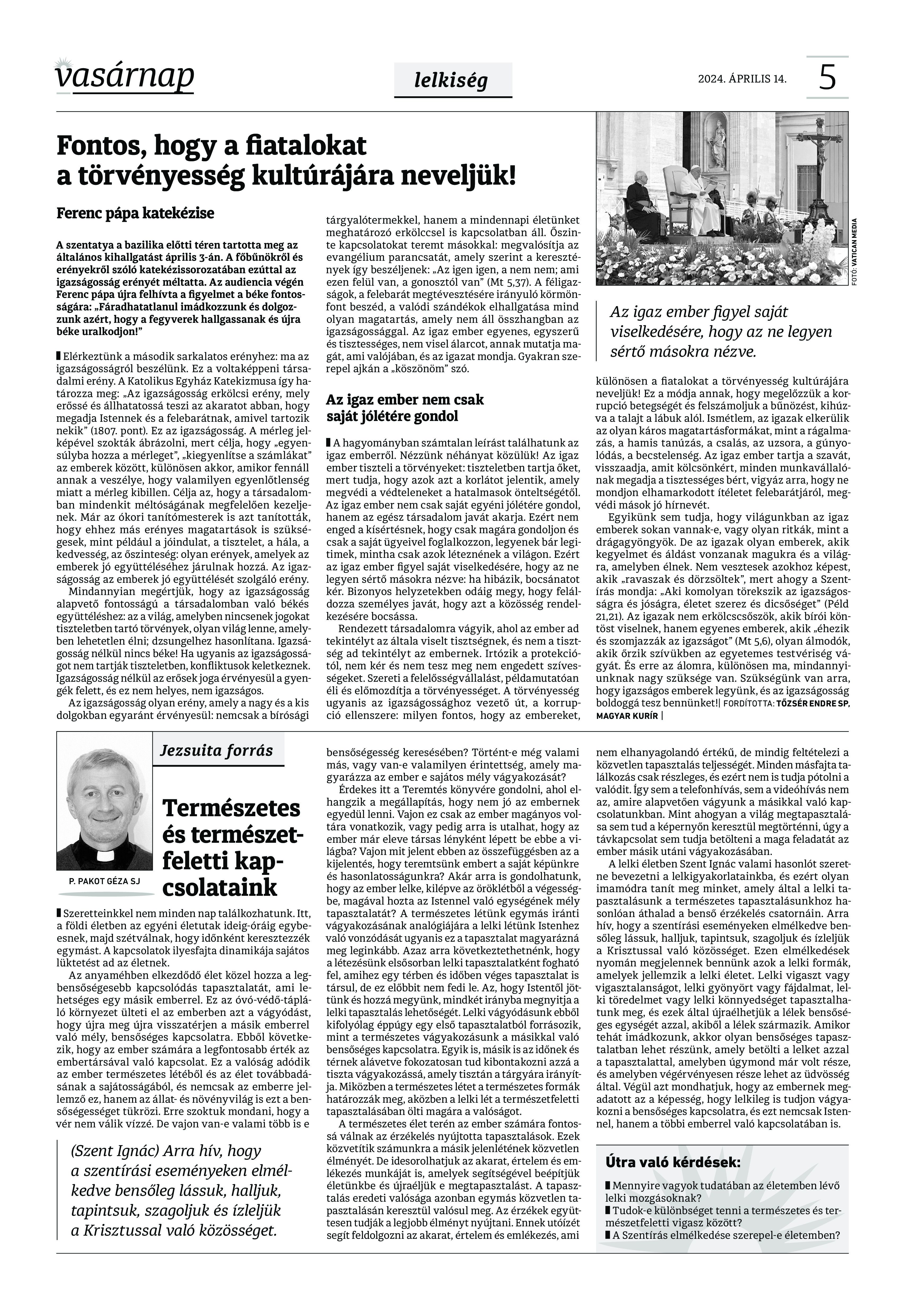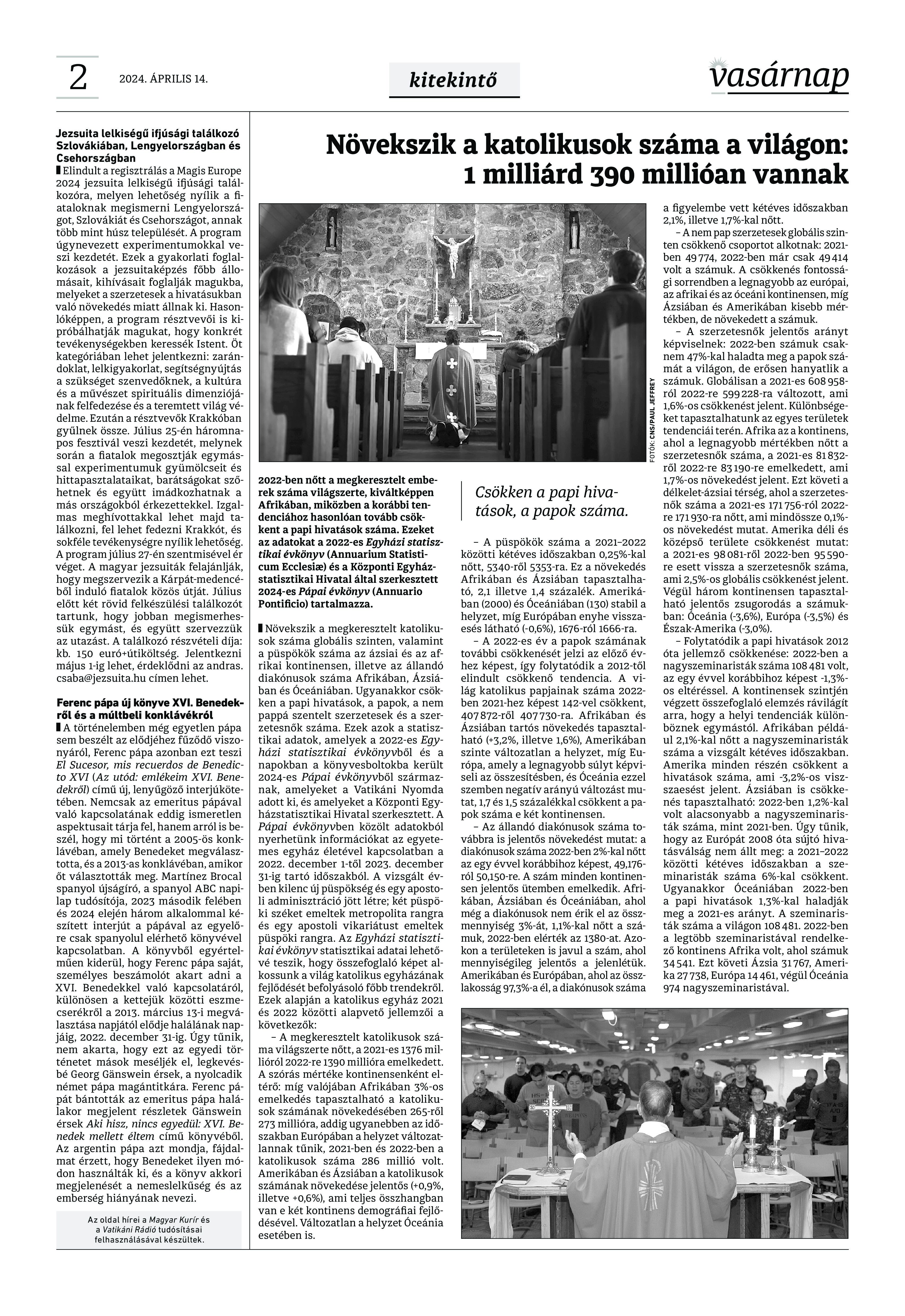 VASÁRNAP - 2024. április 14. A Vasárnap Katolikus Hetilap 2024. április 14. / XXXIV évf. / 15. számának digitális változata. 1 / 12 2 & 3 / 12 4 & 5 / 12 6 & 7 / 12 8 & 9 / 12 10 & 11 / 12 12 / 12