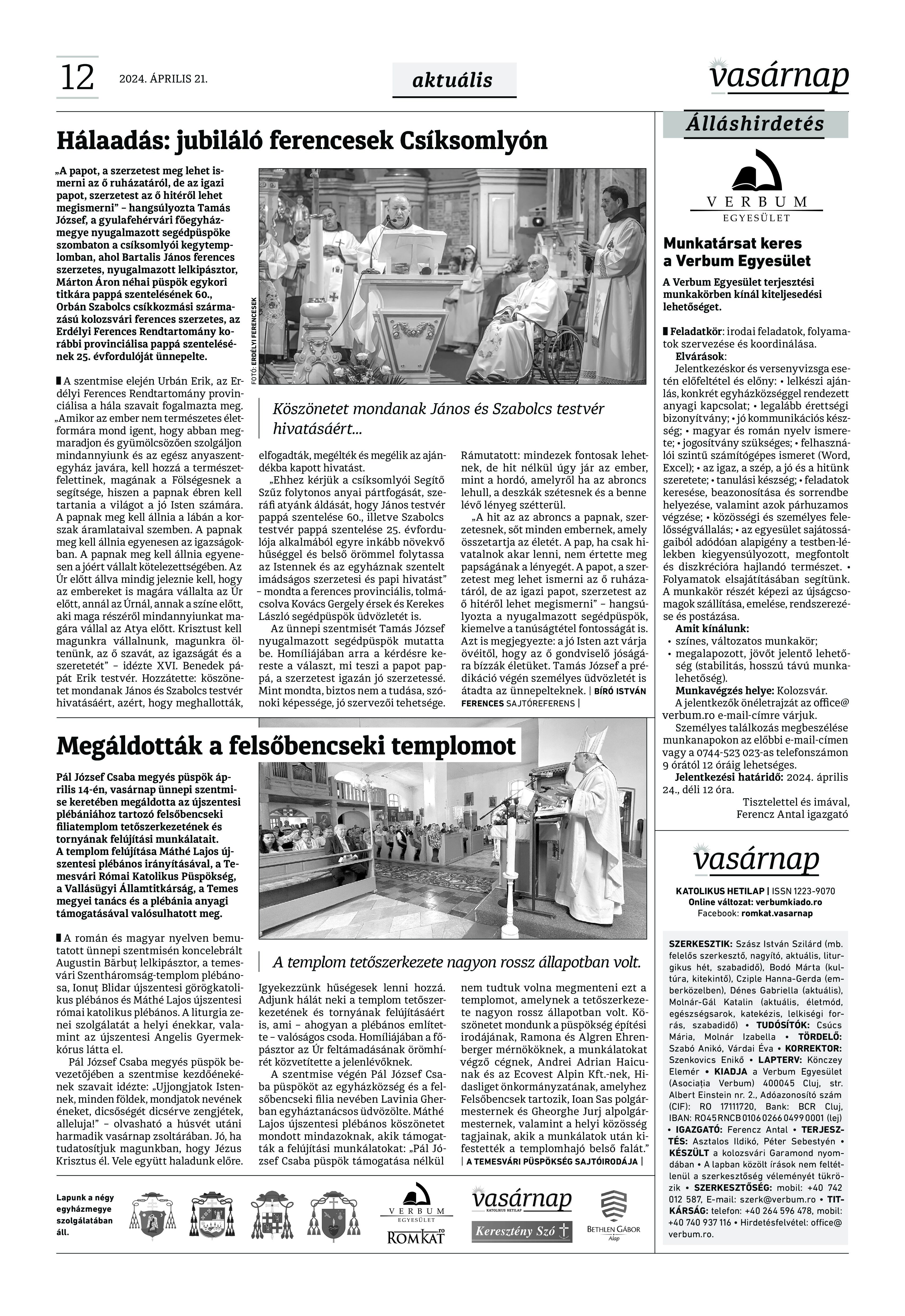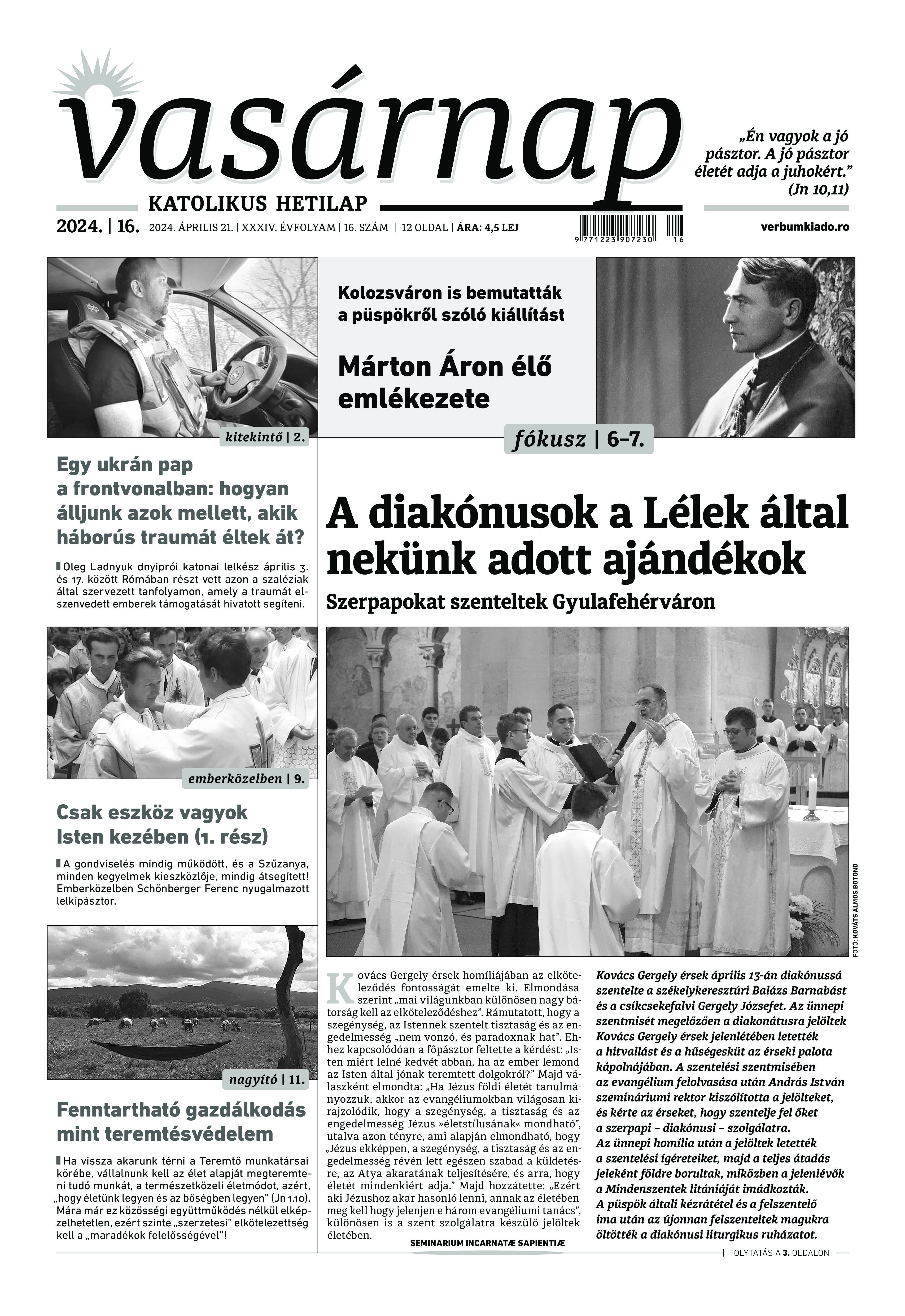 VASÁRNAP - 2024. április 21. A Vasárnap Katolikus Hetilap 2024. április 21. / XXXIV évf. / 16. számának digitális változata. 1 / 12 2 & 3 / 12 4 & 5 / 12 6 & 7 / 12 8 & 9 / 12 10 & 11 / 12 12 / 12