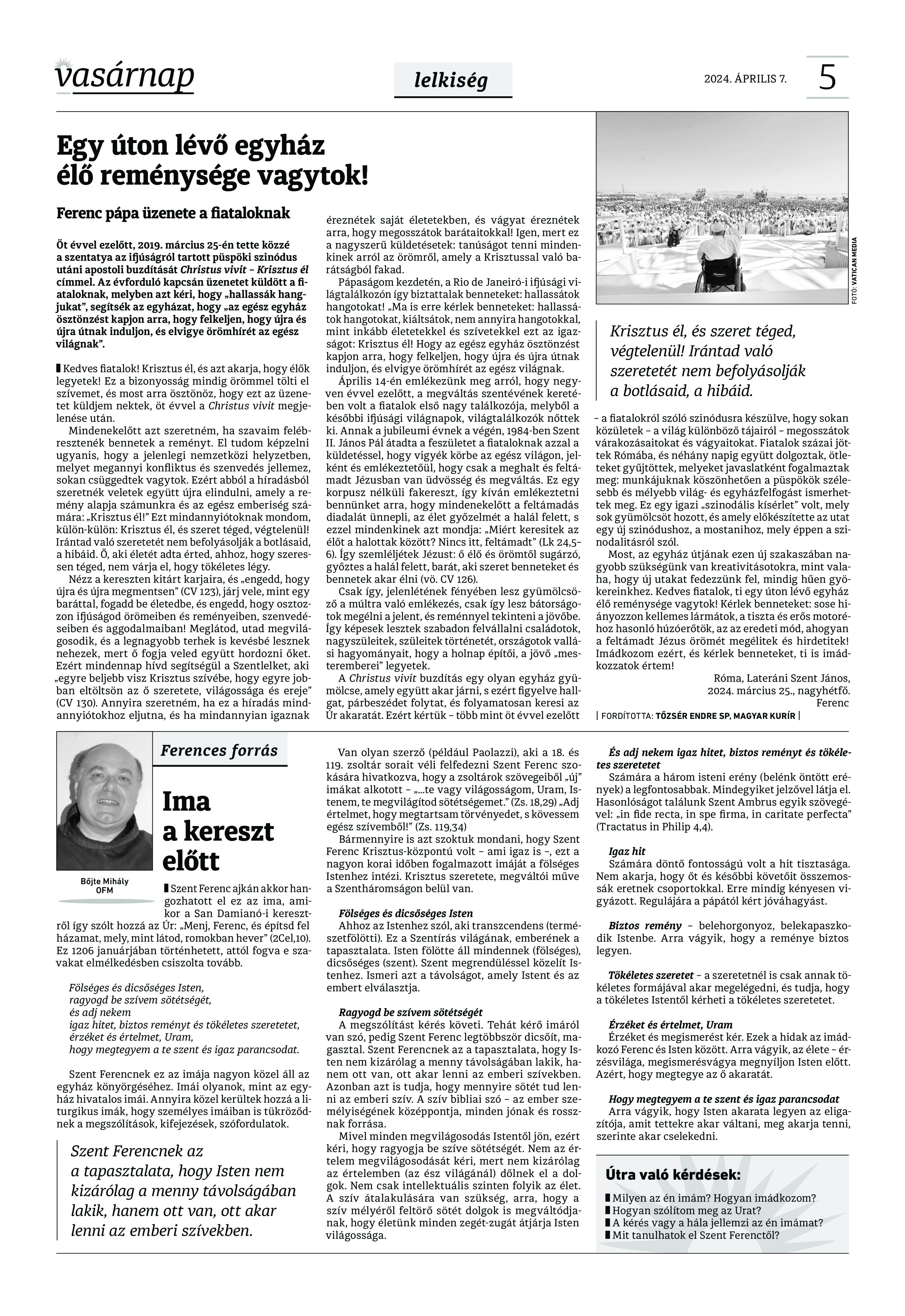 VASÁRNAP - 2024. április 7. A Vasárnap Katolikus Hetilap 2024. április 7. / XXXIV évf. / 14. számának digitális változata. 1 / 12 2 & 3 / 12 4 & 5 / 12 6 & 7 / 12 8 & 9 / 12 10 & 11 / 12 12 / 12