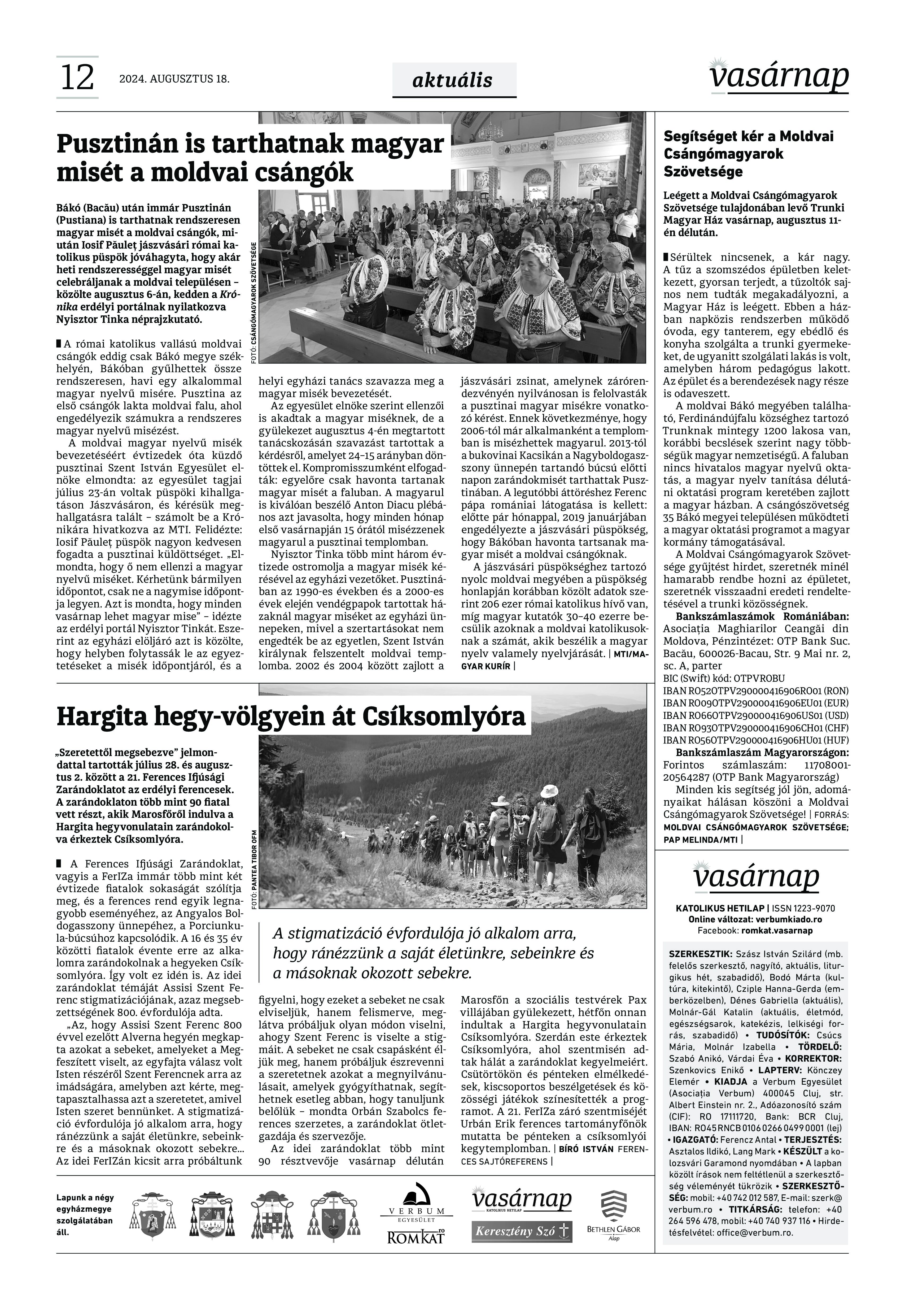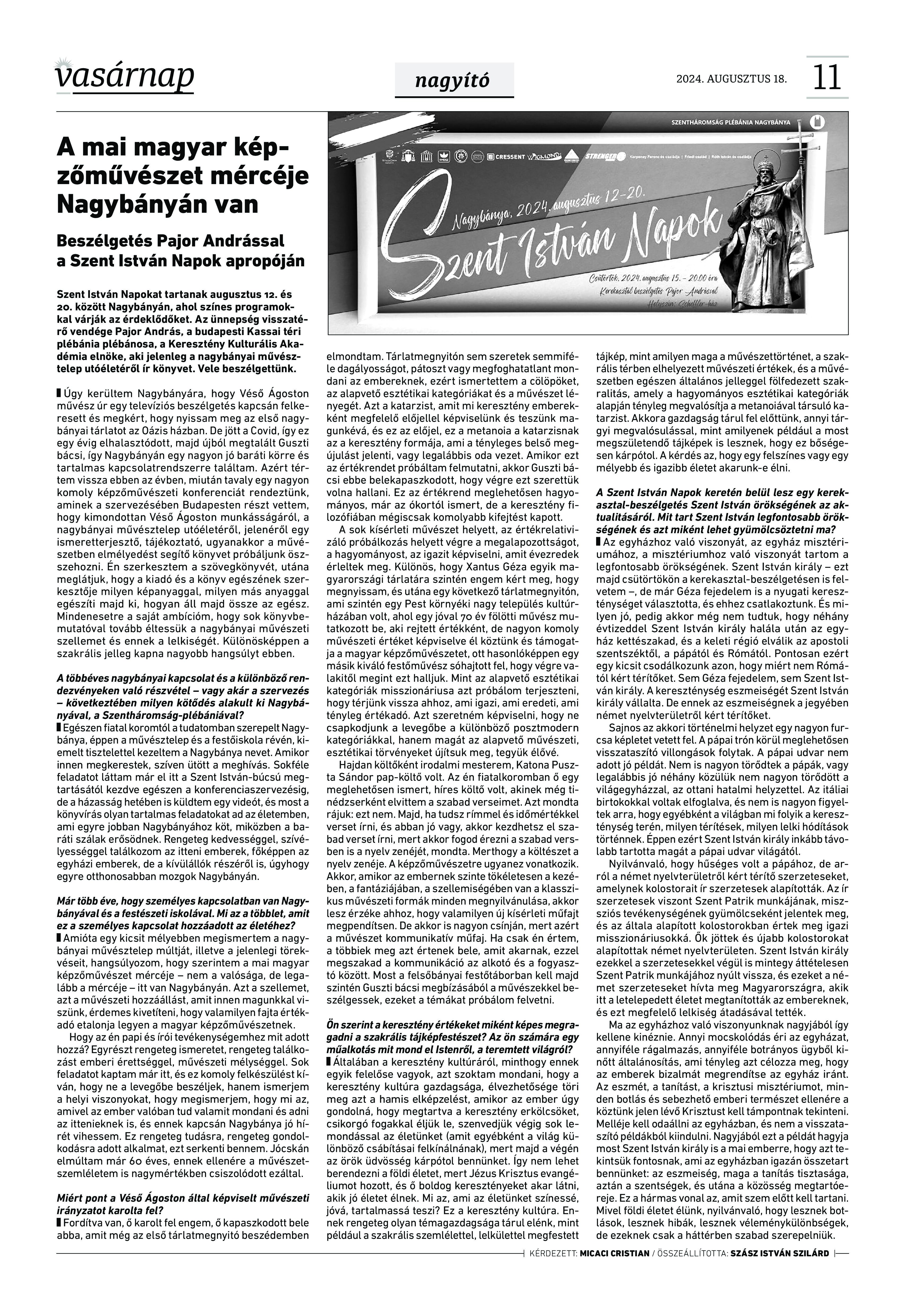 VASÁRNAP - 2024. augusztus 18. A Vasárnap Katolikus Hetilap 2024. augusztus 18. / XXXIV évf. / 33. számának digitális változata. 1 / 12 2 & 3 / 12 4 & 5 / 12 6 & 7 / 12 8 & 9 / 12 10 & 11 / 12 12 / 12