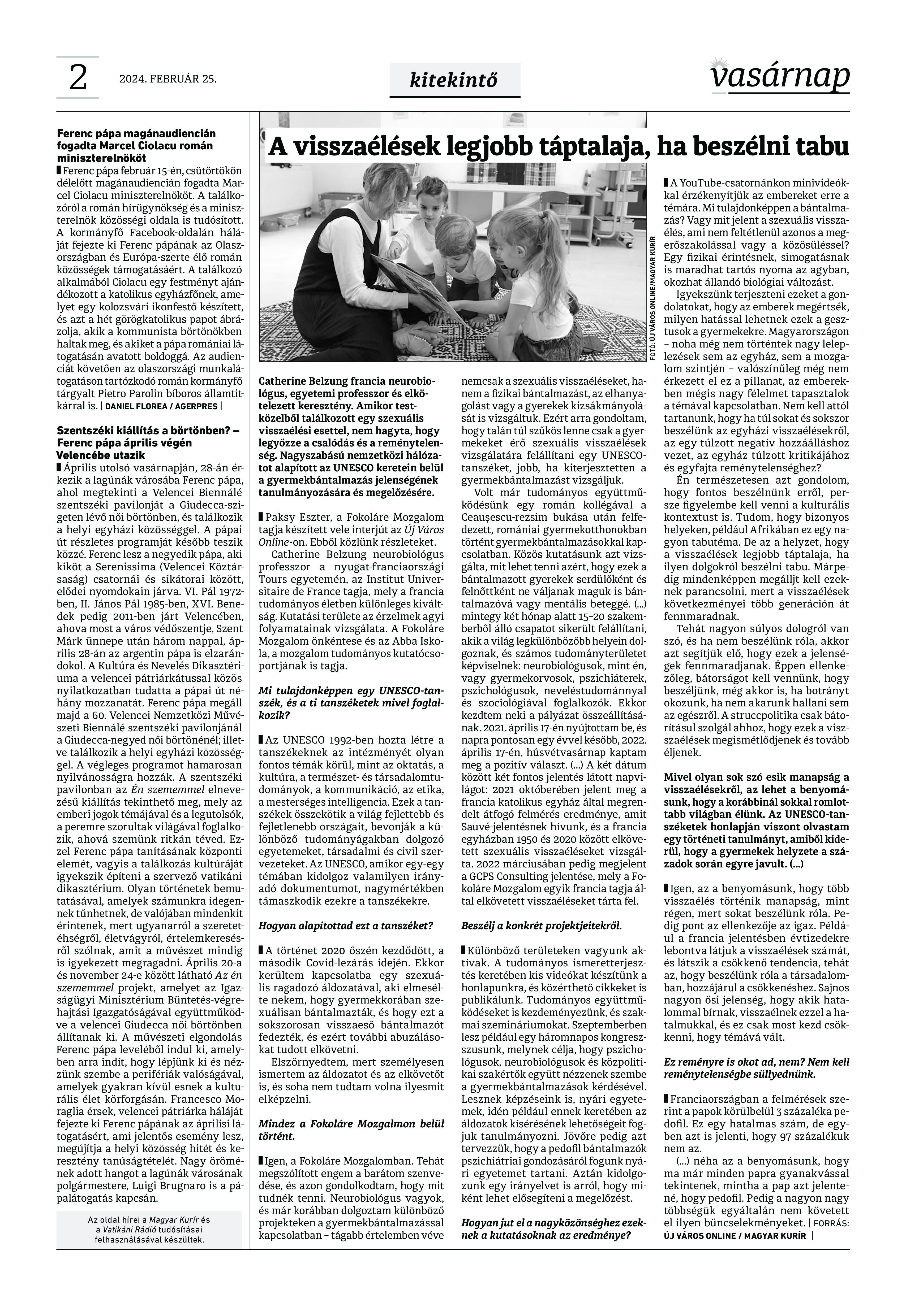 VASÁRNAP - 2024. február 25. A Vasárnap Katolikus Hetilap 2024. február 25. / XXXIV évf. / 8. számának digitális változata. 1 / 12 2 & 3 / 12 4 & 5 / 12 6 & 7 / 12 8 & 9 / 12 10 & 11 / 12 12 / 12